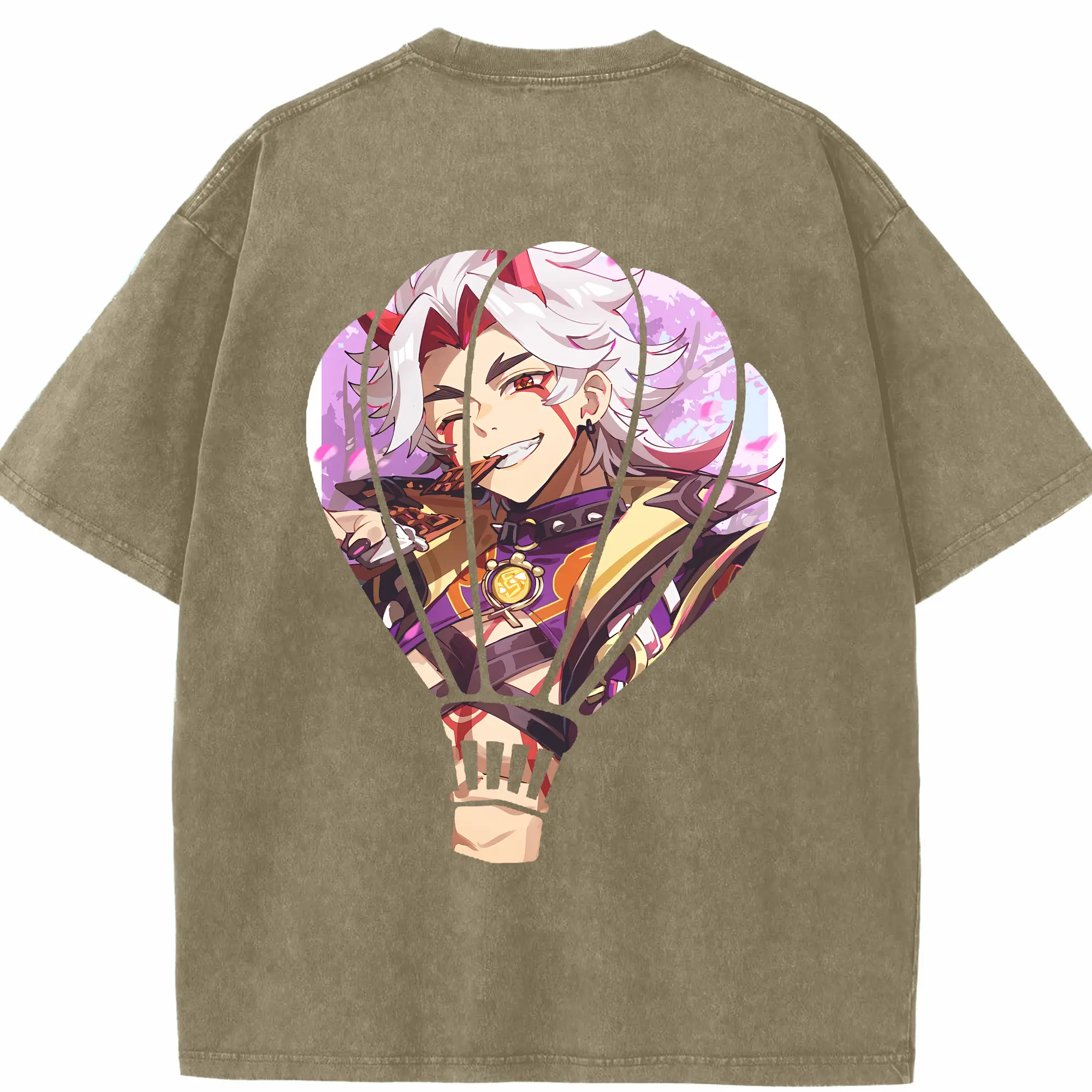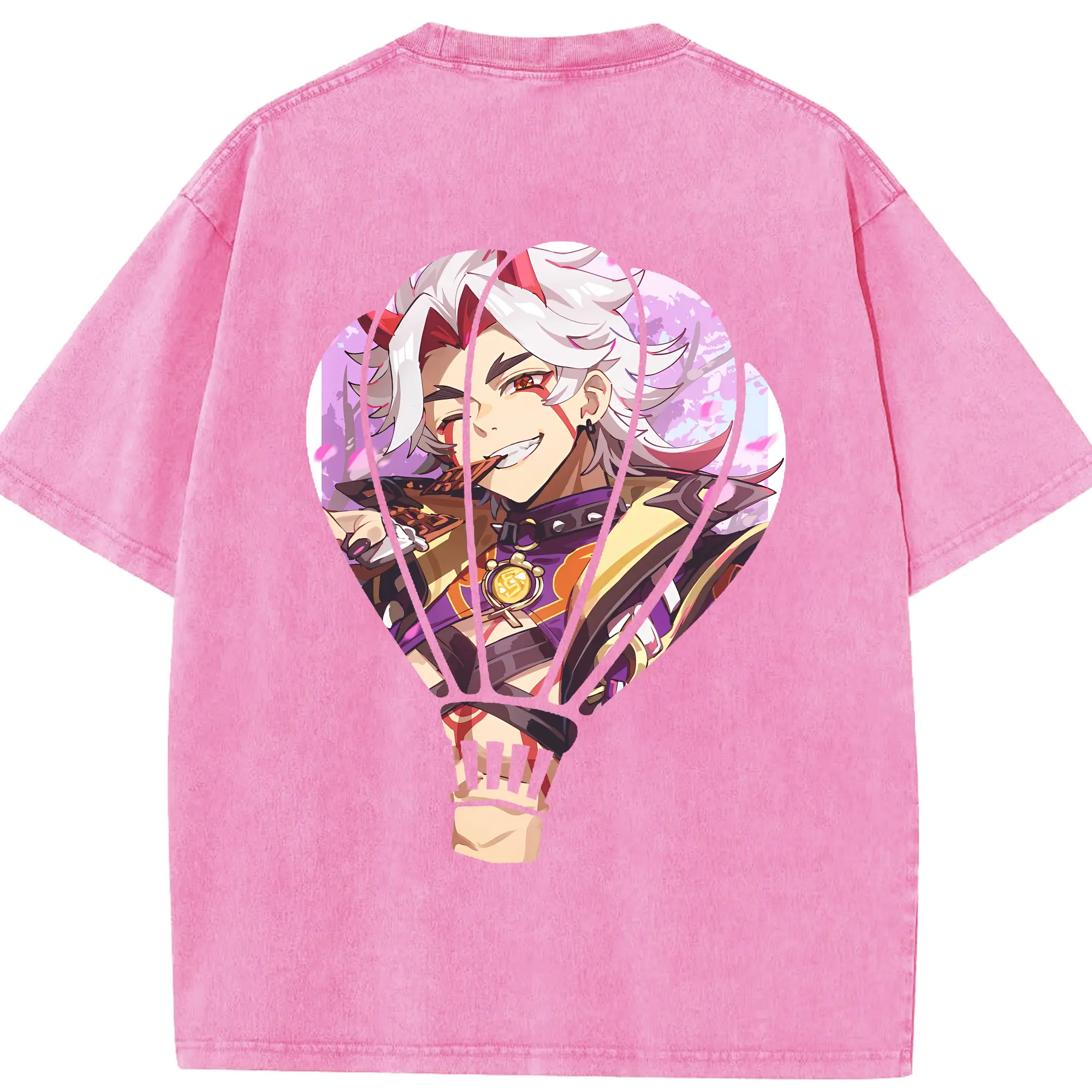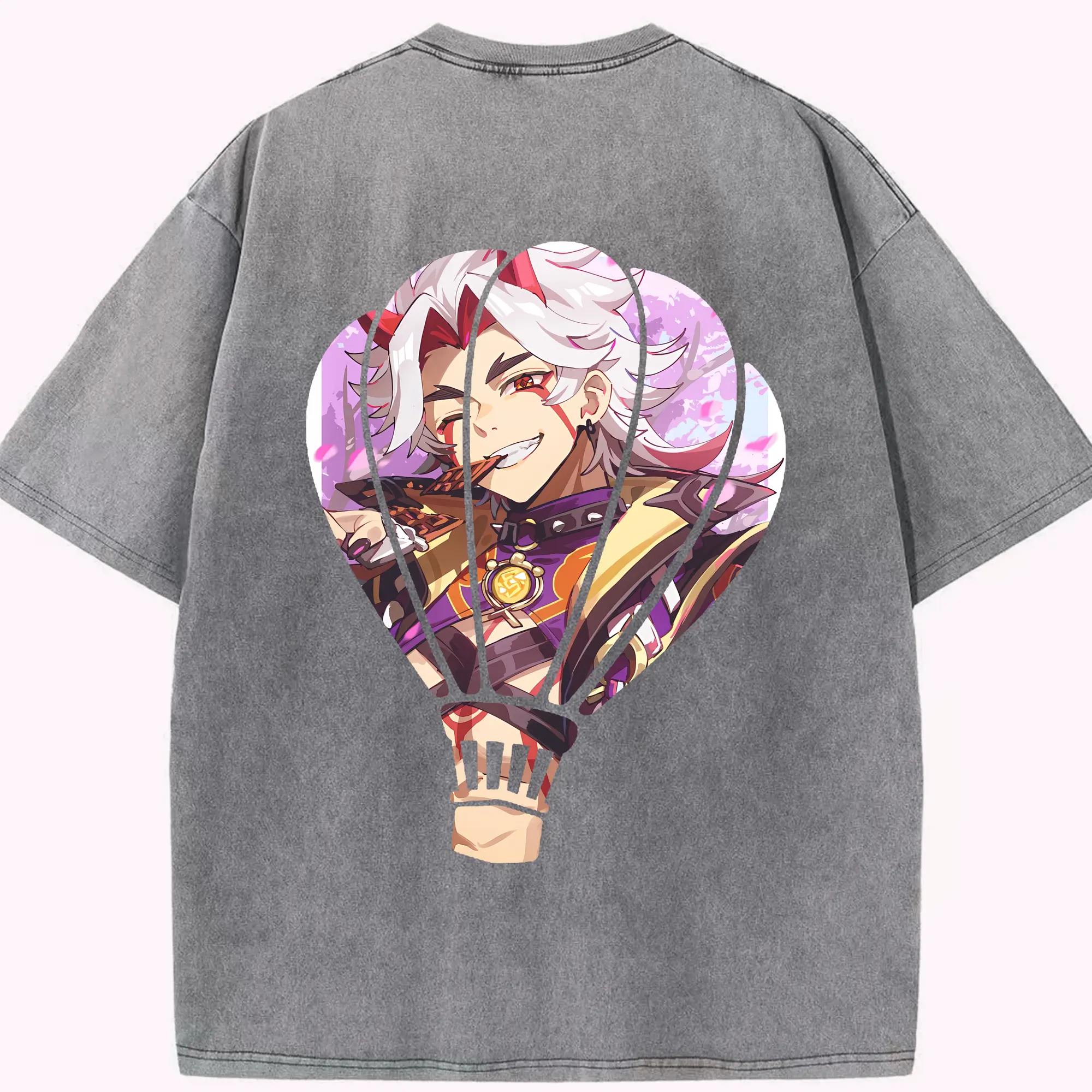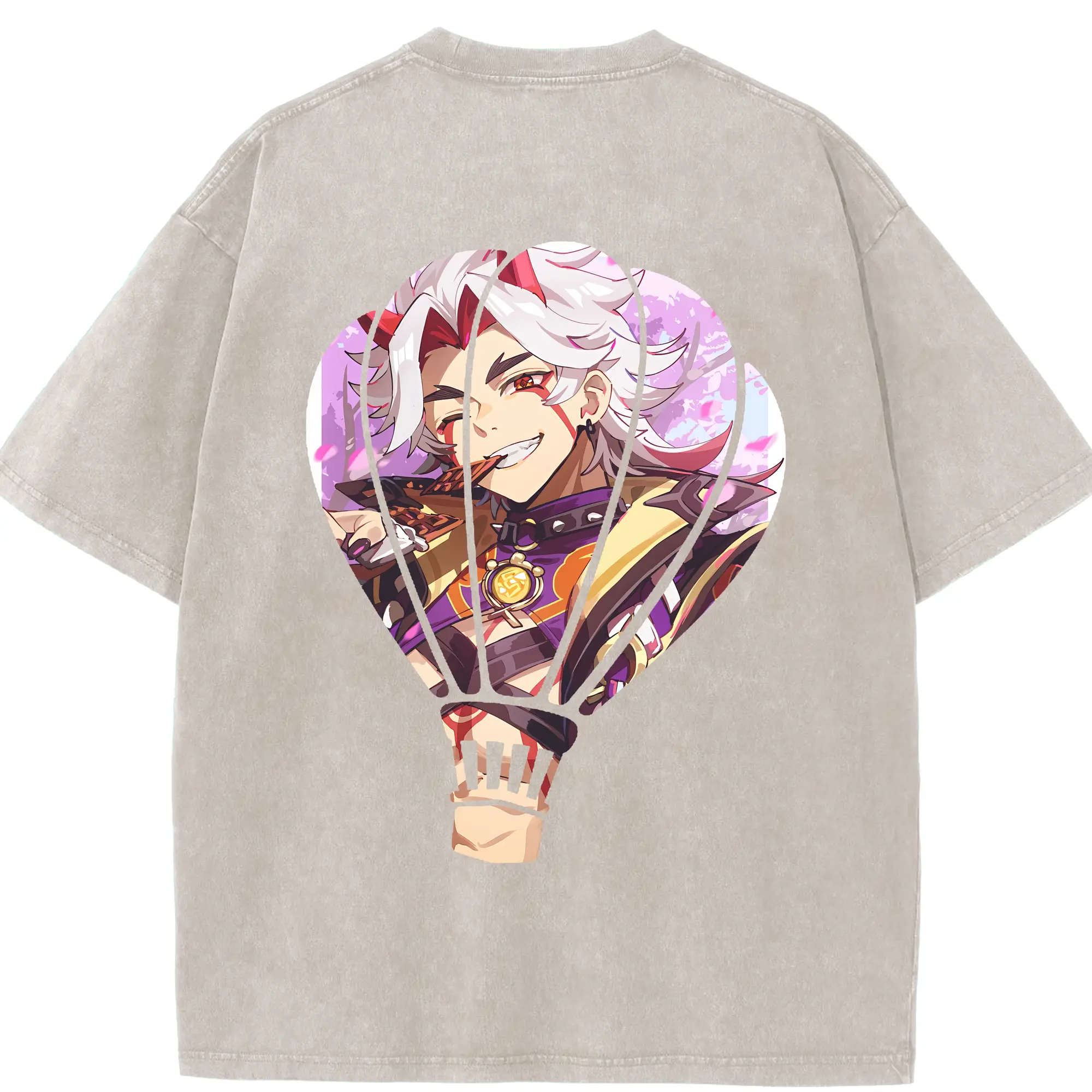 原 神 グッズ 荒瀧 一 斗 - 綿100% ヴィンテージ風 半袖Tシャツ ・ フロントプリント ・ 柔らか肌触り ・ 通気性 快適 ・ スポーツ カジュアル 外出用