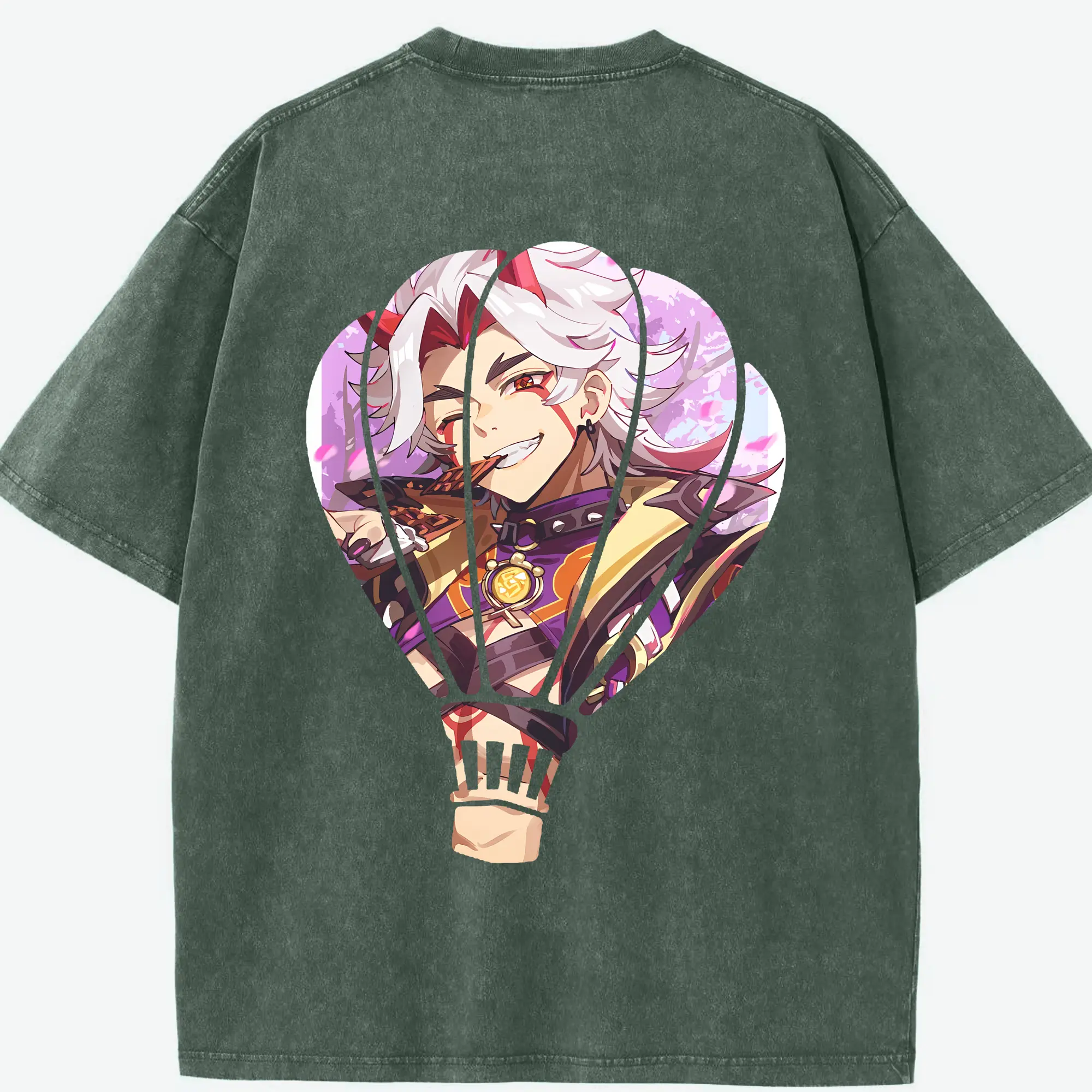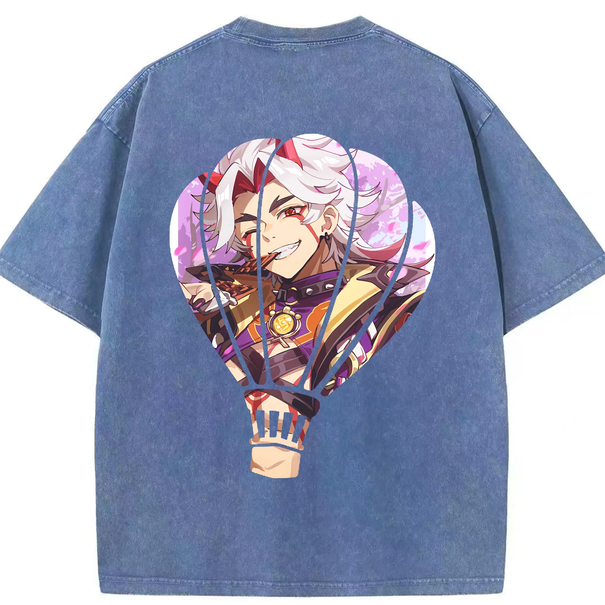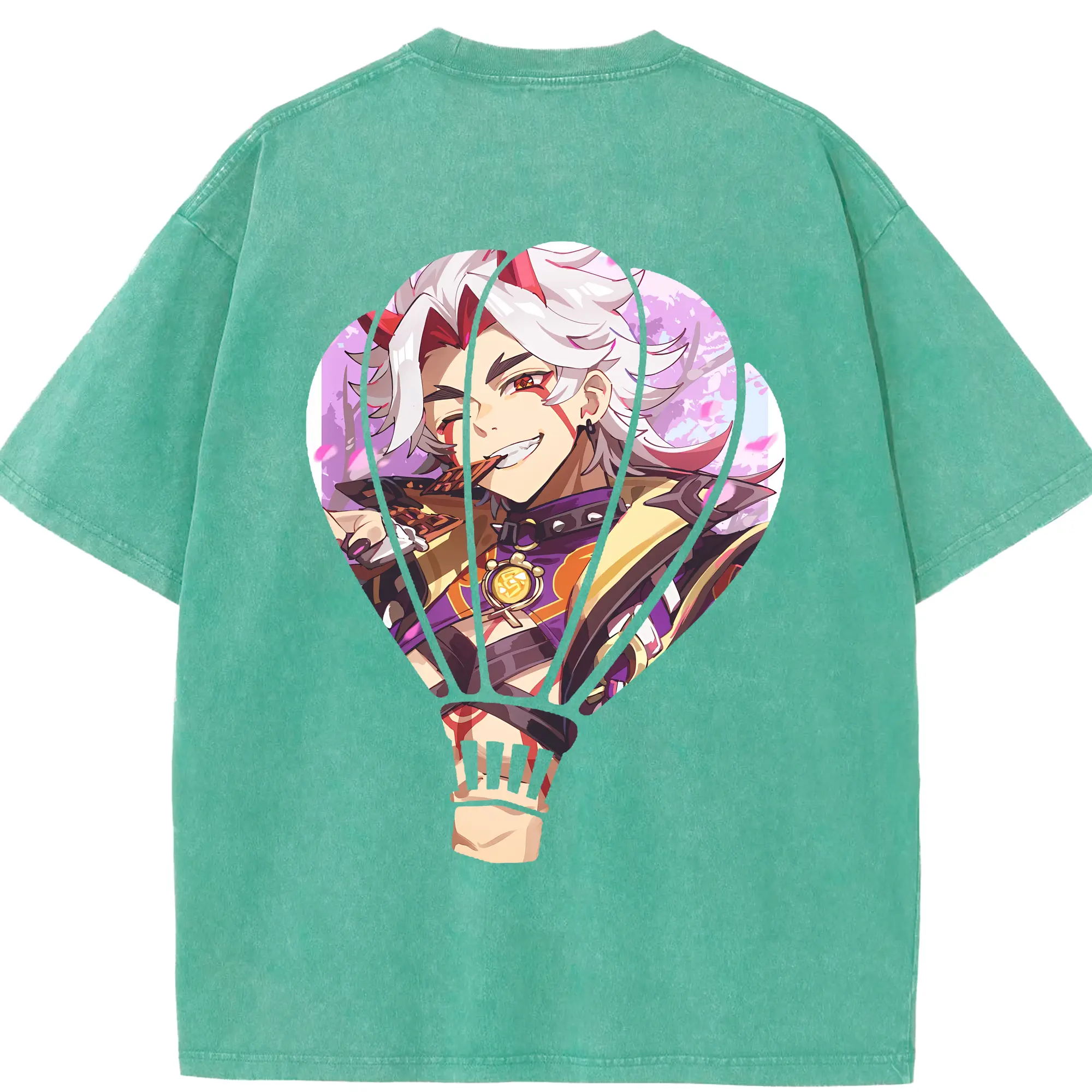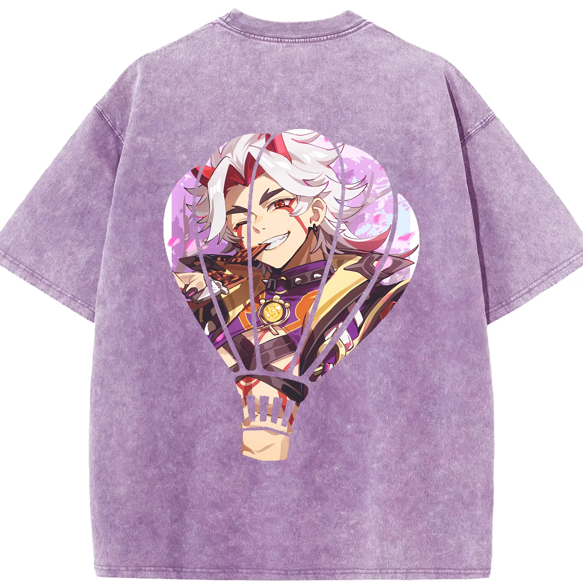原 神 グッズ 荒瀧 一 斗 - 綿100% ヴィンテージ風 半袖Tシャツ ・ フロントプリント ・ 柔らか肌触り ・ 通気性 快適 ・ スポーツ カジュアル 外出用