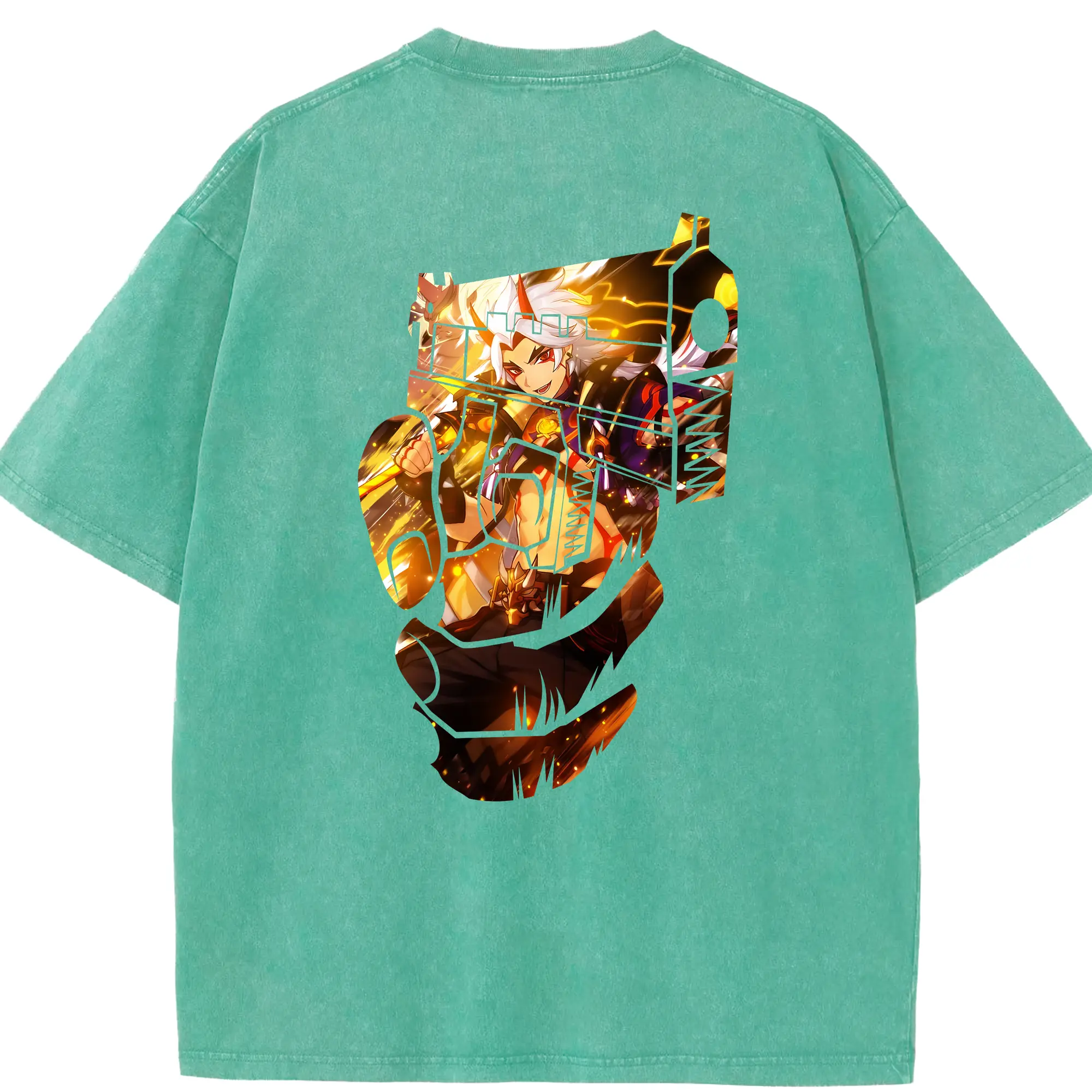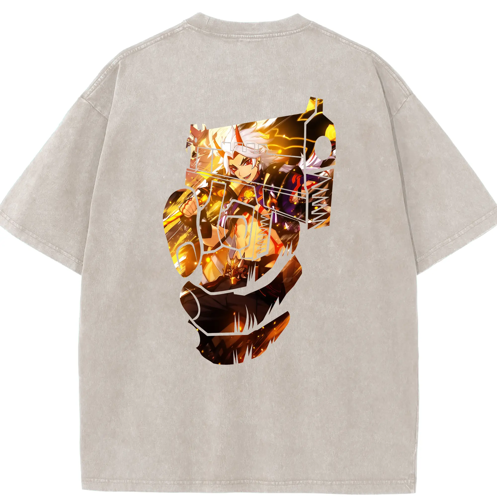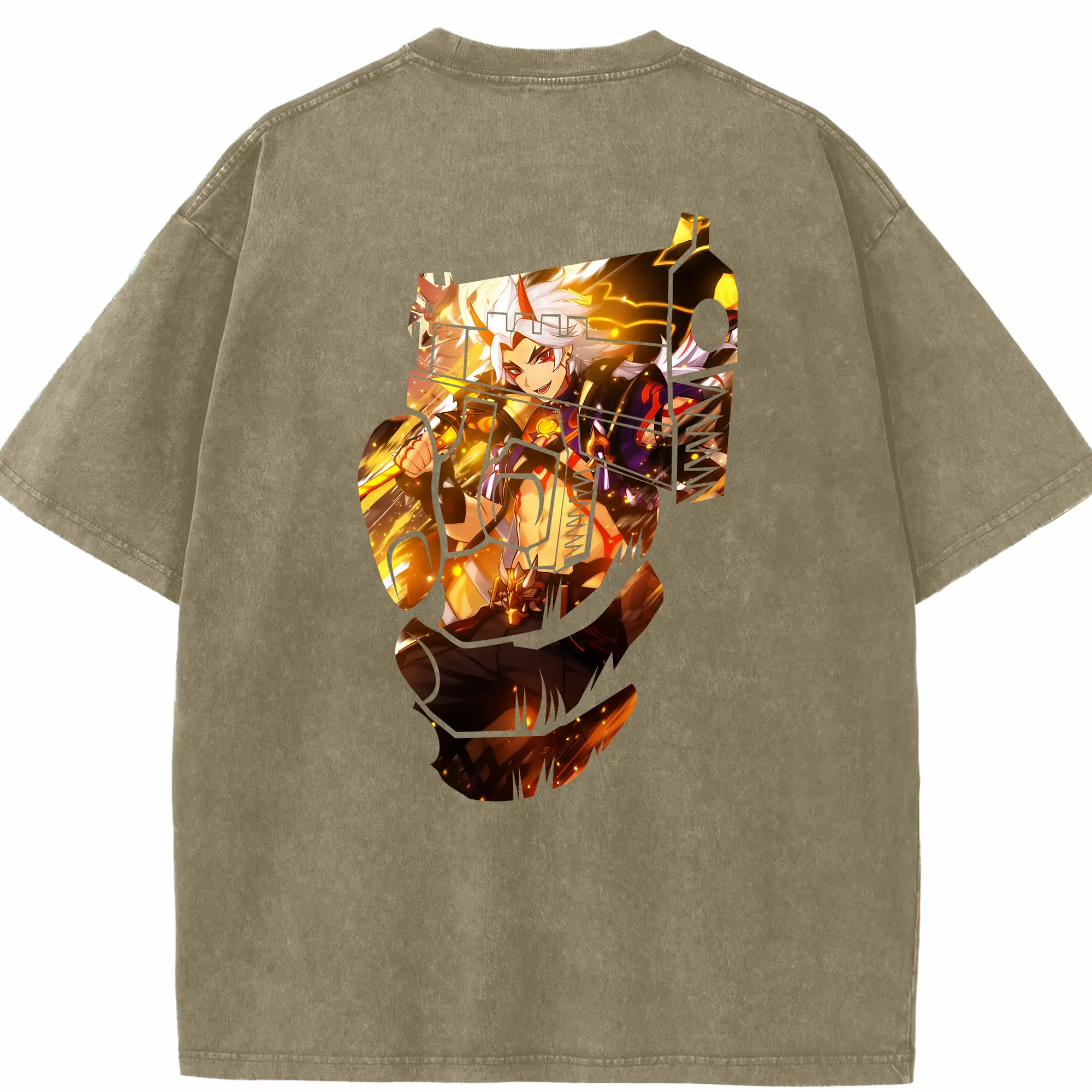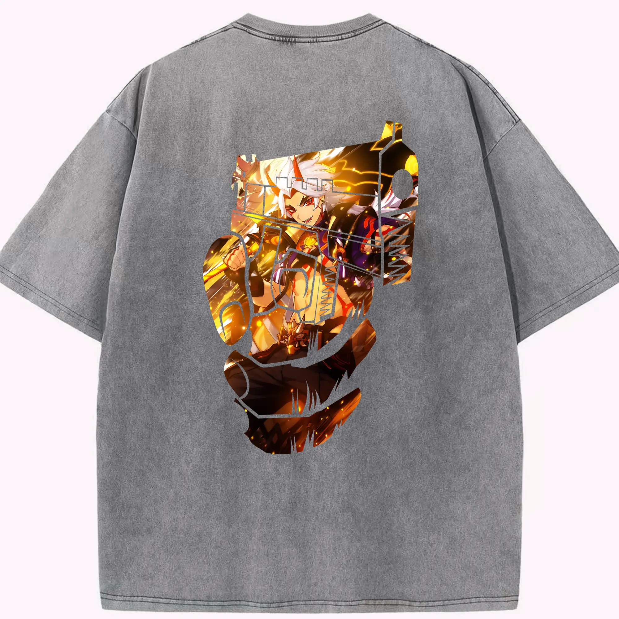 原 神 グッズ 荒瀧 一 斗 - 綿100% ヴィンテージ風 半袖Tシャツ ・ フロントプリント ・ 柔らか肌触り ・ 通気性 快適 ・ スポーツ カジュアル 外出用