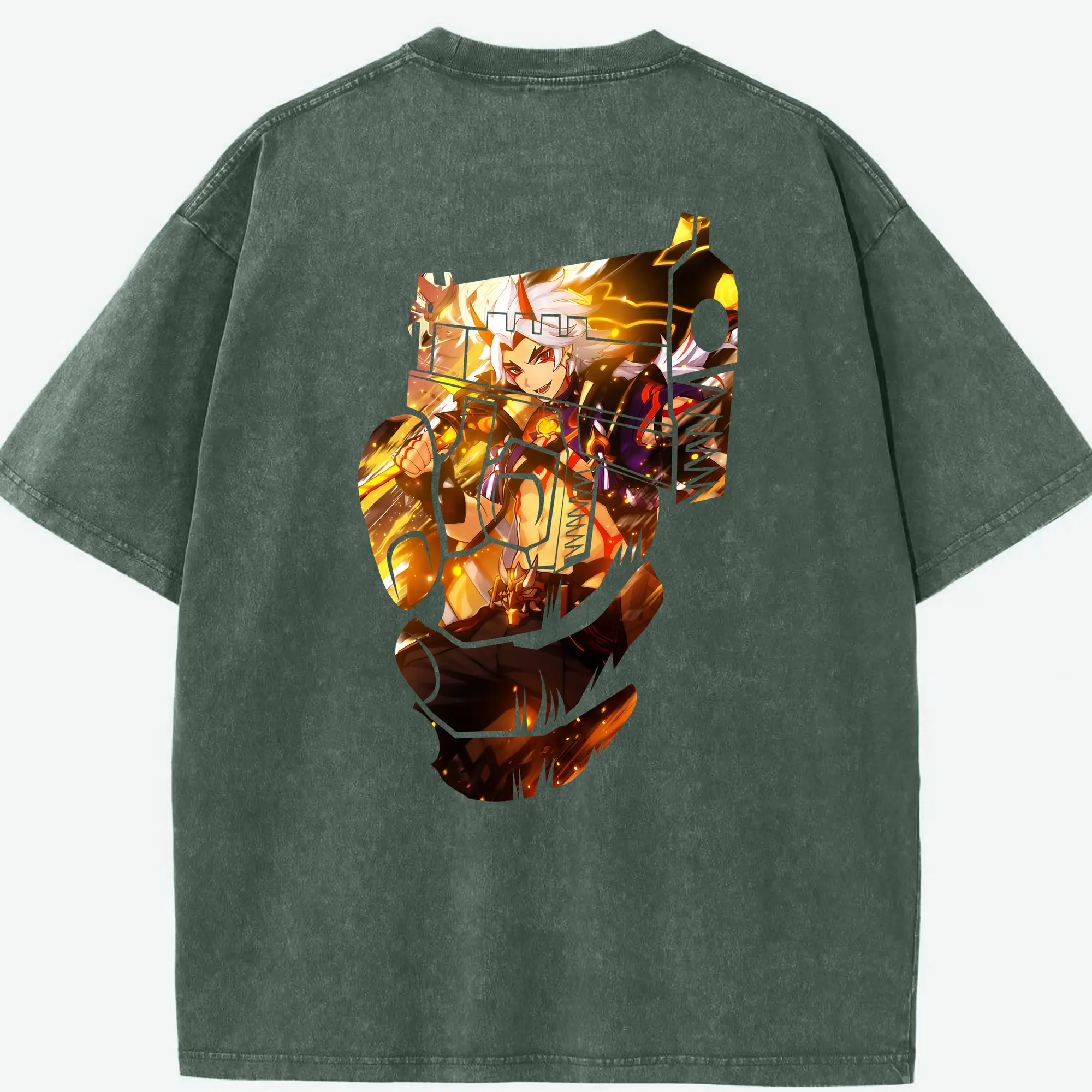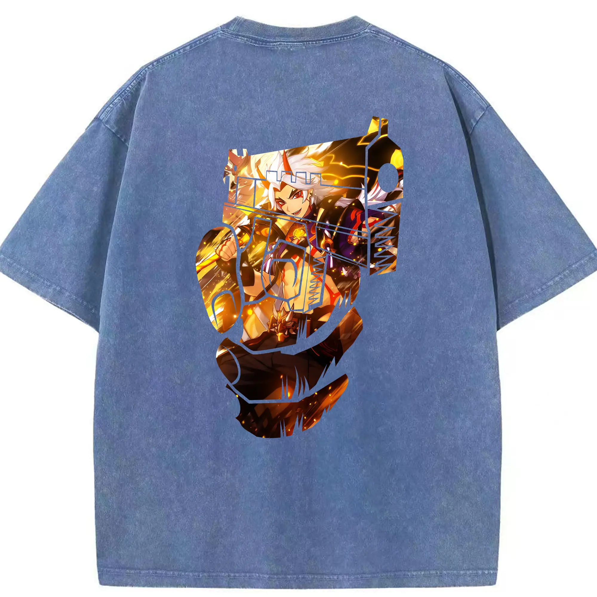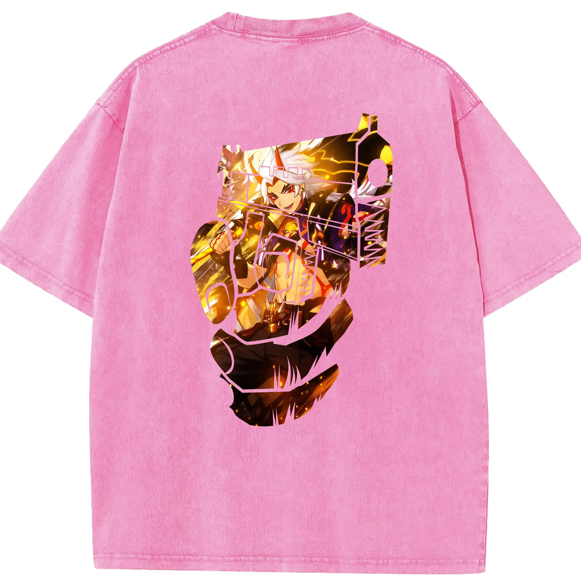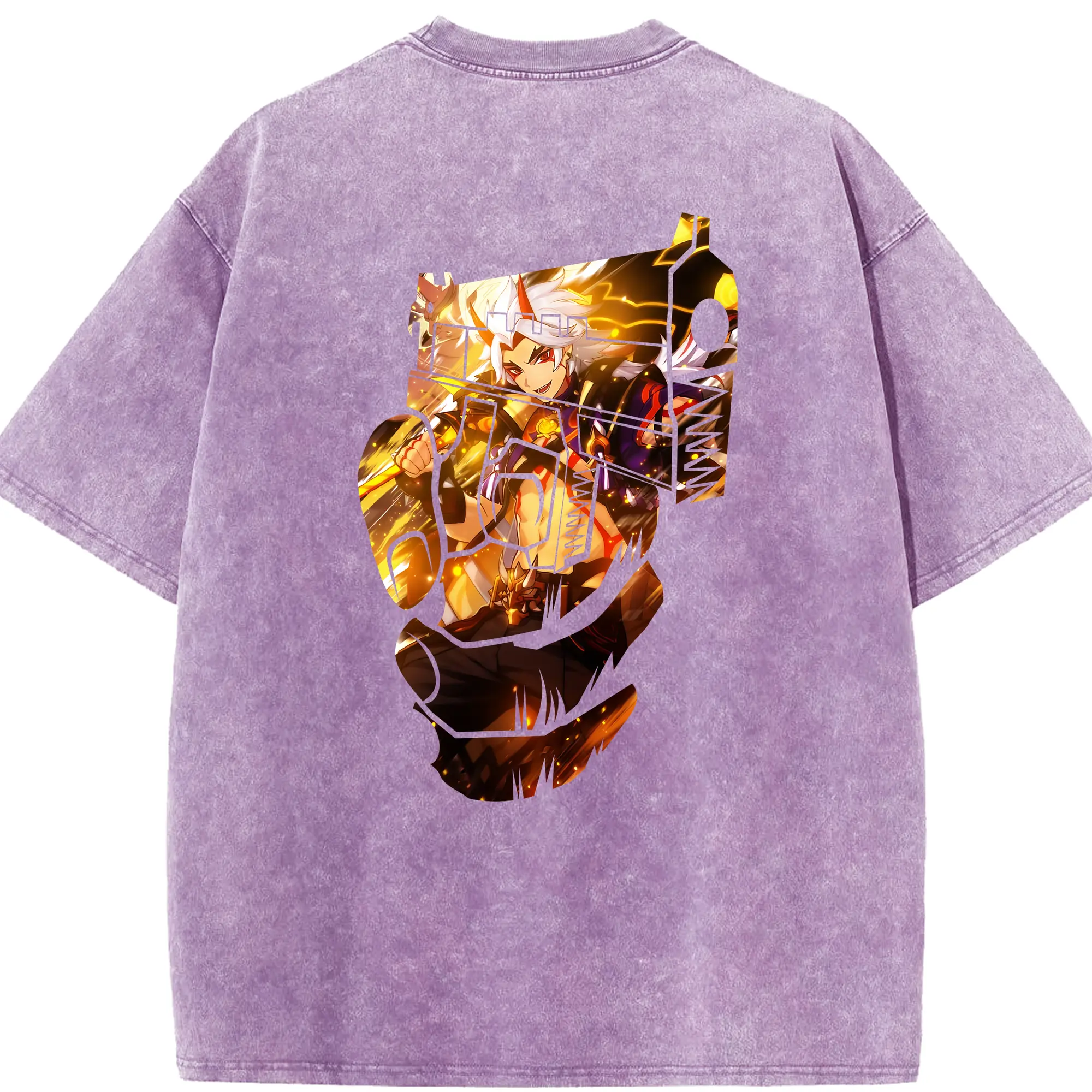 原 神 グッズ 荒瀧 一 斗 - 綿100% ヴィンテージ風 半袖Tシャツ ・ フロントプリント ・ 柔らか肌触り ・ 通気性 快適 ・ スポーツ カジュアル 外出用