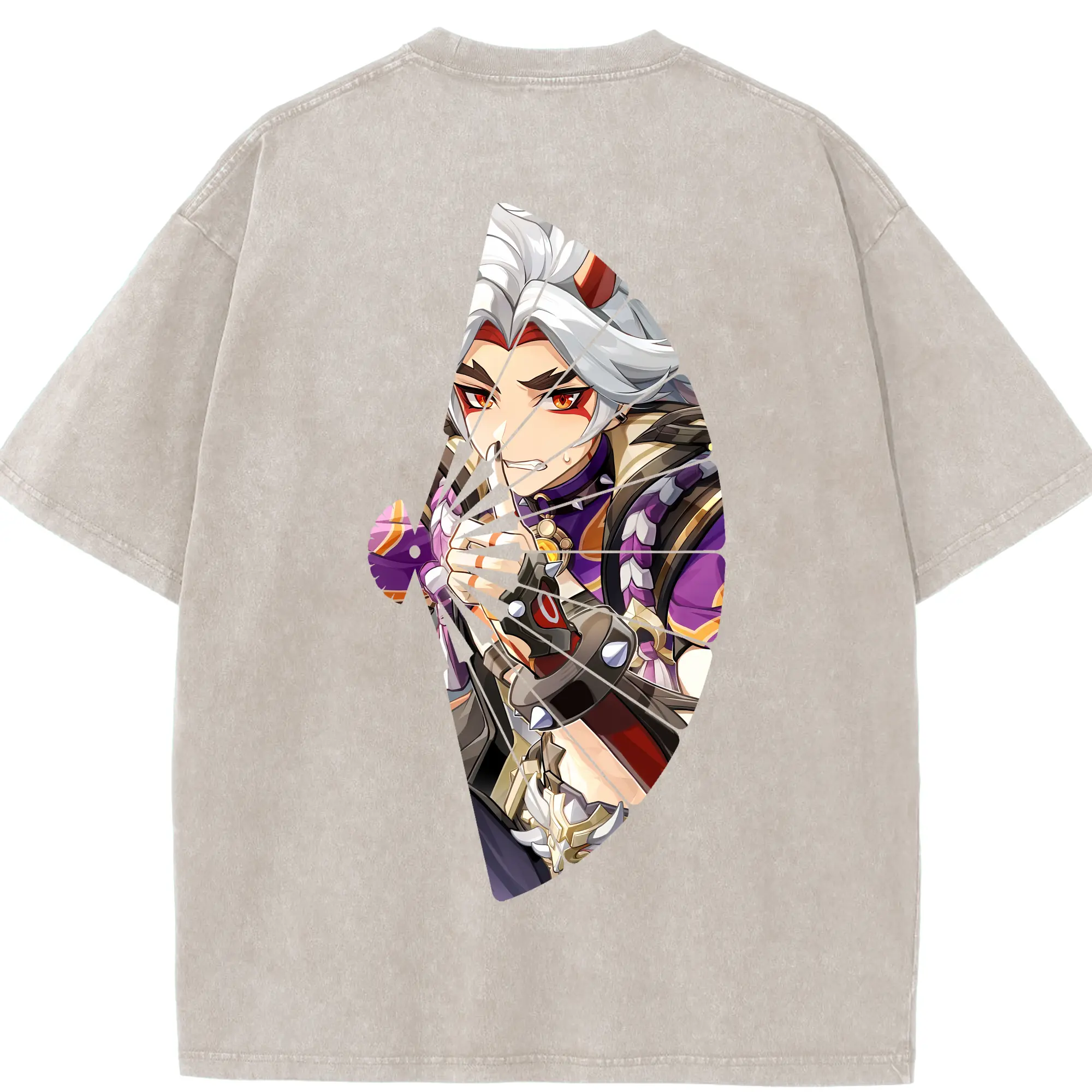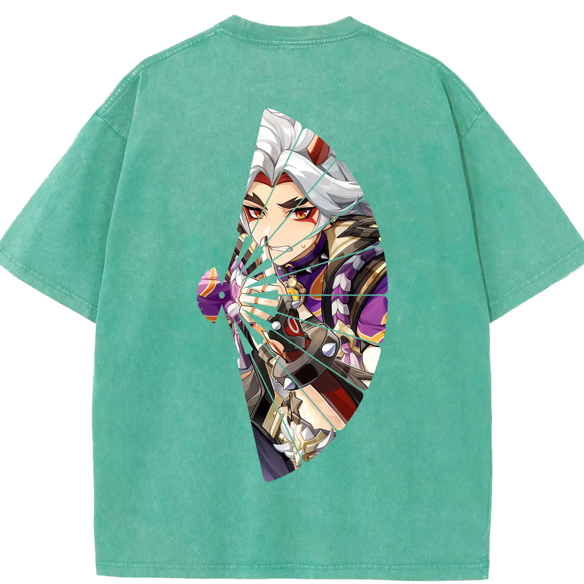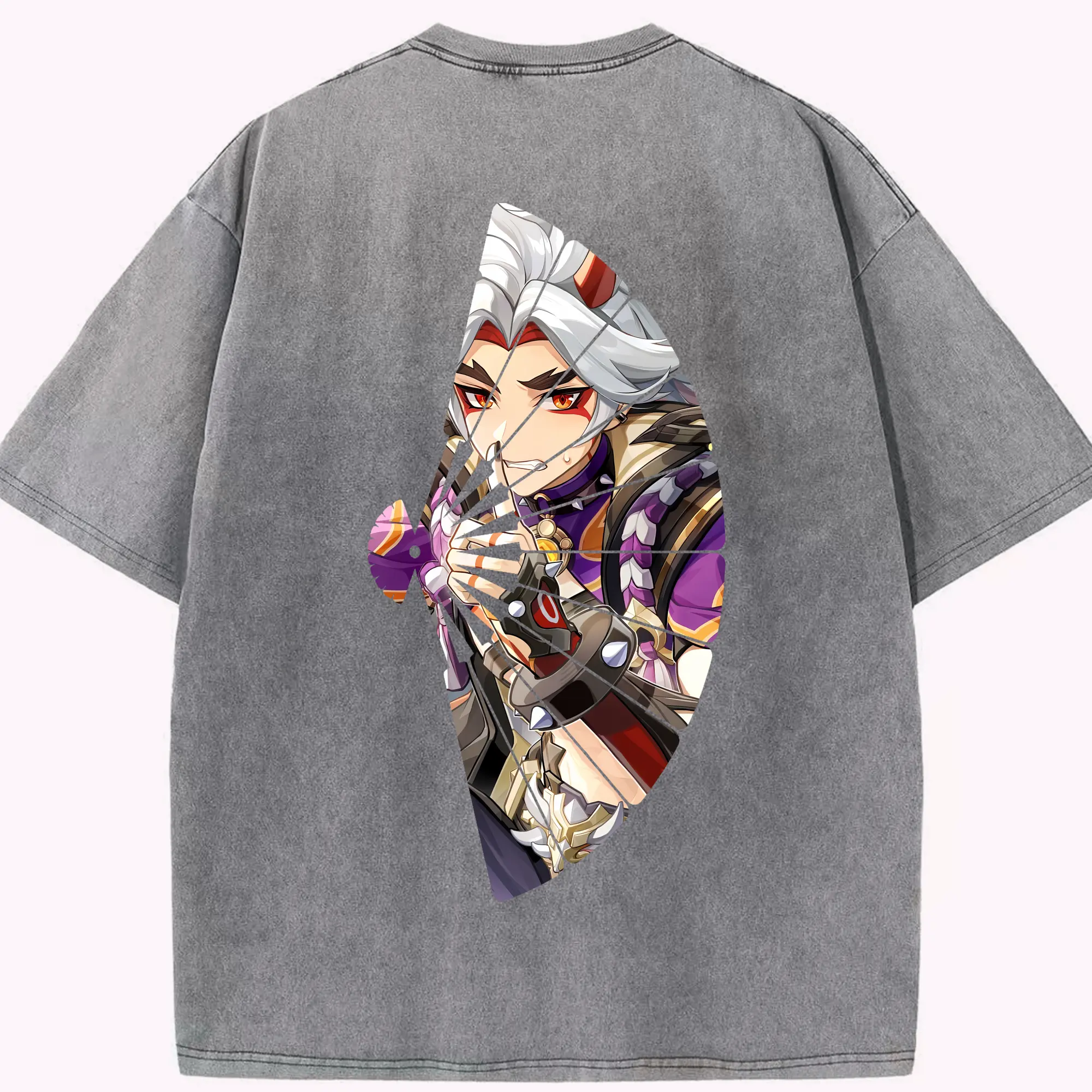 原 神 グッズ 荒瀧 一 斗 - 綿100% ヴィンテージ風 半袖Tシャツ ・ フロントプリント ・ 柔らか肌触り ・ 通気性 快適 ・ スポーツ カジュアル 外出用