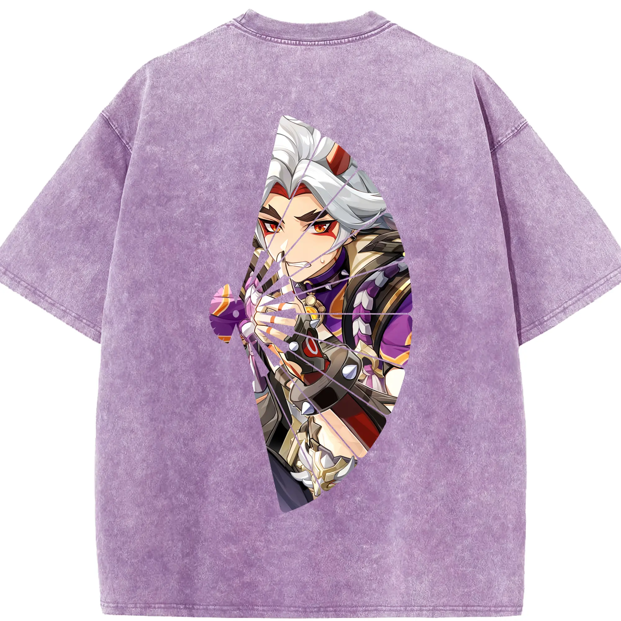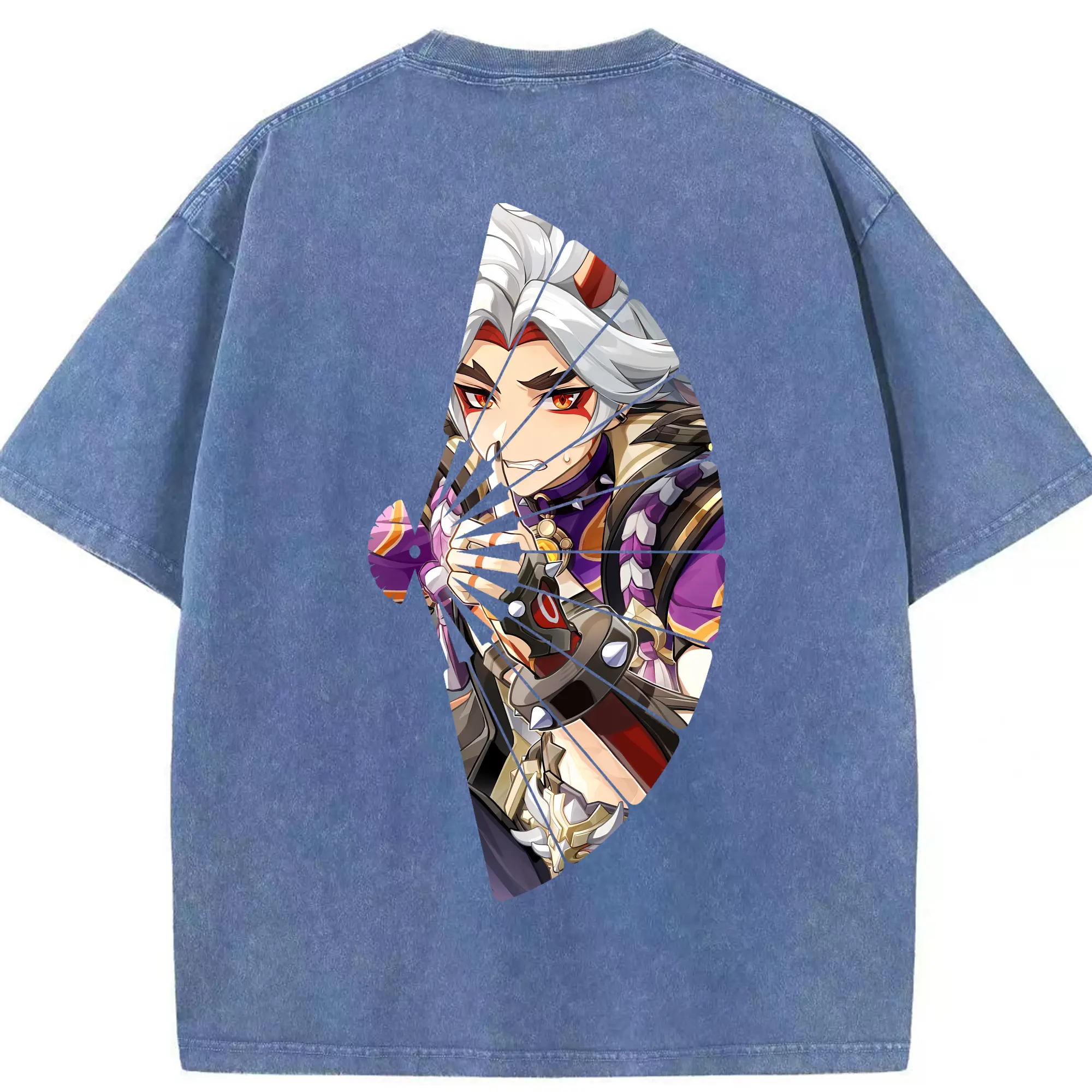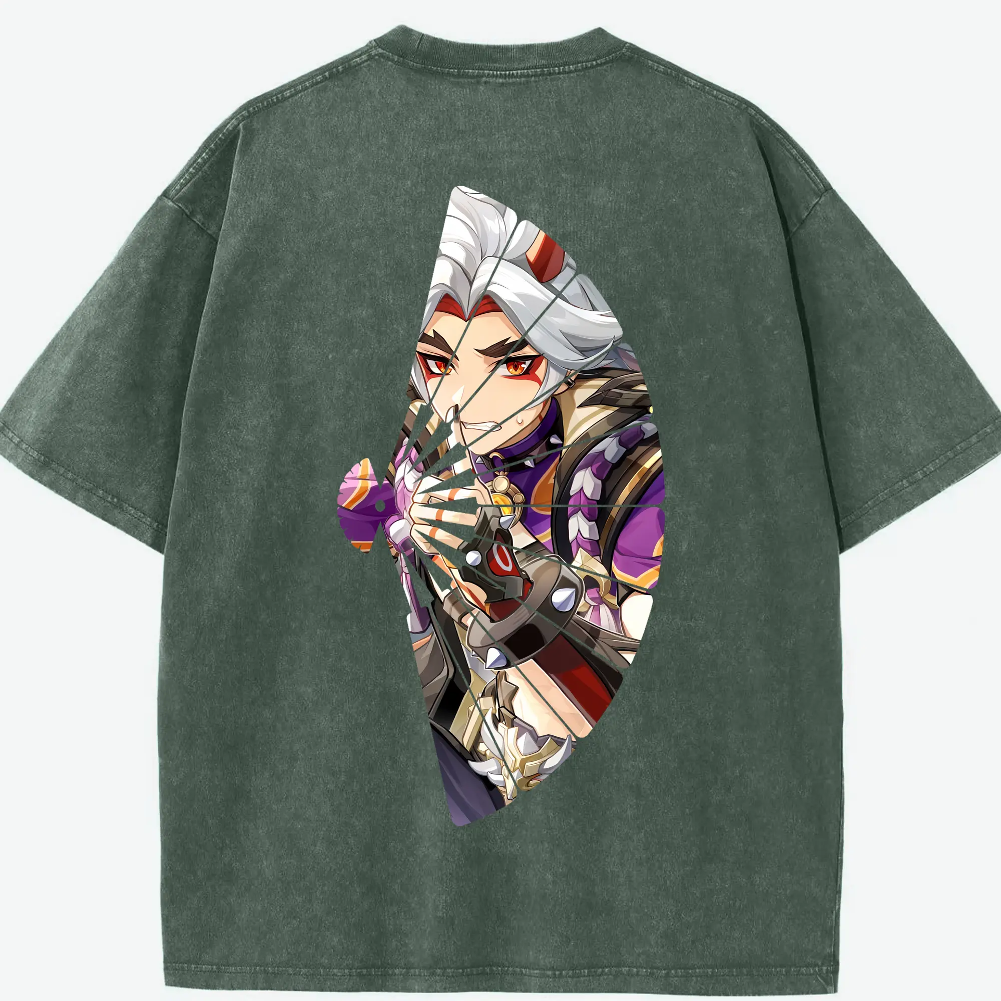原 神 グッズ 荒瀧 一 斗 - 綿100% ヴィンテージ風 半袖Tシャツ ・ フロントプリント ・ 柔らか肌触り ・ 通気性 快適 ・ スポーツ カジュアル 外出用