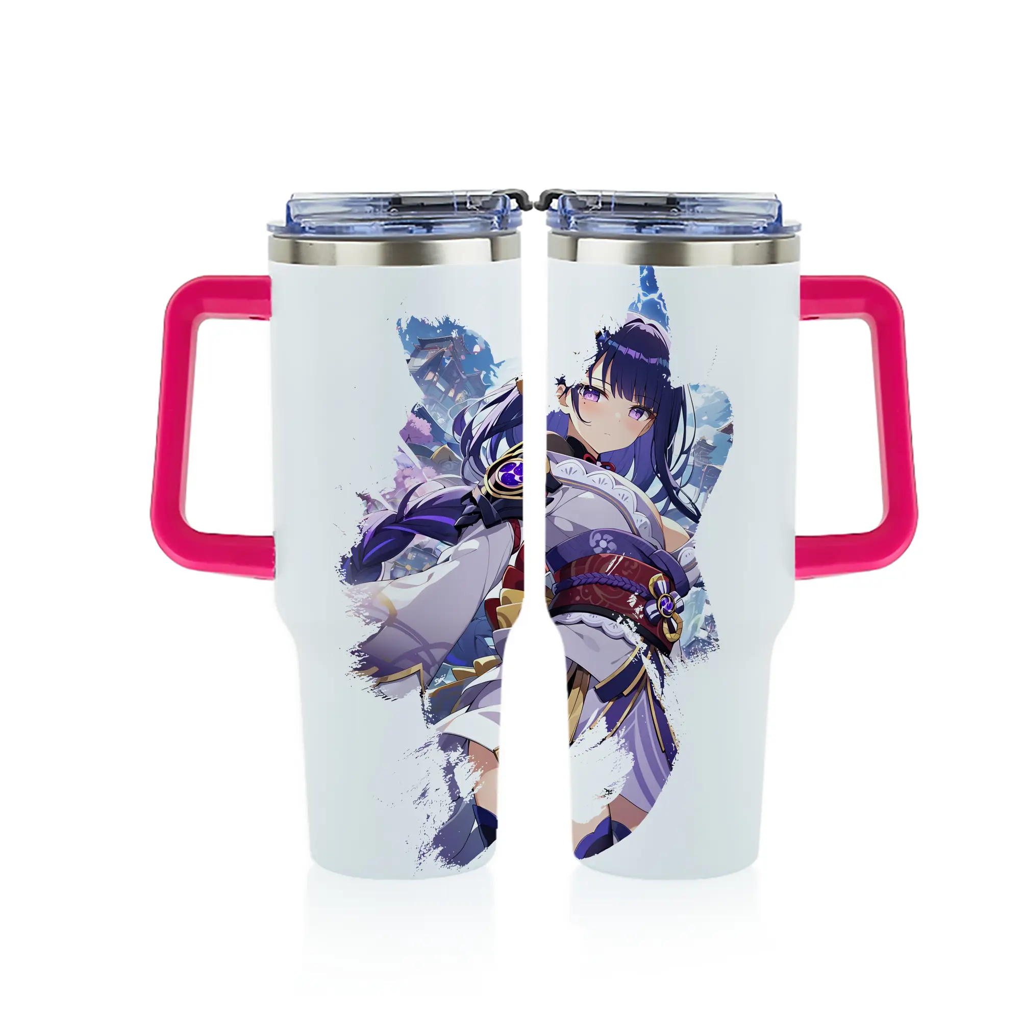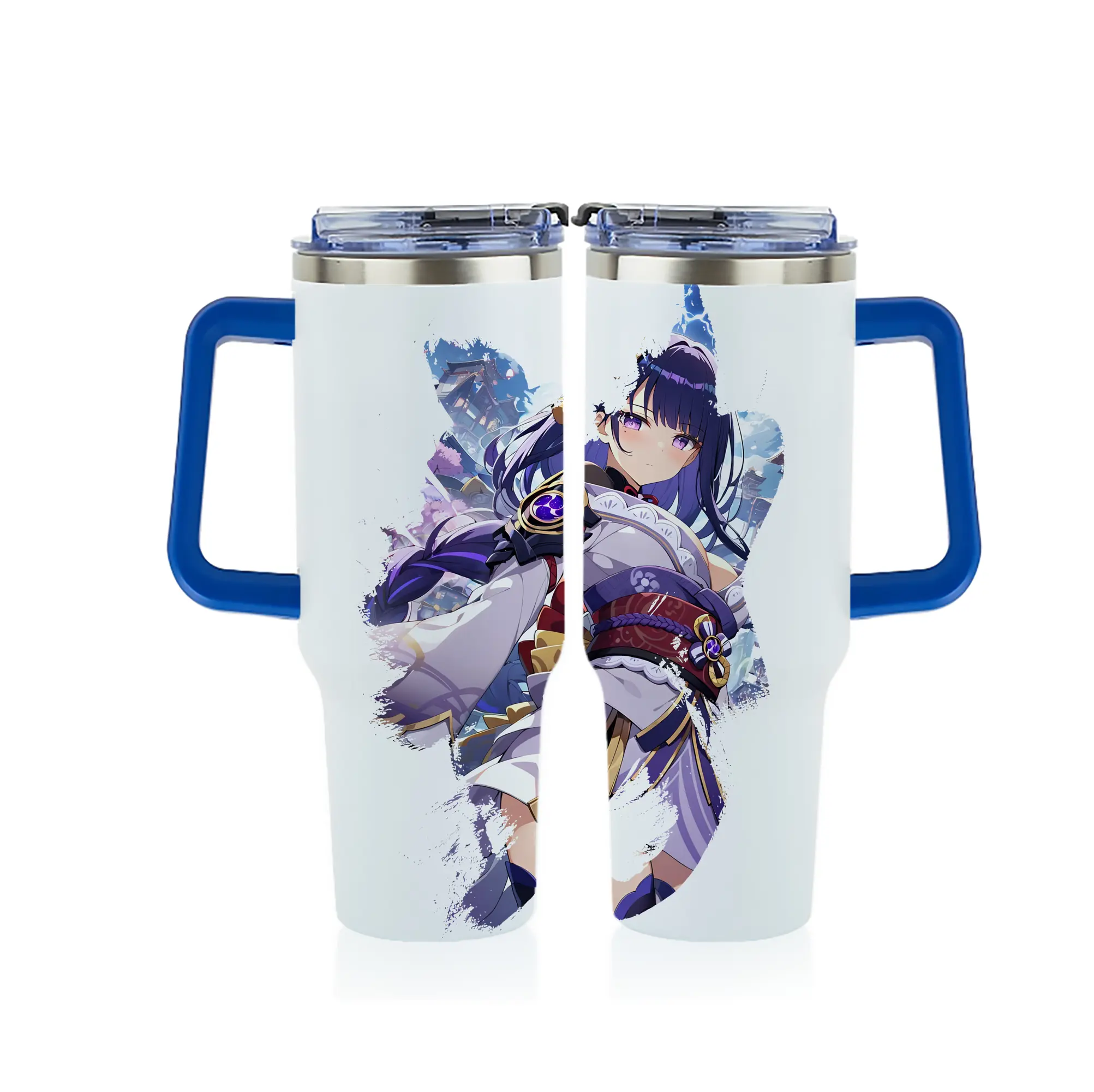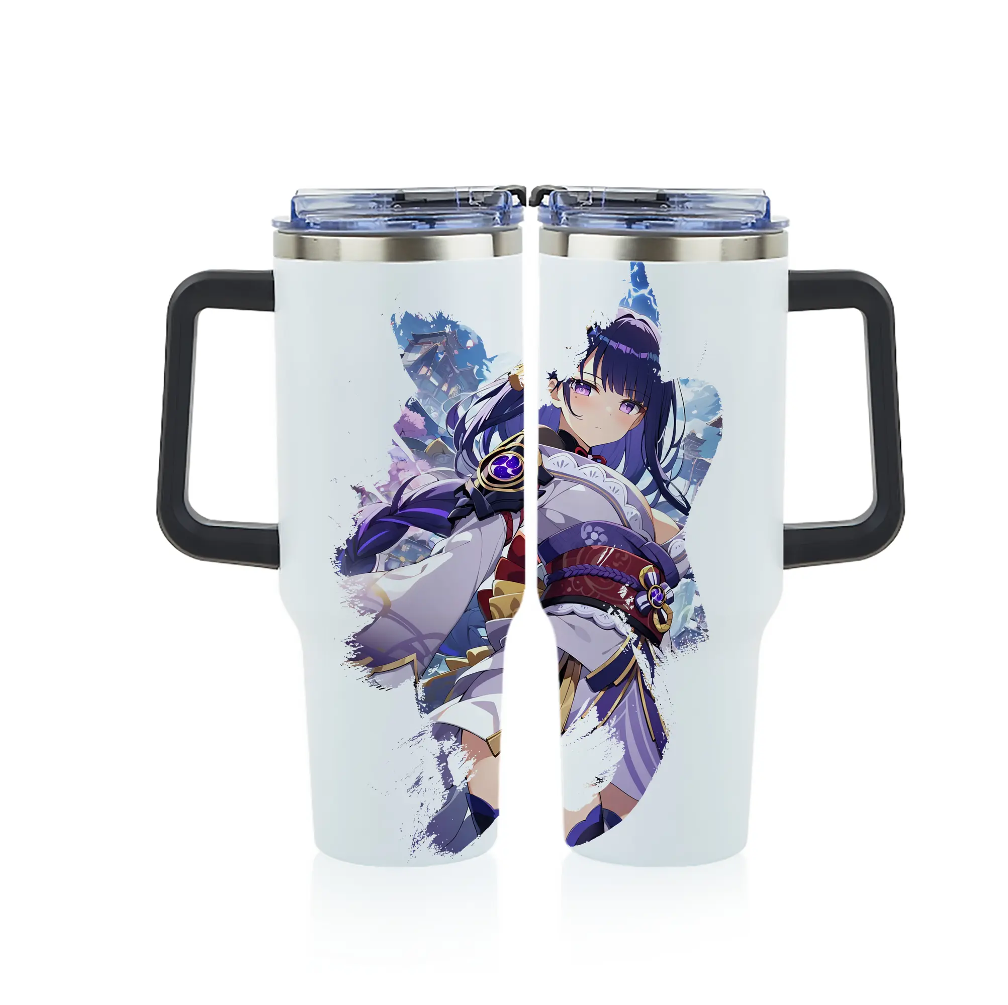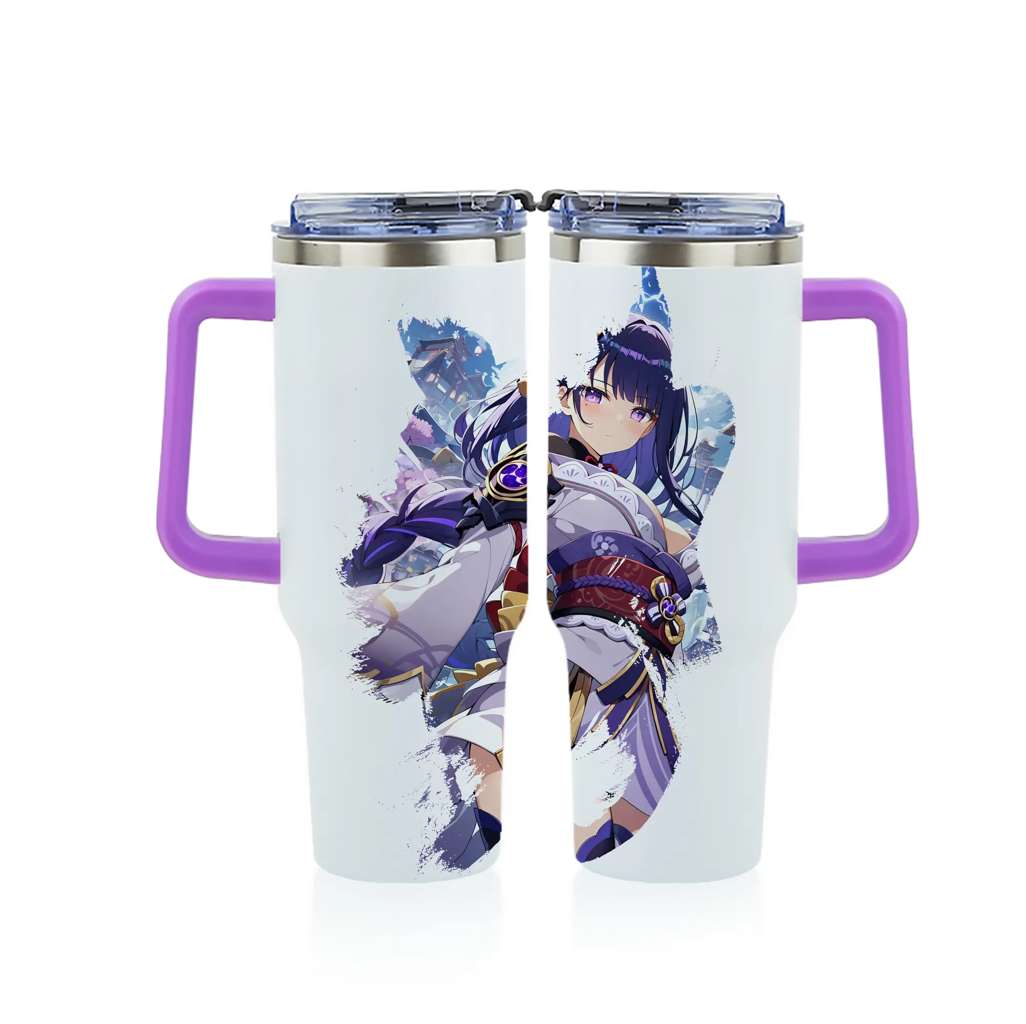 原 神 グッズ 雷電将軍 - 1200mL フルプリント車用タンブラー ・ 304ステンレス 内側 ・ 201ステンレス 外側 ・ 保温 保冷 ・ 通勤 ドライブ アウトドア用