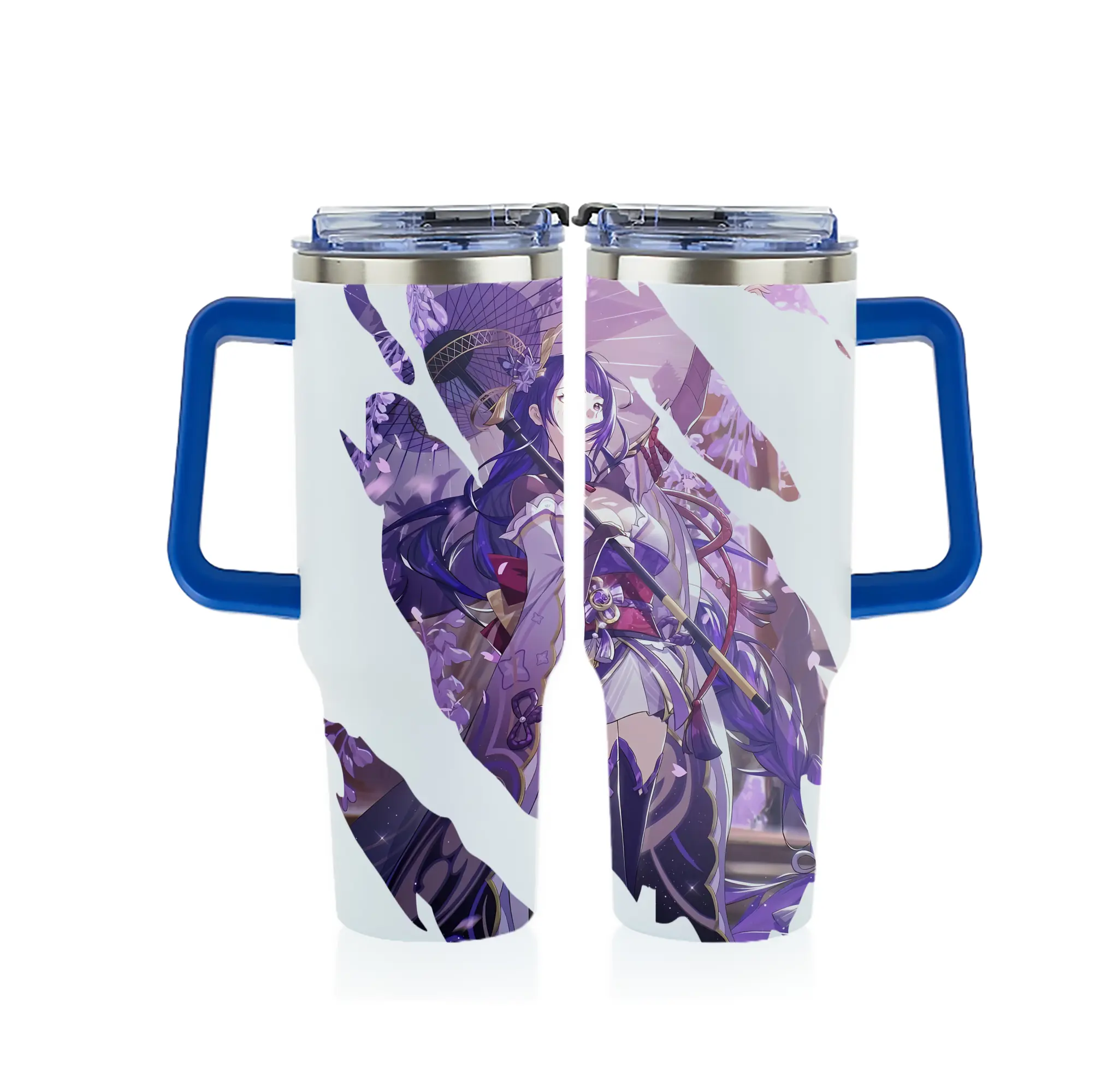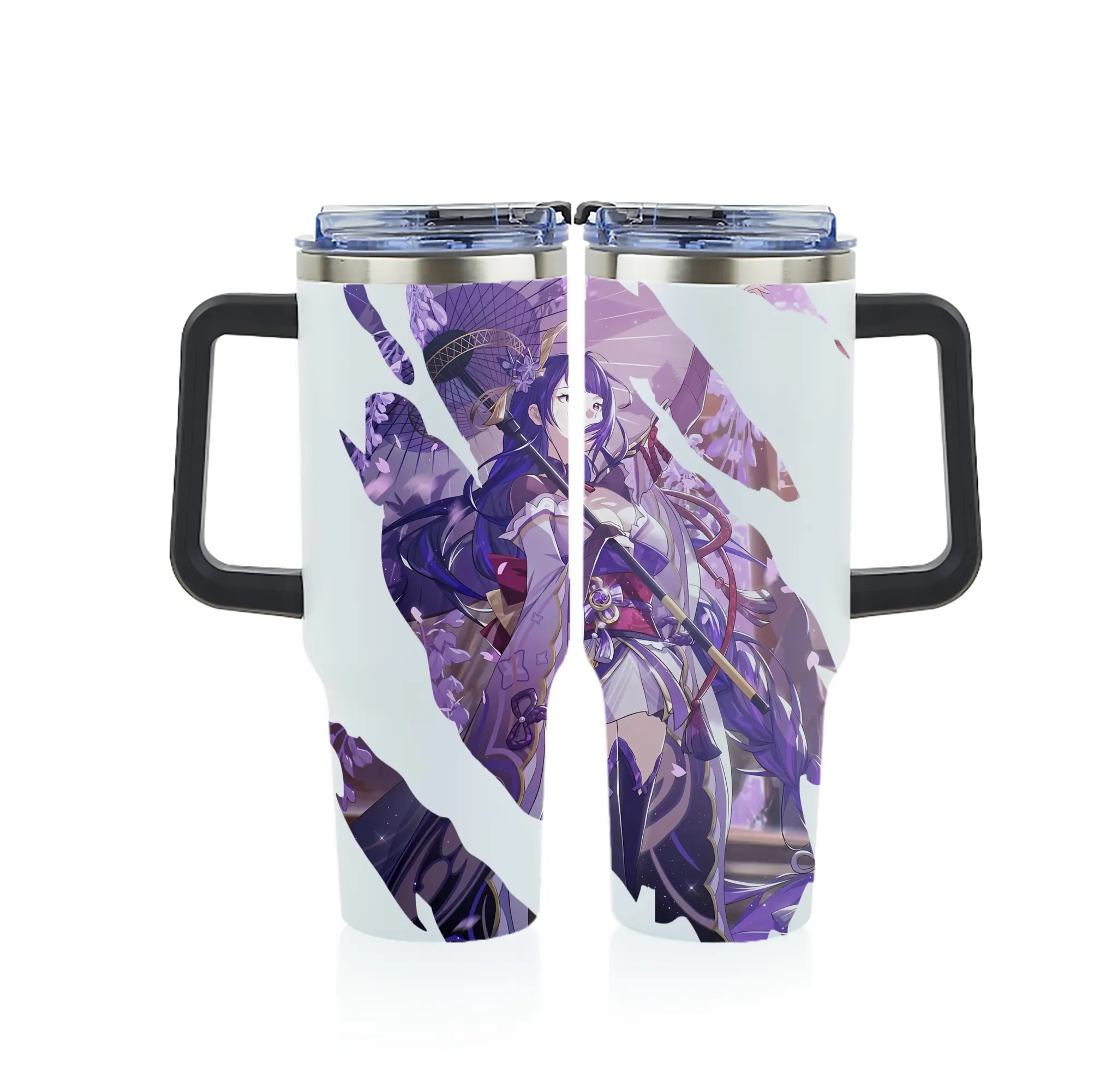 原 神 グッズ 雷電将軍 - 1200mL フルプリント車用タンブラー ・ 304ステンレス 内側 ・ 201ステンレス 外側 ・ 保温 保冷 ・ 通勤 ドライブ アウトドア用