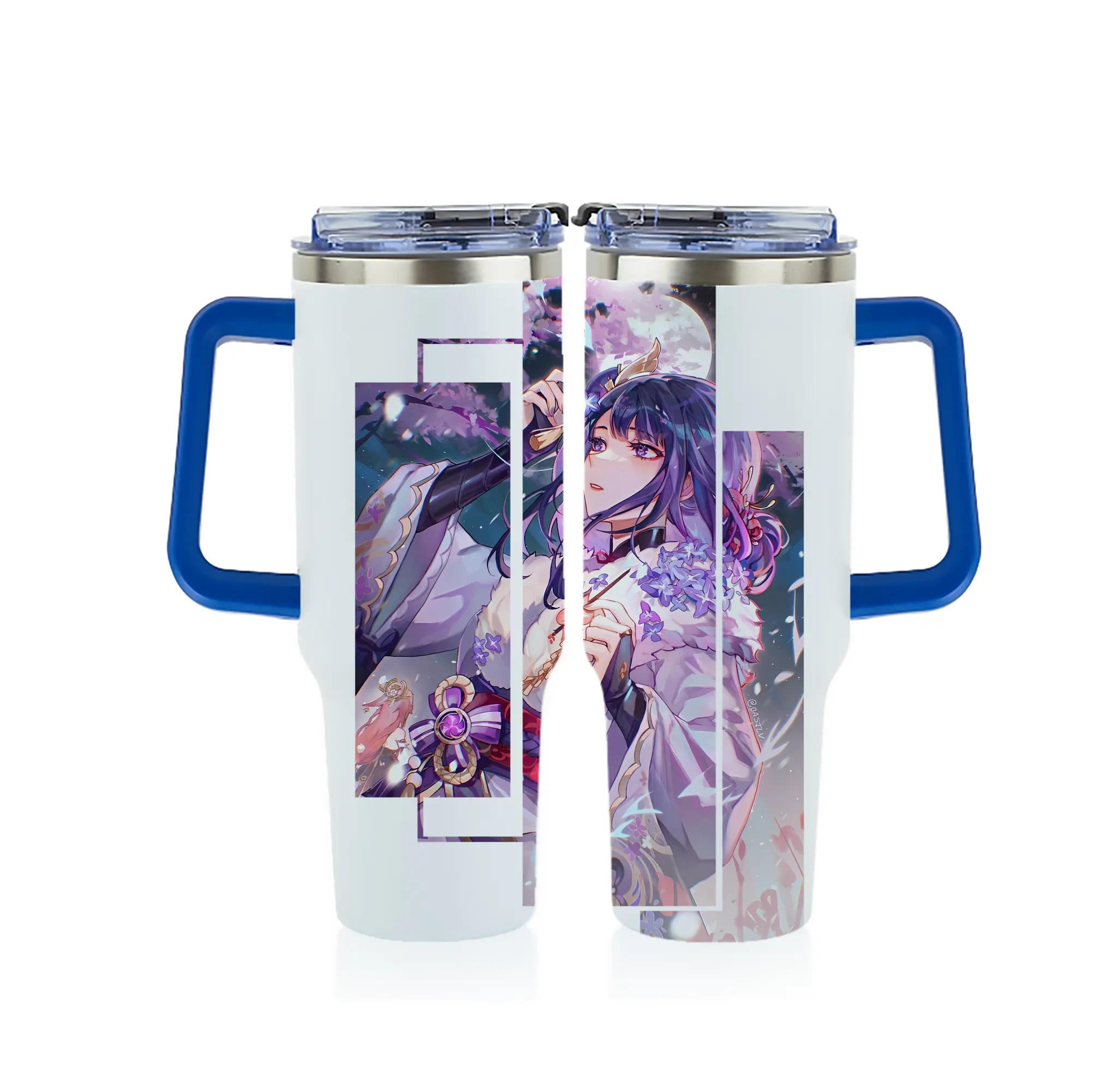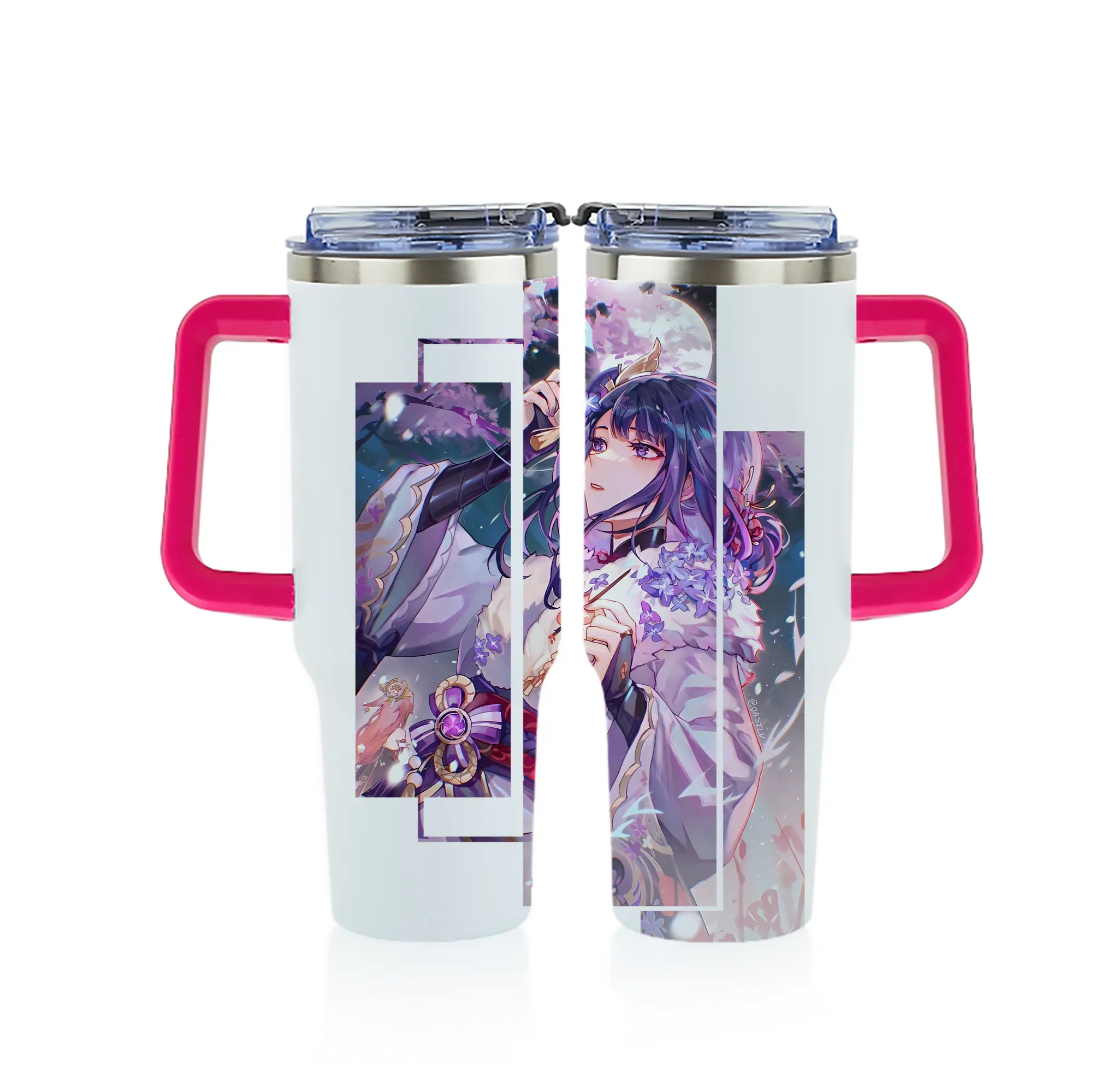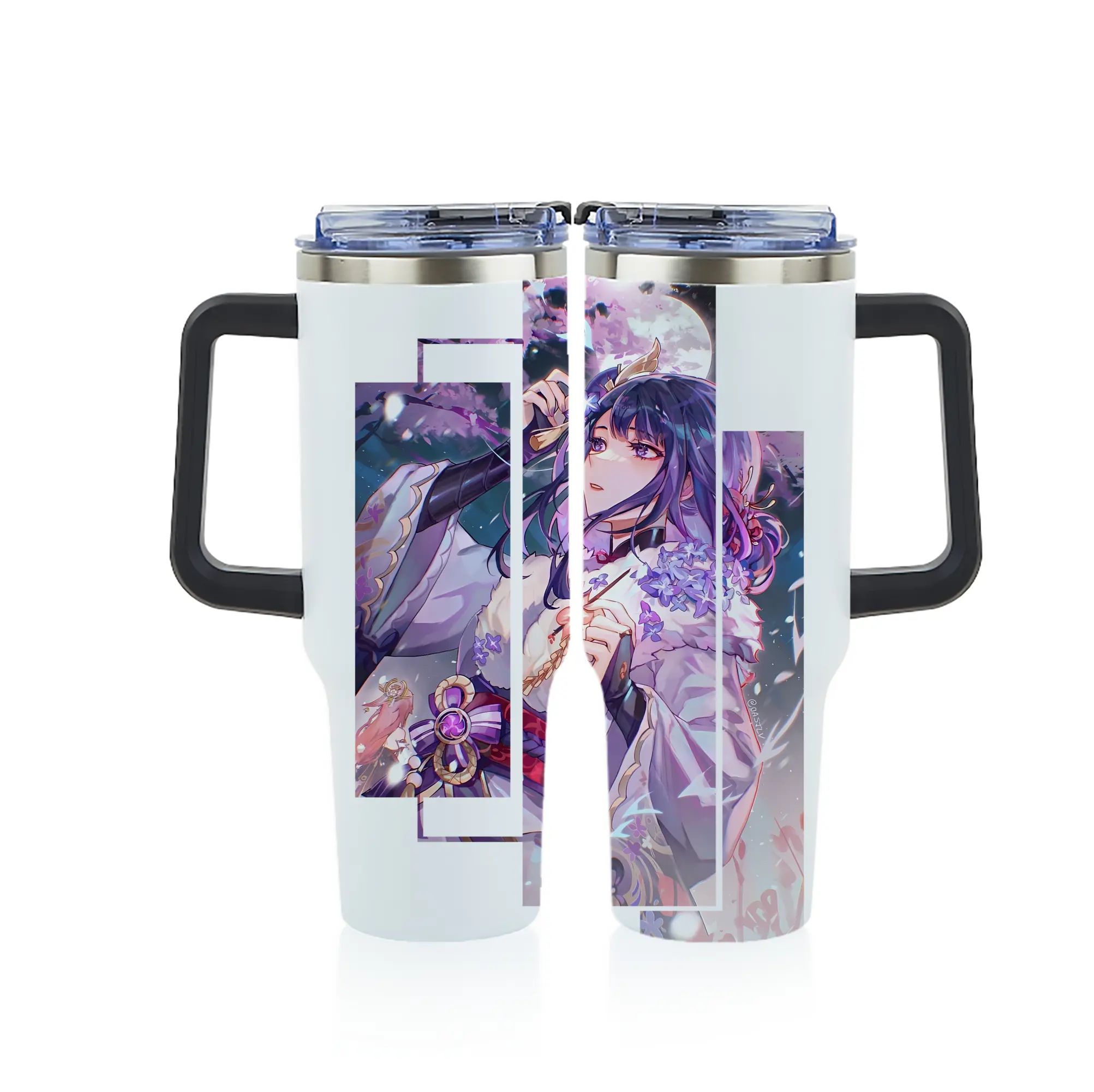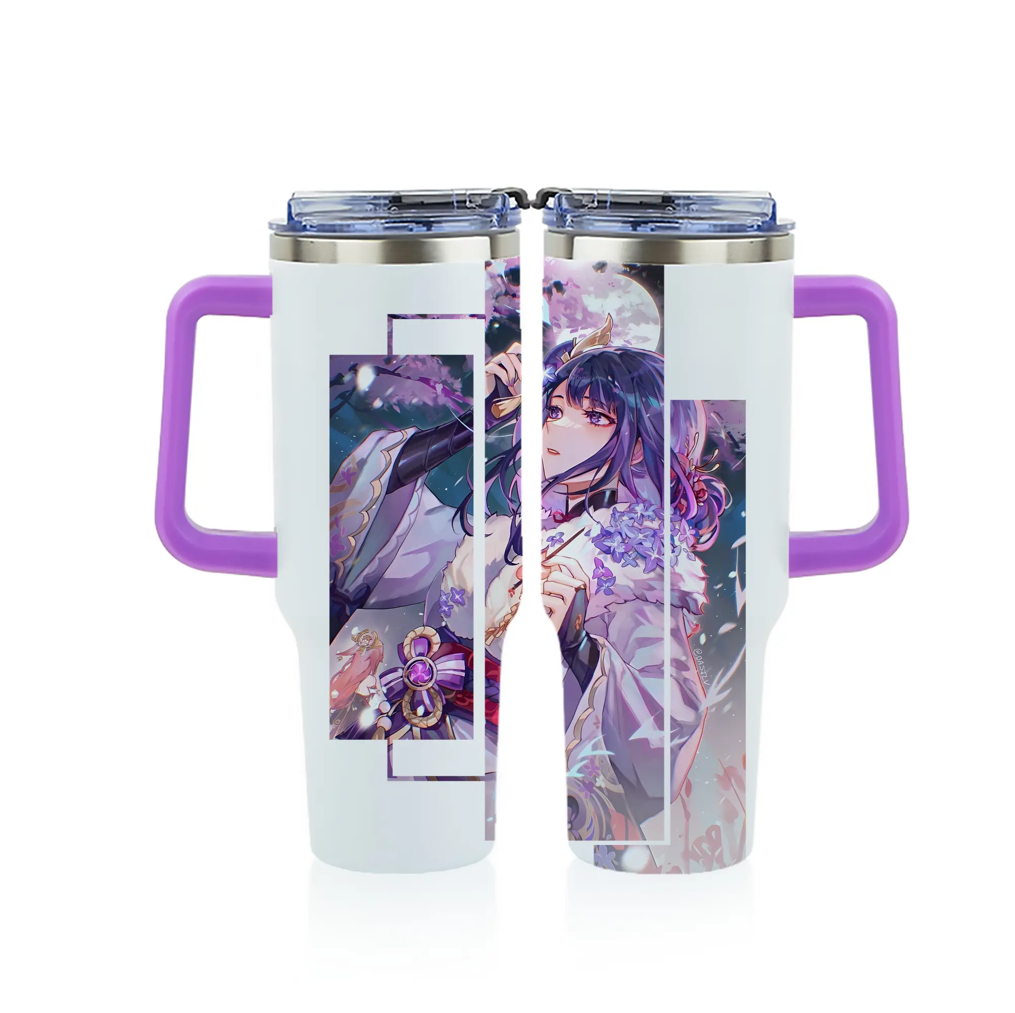 原 神 グッズ 雷電将軍 - 1200mL フルプリント車用タンブラー ・ 304ステンレス 内側 ・ 201ステンレス 外側 ・ 保温 保冷 ・ 通勤 ドライブ アウトドア用