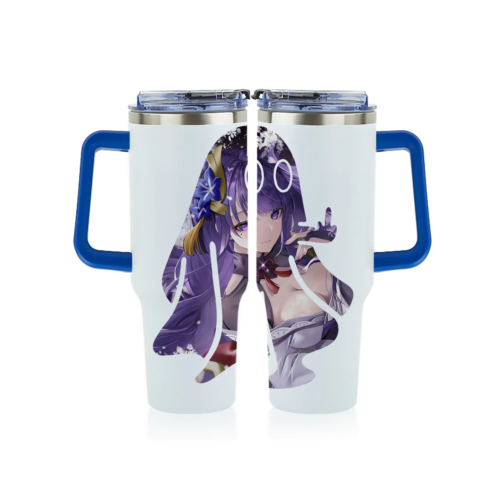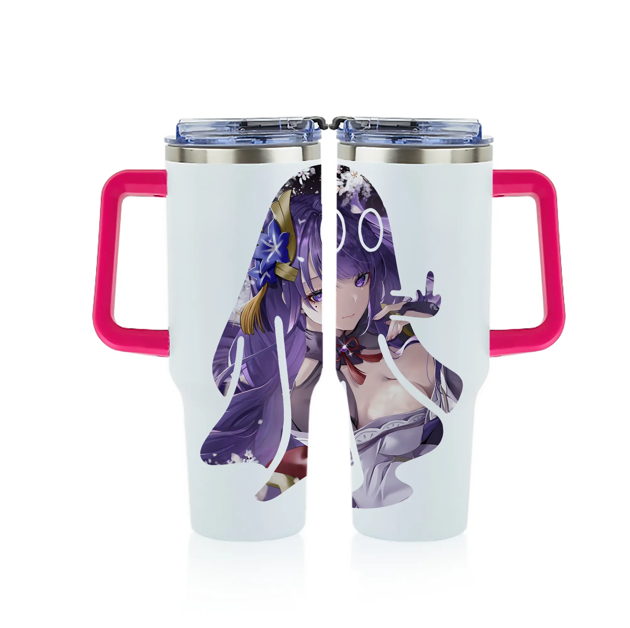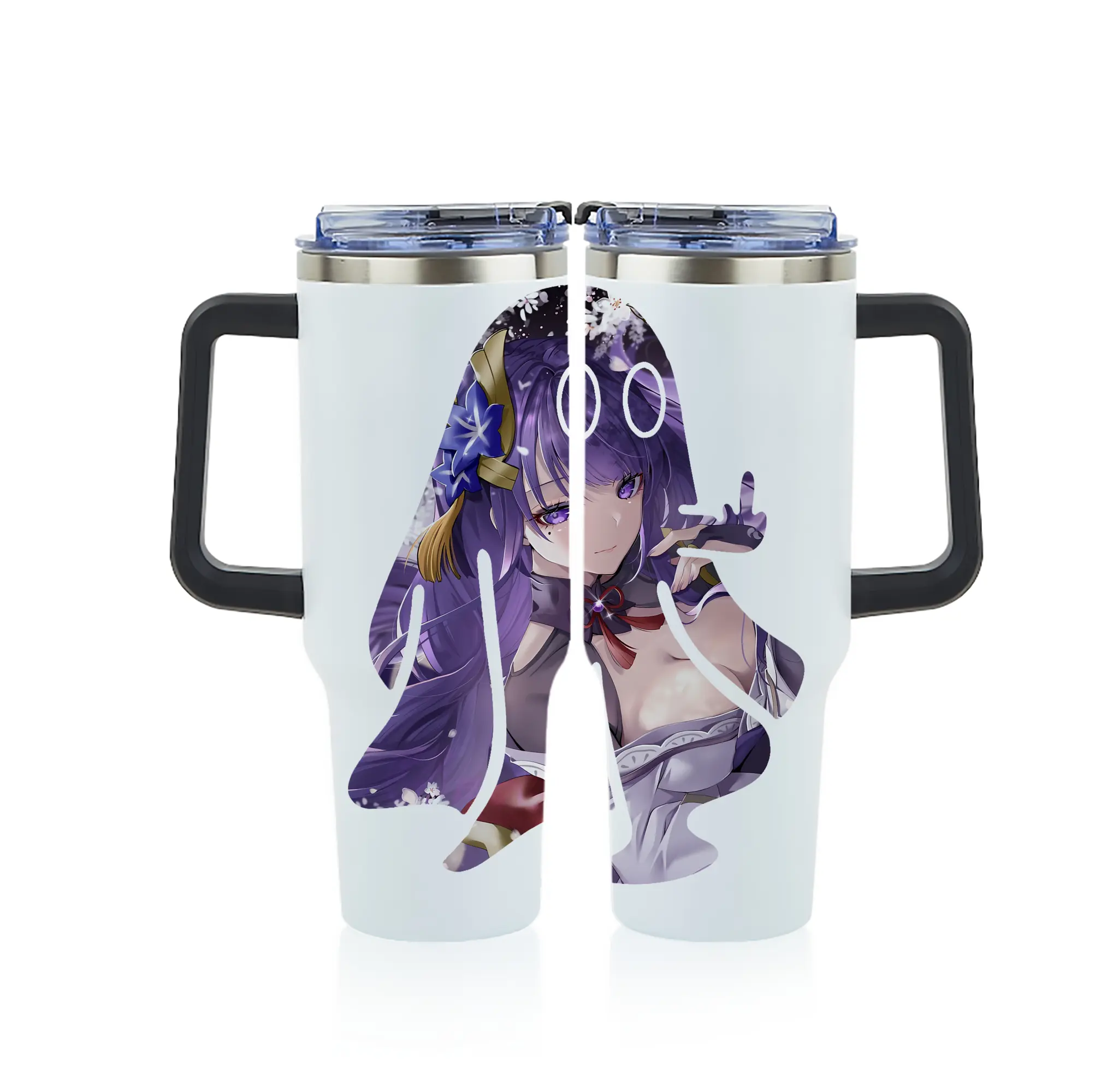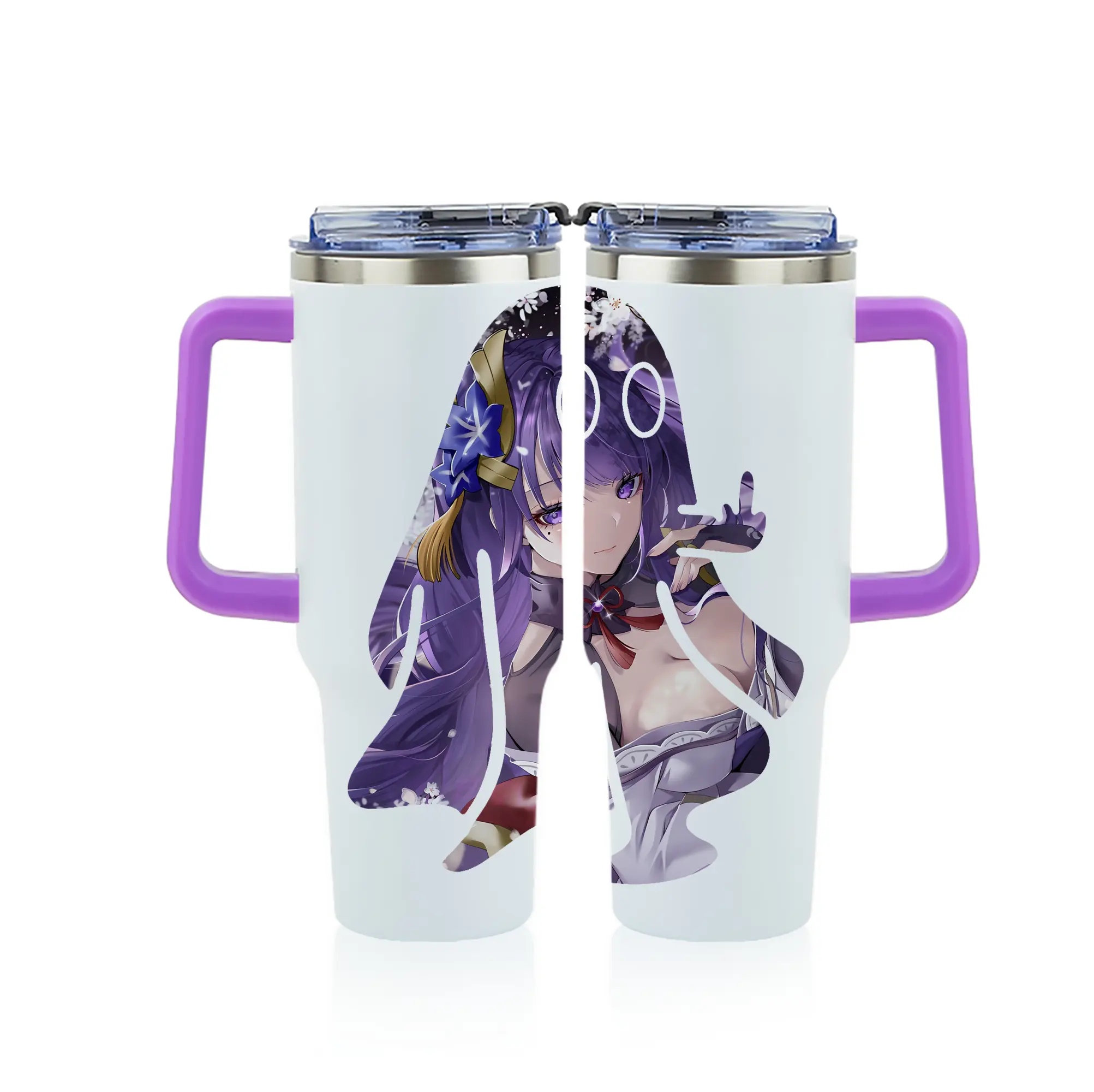 原 神 グッズ 雷電将軍 - 1200mL フルプリント車用タンブラー ・ 304ステンレス 内側 ・ 201ステンレス 外側 ・ 保温 保冷 ・ 通勤 ドライブ アウトドア用