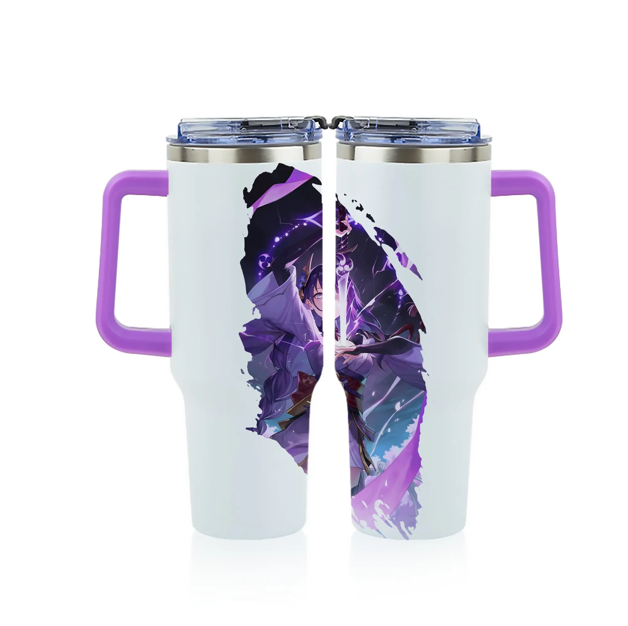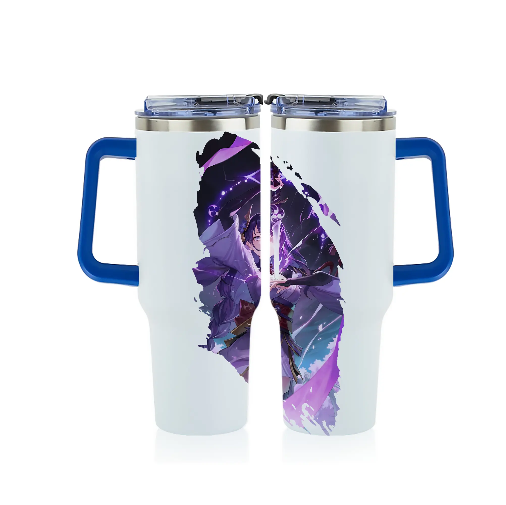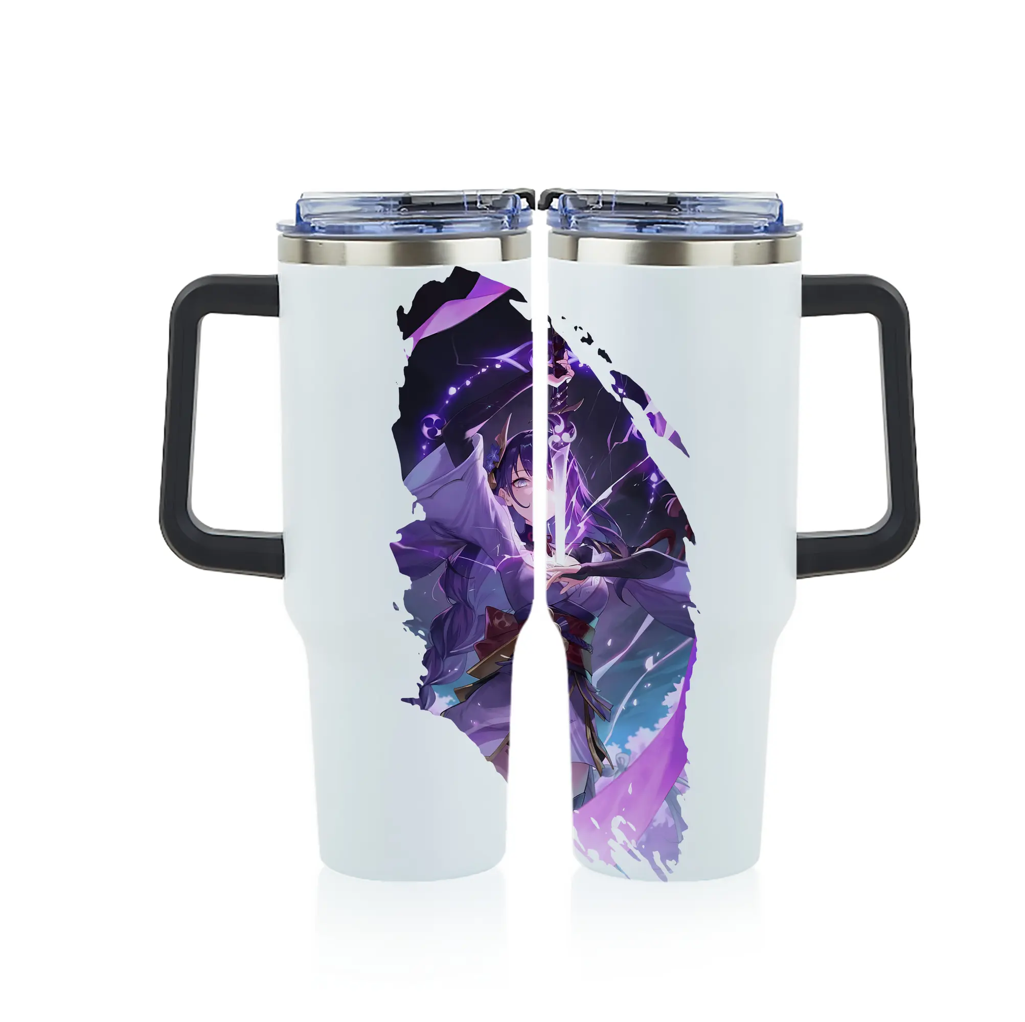 原 神 グッズ 雷電将軍 - 1200mL フルプリント車用タンブラー ・ 304ステンレス 内側 ・ 201ステンレス 外側 ・ 保温 保冷 ・ 通勤 ドライブ アウトドア用