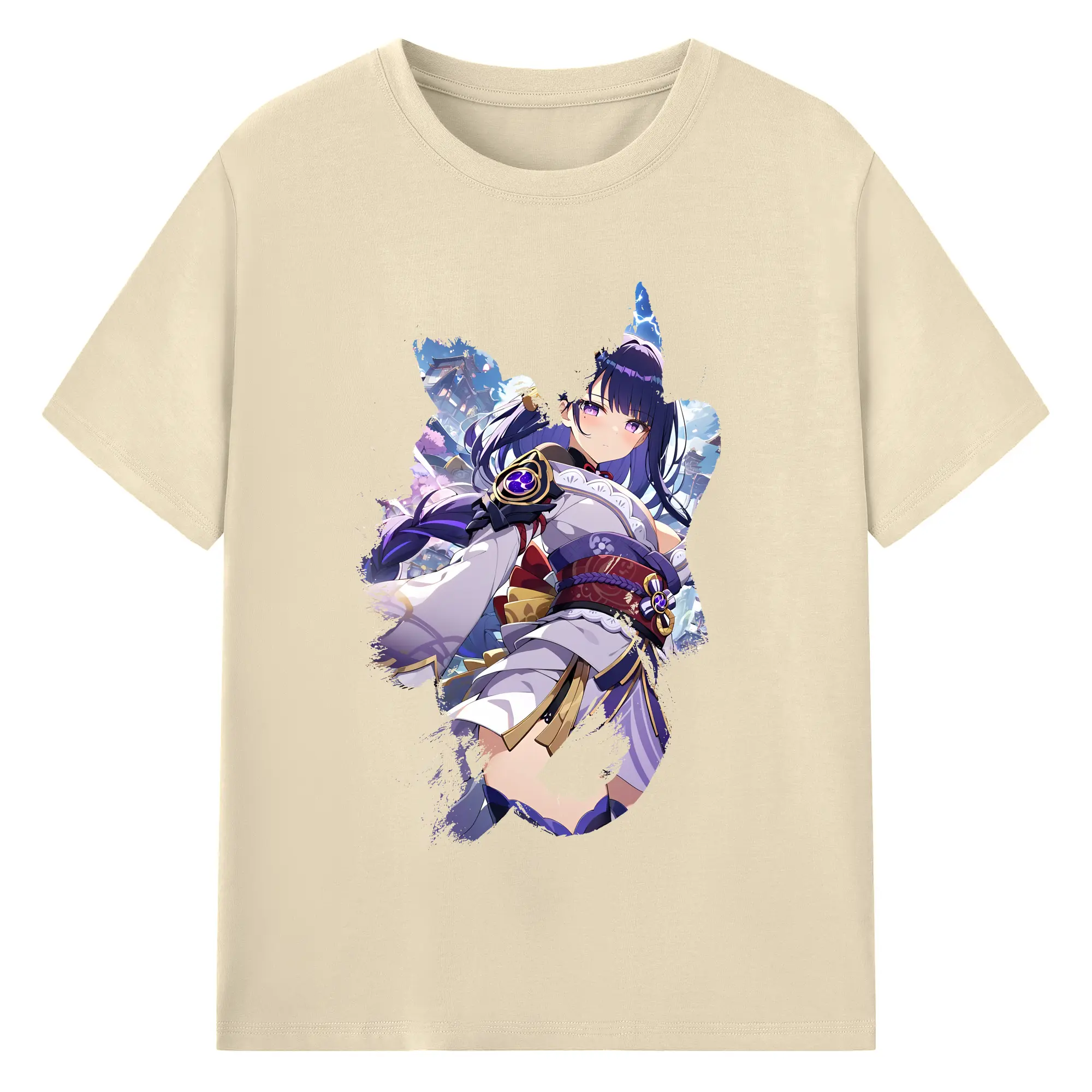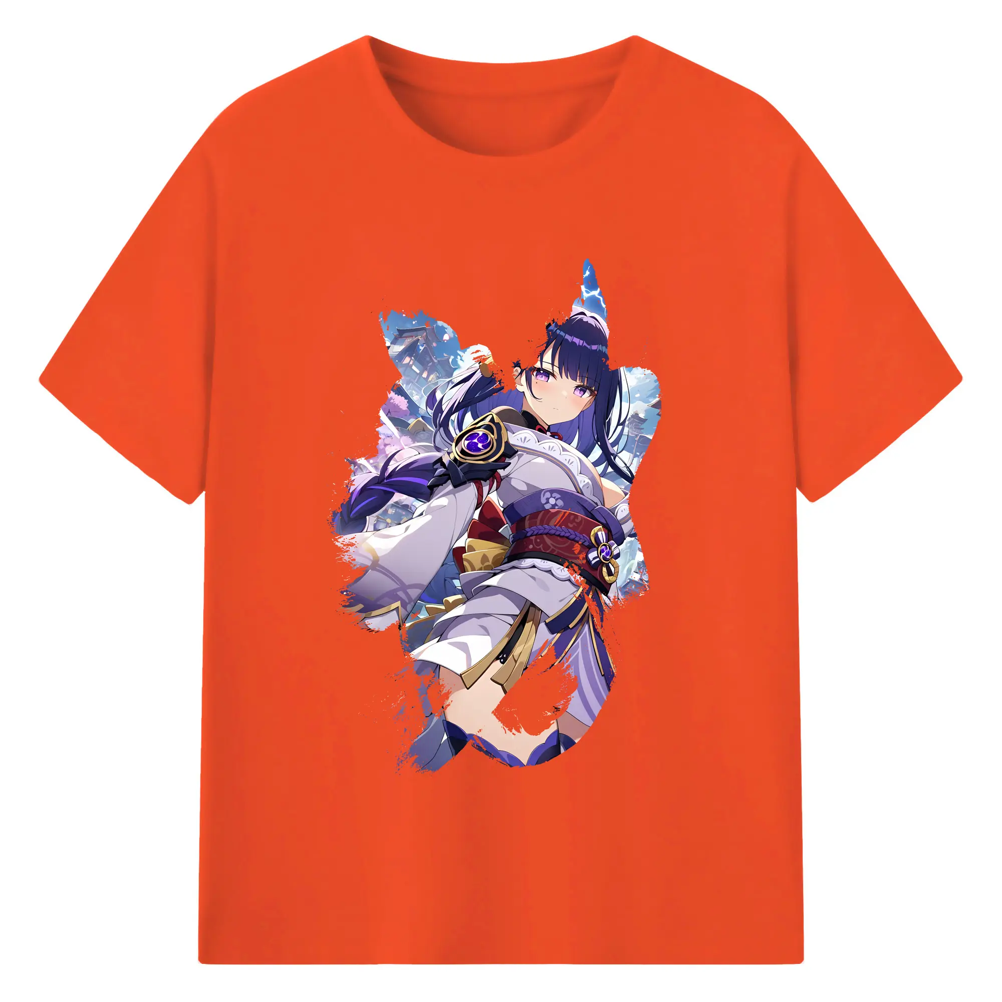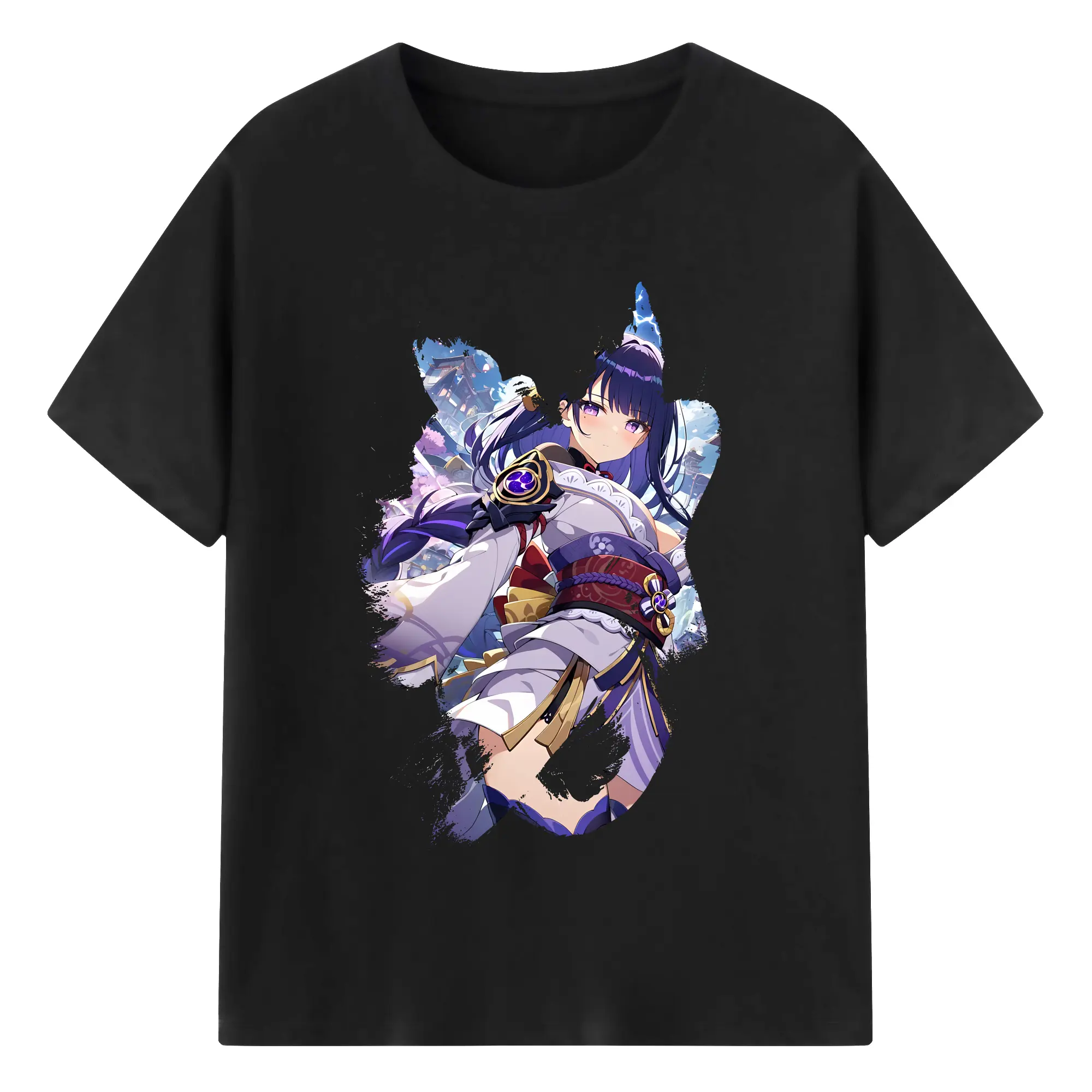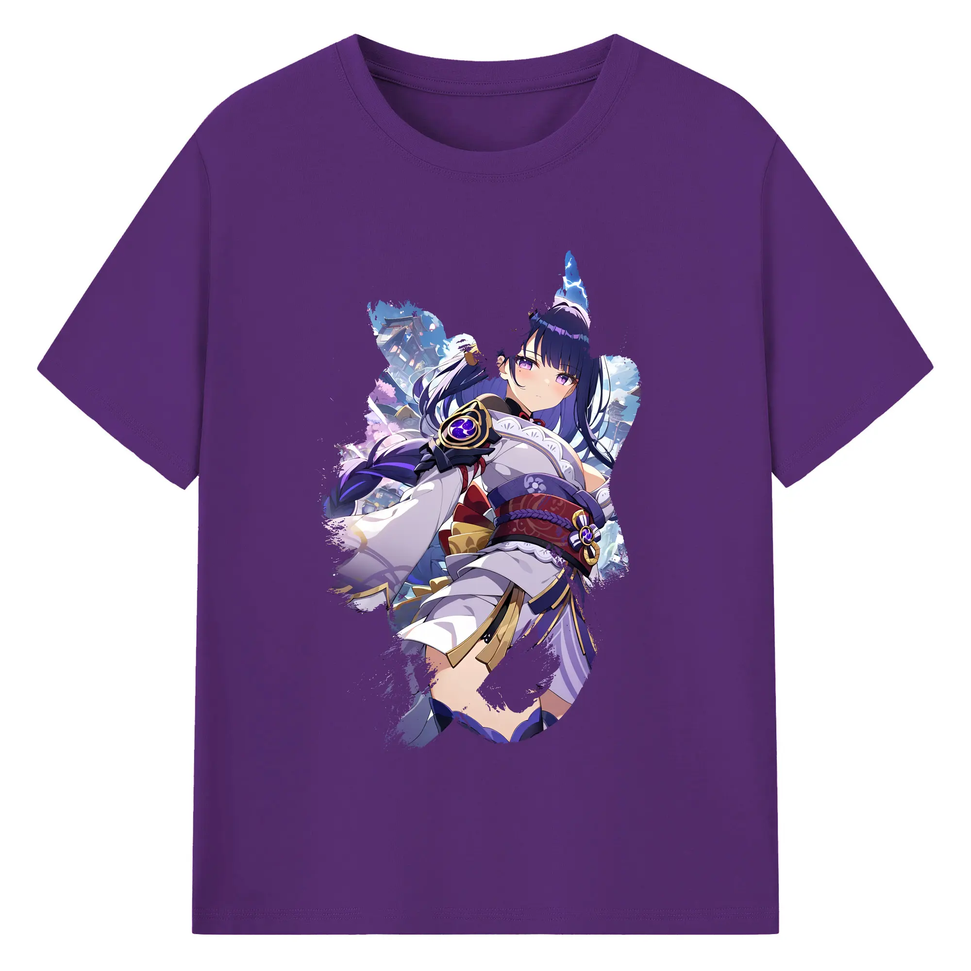原 神 グッズ 雷電将軍 - 綿100% 半袖Tシャツ ・ バックプリント ・ 快適 通気性 ・ 日常使い 散歩 スポーツ用