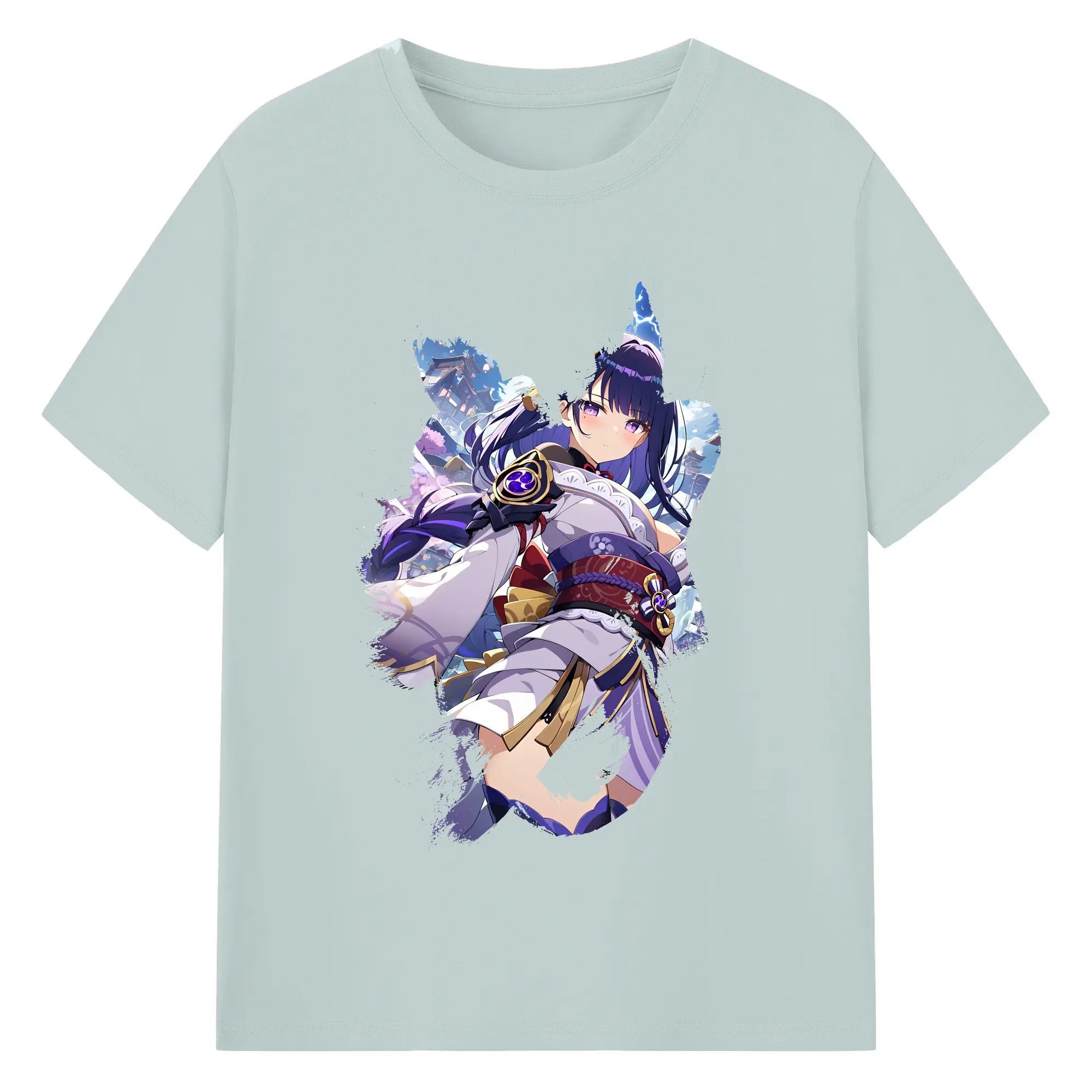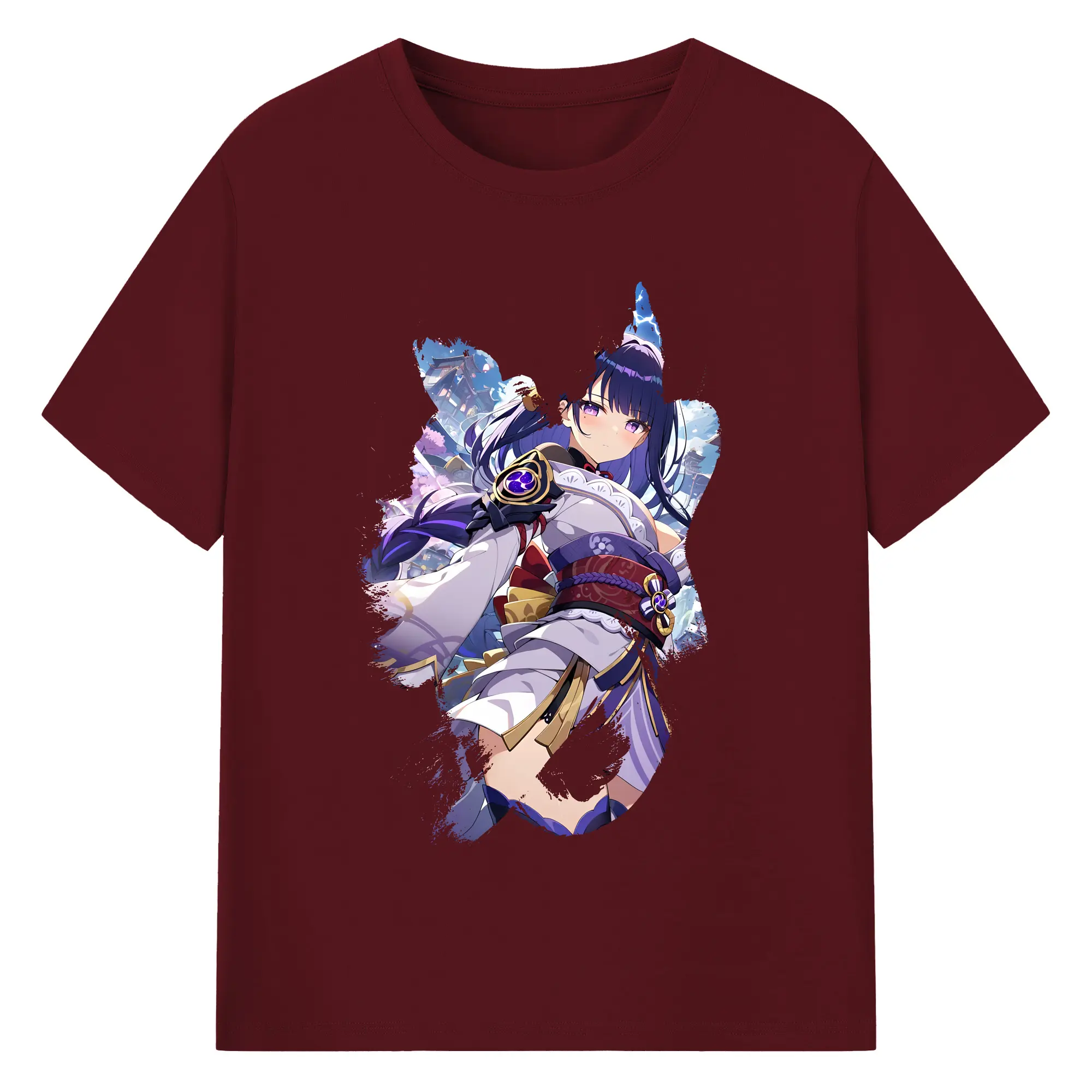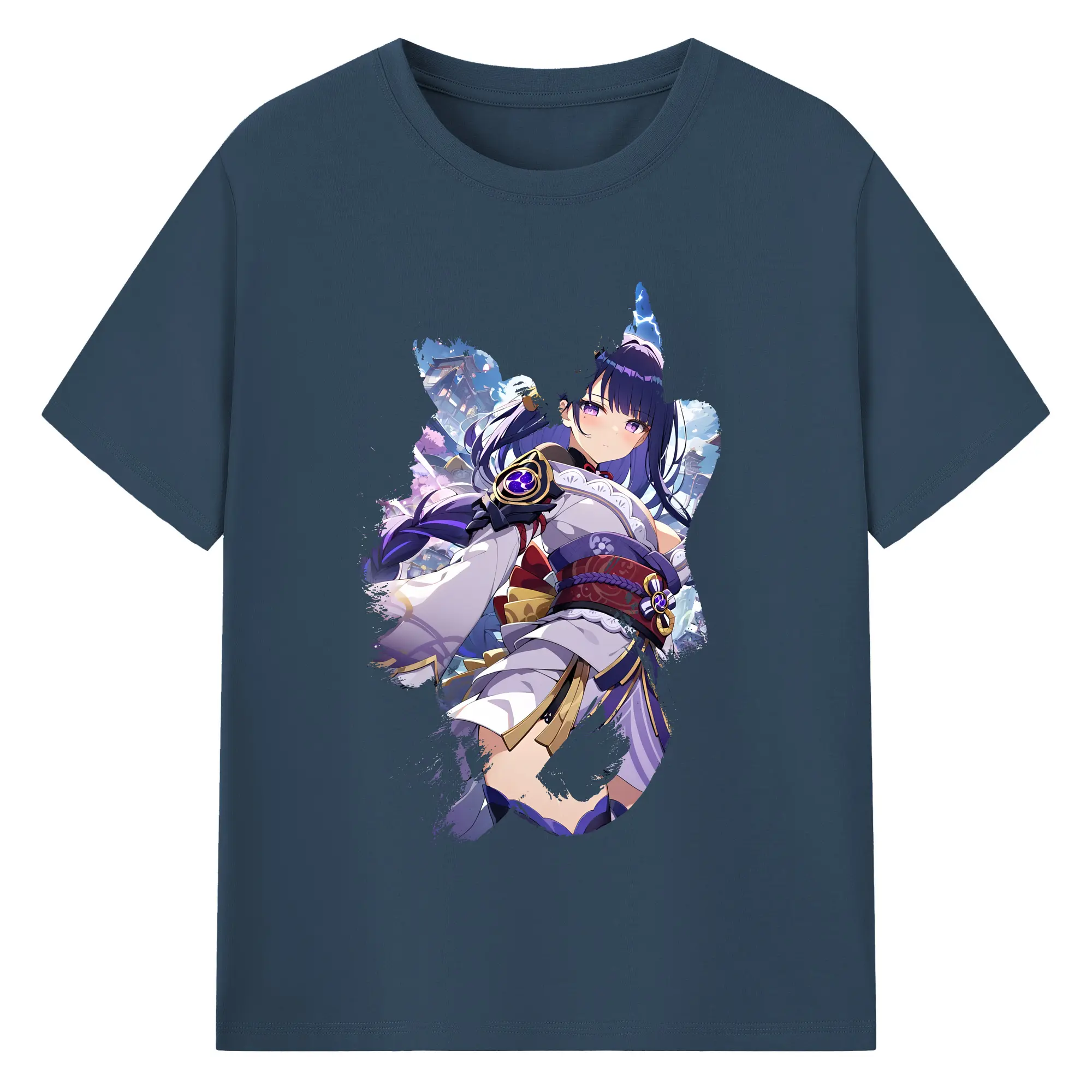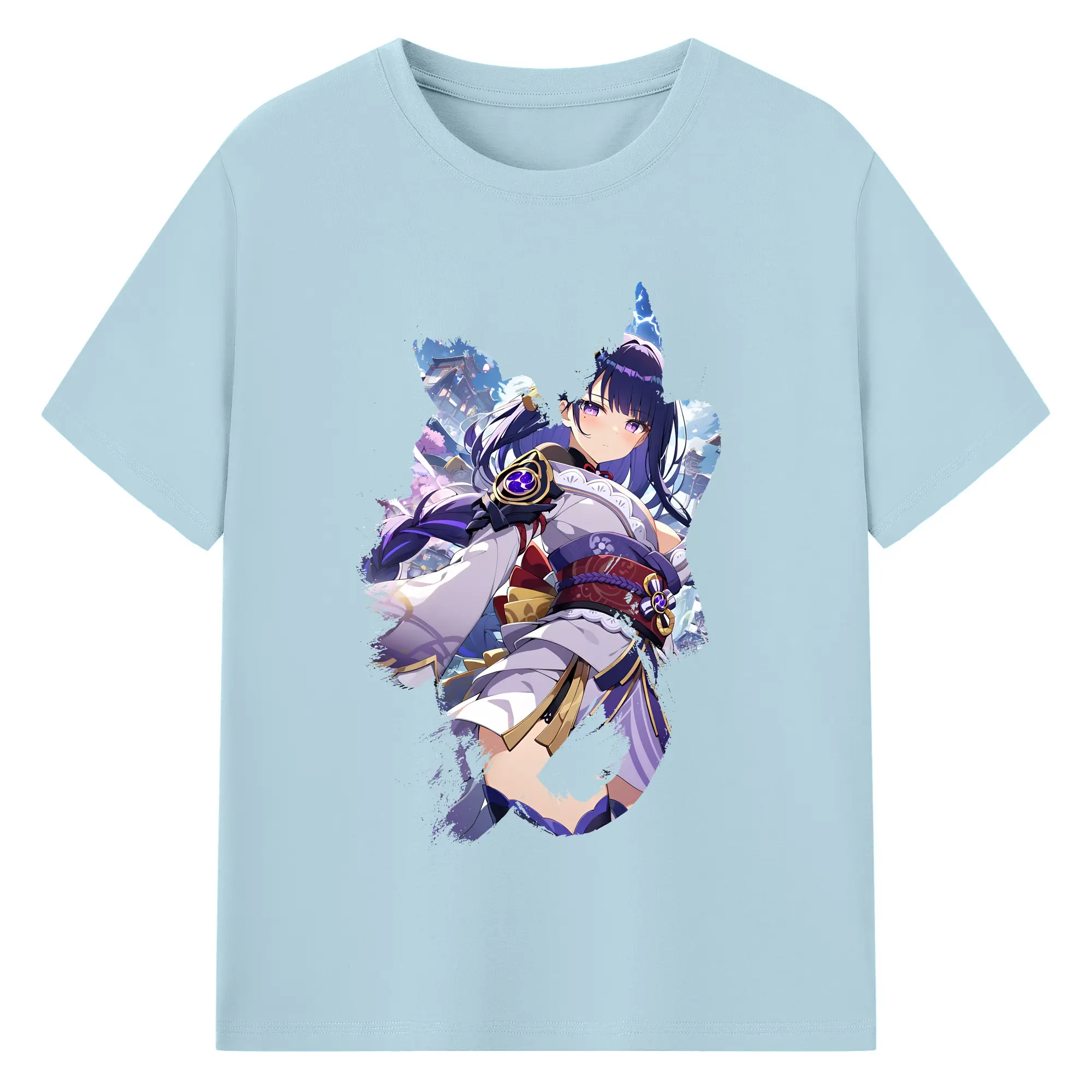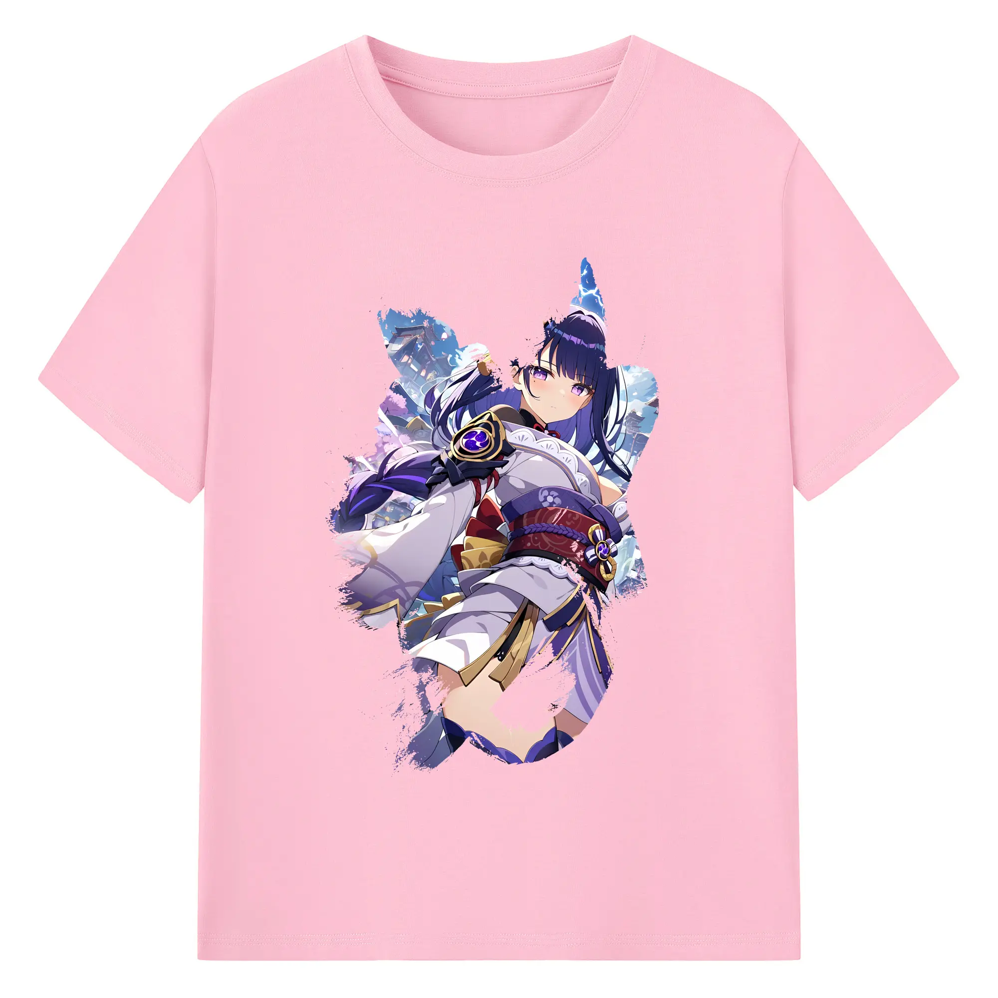 原 神 グッズ 雷電将軍 - 綿100% 半袖Tシャツ ・ バックプリント ・ 快適 通気性 ・ 日常使い 散歩 スポーツ用