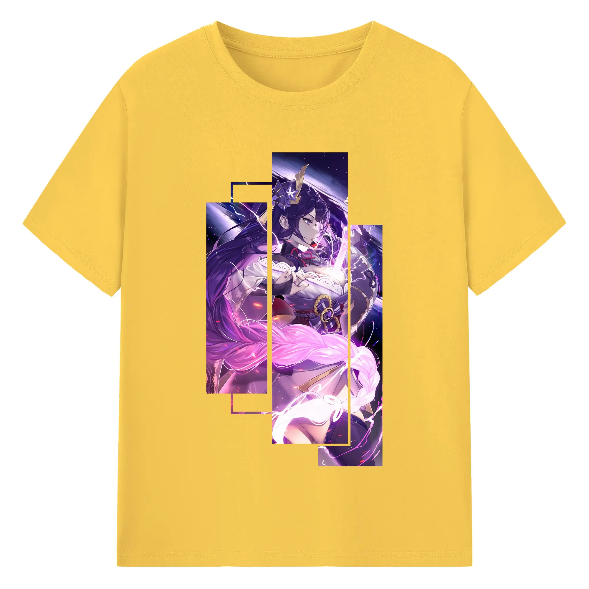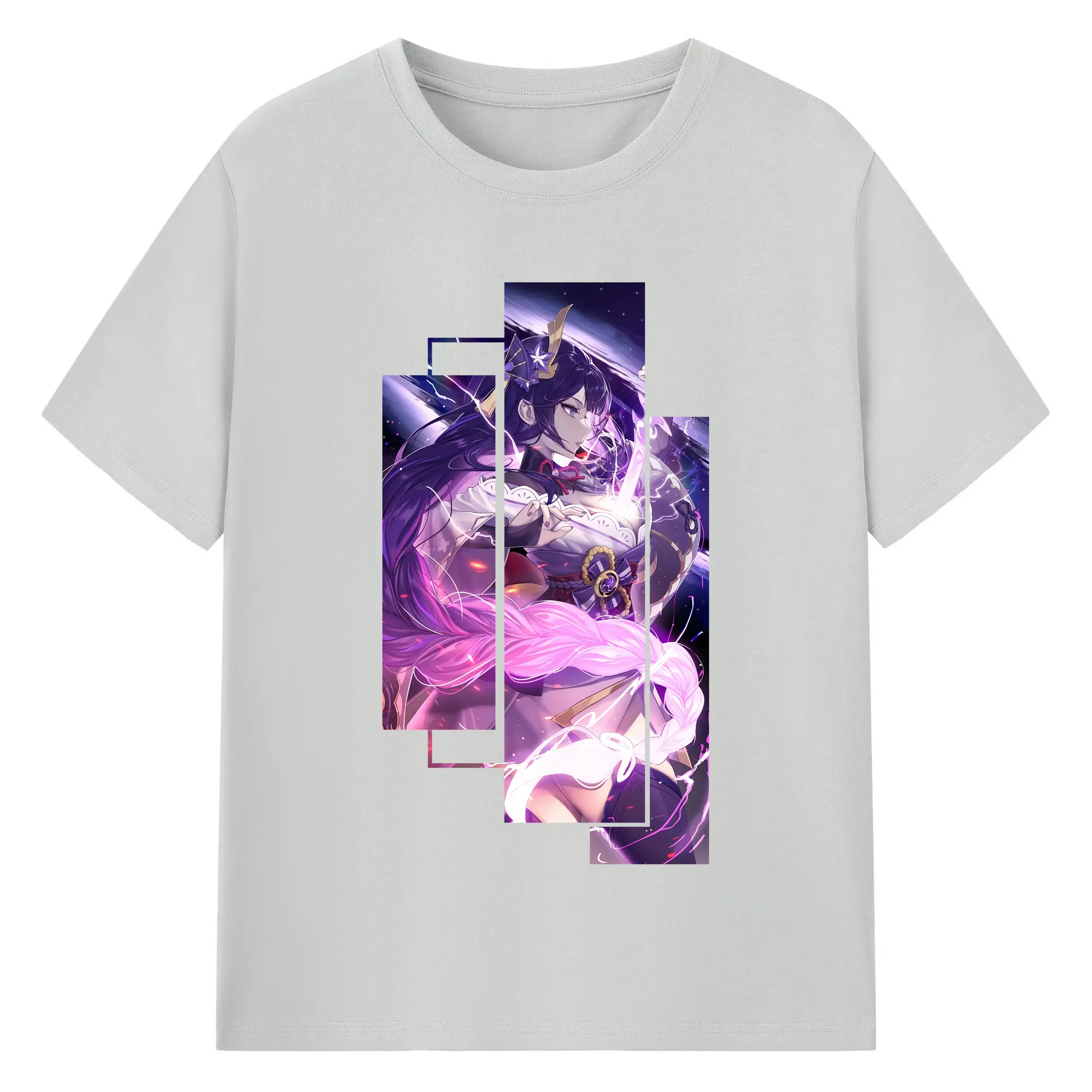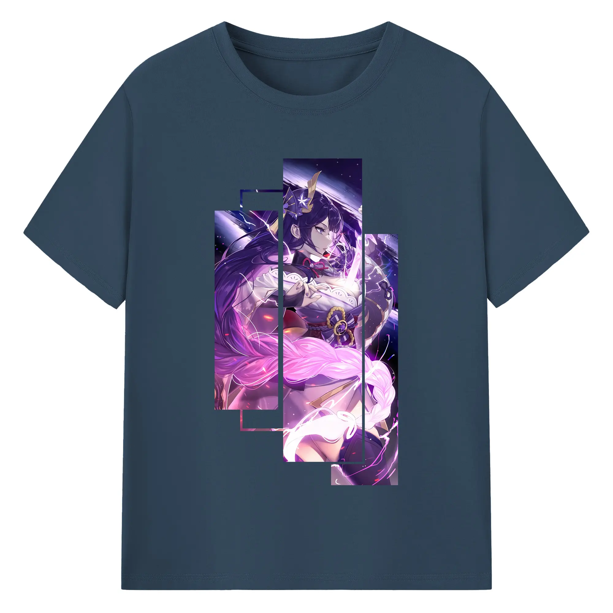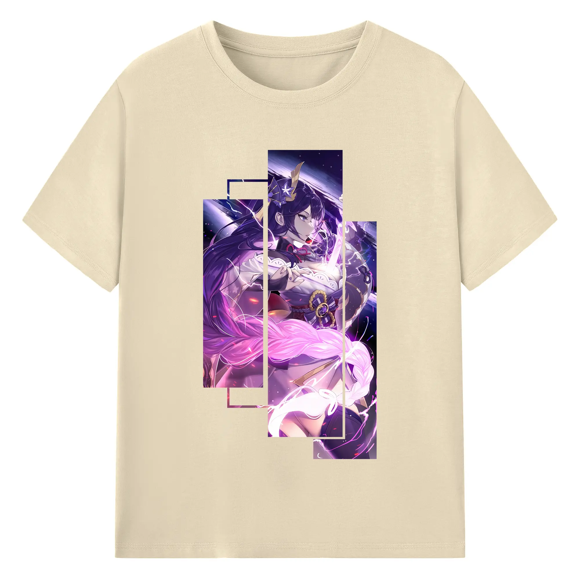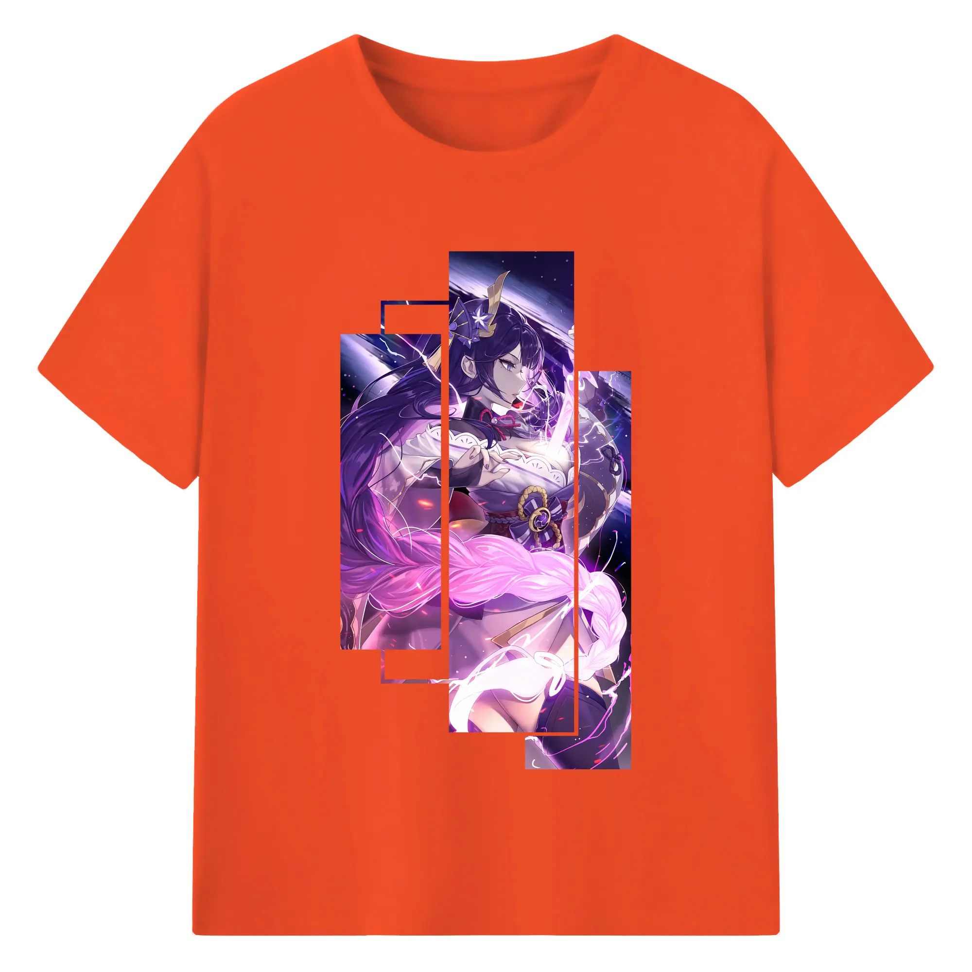 原 神 グッズ 雷電将軍 - 綿100% ヴィンテージ風 半袖Tシャツ ・ フロントプリント ・ 柔らか肌触り ・ 通気性 快適 ・ スポーツ カジュアル 外出用