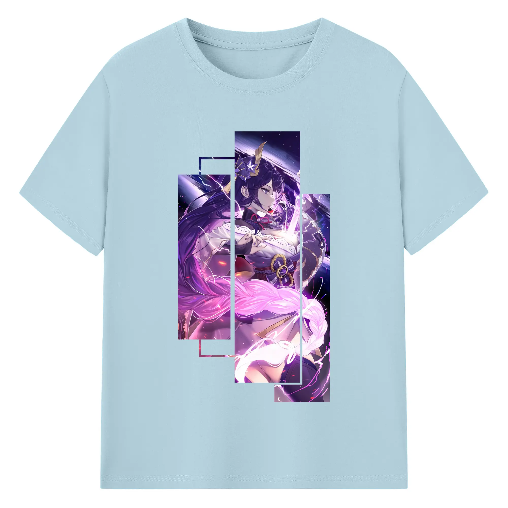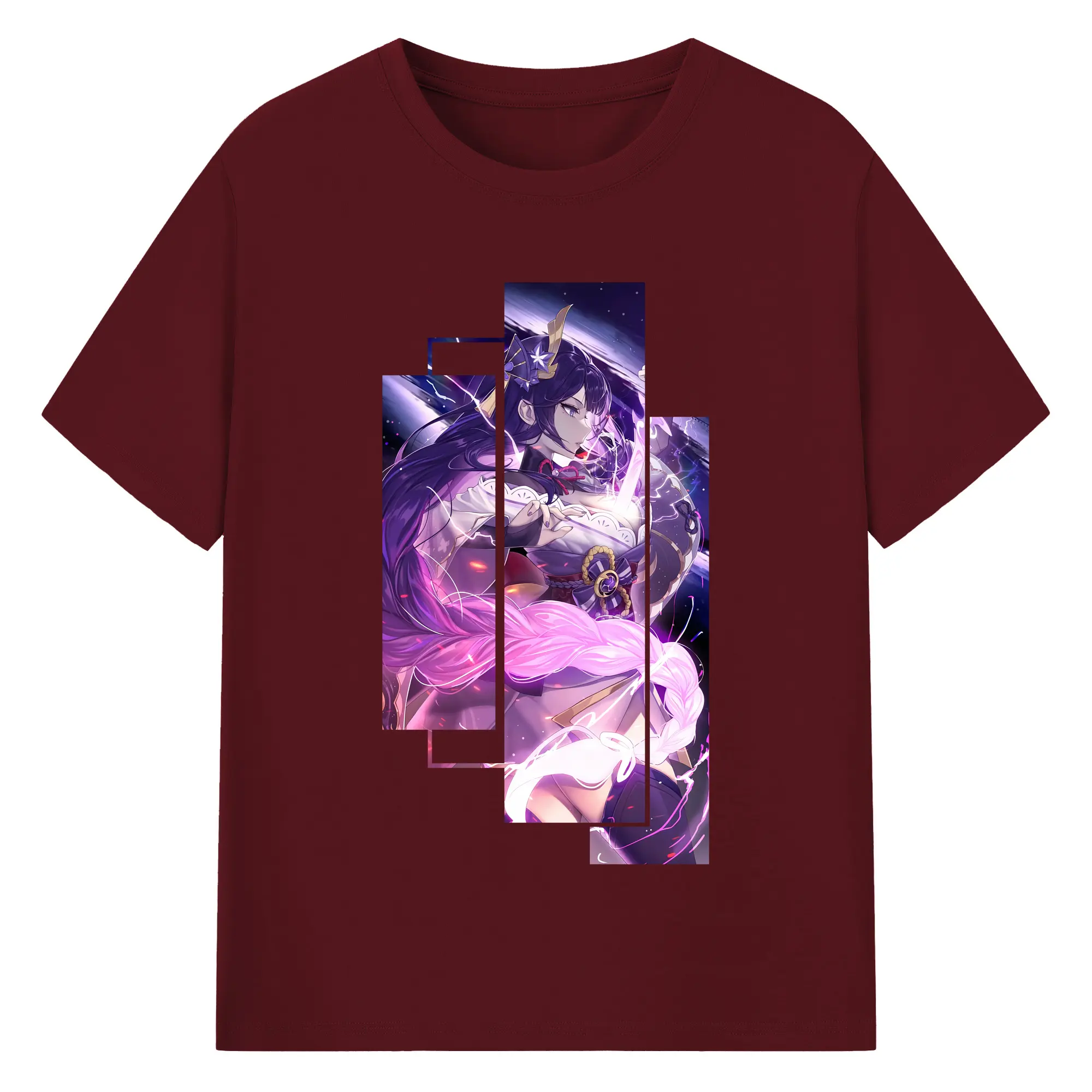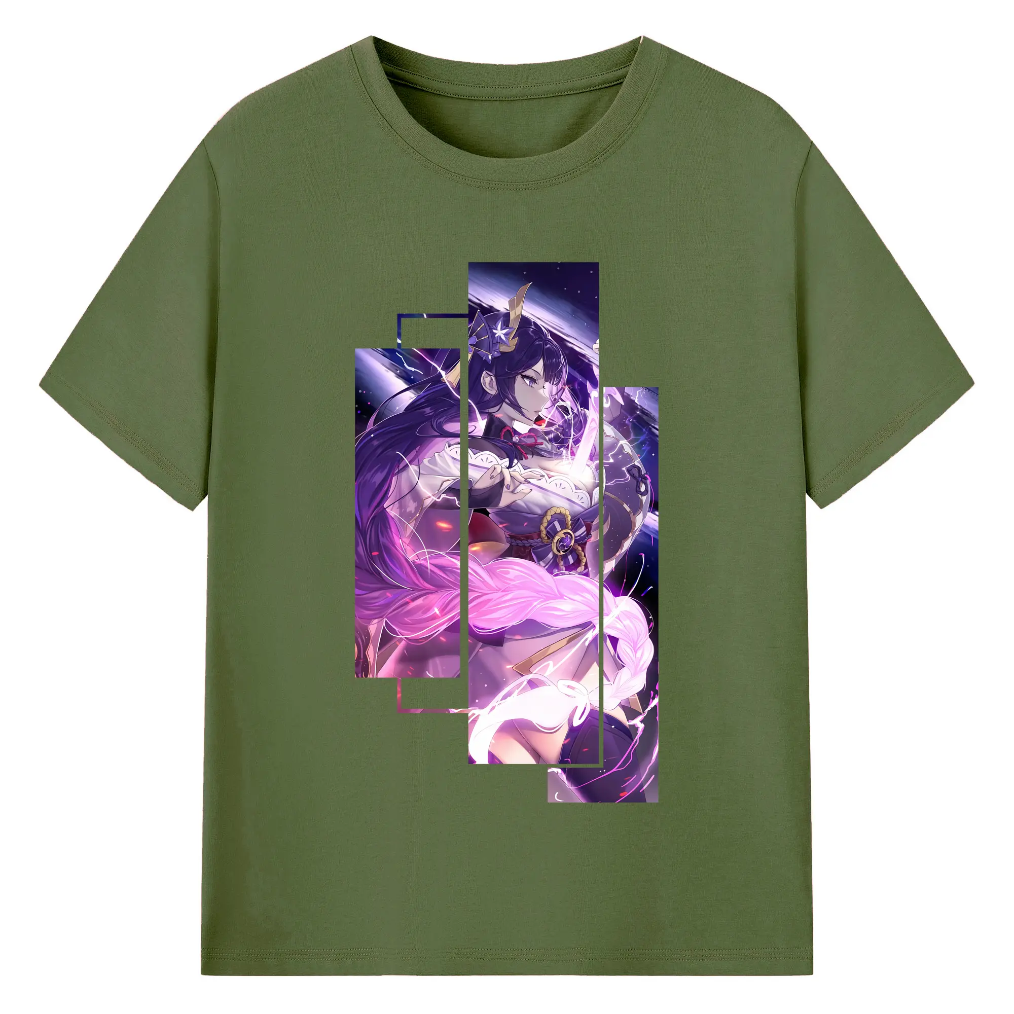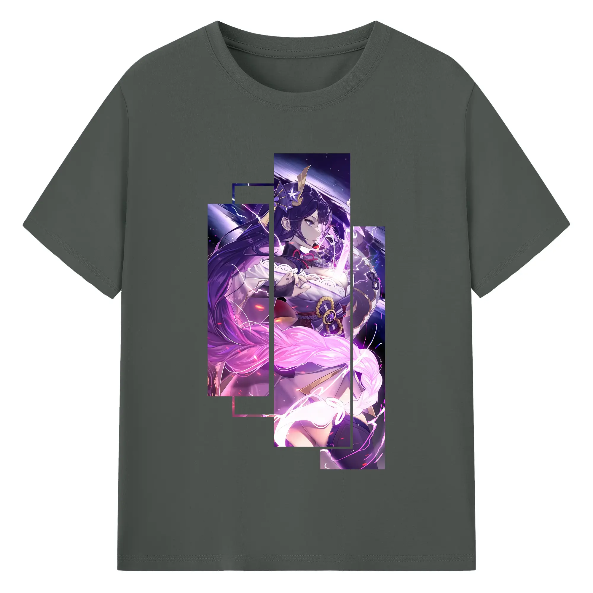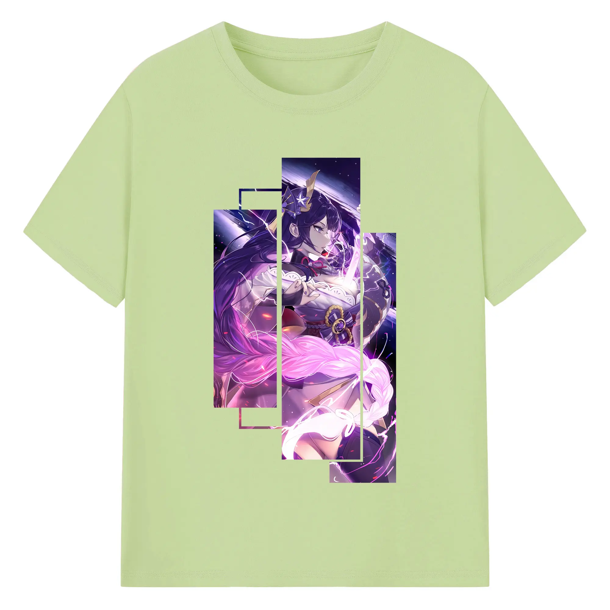 原 神 グッズ 雷電将軍 - 綿100% ヴィンテージ風 半袖Tシャツ ・ フロントプリント ・ 柔らか肌触り ・ 通気性 快適 ・ スポーツ カジュアル 外出用