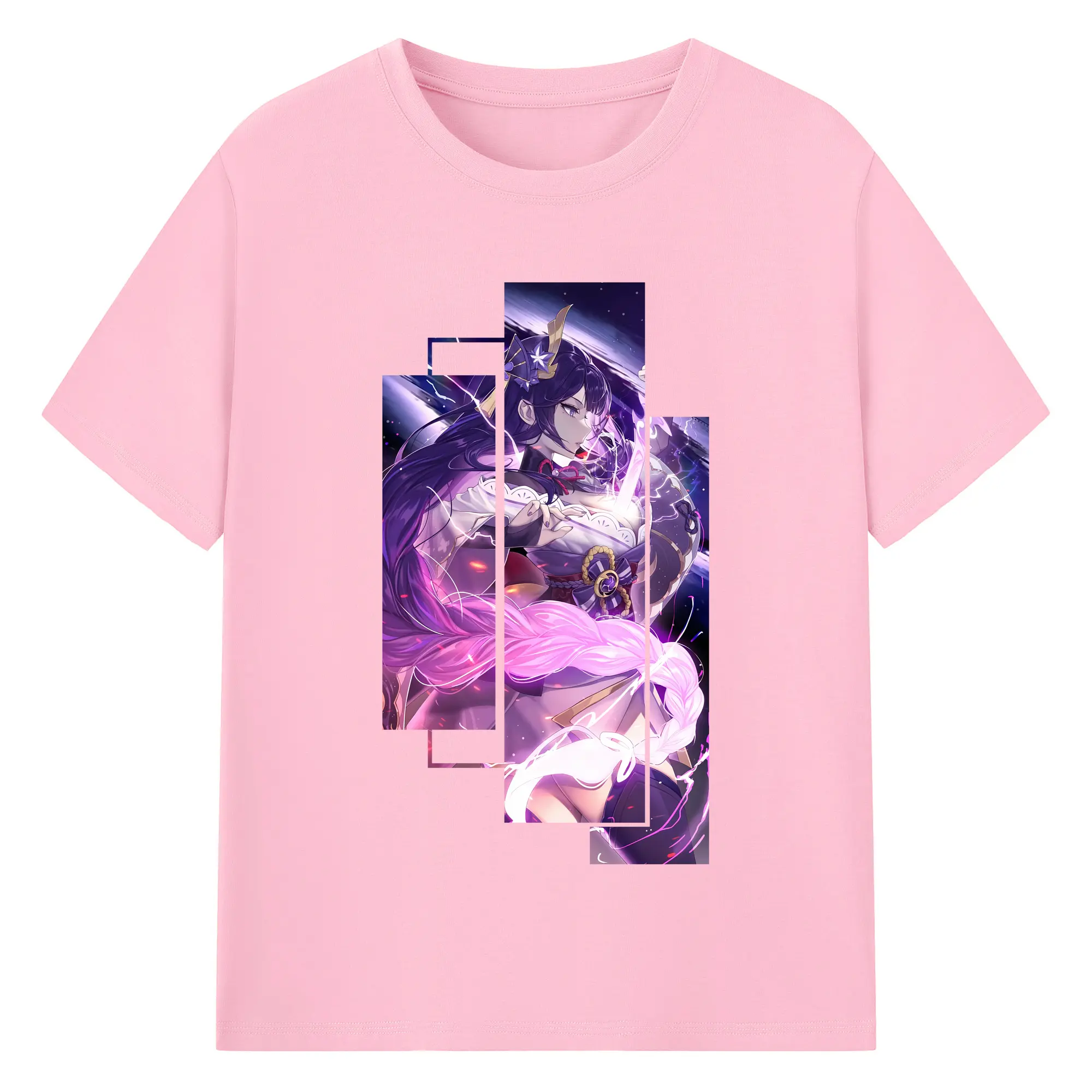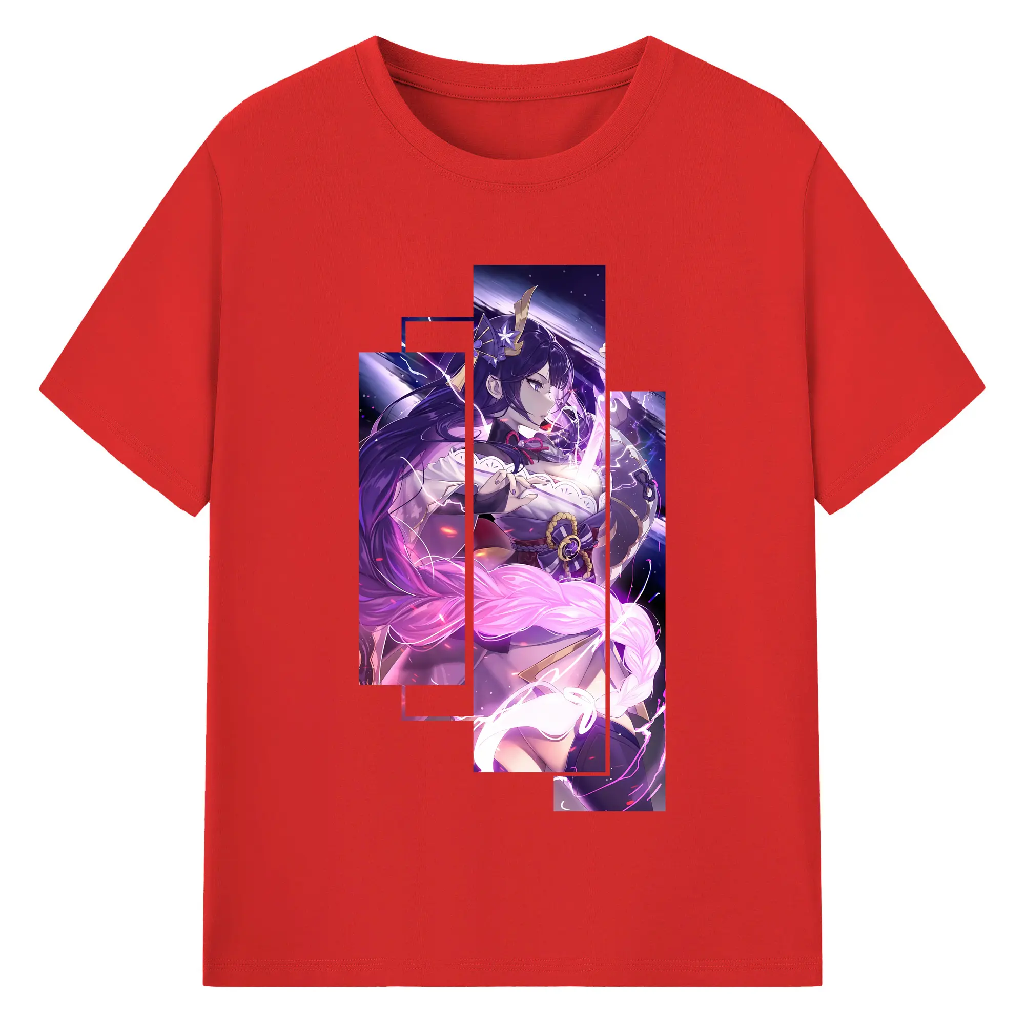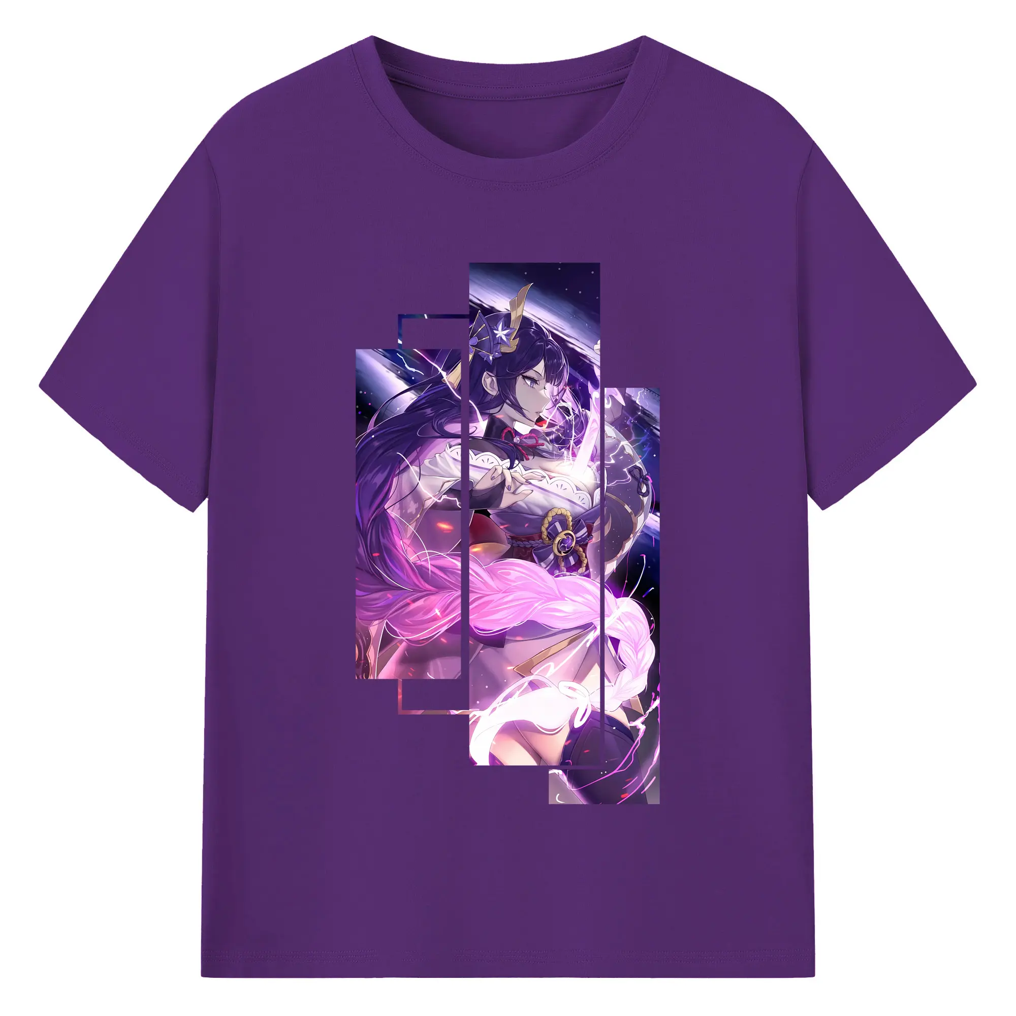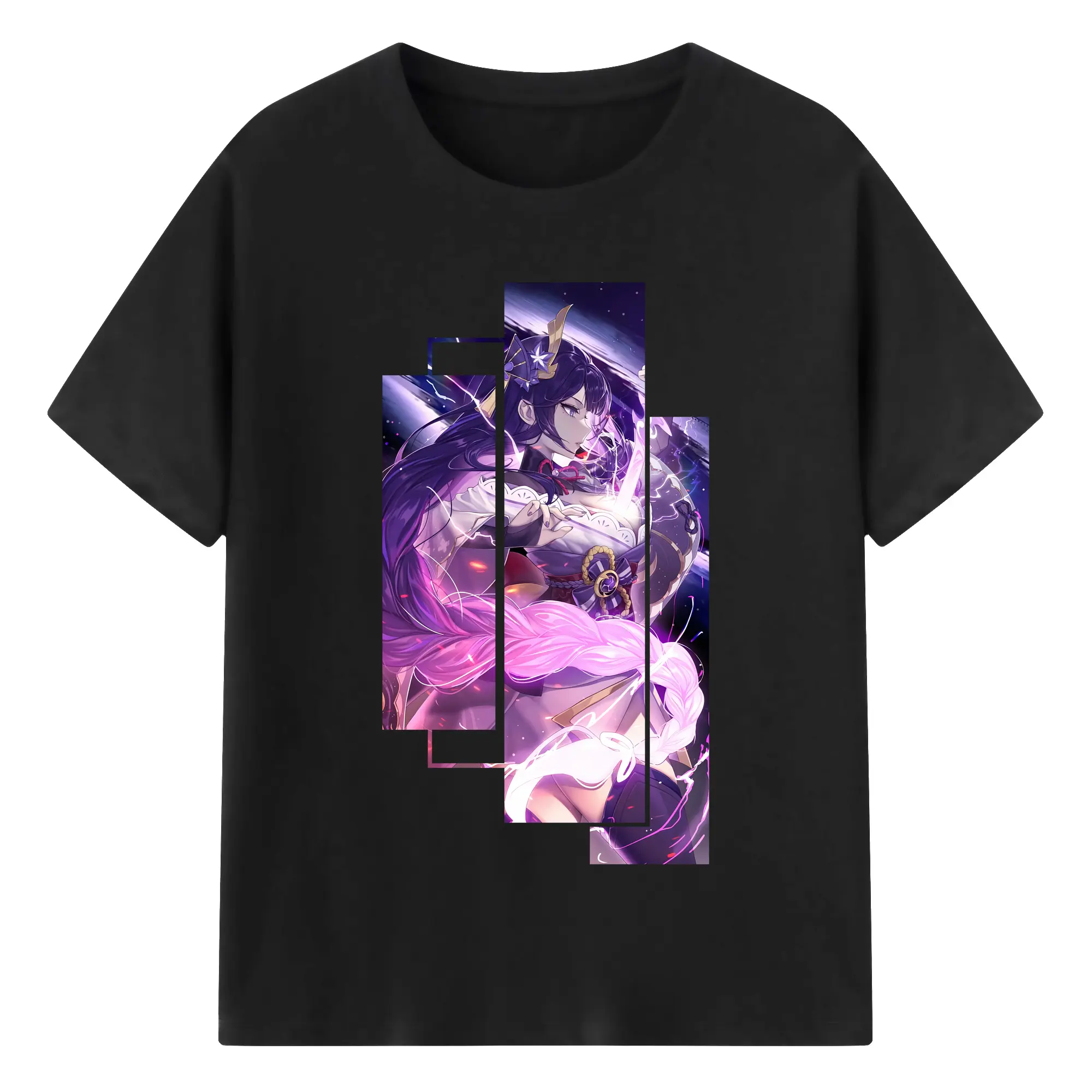 原 神 グッズ 雷電将軍 - 綿100% 半袖Tシャツ ・ バックプリント ・ 快適 通気性 ・ 日常使い 散歩 スポーツ用