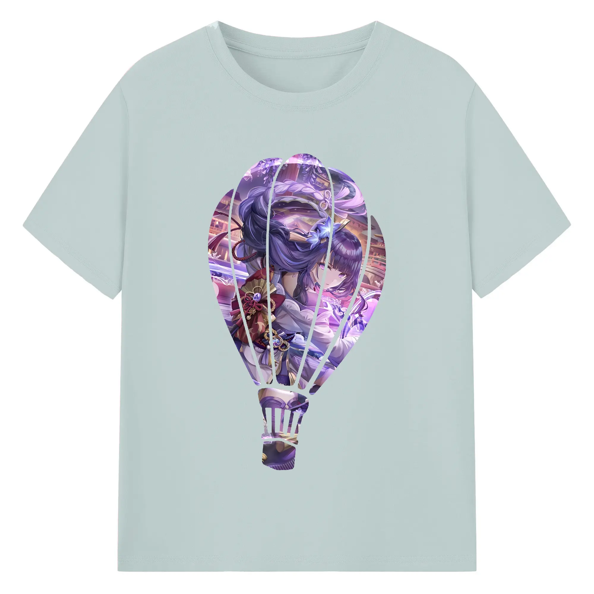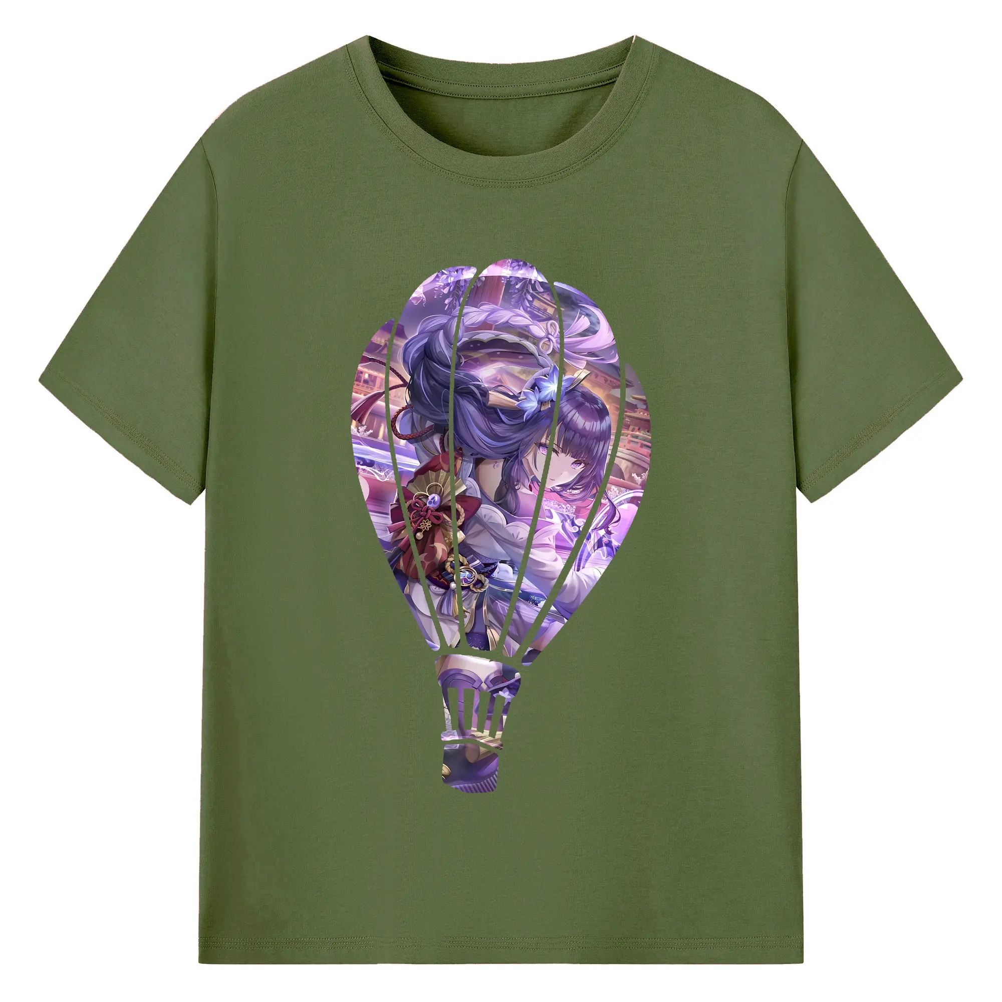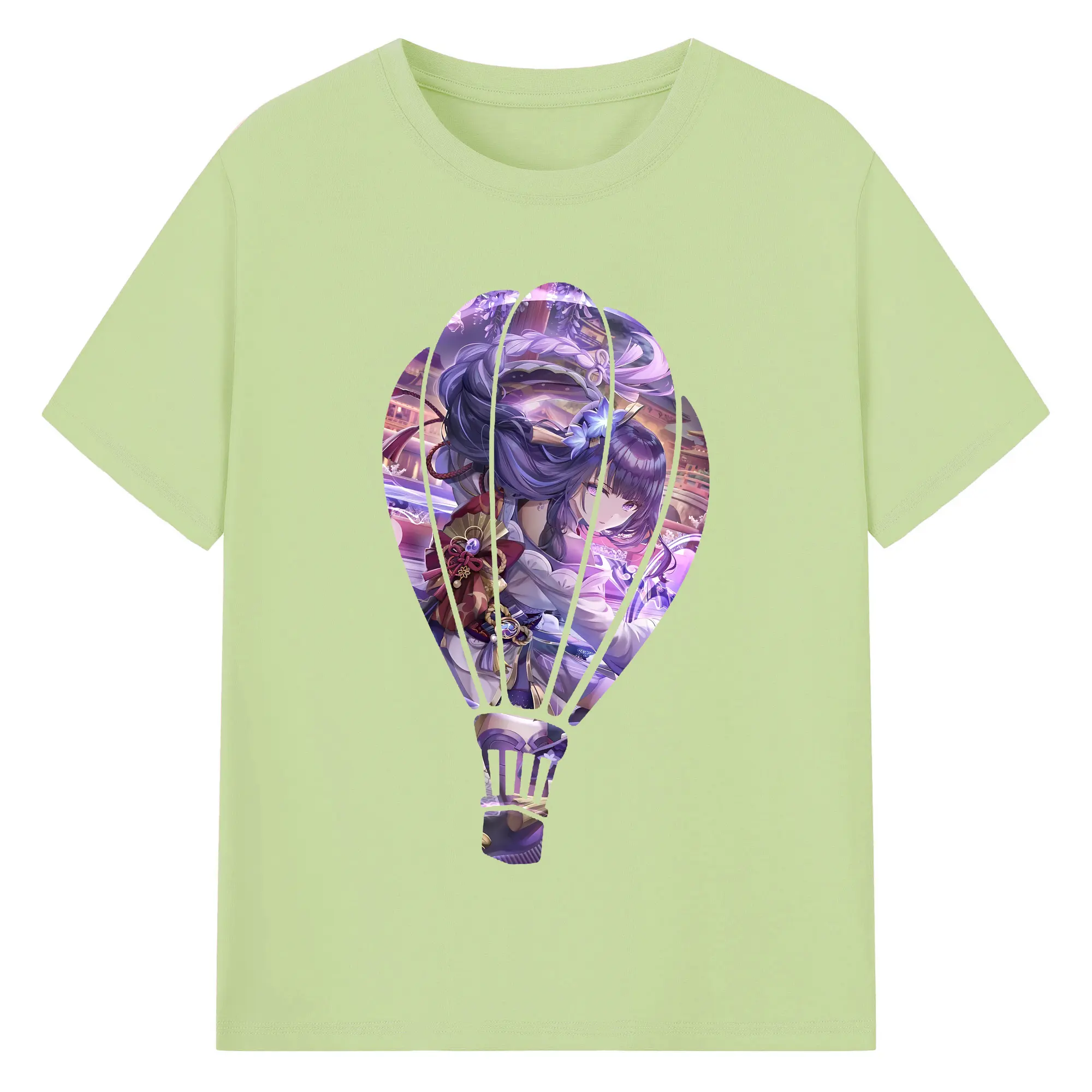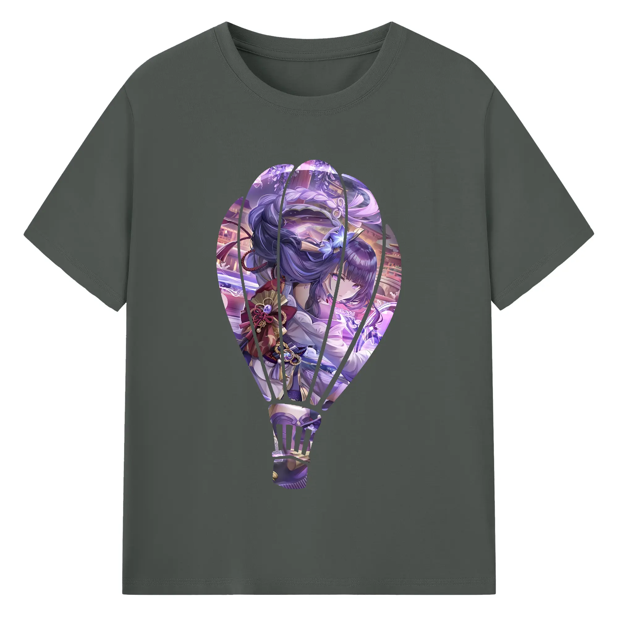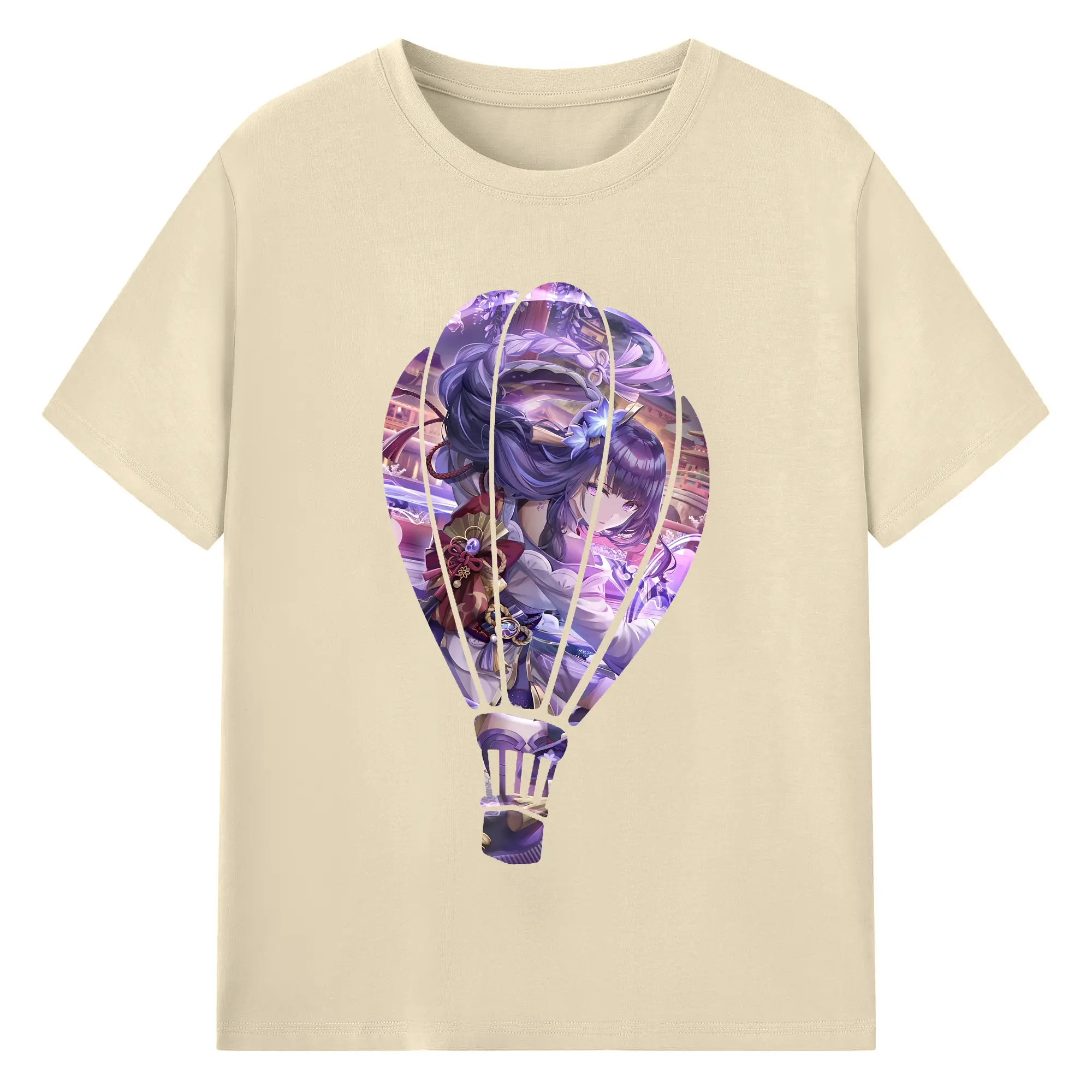 原 神 グッズ 雷電将軍 - 綿100% ヴィンテージ風 半袖Tシャツ ・ フロントプリント ・ 柔らか肌触り ・ 通気性 快適 ・ スポーツ カジュアル 外出用