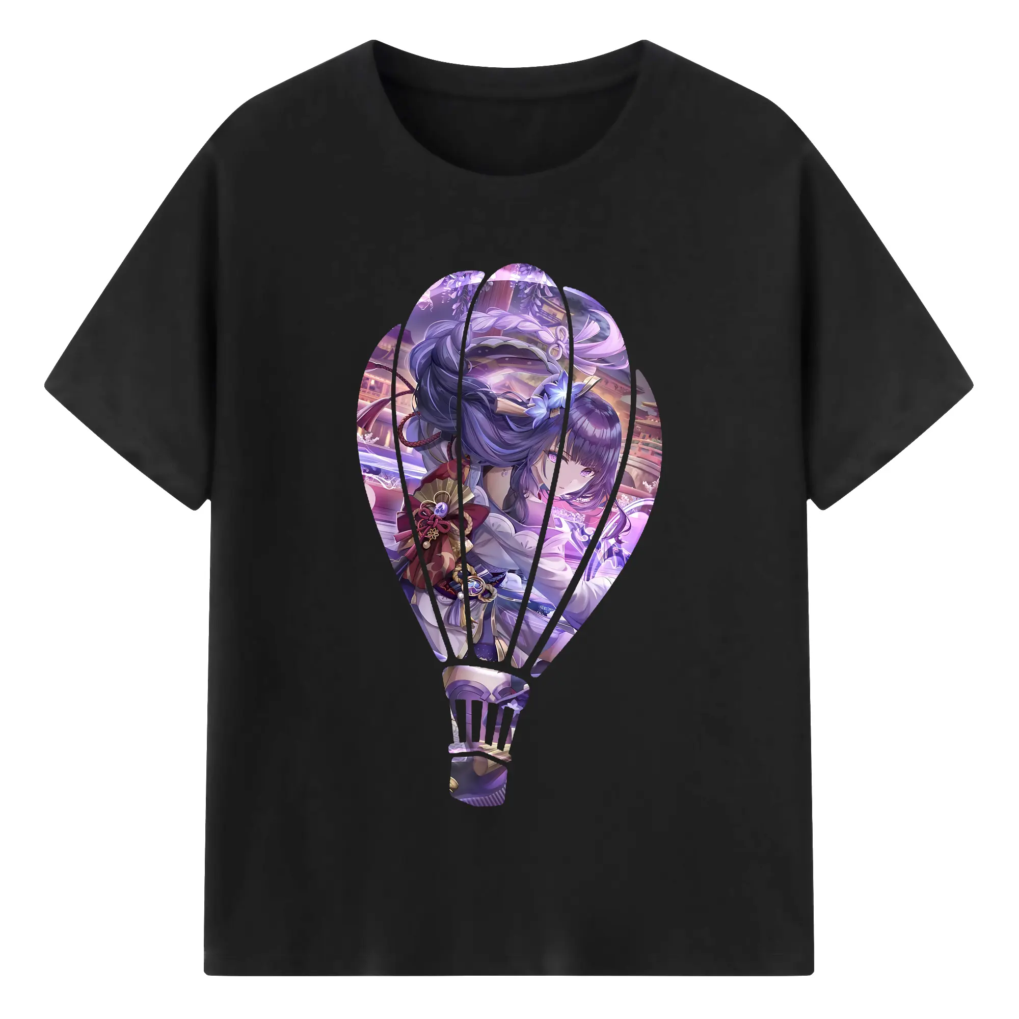 原 神 グッズ 雷電将軍 - 綿100% 半袖Tシャツ ・ バックプリント ・ 快適 通気性 ・ 日常使い 散歩 スポーツ用