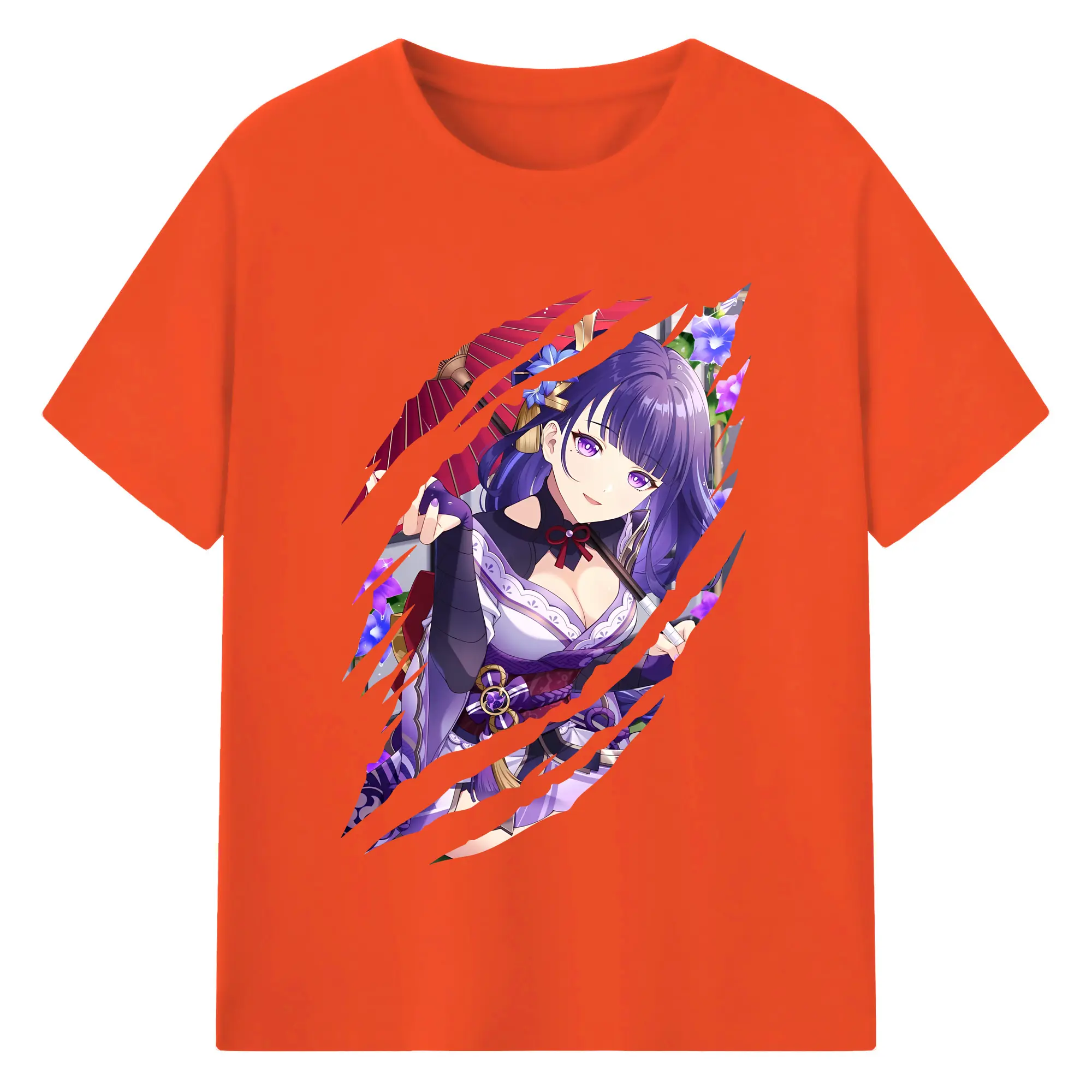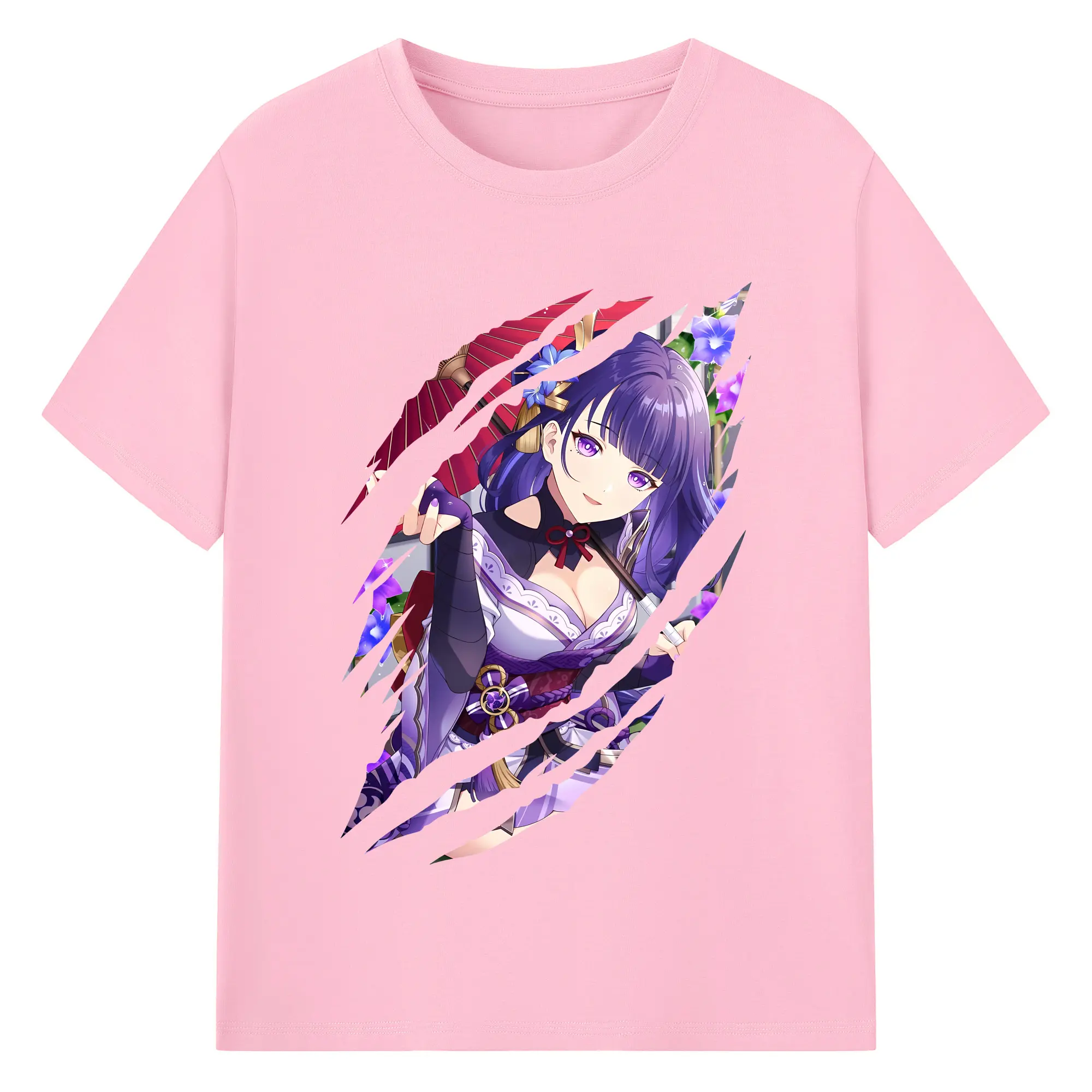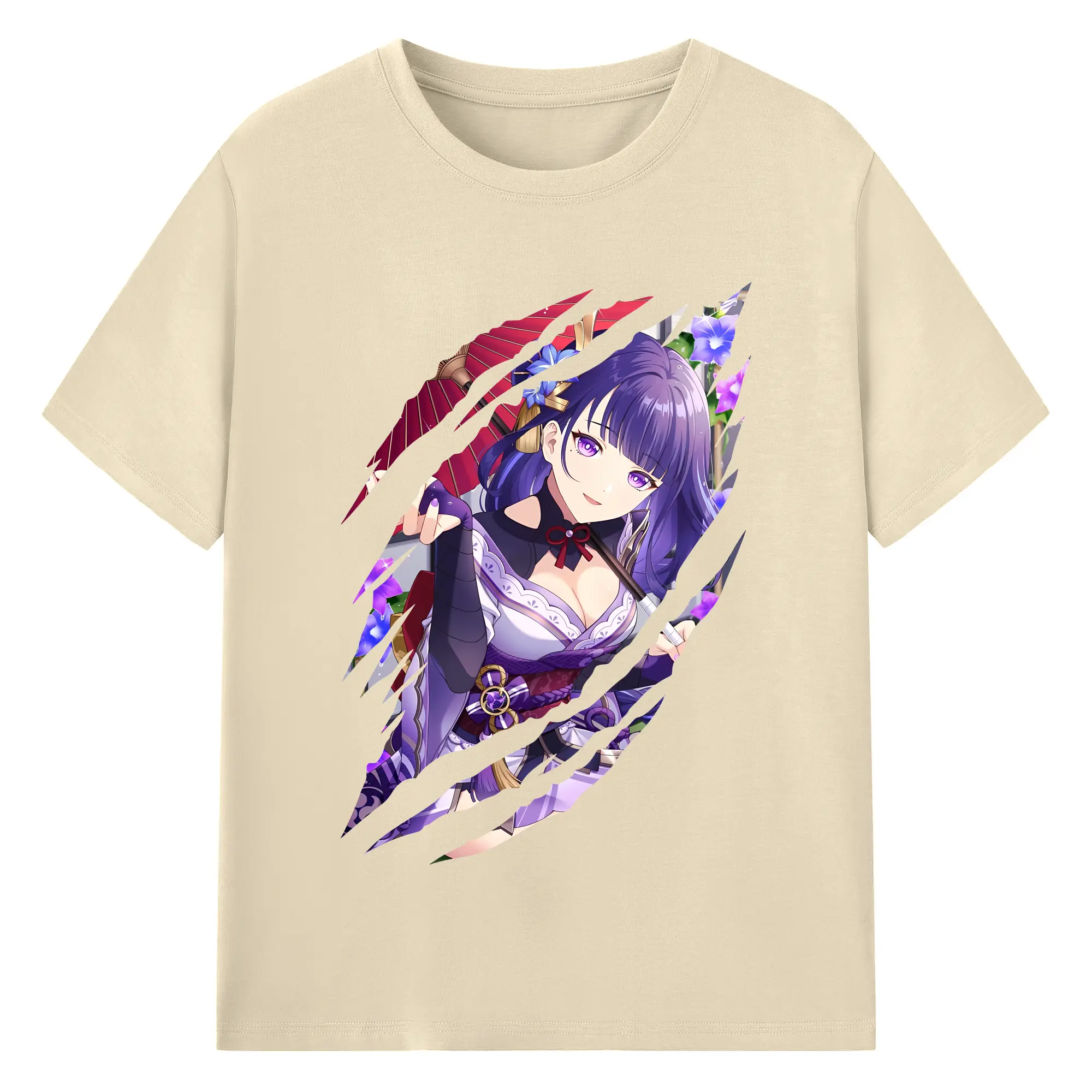 原 神 グッズ 雷電将軍 - 綿100% 半袖Tシャツ ・ バックプリント ・ 快適 通気性 ・ 日常使い 散歩 スポーツ用