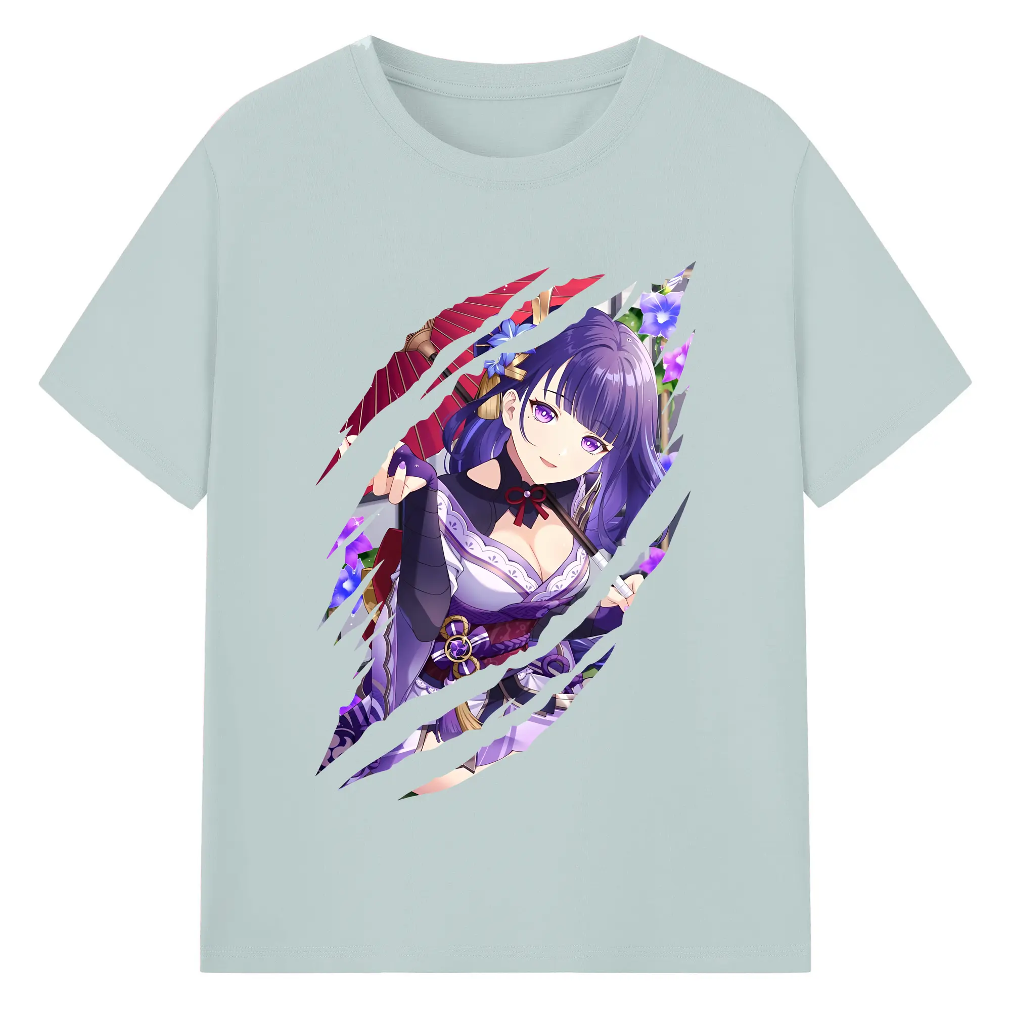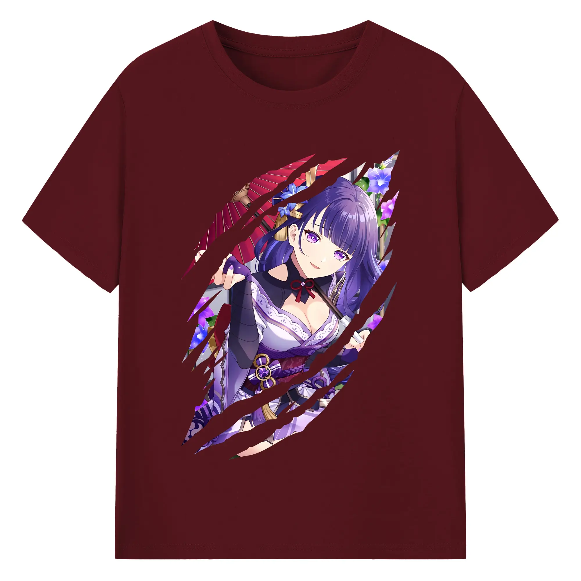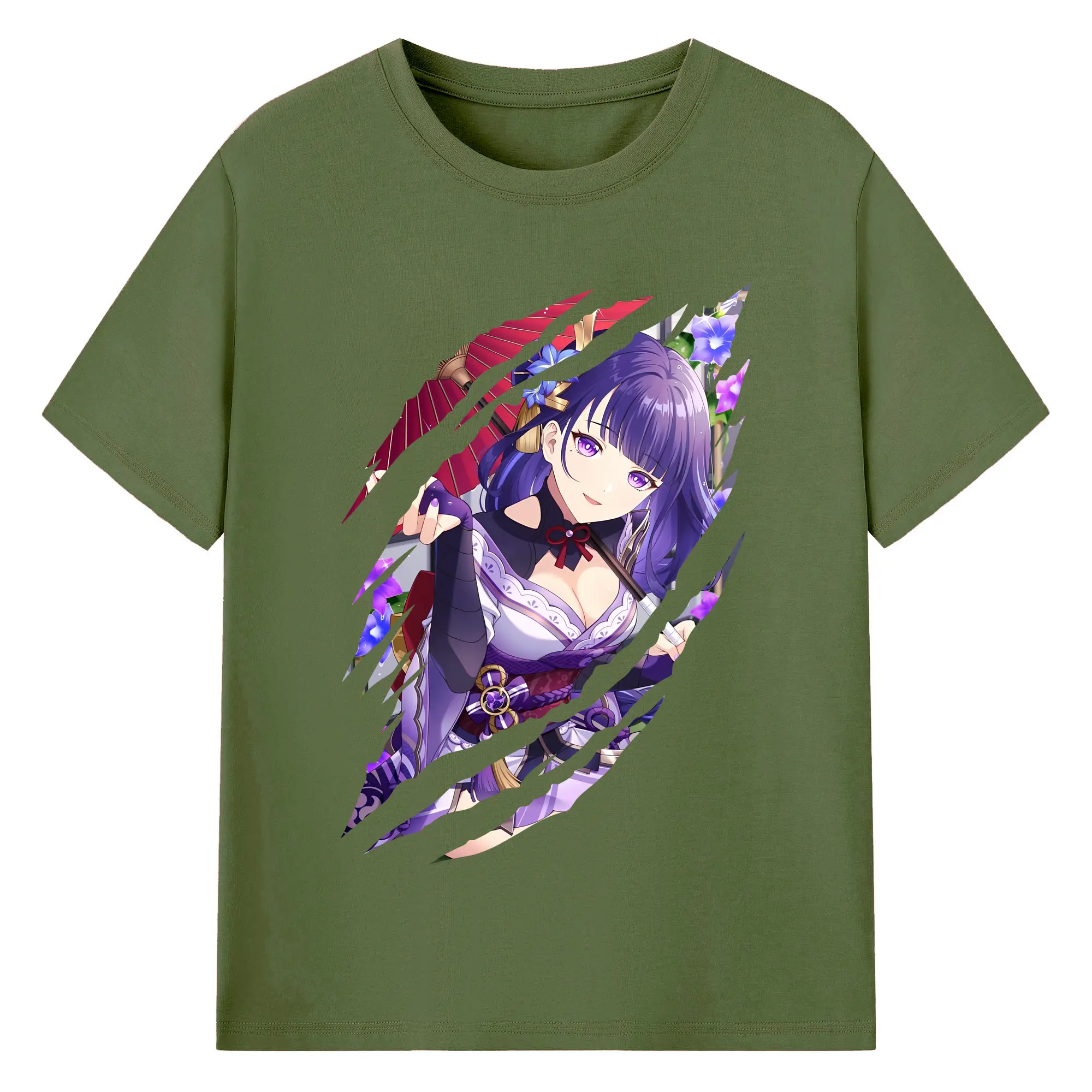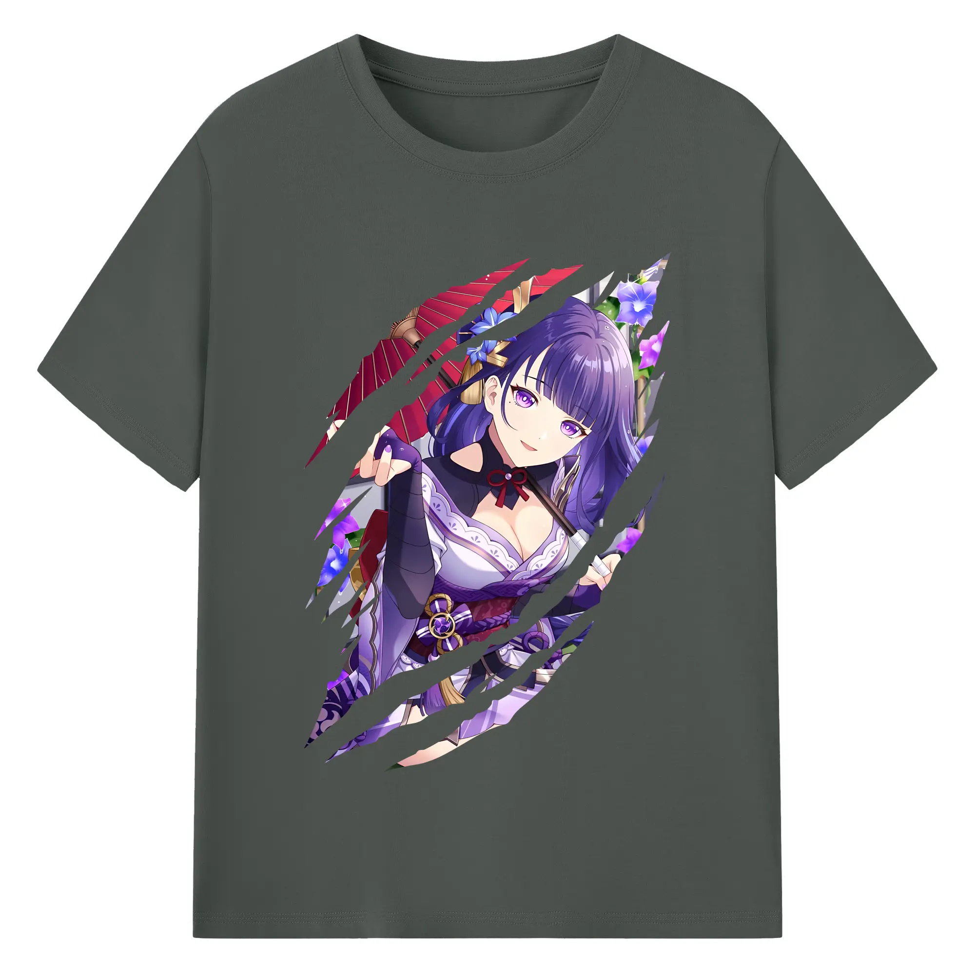 原 神 グッズ 雷電将軍 - 綿100% 半袖Tシャツ ・ バックプリント ・ 快適 通気性 ・ 日常使い 散歩 スポーツ用