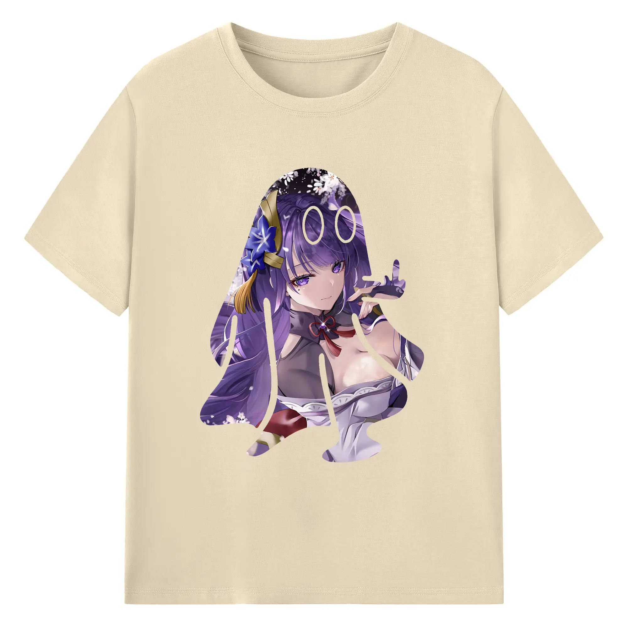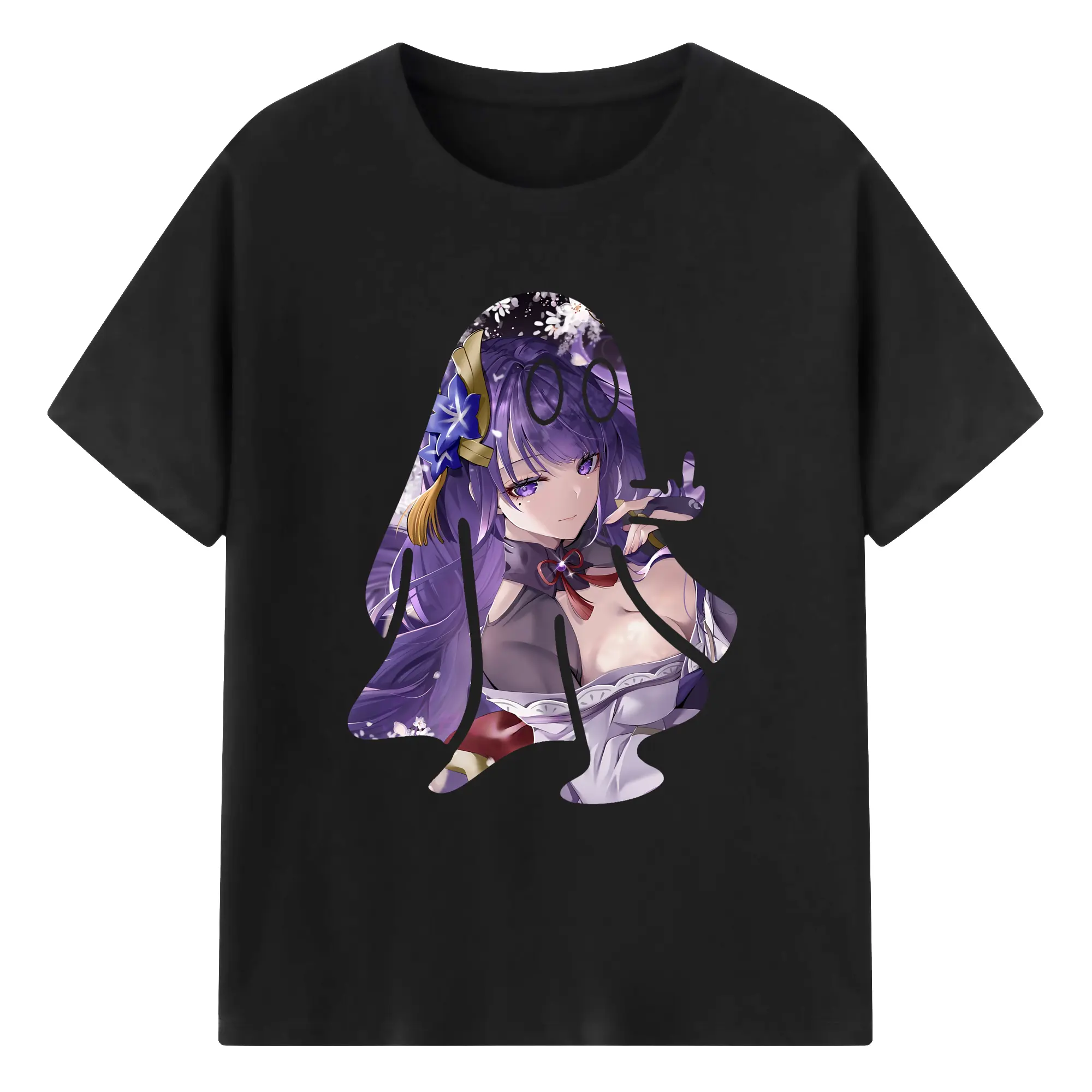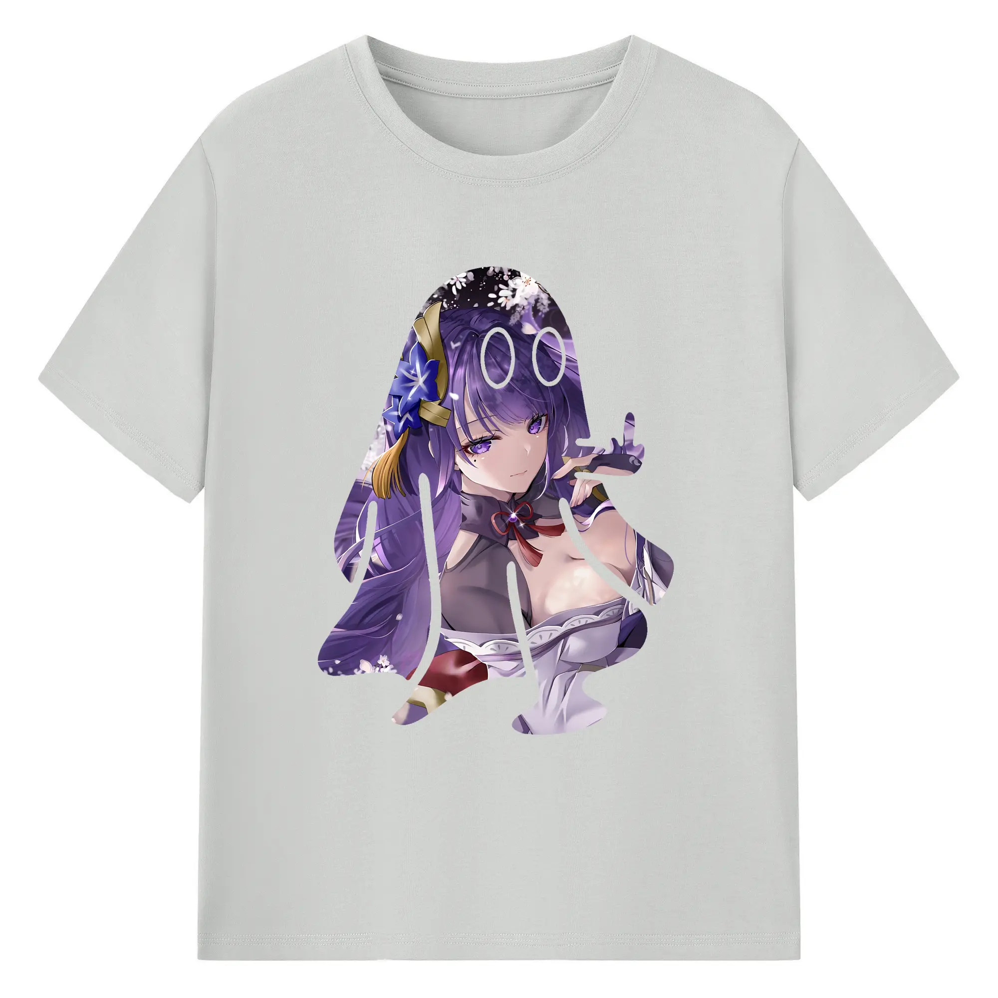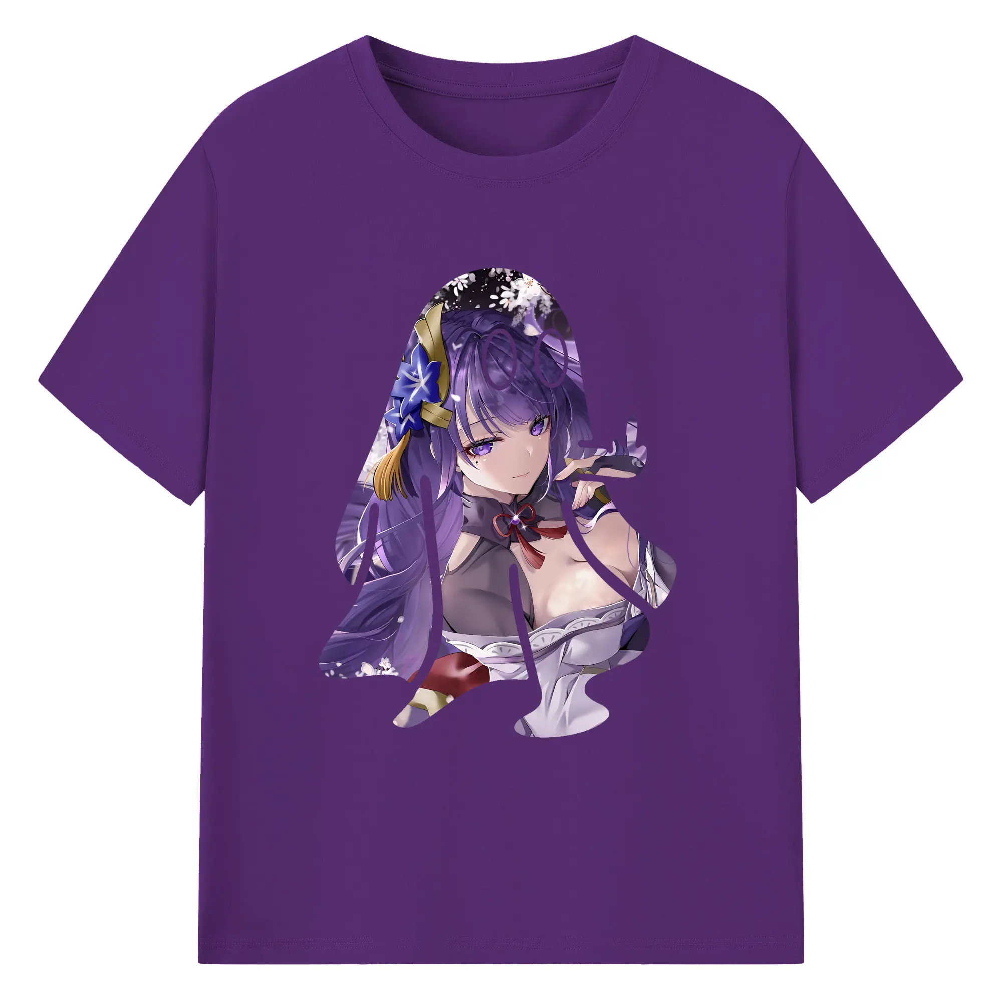 原 神 グッズ 雷電将軍 - 綿100% 半袖Tシャツ ・ バックプリント ・ 快適 通気性 ・ 日常使い 散歩 スポーツ用