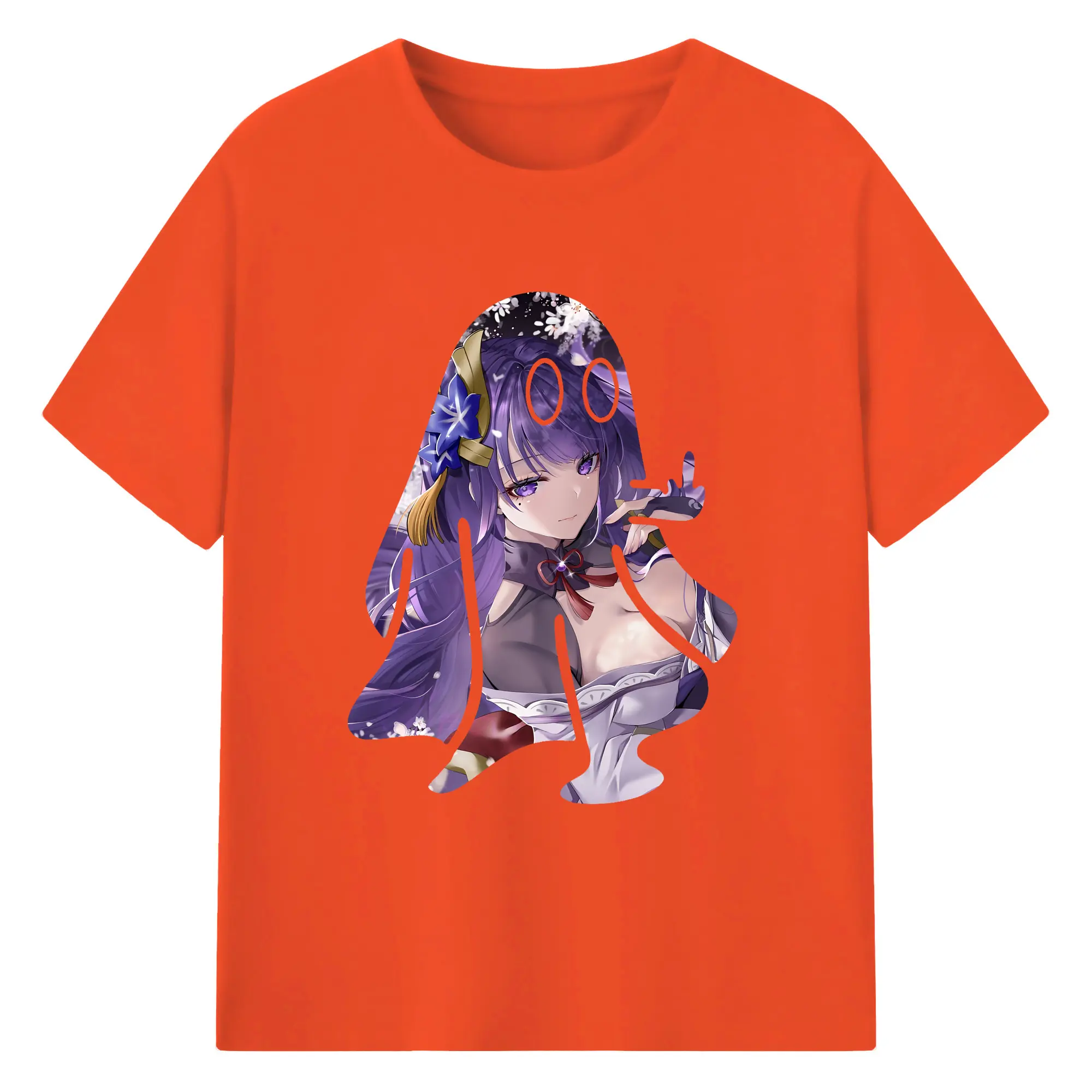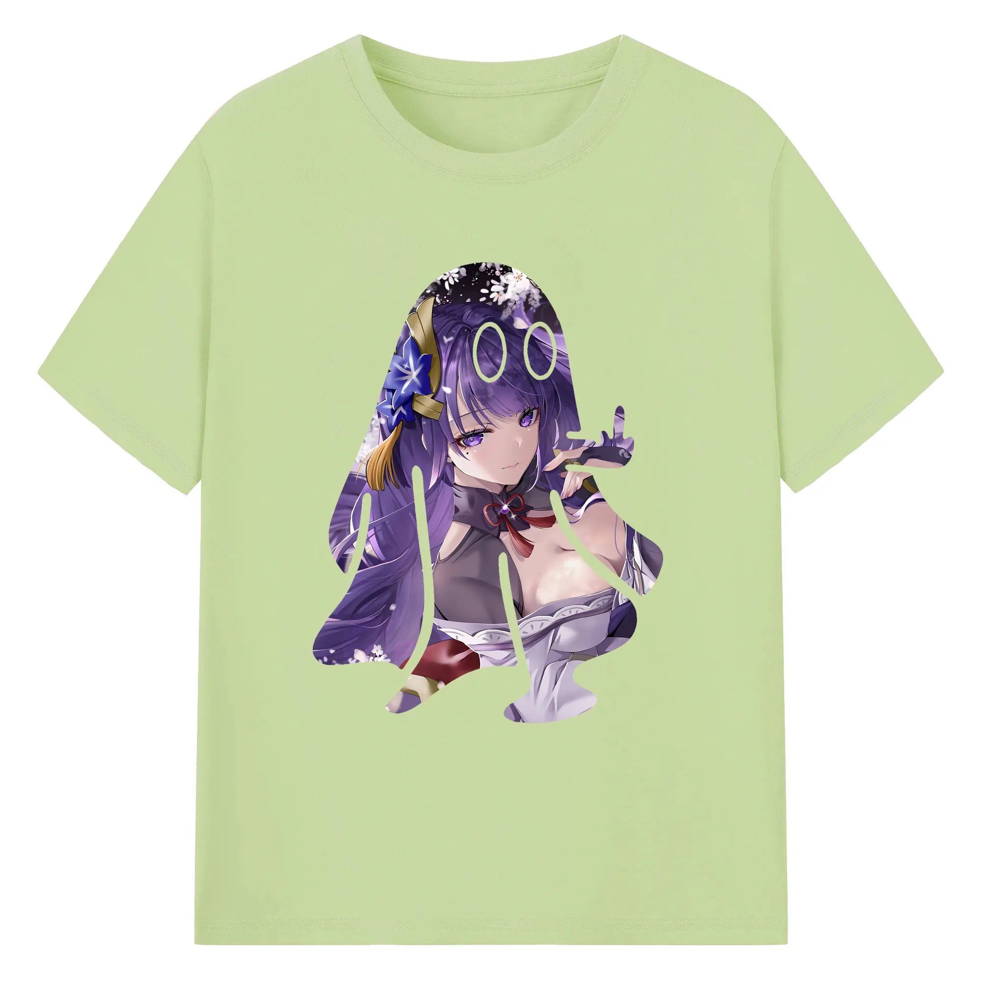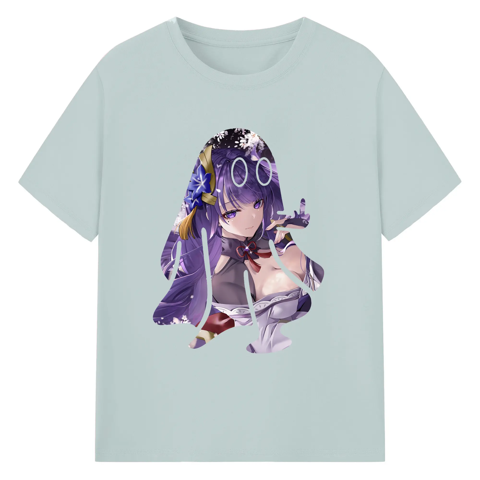 原 神 グッズ 雷電将軍 - 綿100% 半袖Tシャツ ・ バックプリント ・ 快適 通気性 ・ 日常使い 散歩 スポーツ用