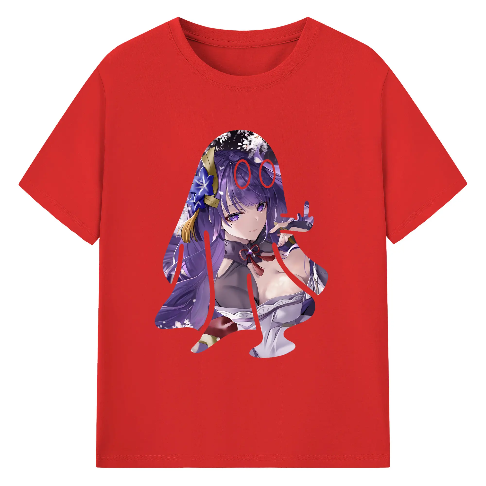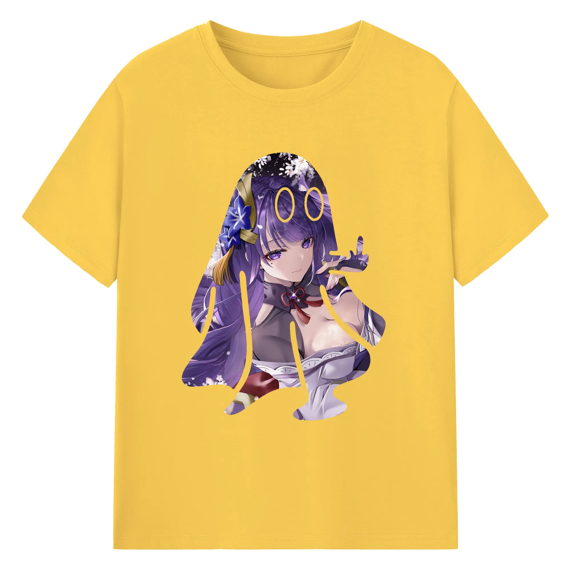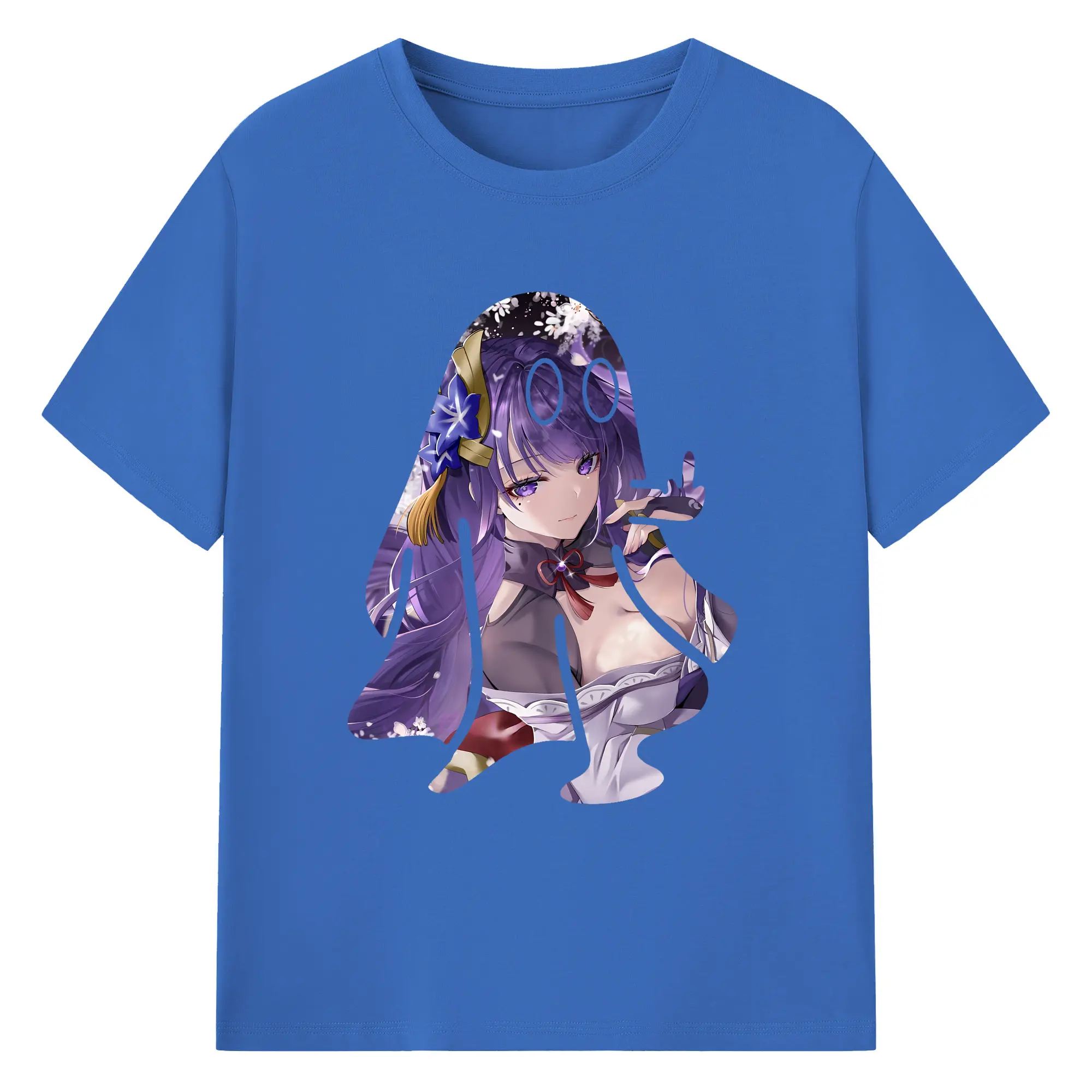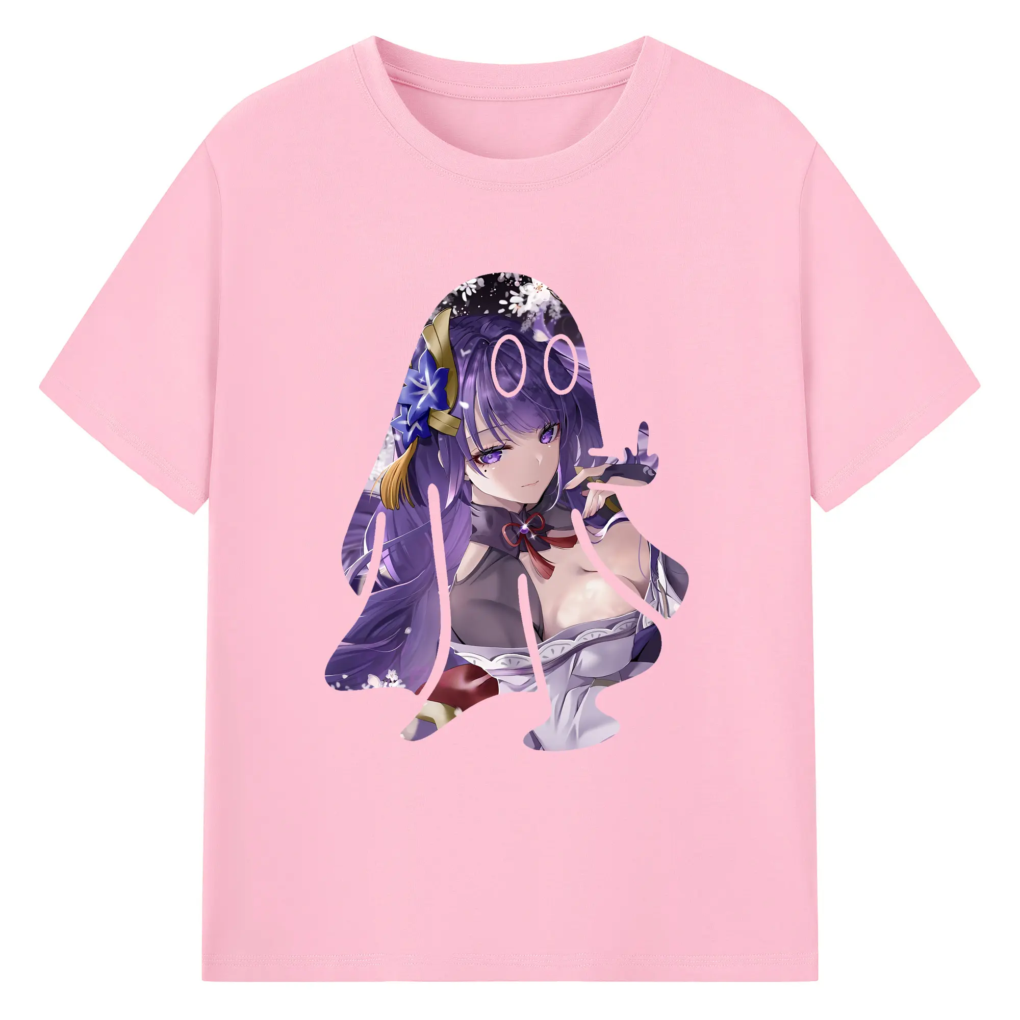原 神 グッズ 雷電将軍 - 綿100% 半袖Tシャツ ・ バックプリント ・ 快適 通気性 ・ 日常使い 散歩 スポーツ用