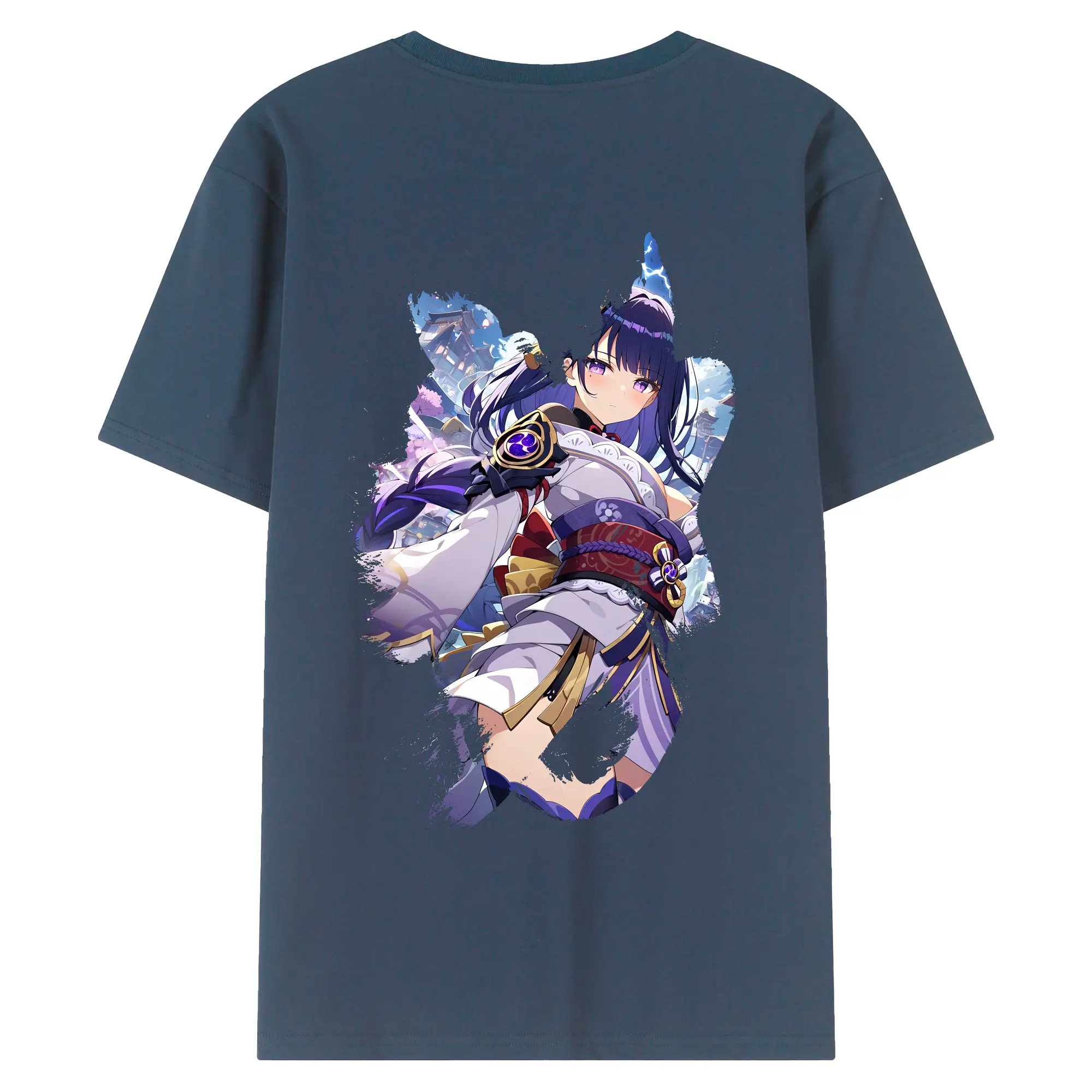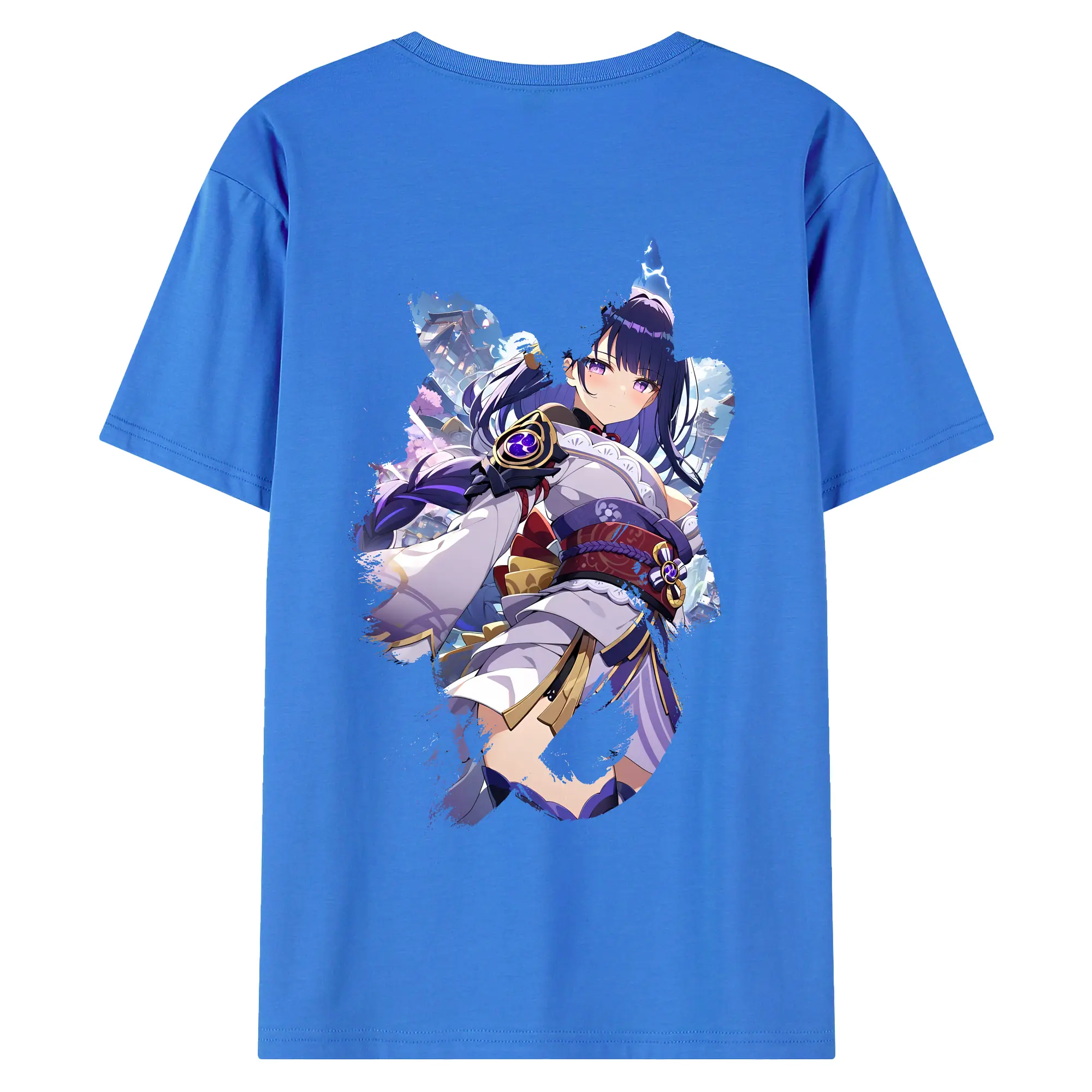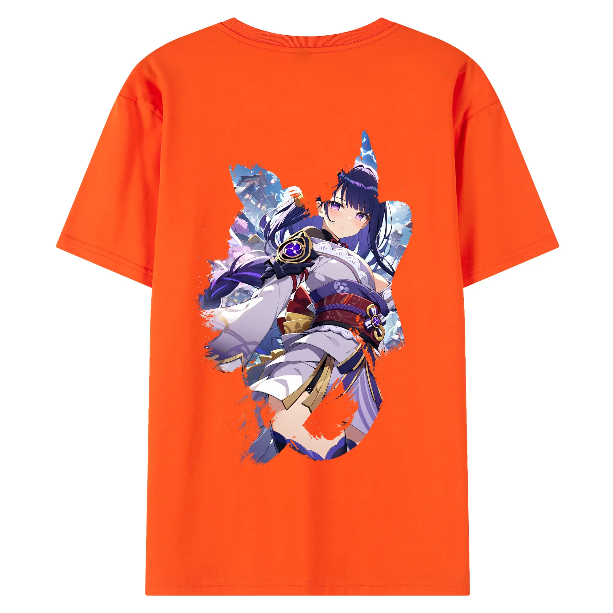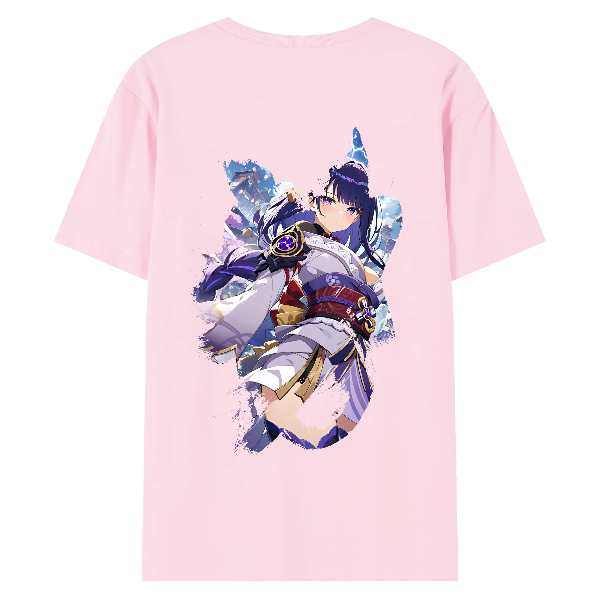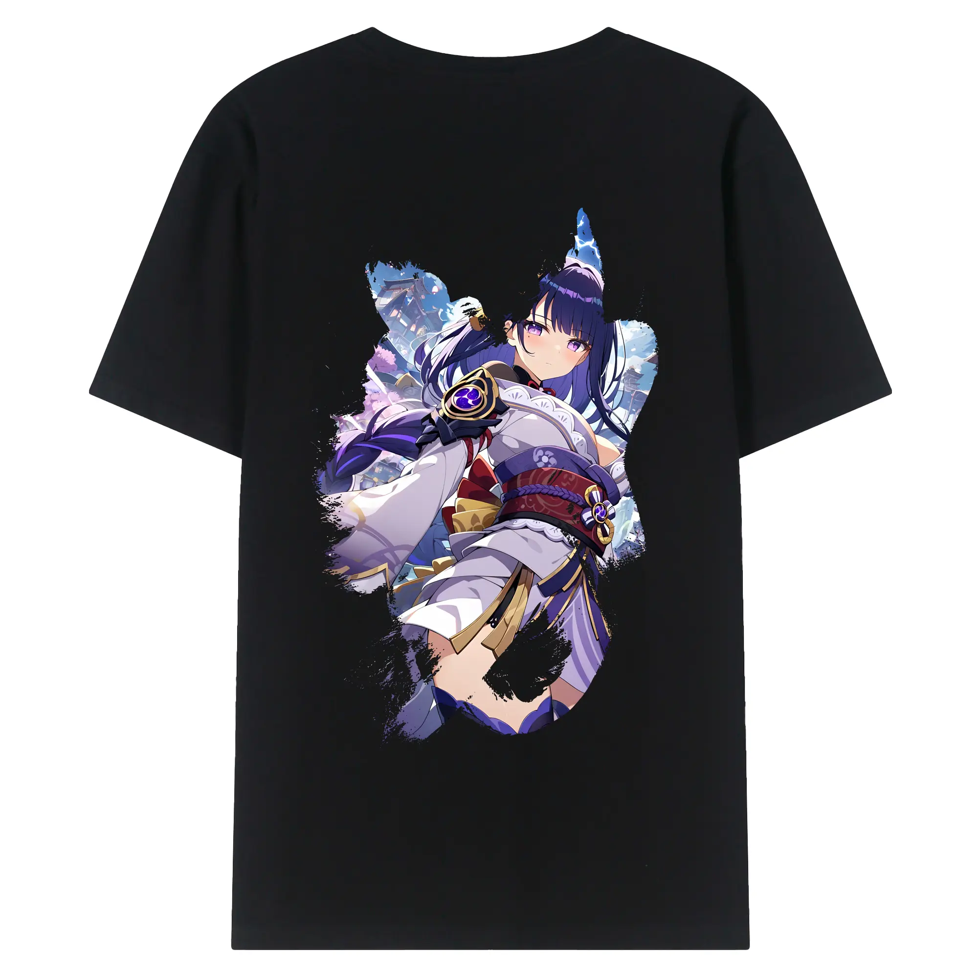 原 神 グッズ 雷電将軍 - 綿100% 半袖Tシャツ ・ フロントプリント ・ 快適 通気性 ・ 日常使い 散歩 スポーツ用