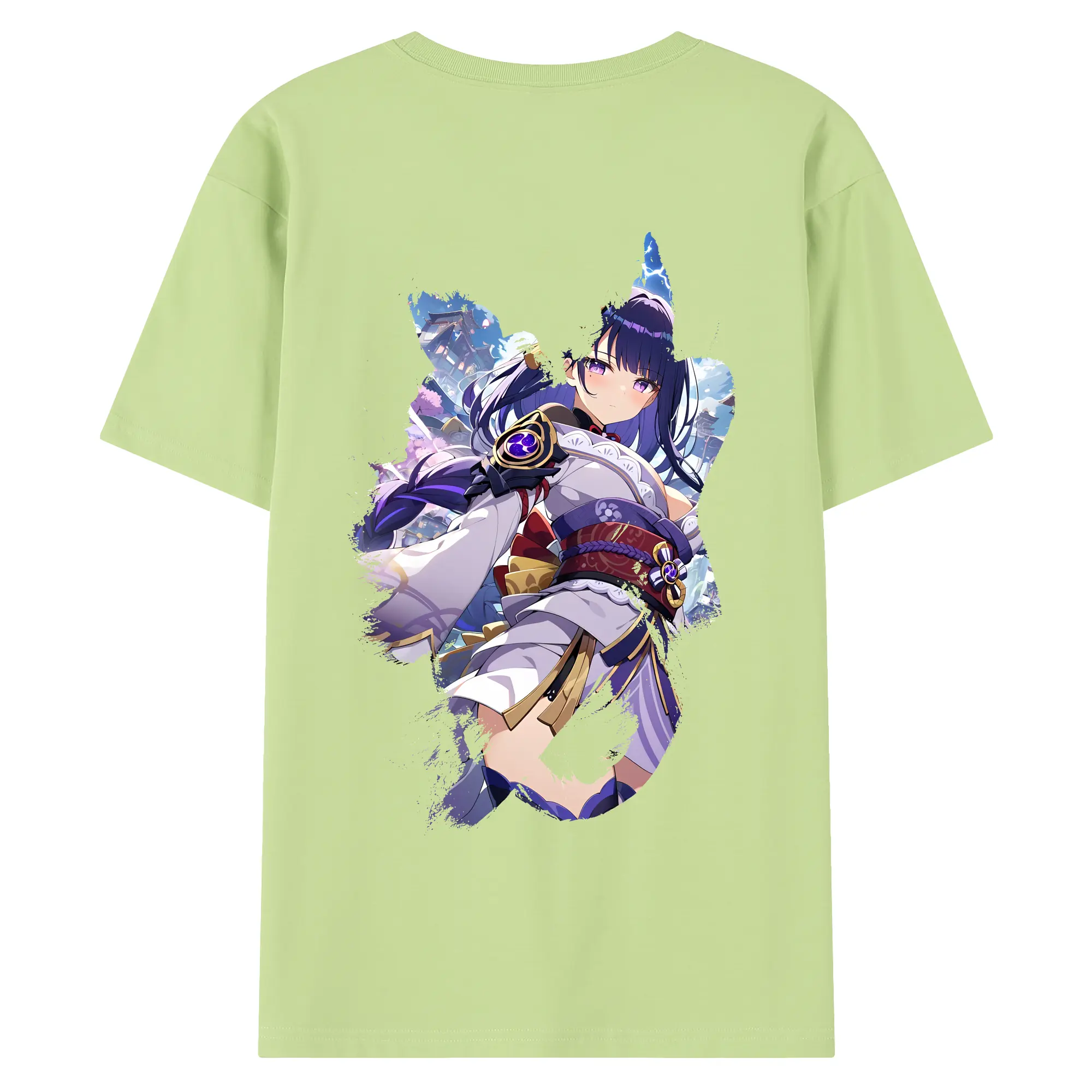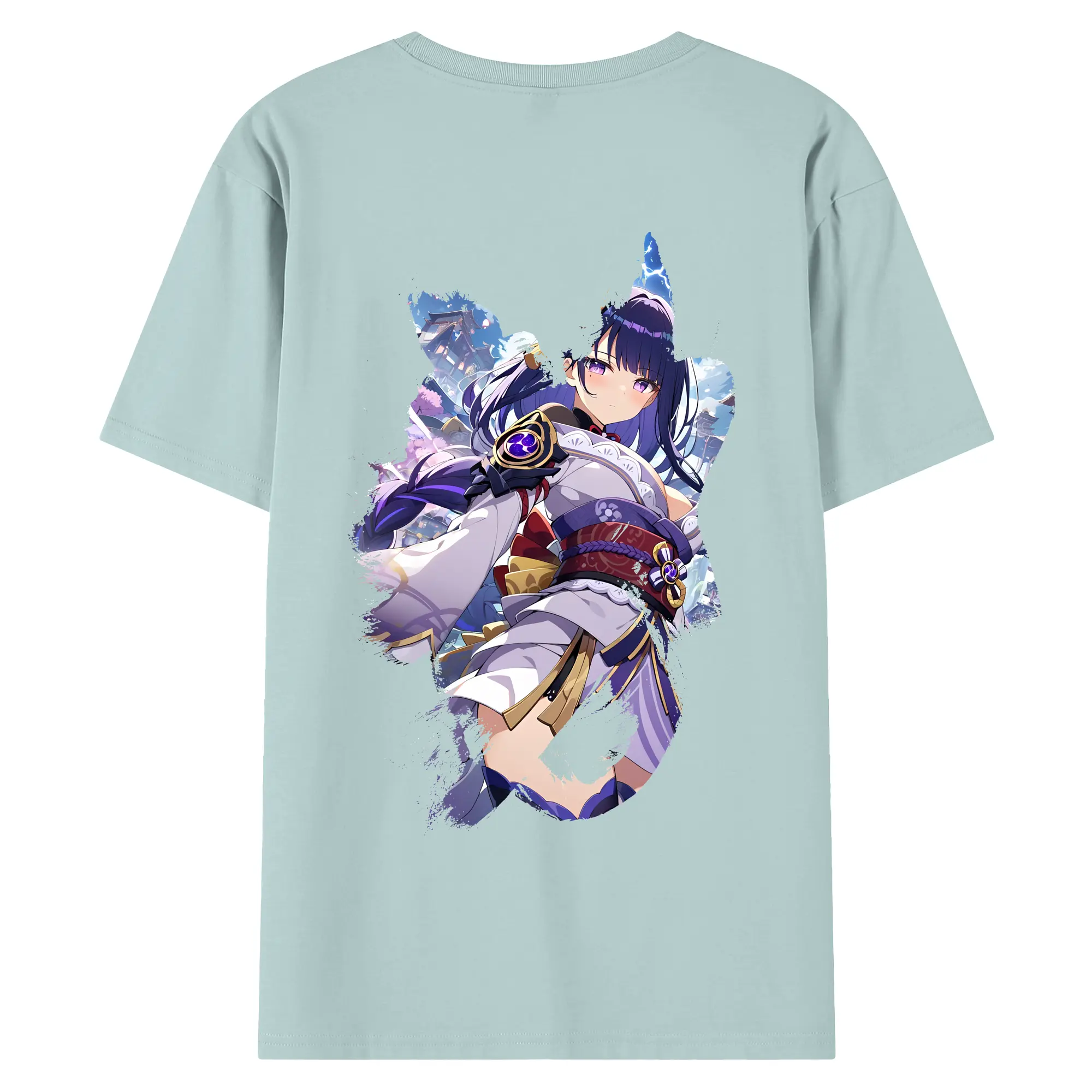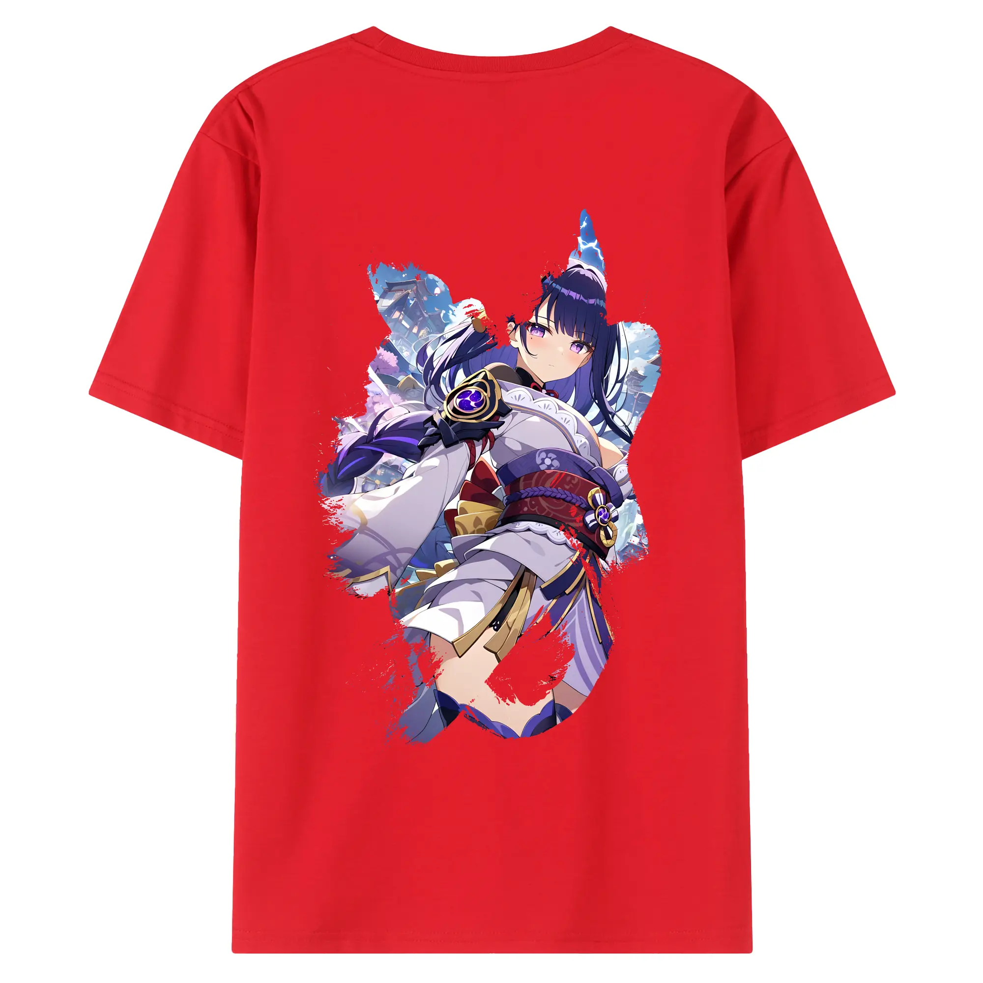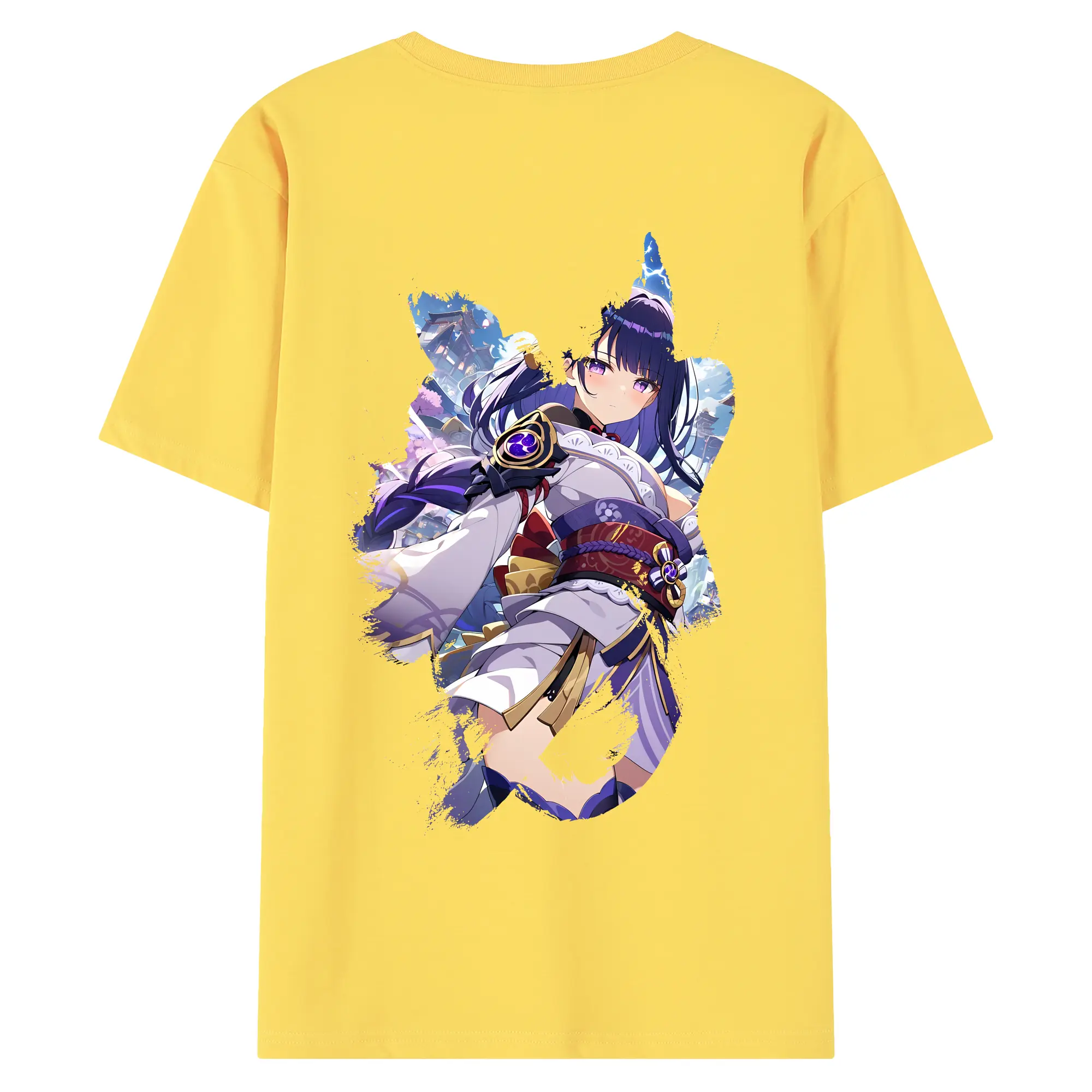 原 神 グッズ 雷電将軍 - 綿100% 半袖Tシャツ ・ フロントプリント ・ 快適 通気性 ・ 日常使い 散歩 スポーツ用