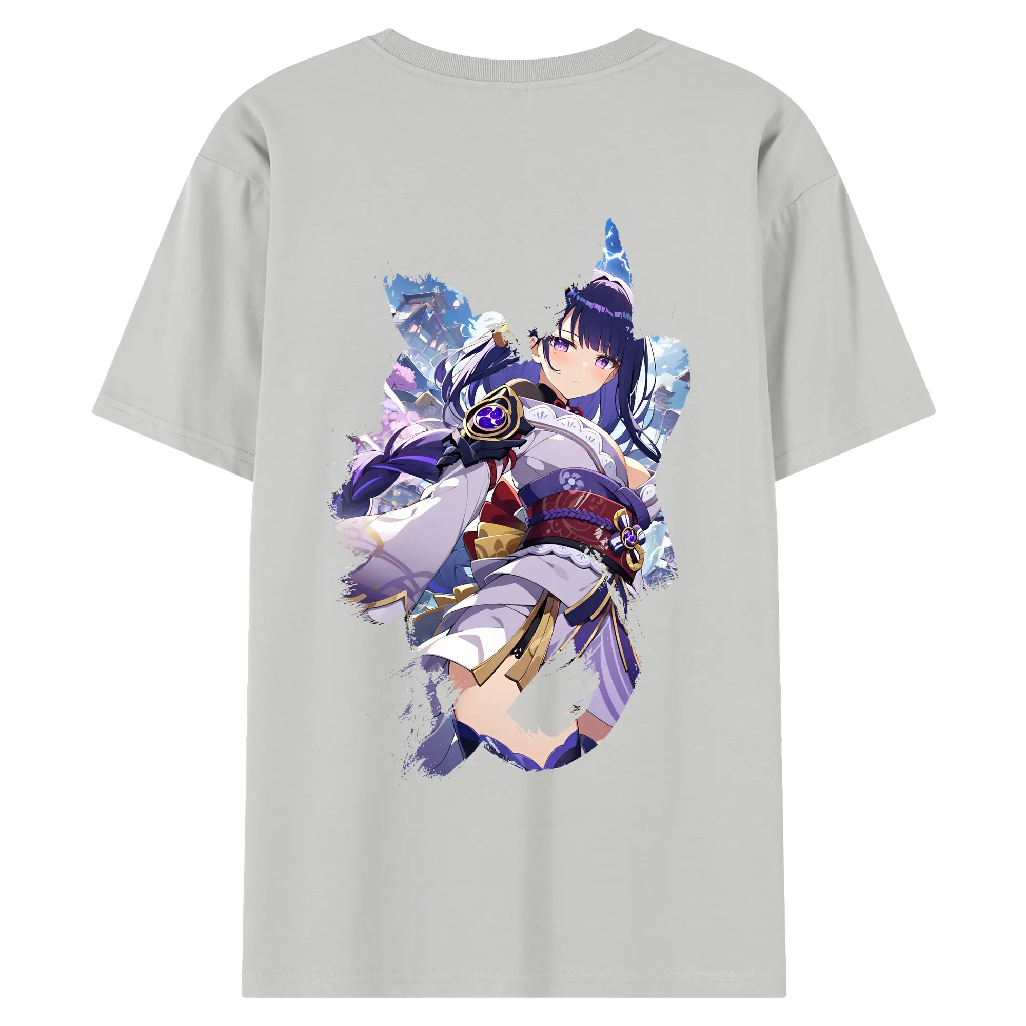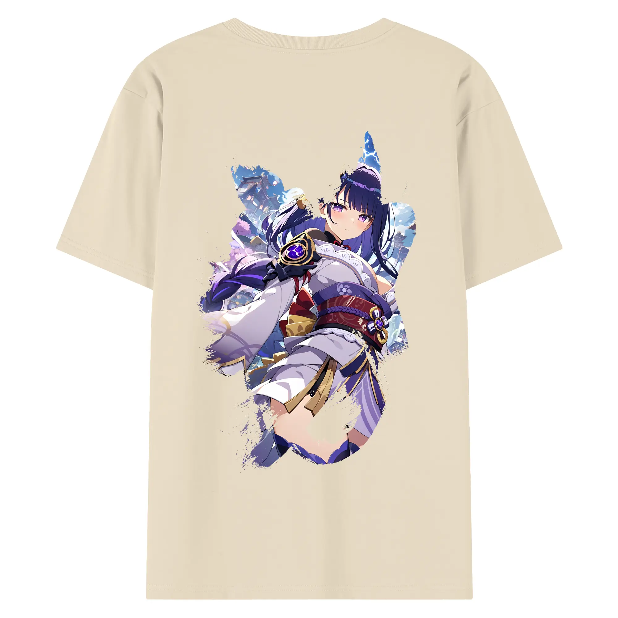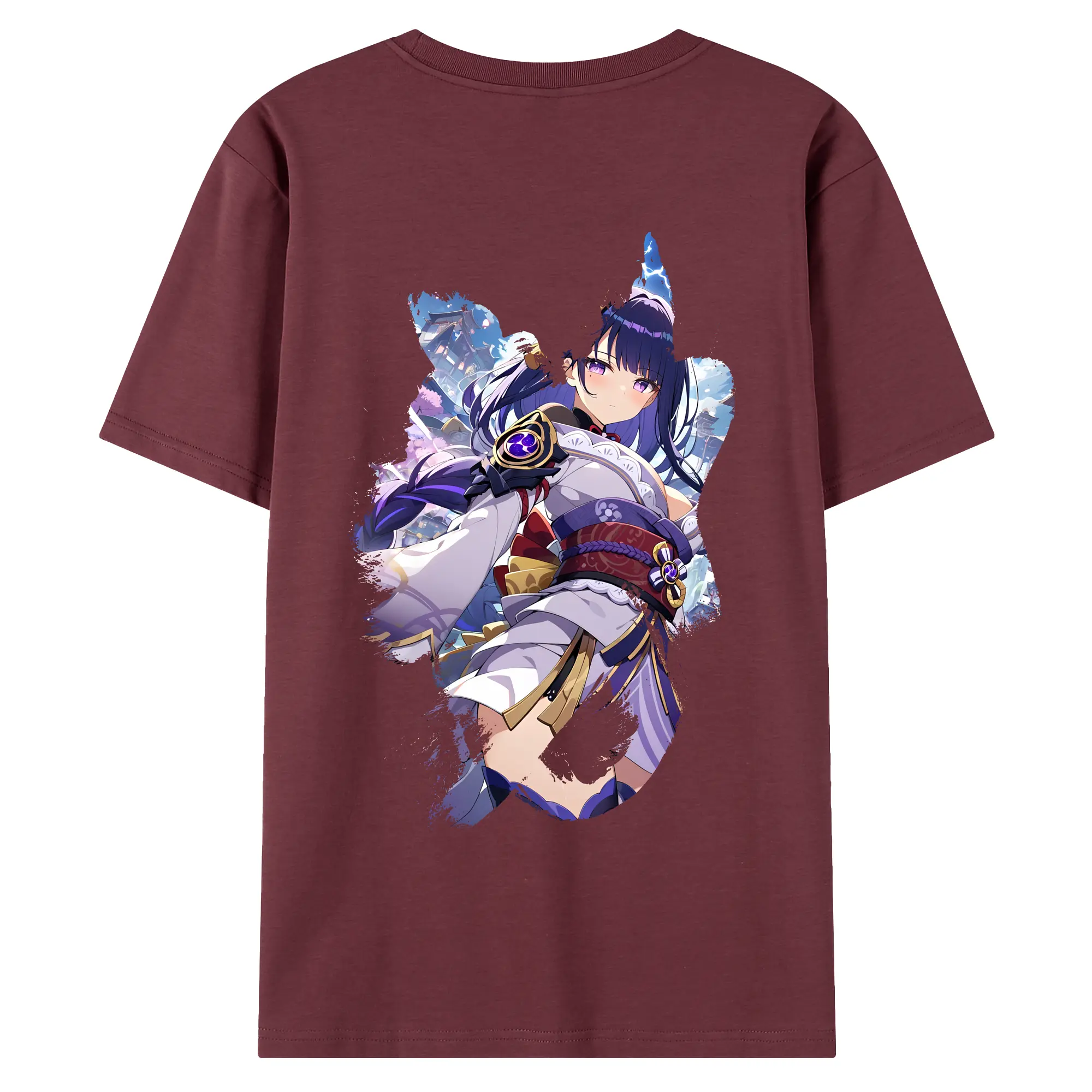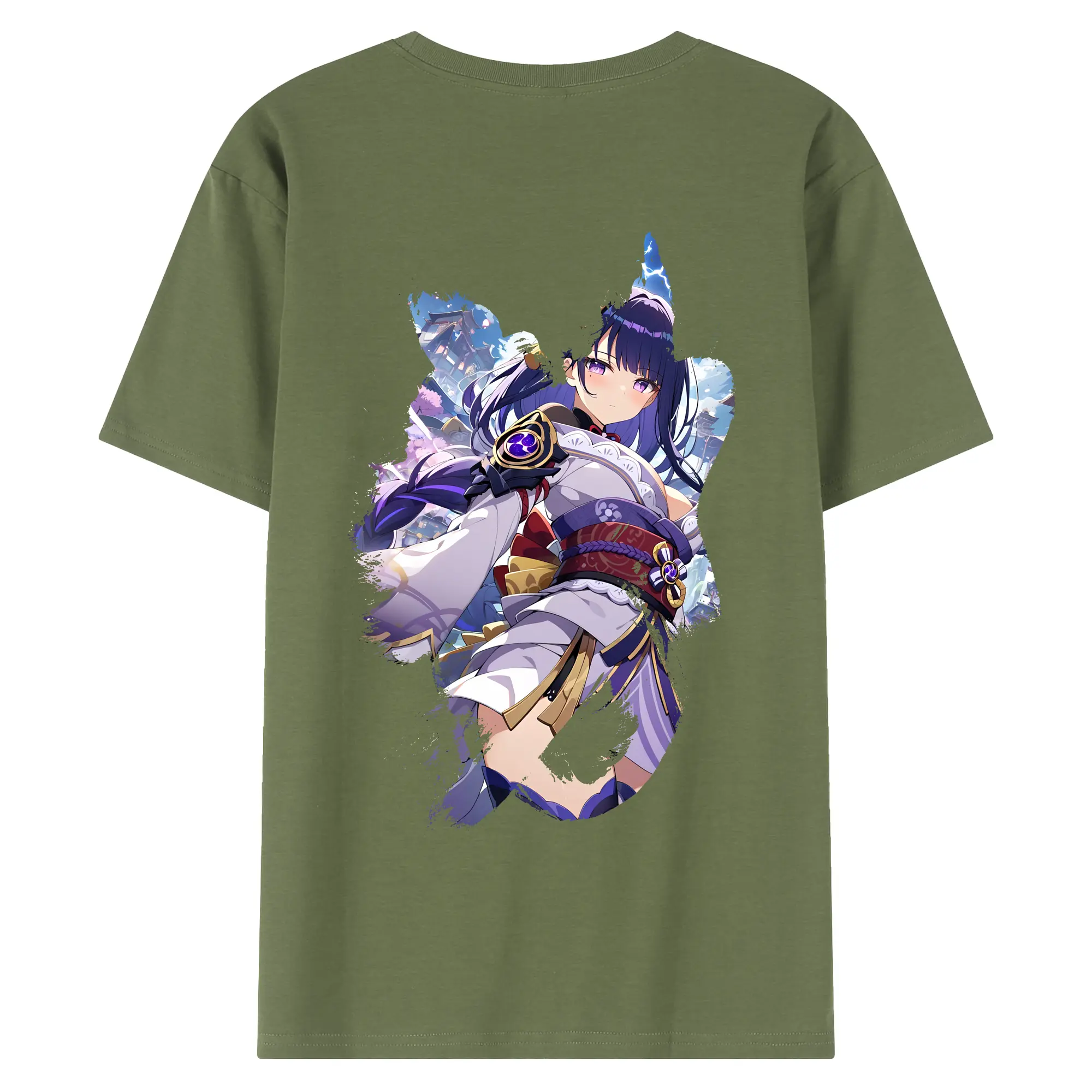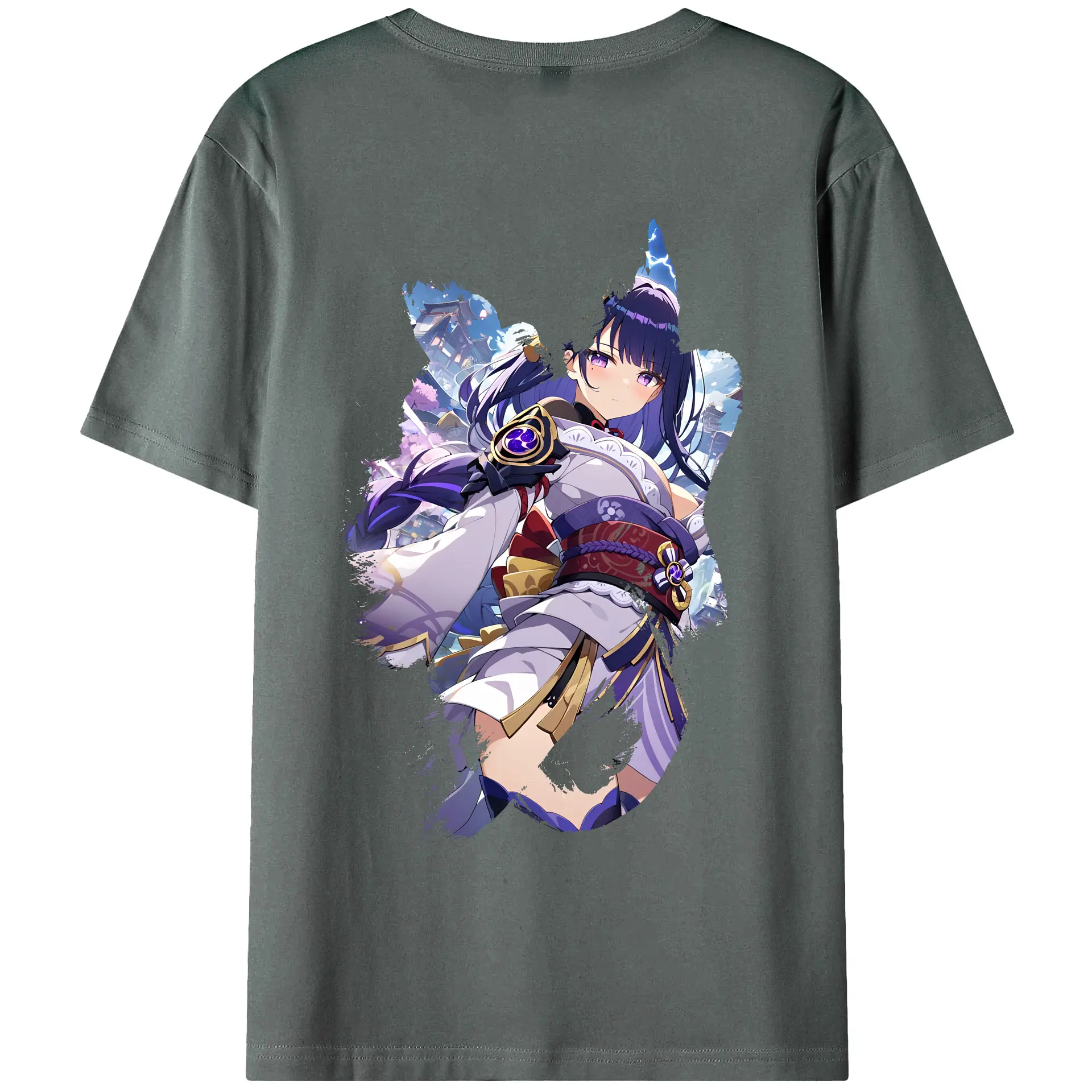 原 神 グッズ 雷電将軍 - 綿100% 半袖Tシャツ ・ フロントプリント ・ 快適 通気性 ・ 日常使い 散歩 スポーツ用