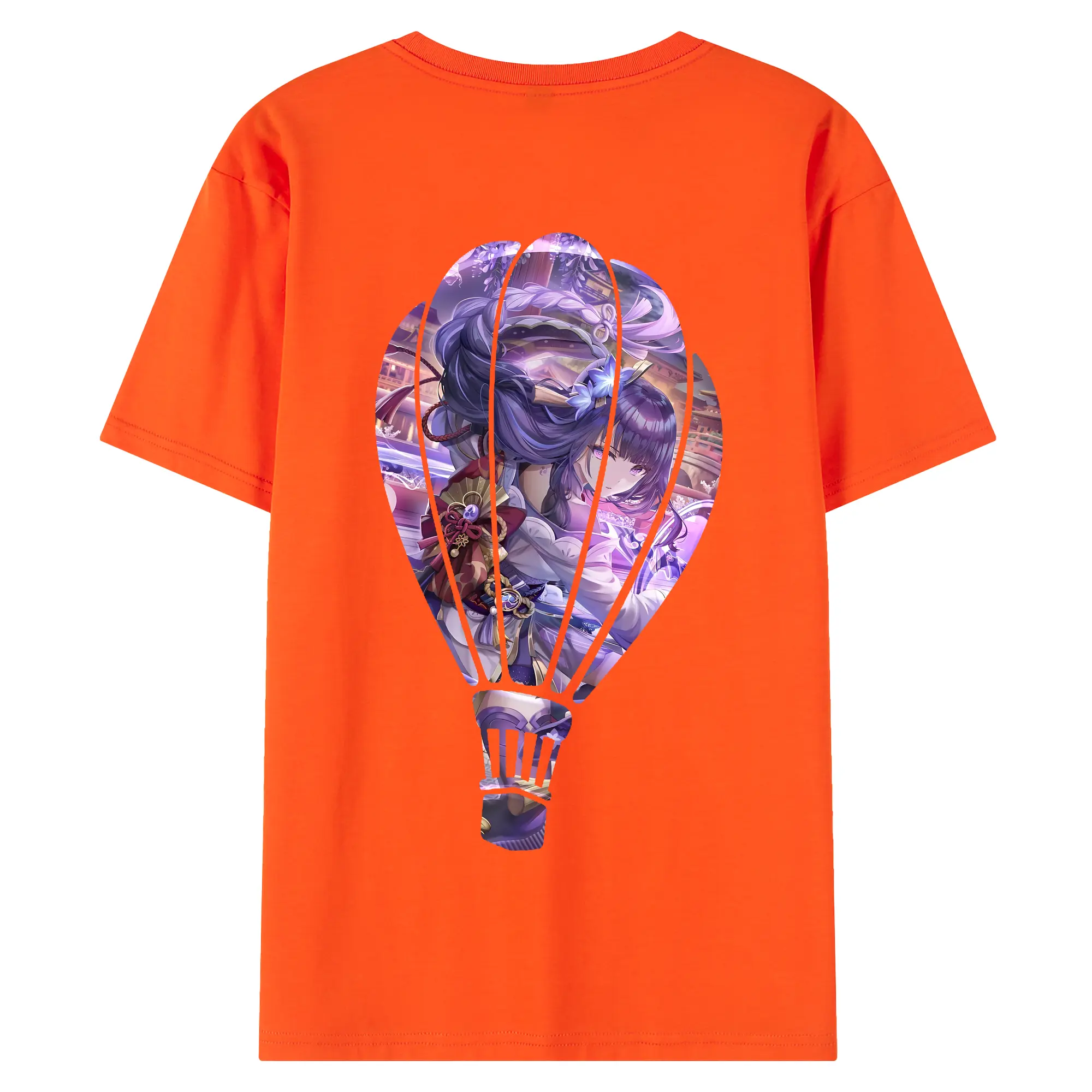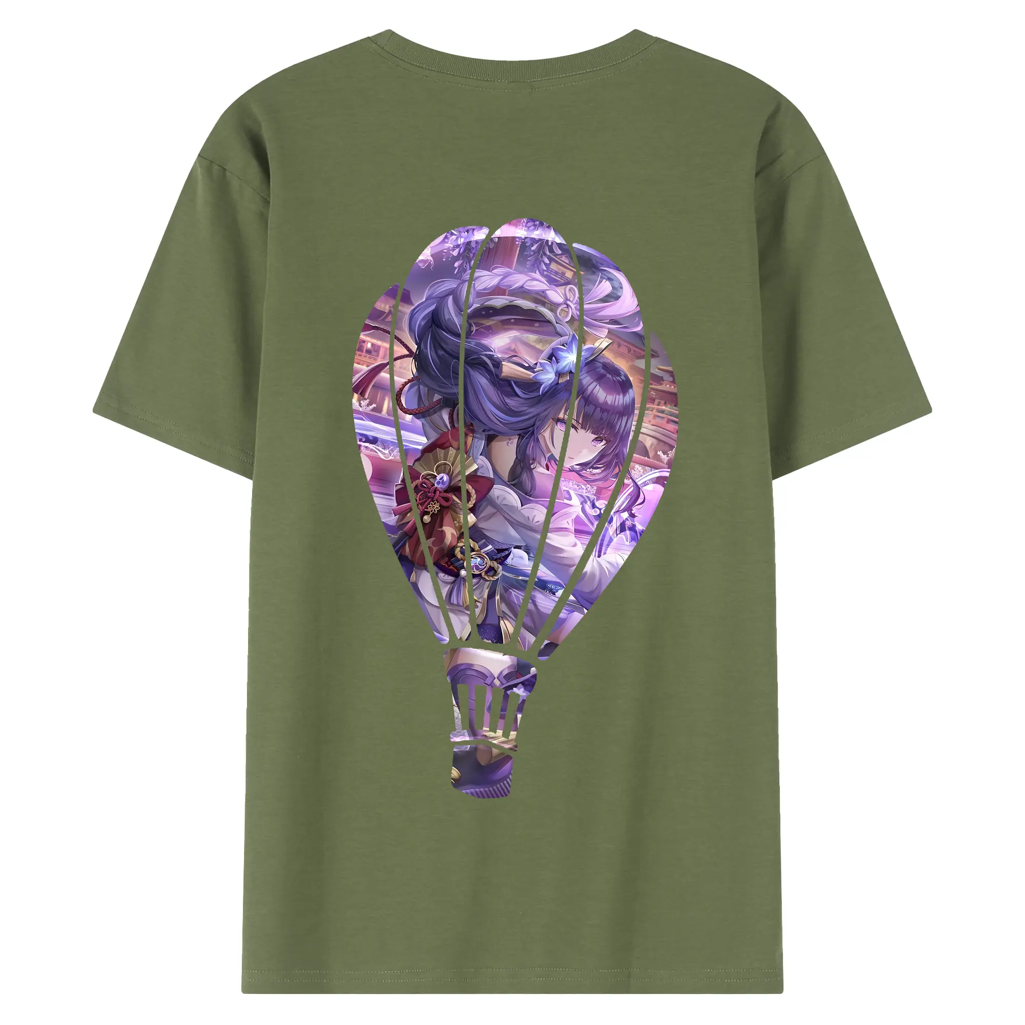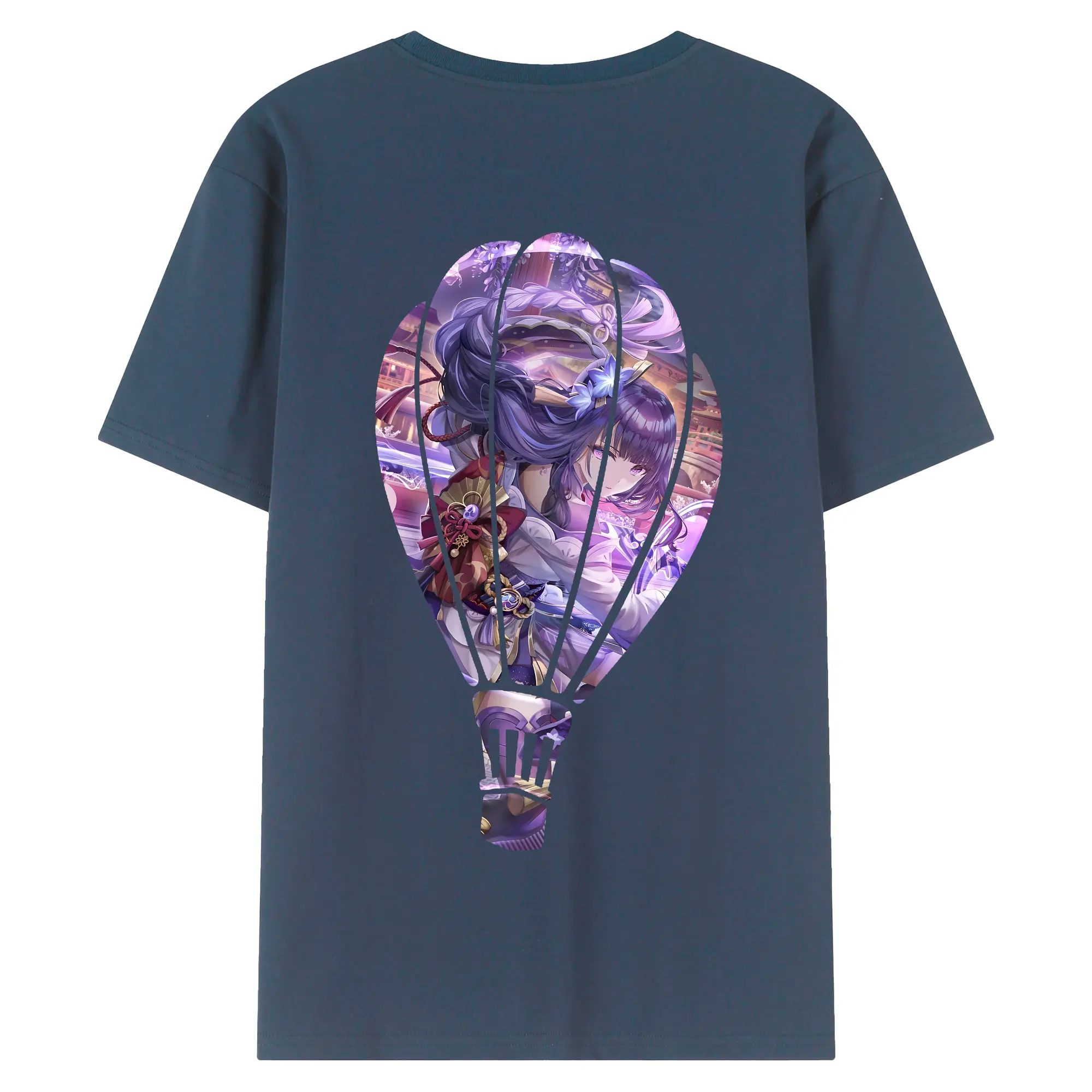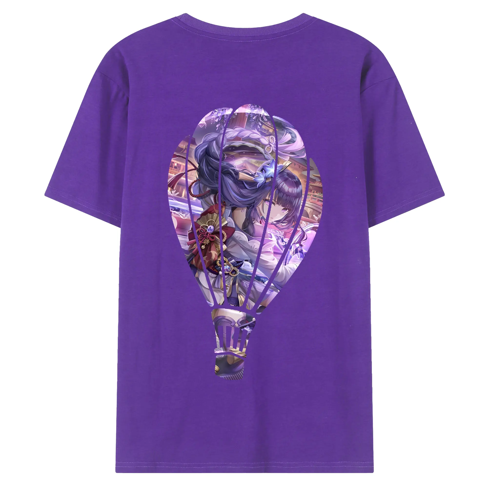 原 神 グッズ 雷電将軍 - 綿100% 半袖Tシャツ ・ フロントプリント ・ 快適 通気性 ・ 日常使い 散歩 スポーツ用