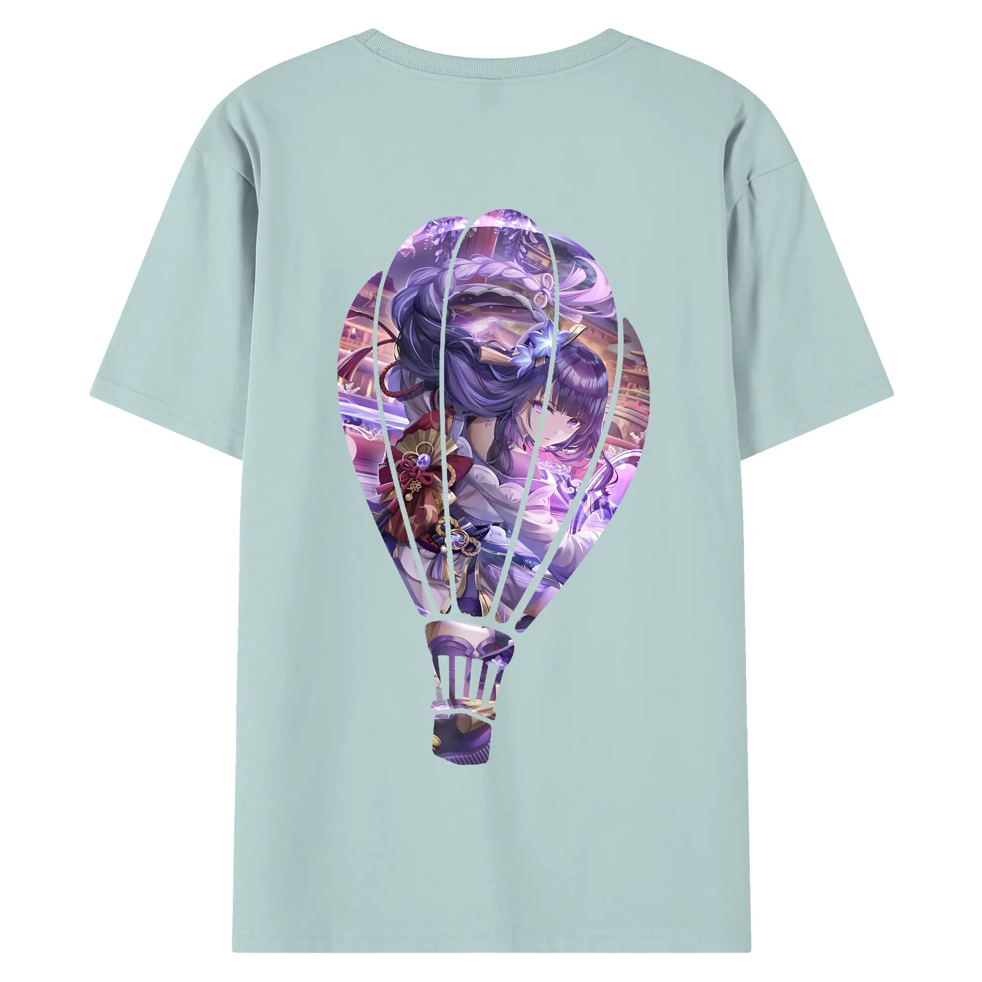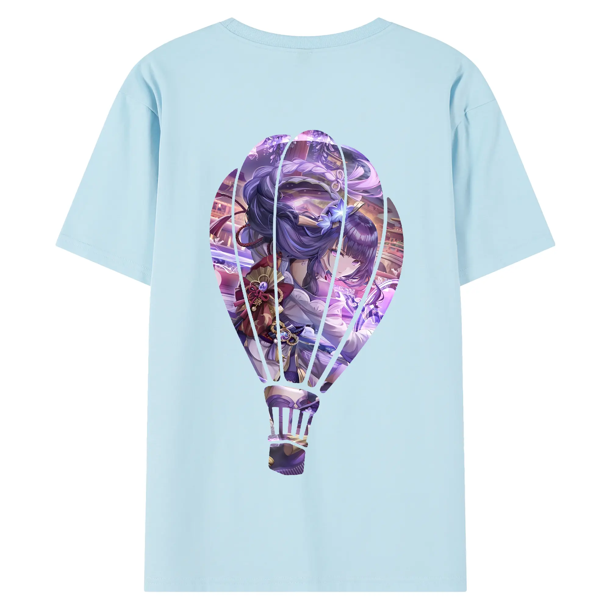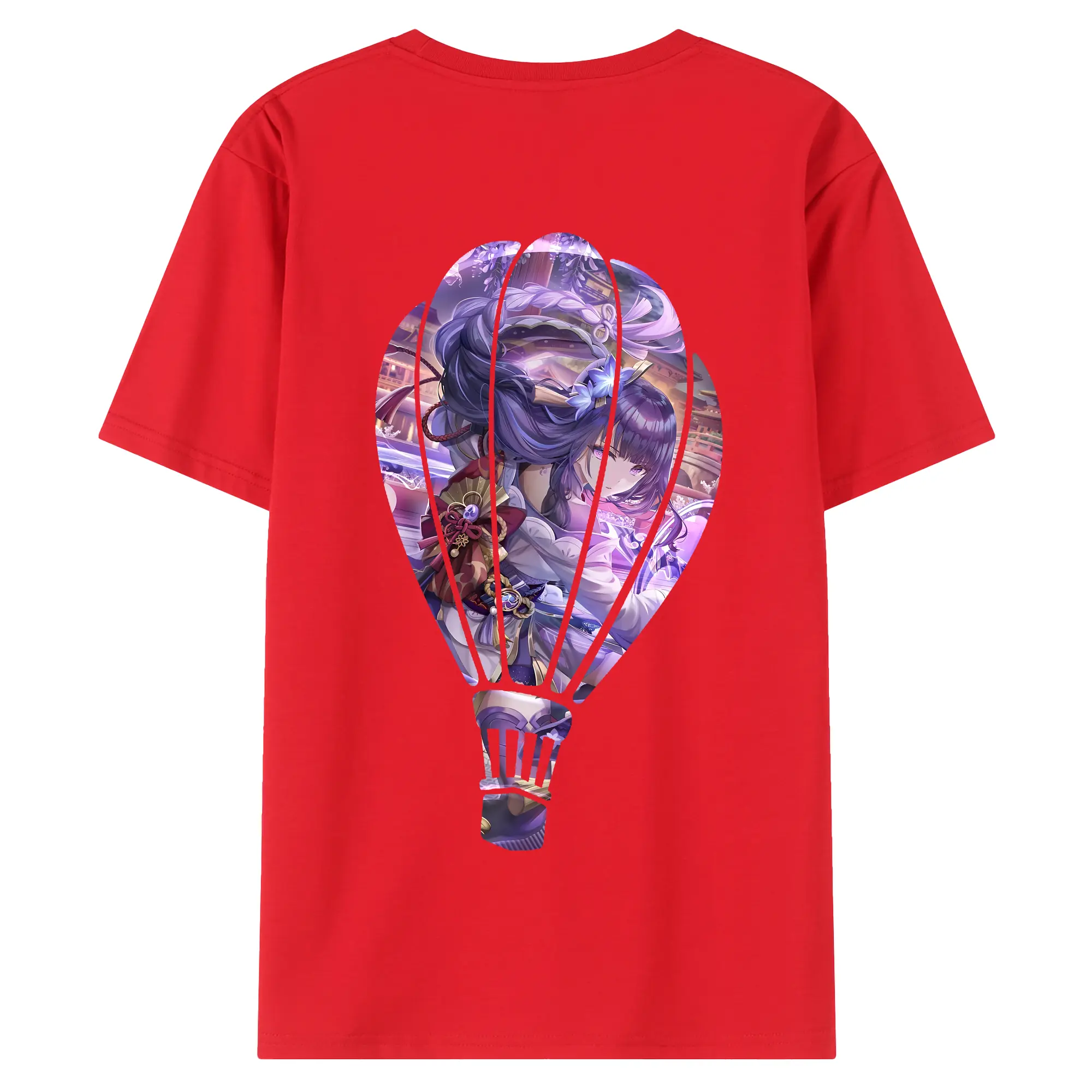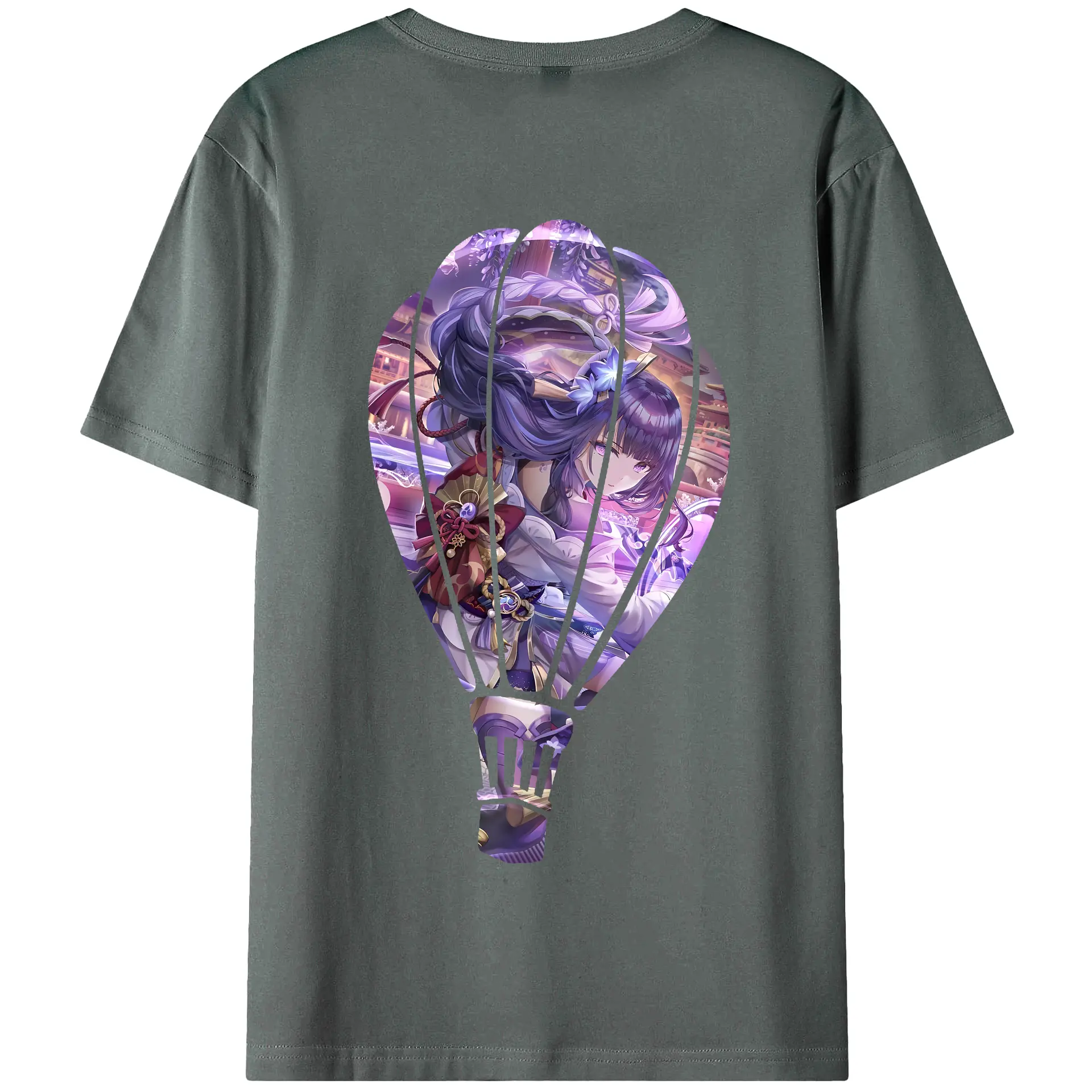 原 神 グッズ 雷電将軍 - 綿100% 半袖Tシャツ ・ フロントプリント ・ 快適 通気性 ・ 日常使い 散歩 スポーツ用