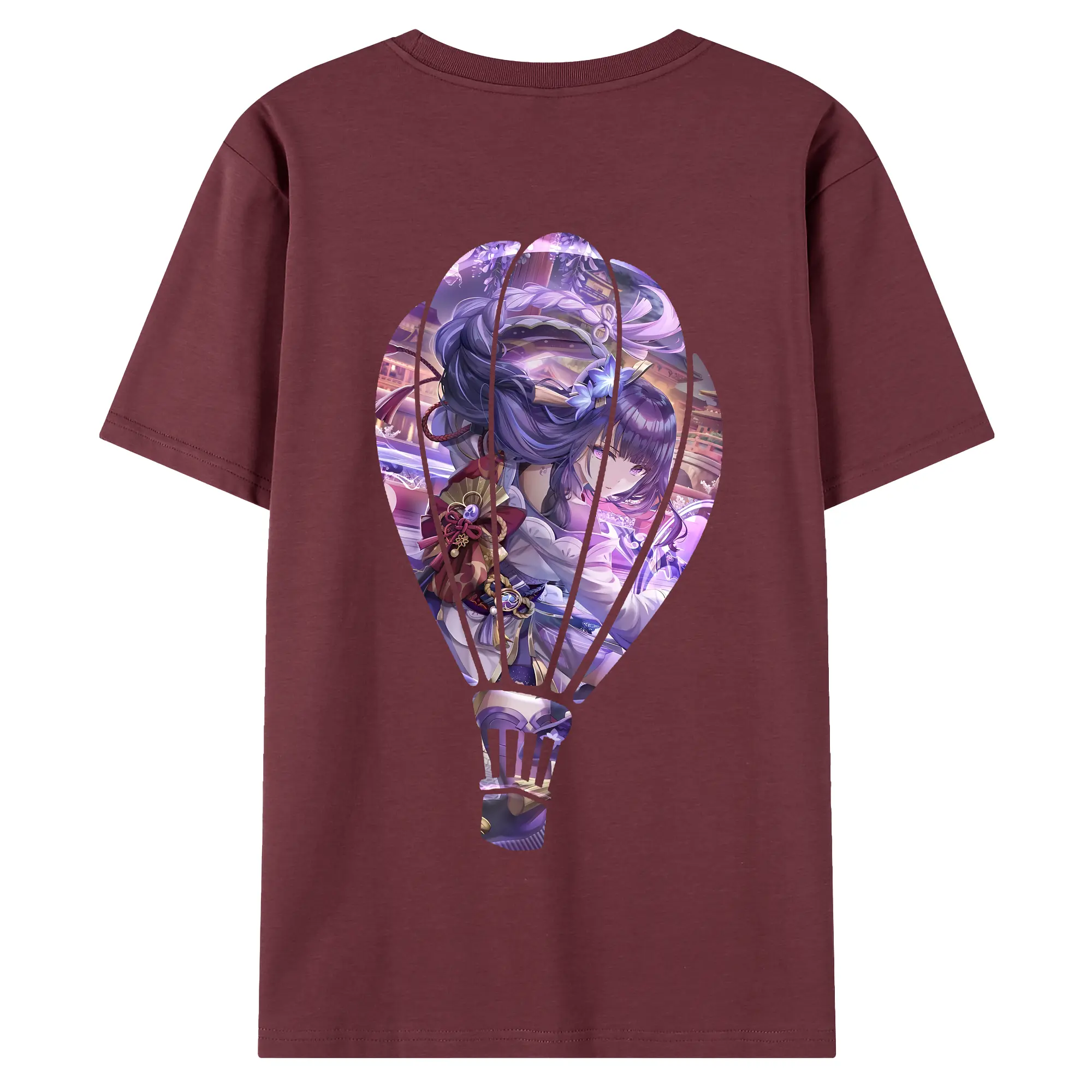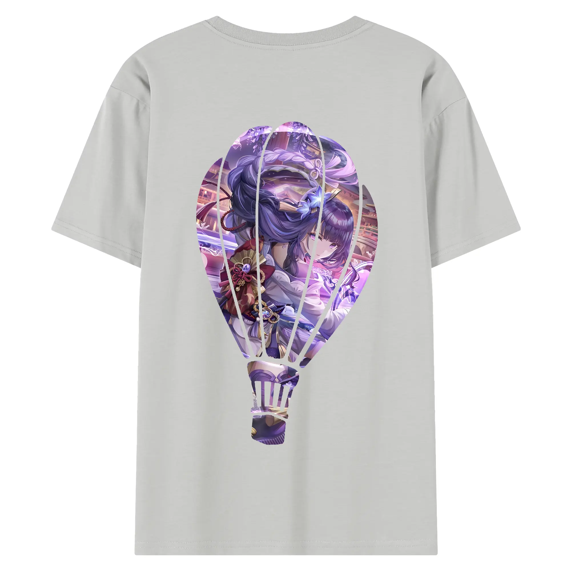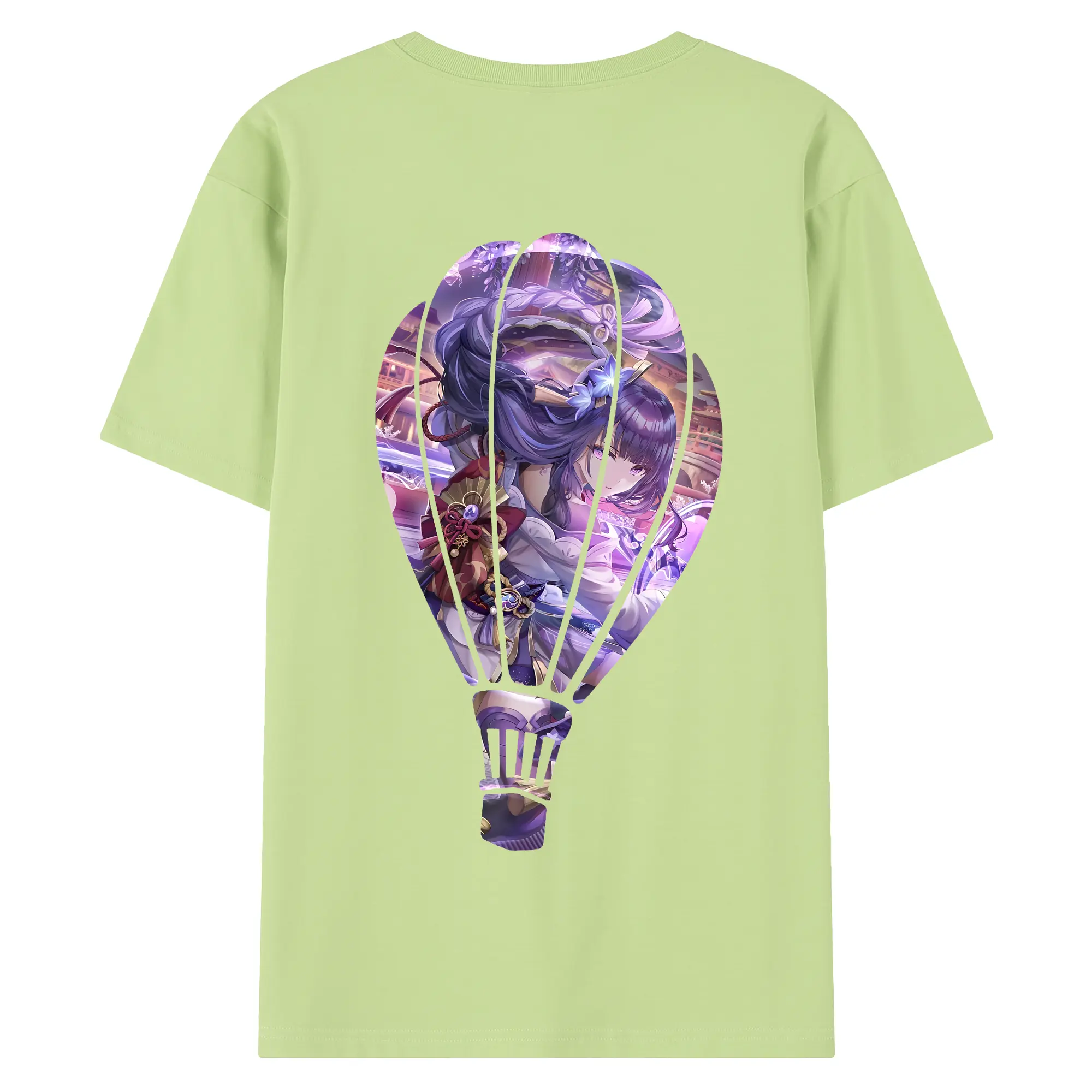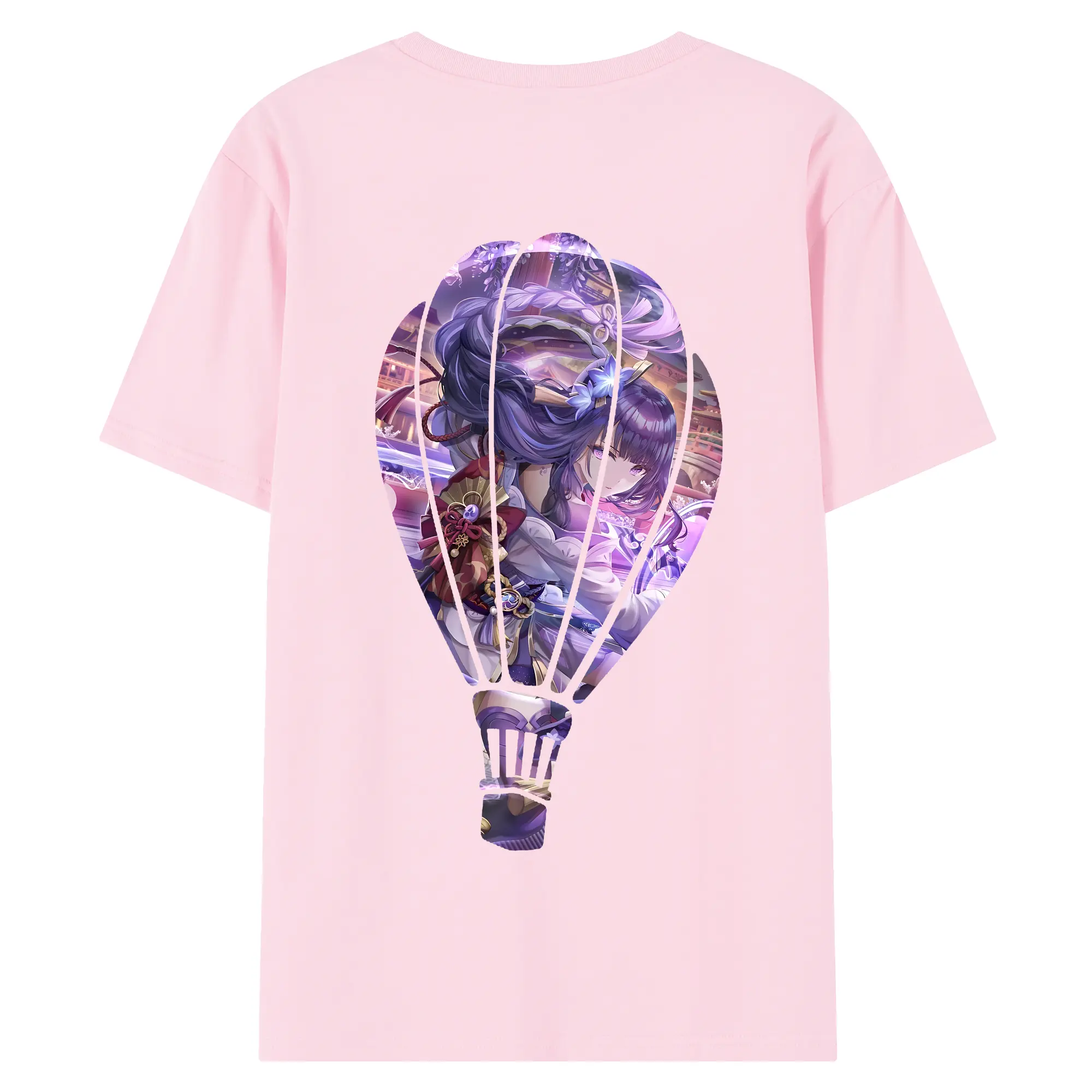 原 神 グッズ 雷電将軍 - 綿100% 半袖Tシャツ ・ フロントプリント ・ 快適 通気性 ・ 日常使い 散歩 スポーツ用