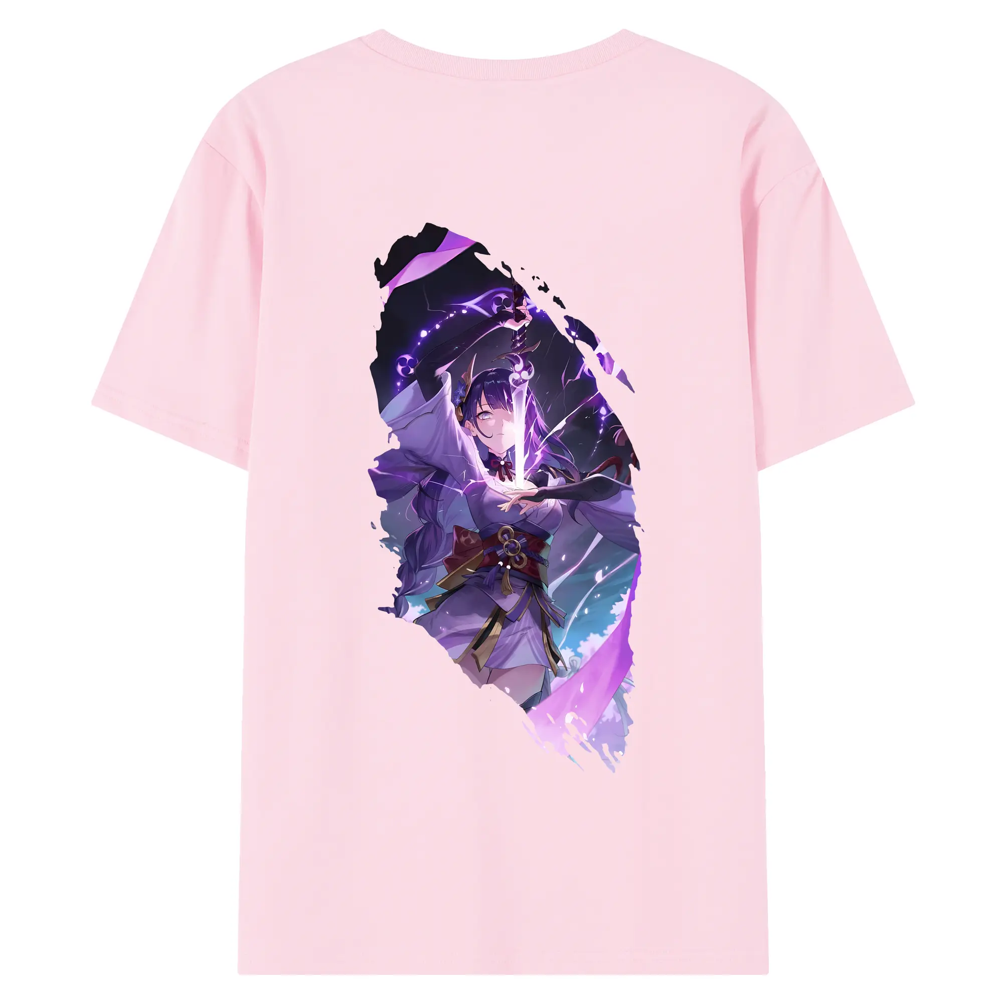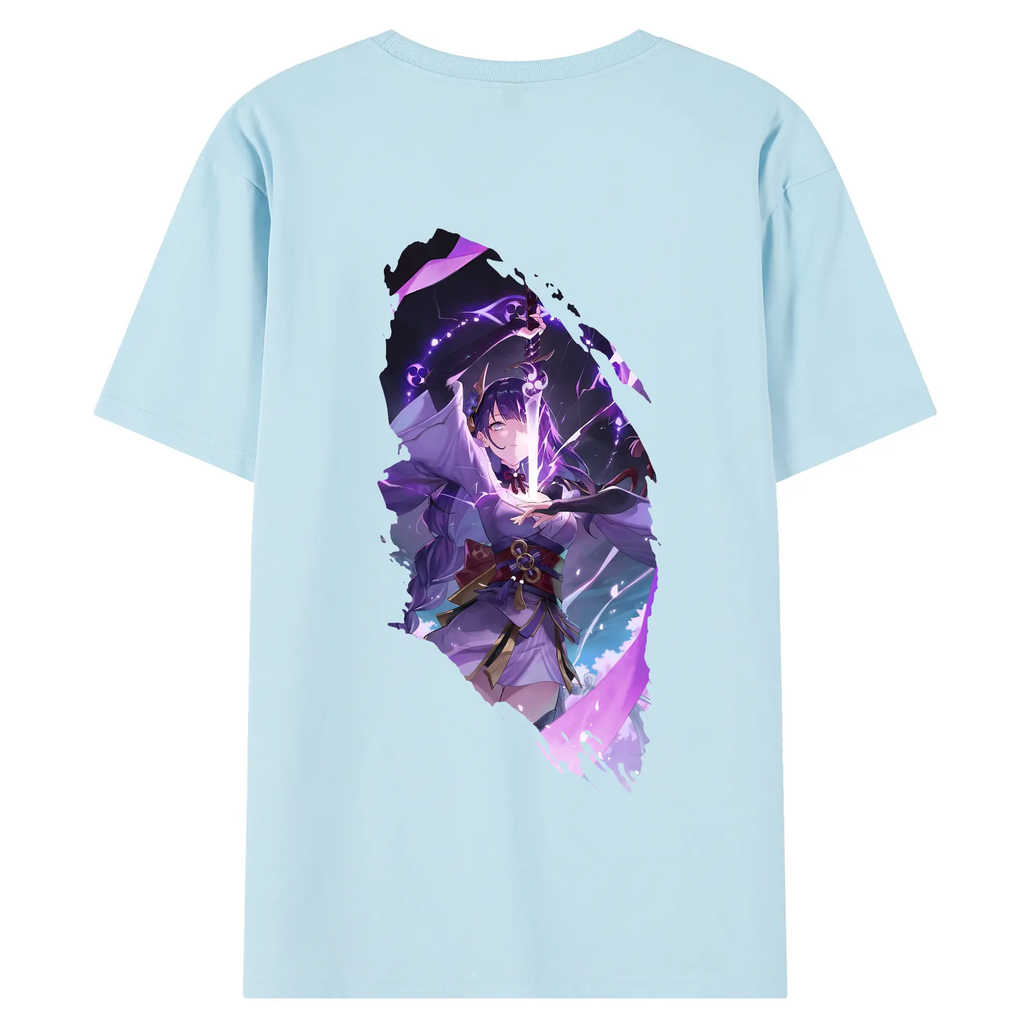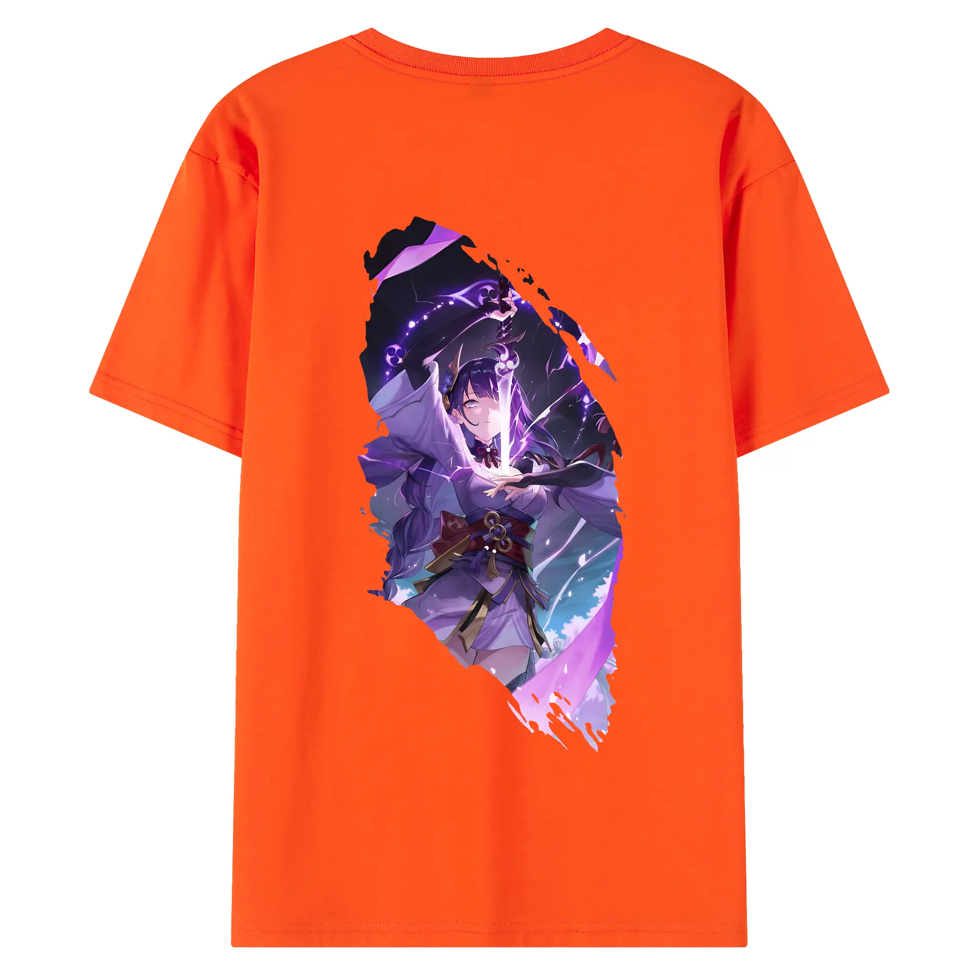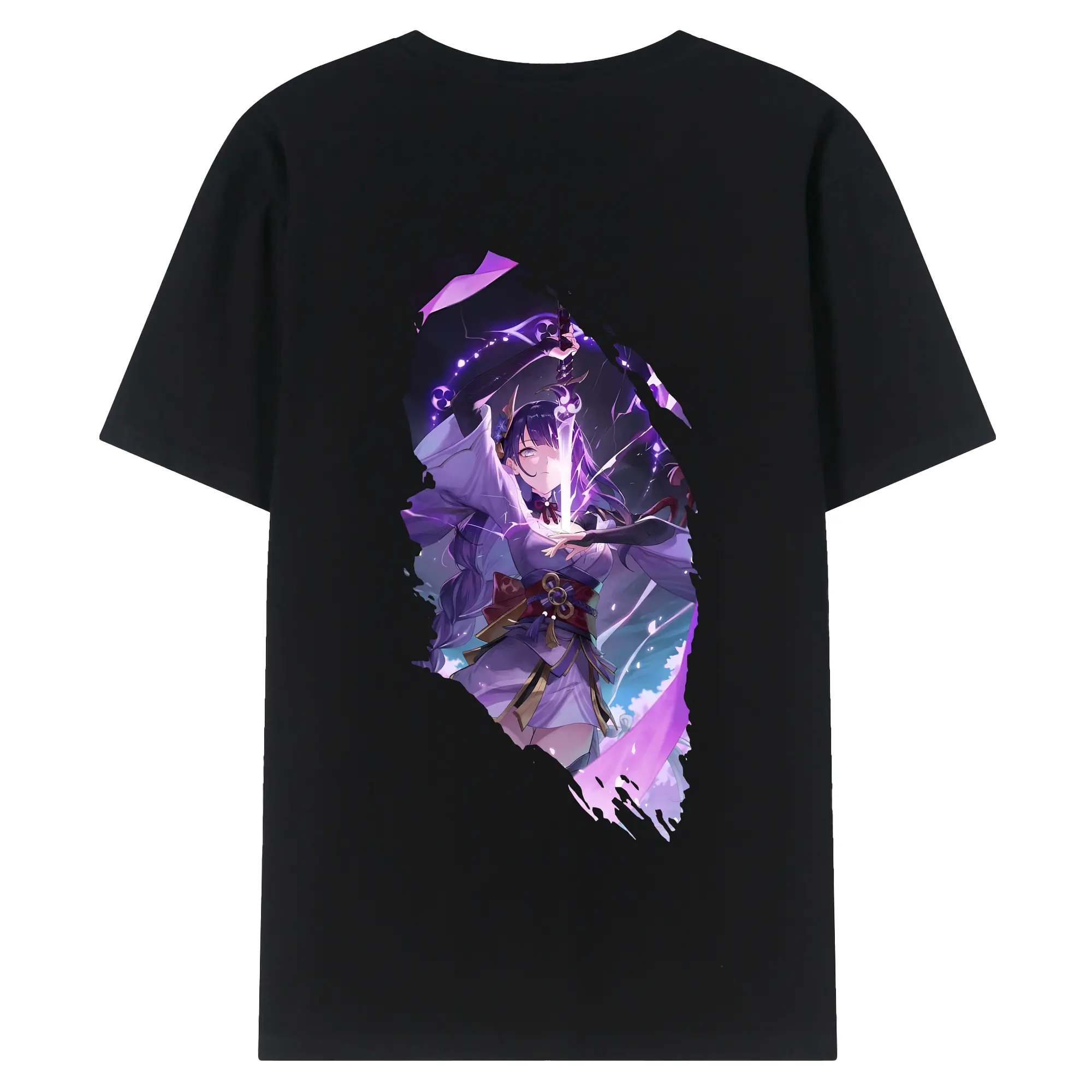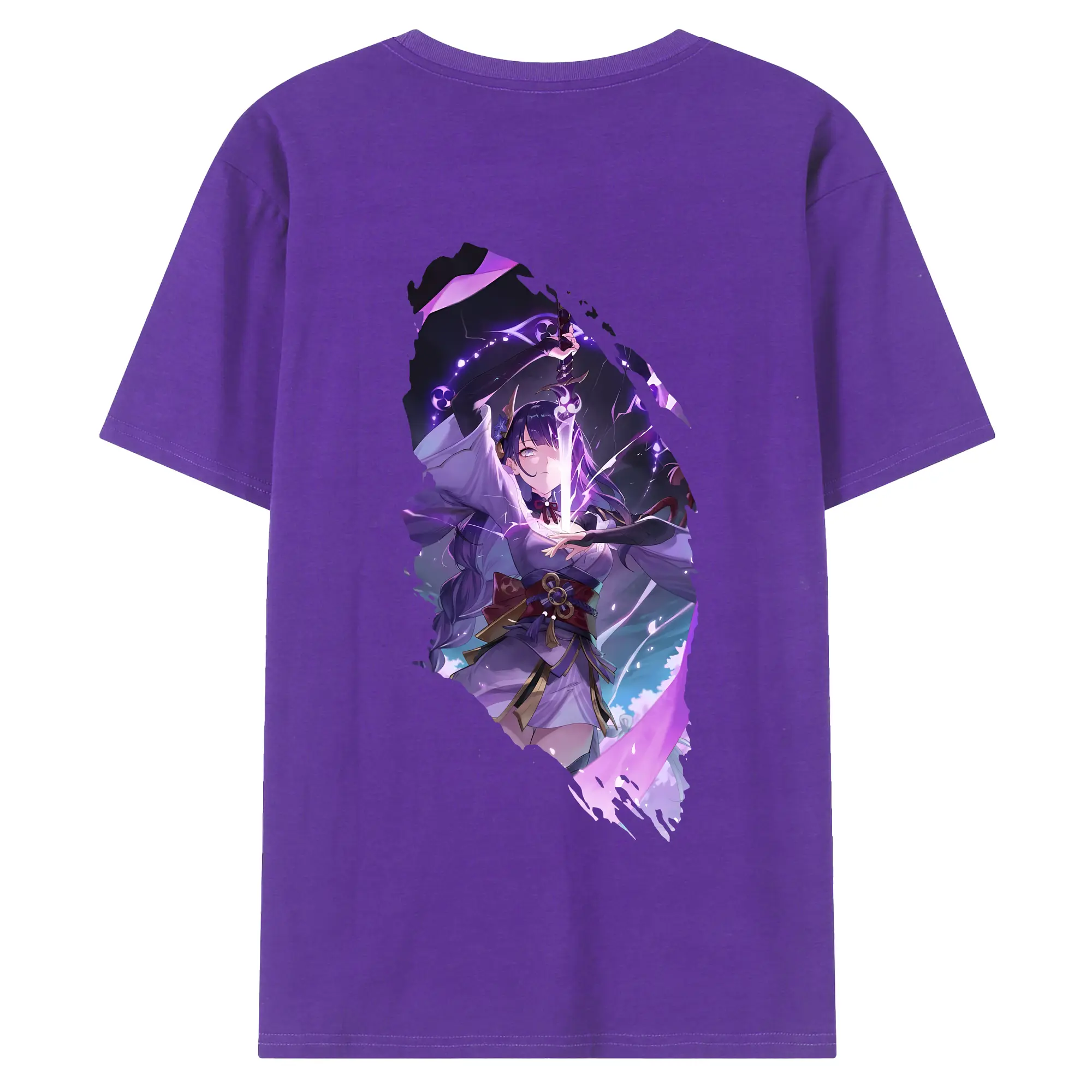 原 神 グッズ 雷電将軍 - 綿100% 半袖Tシャツ ・ フロントプリント ・ 快適 通気性 ・ 日常使い 散歩 スポーツ用