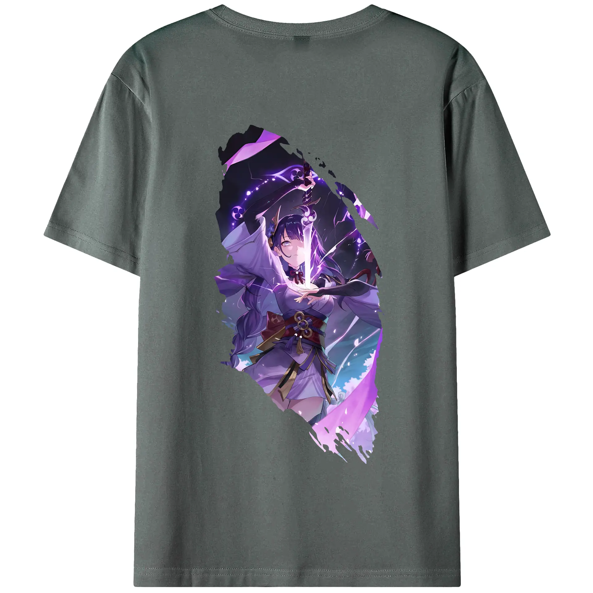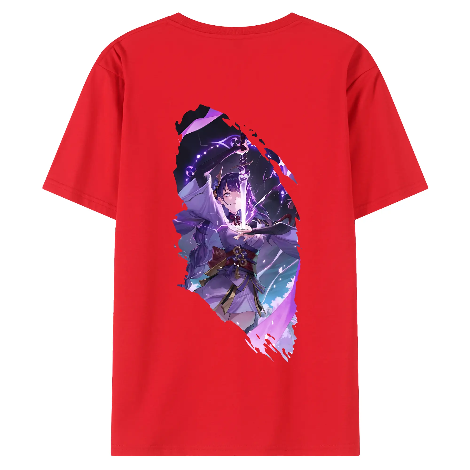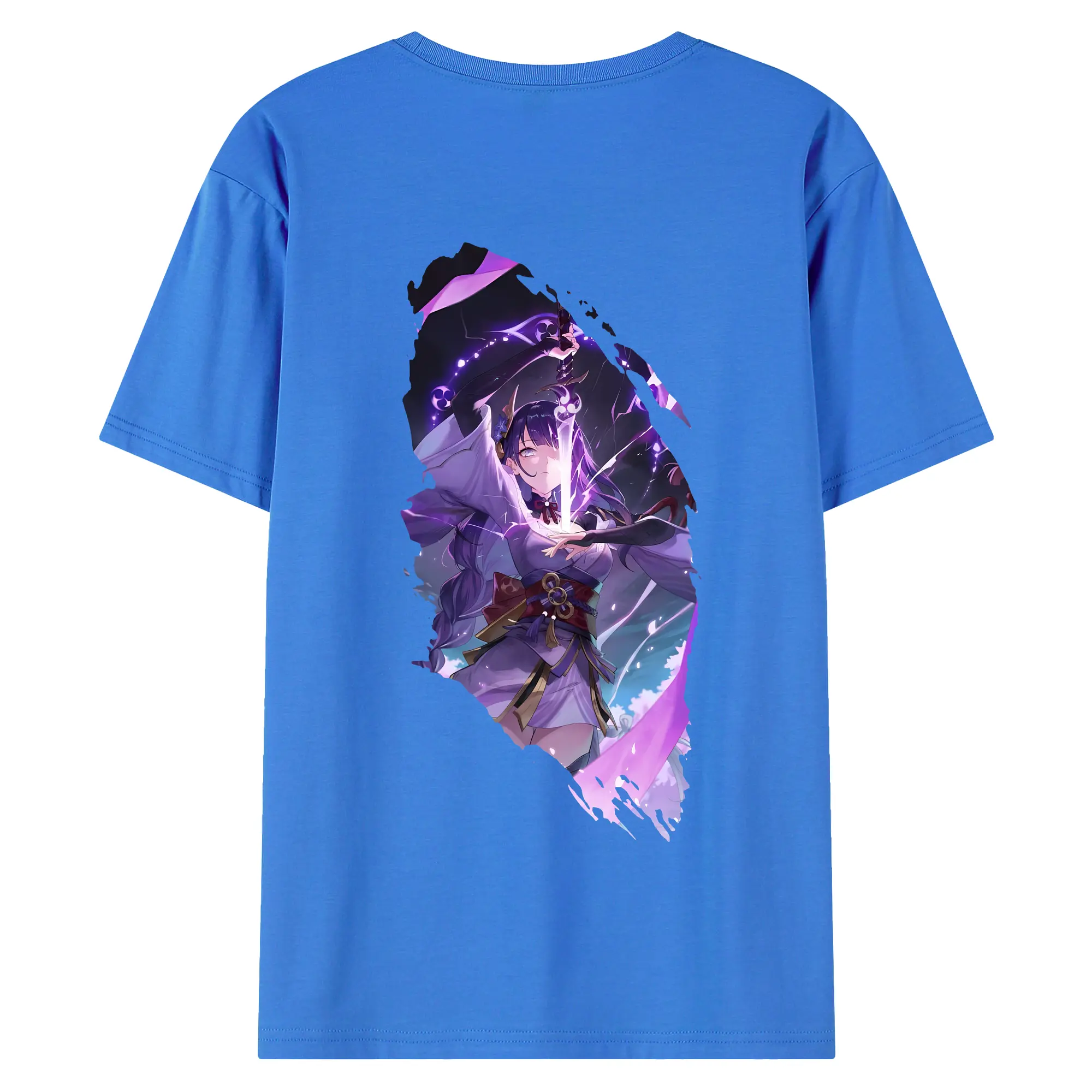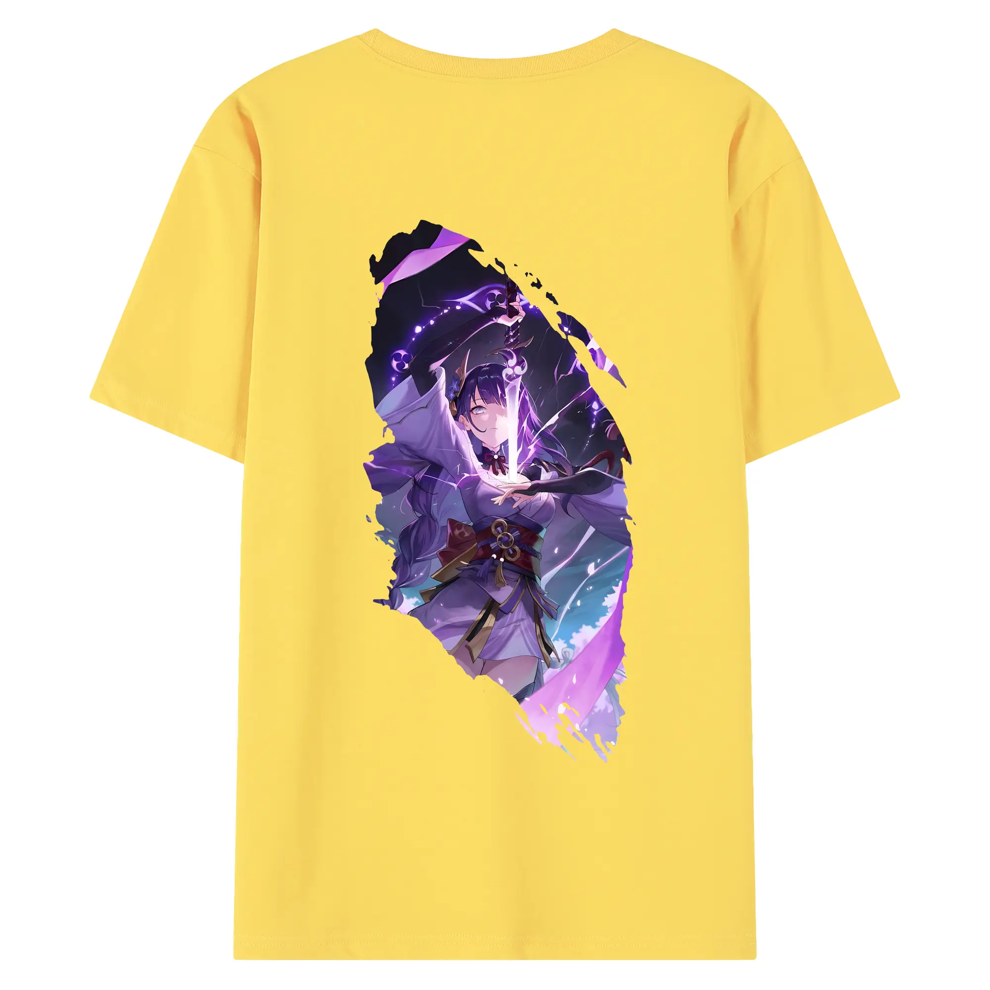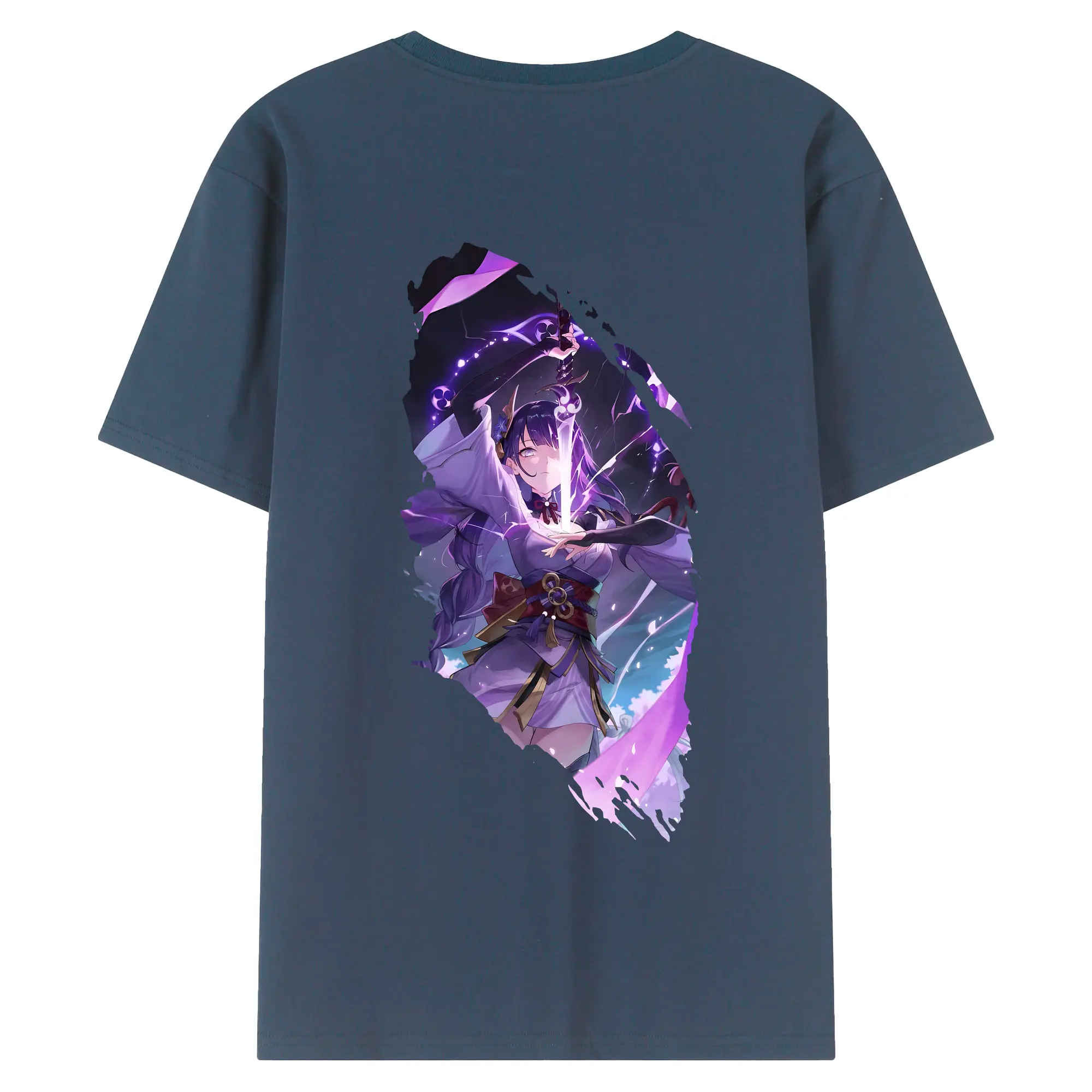 原 神 グッズ 雷電将軍 - 綿100% 半袖Tシャツ ・ フロントプリント ・ 快適 通気性 ・ 日常使い 散歩 スポーツ用