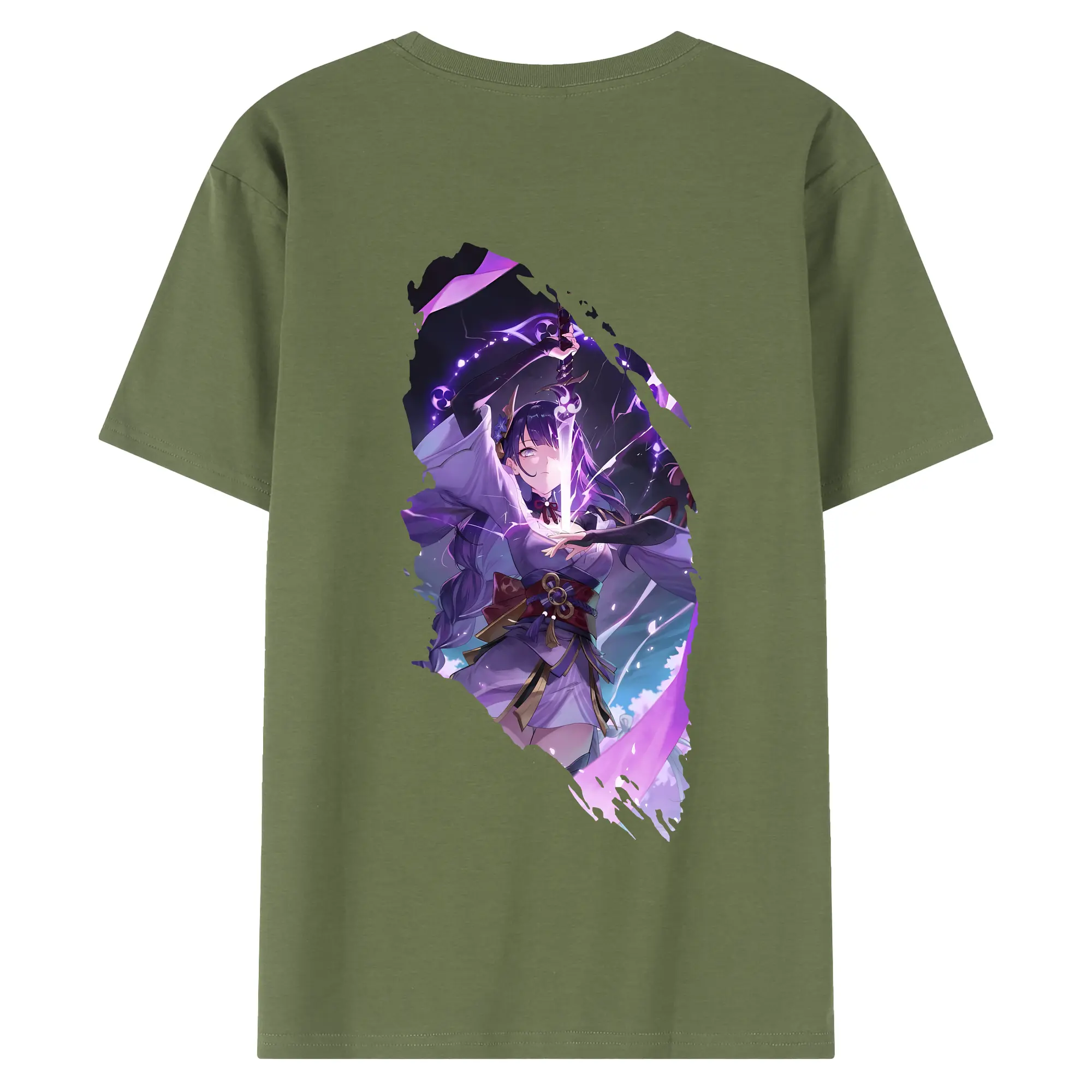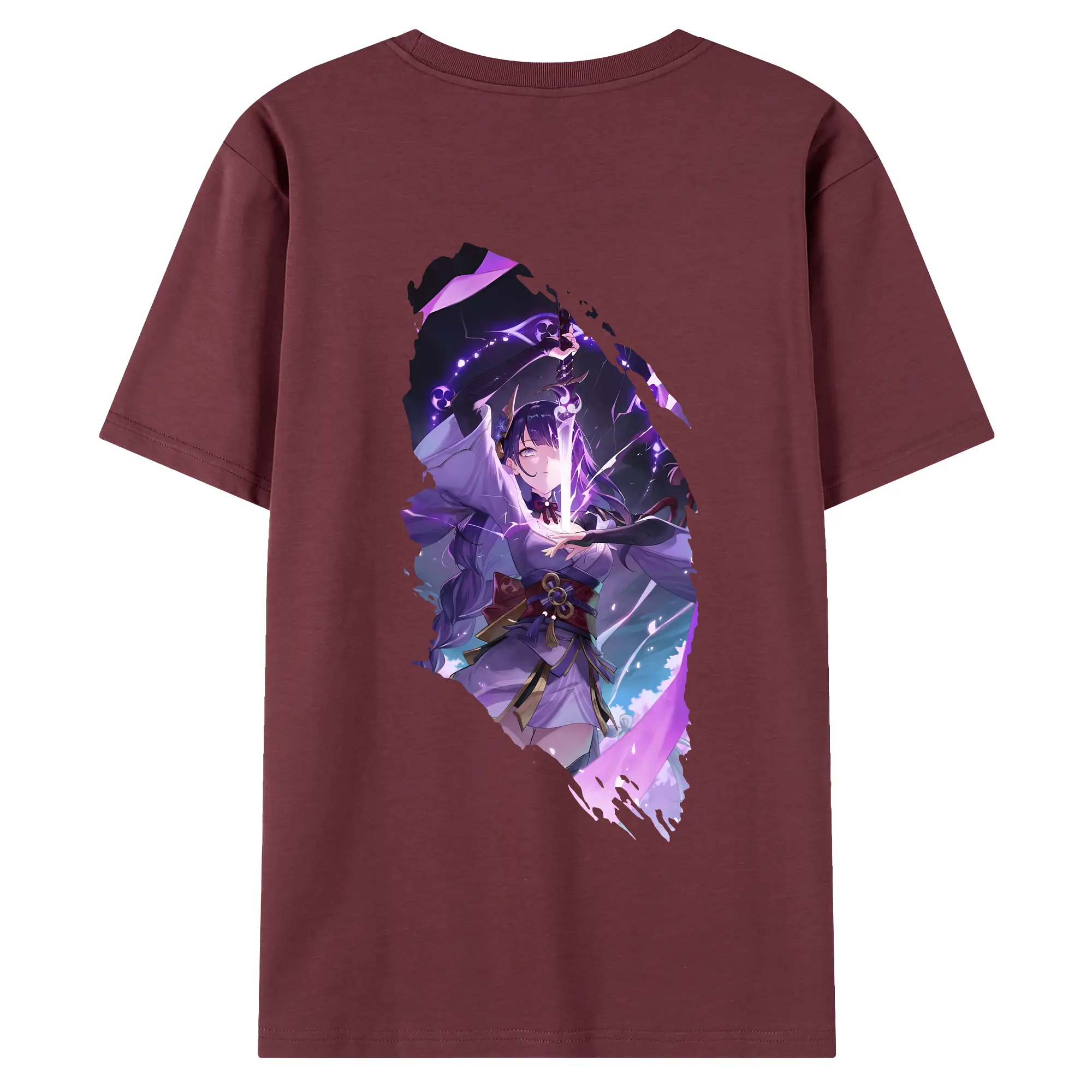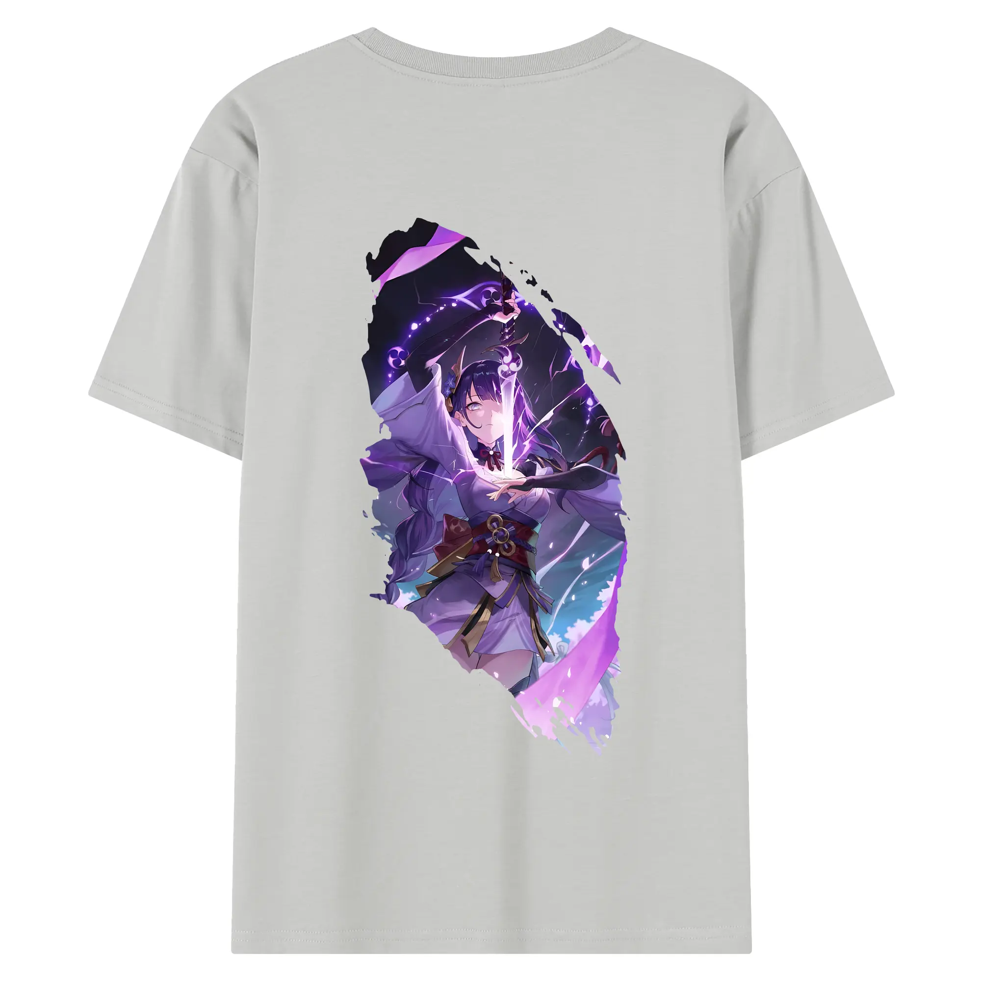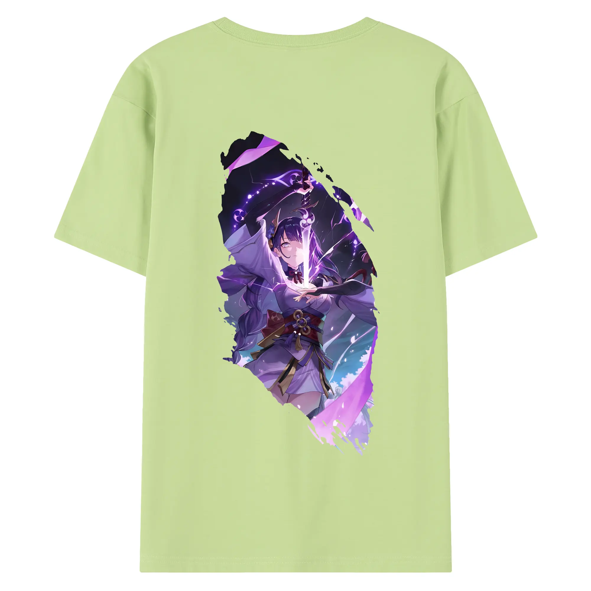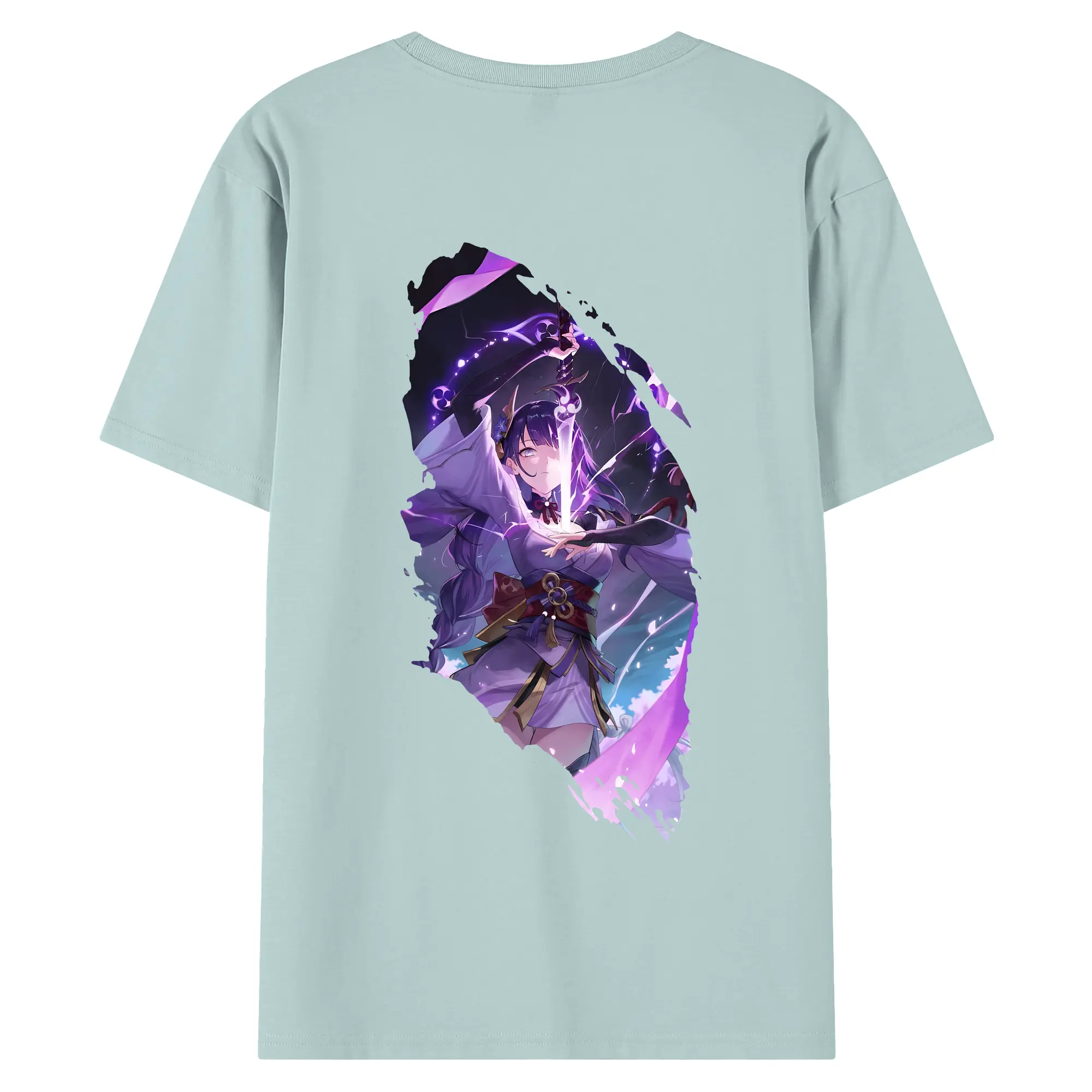原 神 グッズ 雷電将軍 - 綿100% 半袖Tシャツ ・ フロントプリント ・ 快適 通気性 ・ 日常使い 散歩 スポーツ用