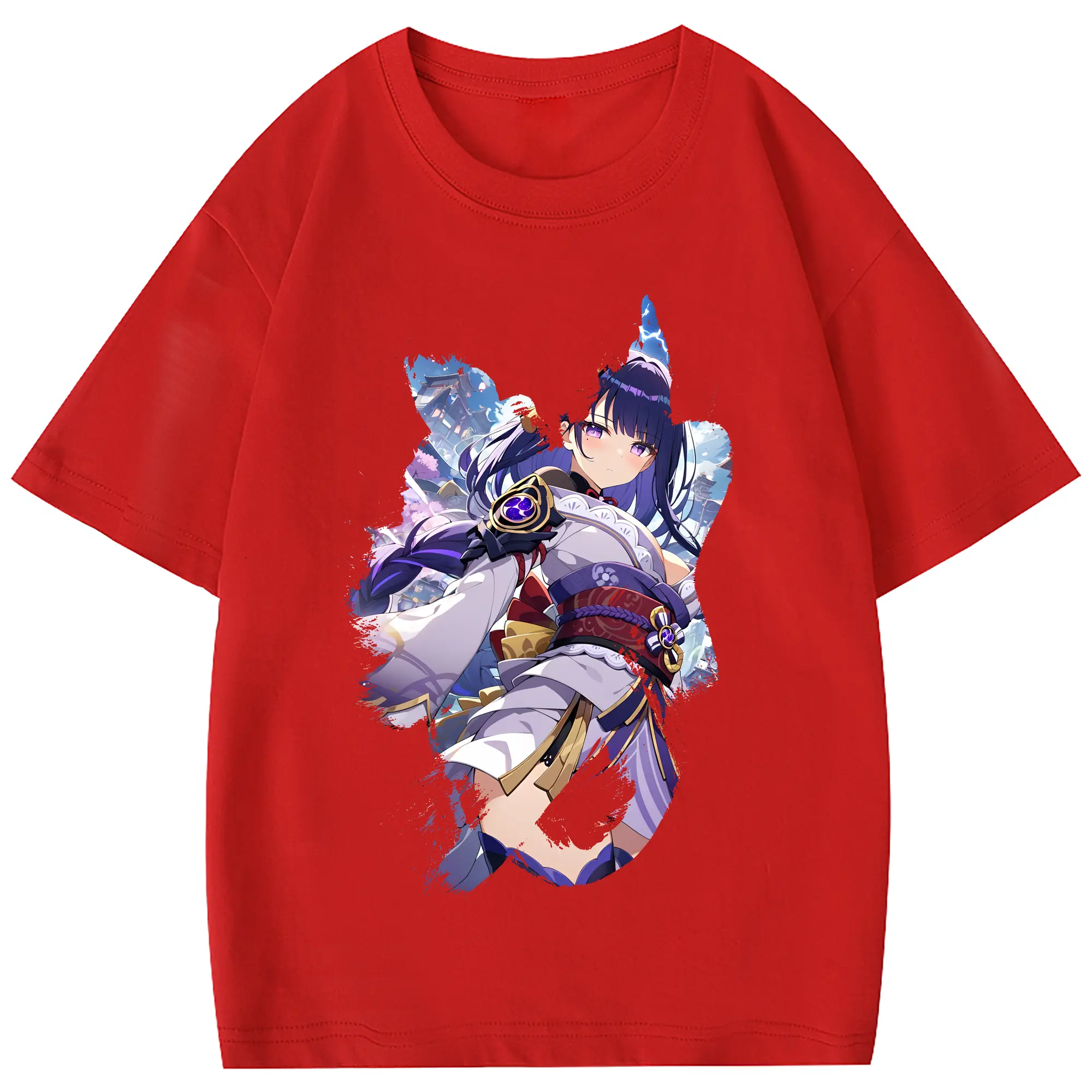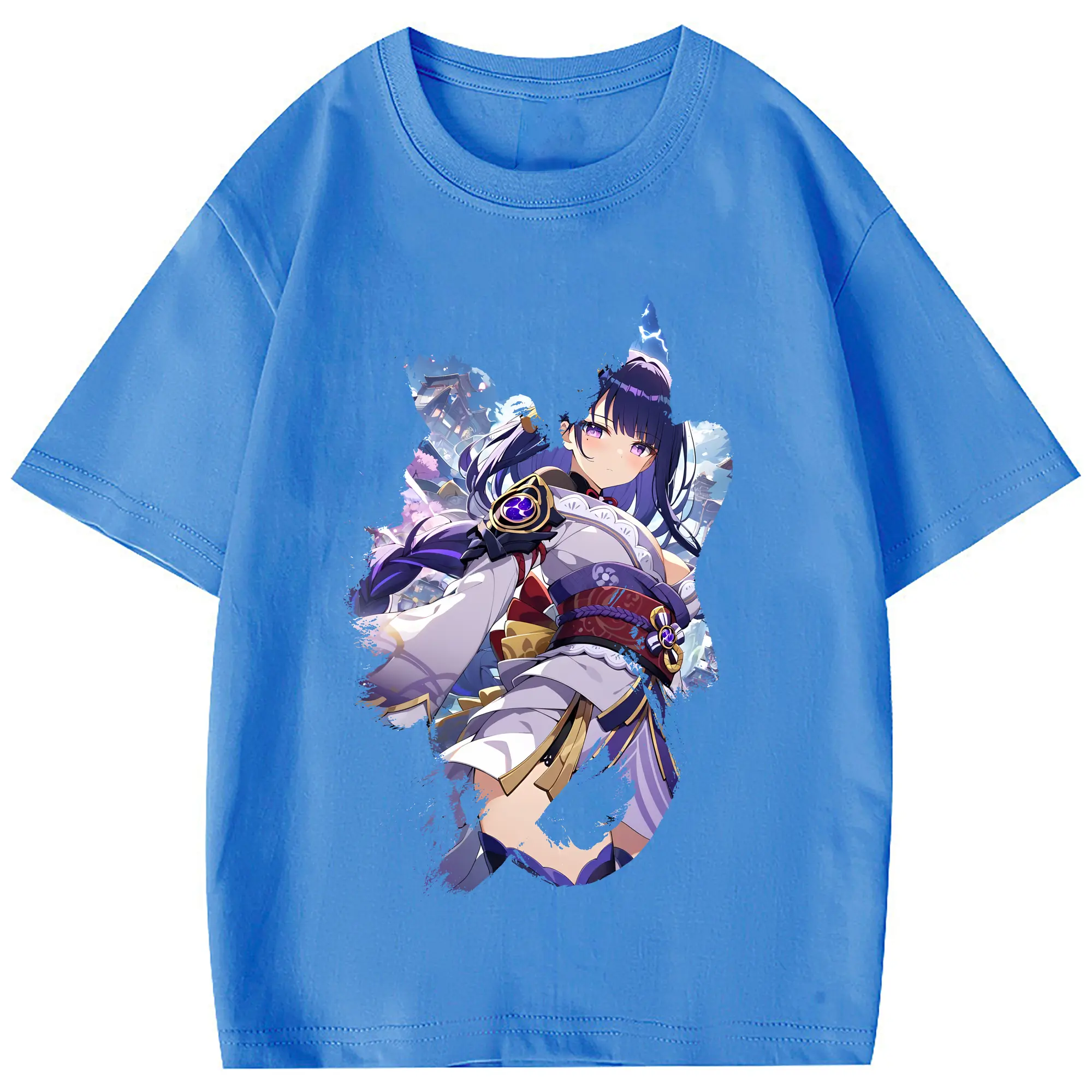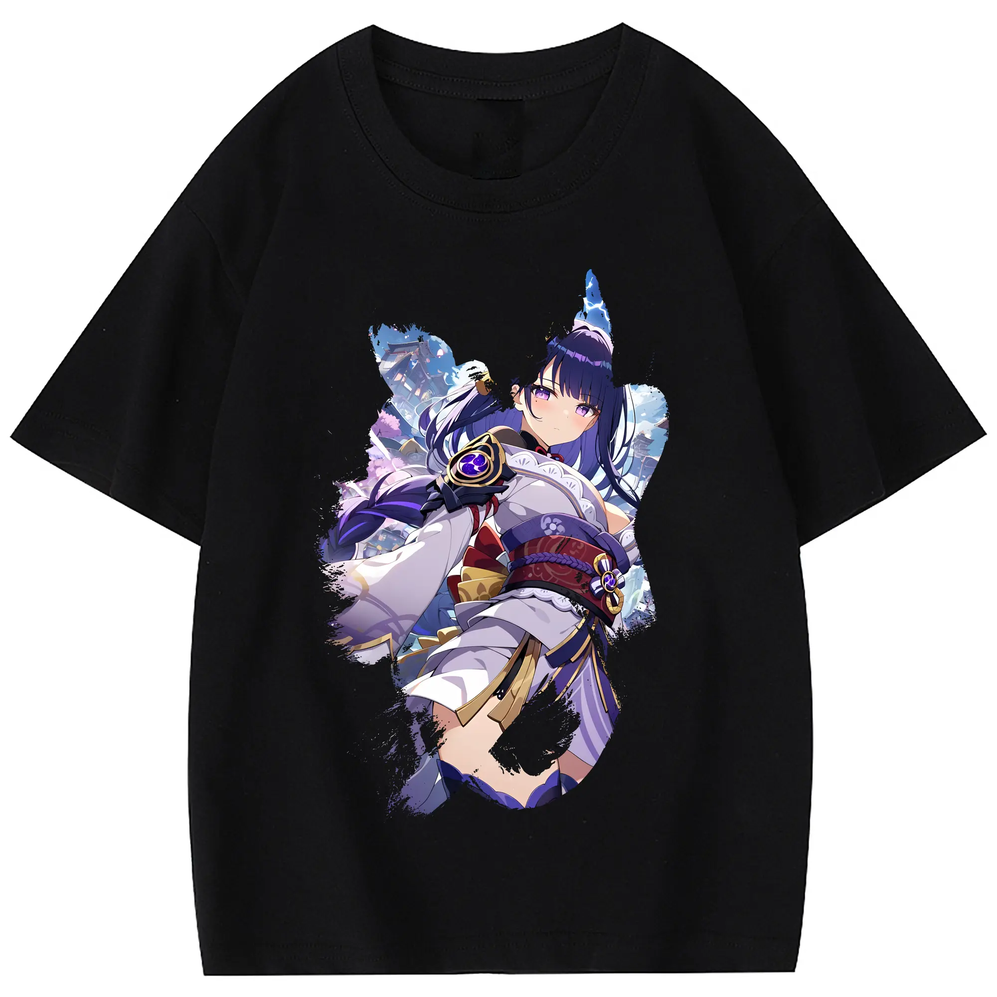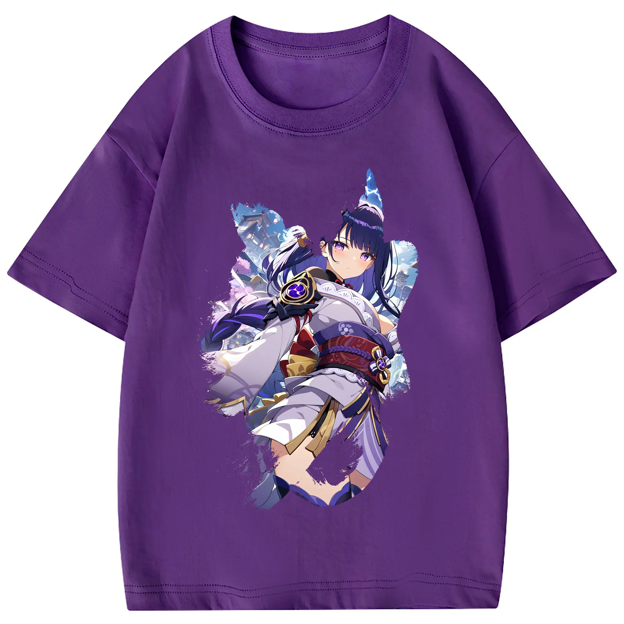 原 神 グッズ 雷電将軍 - 綿100% 半袖Tシャツ ・ フロントプリント ・ 快適 通気性 ・ 日常使い 散歩 スポーツ用