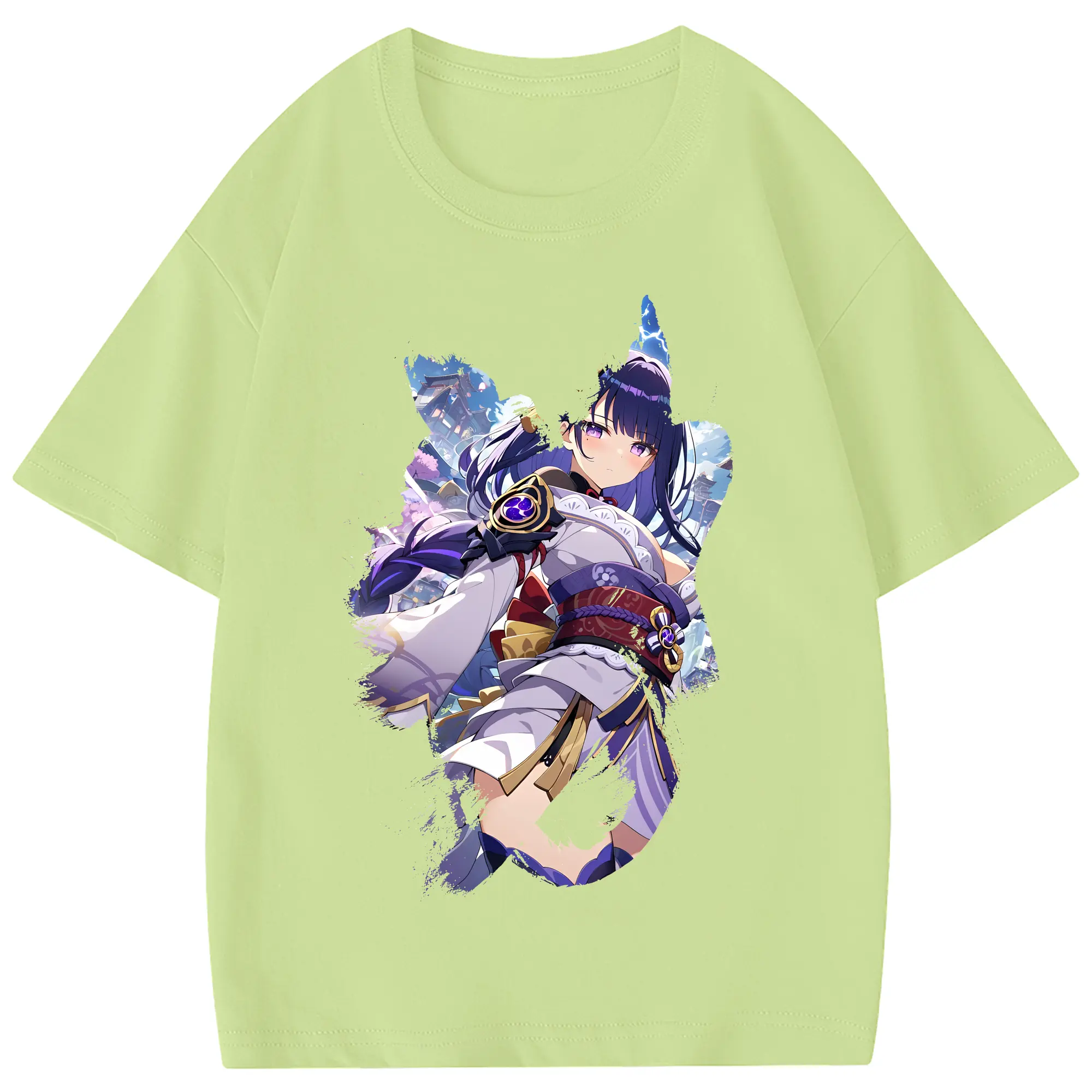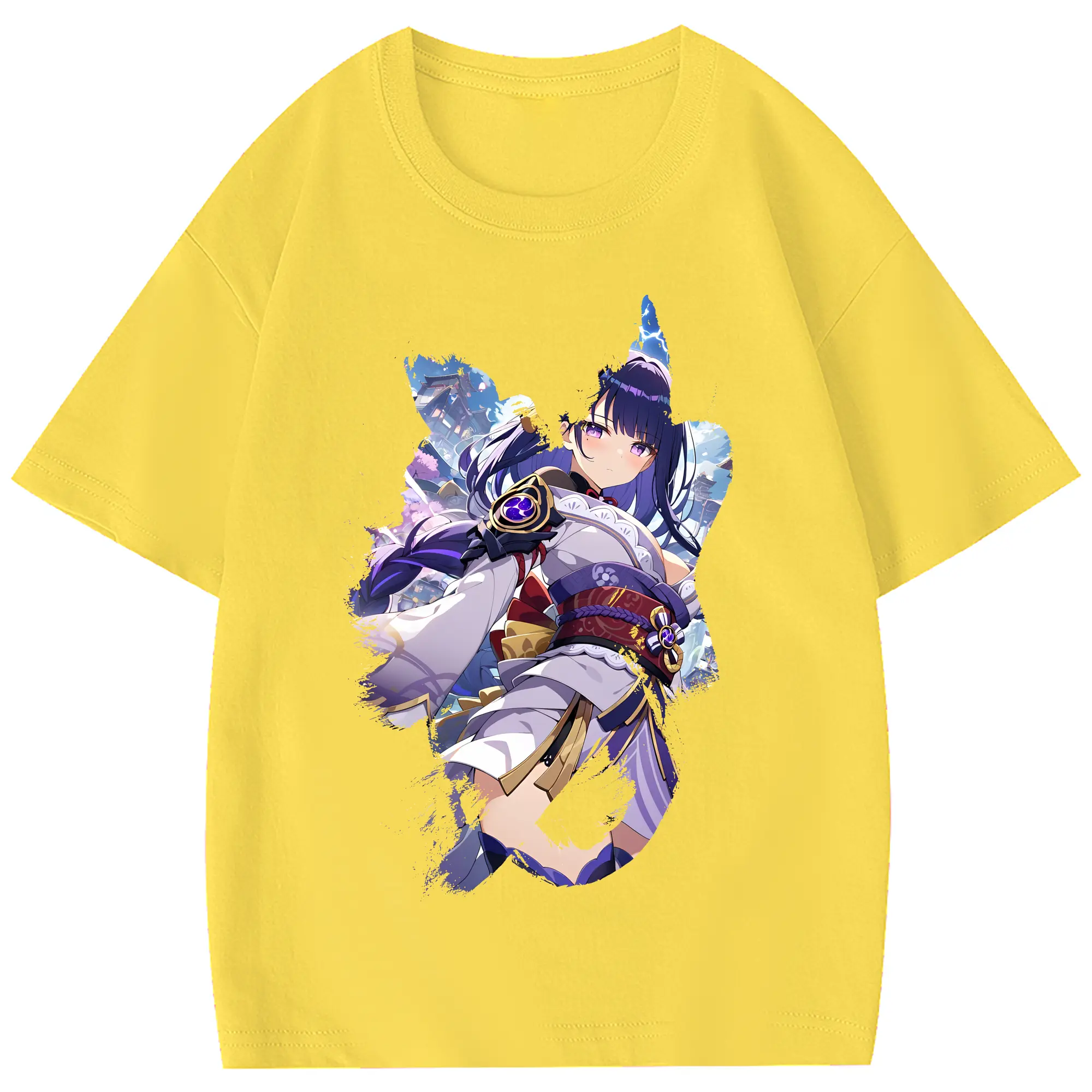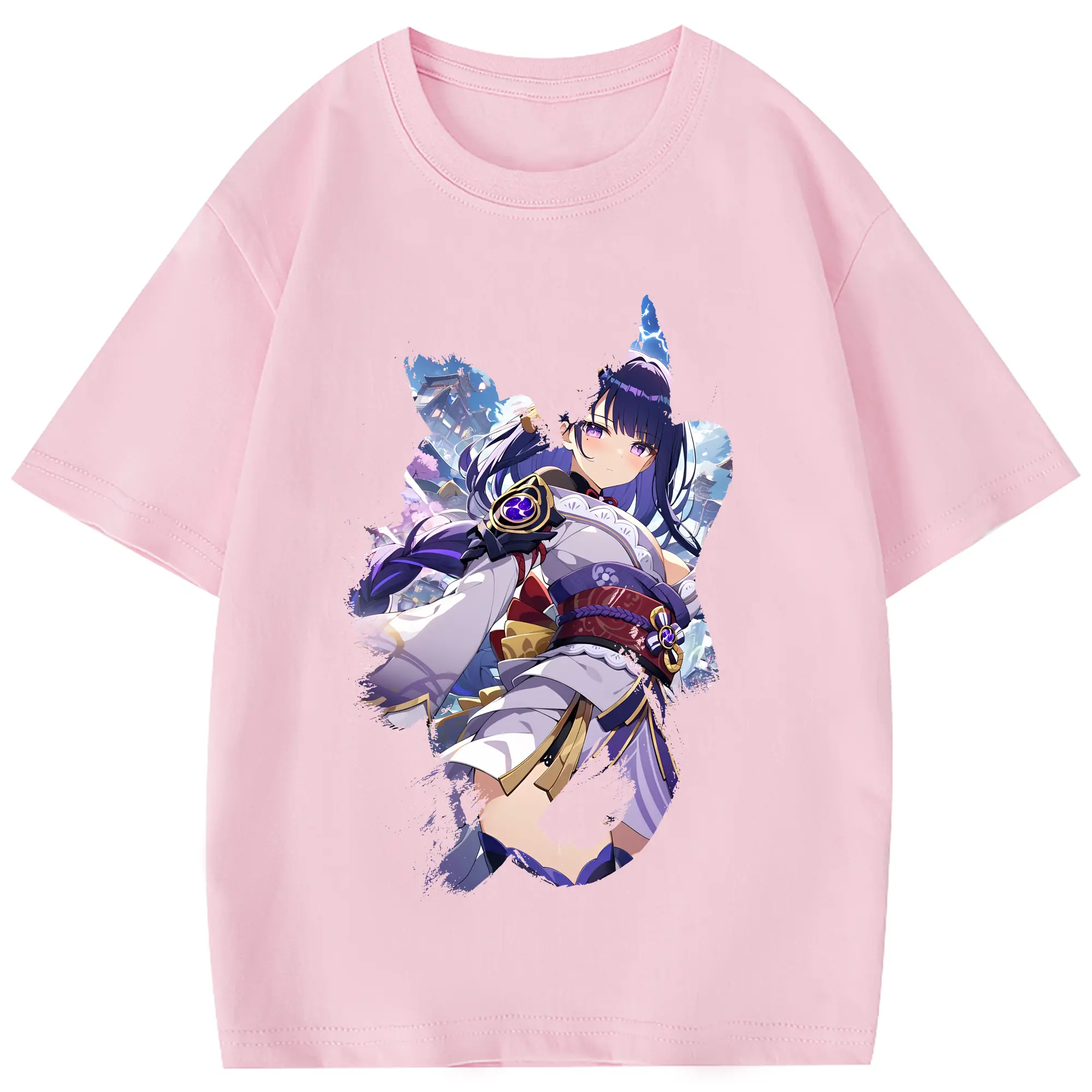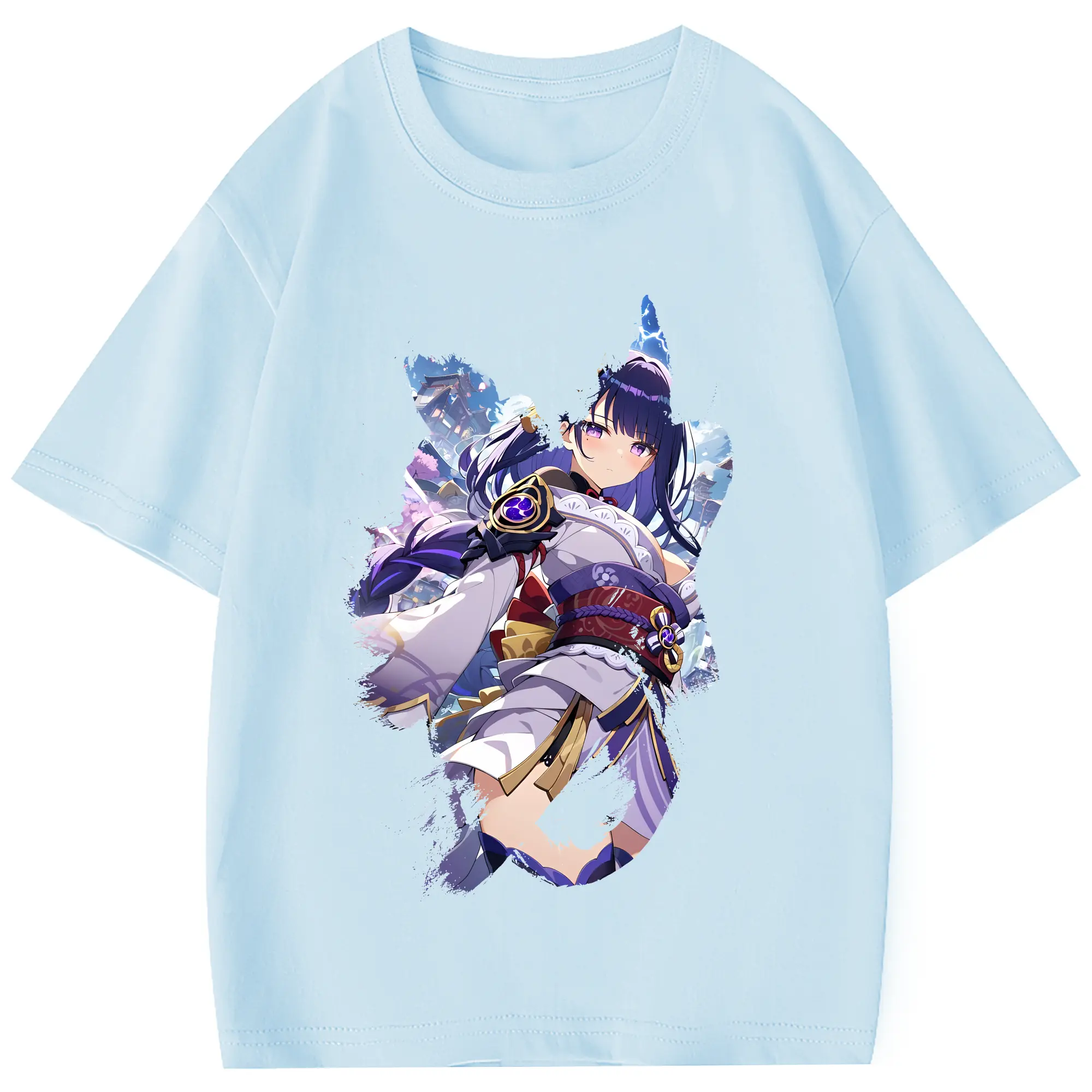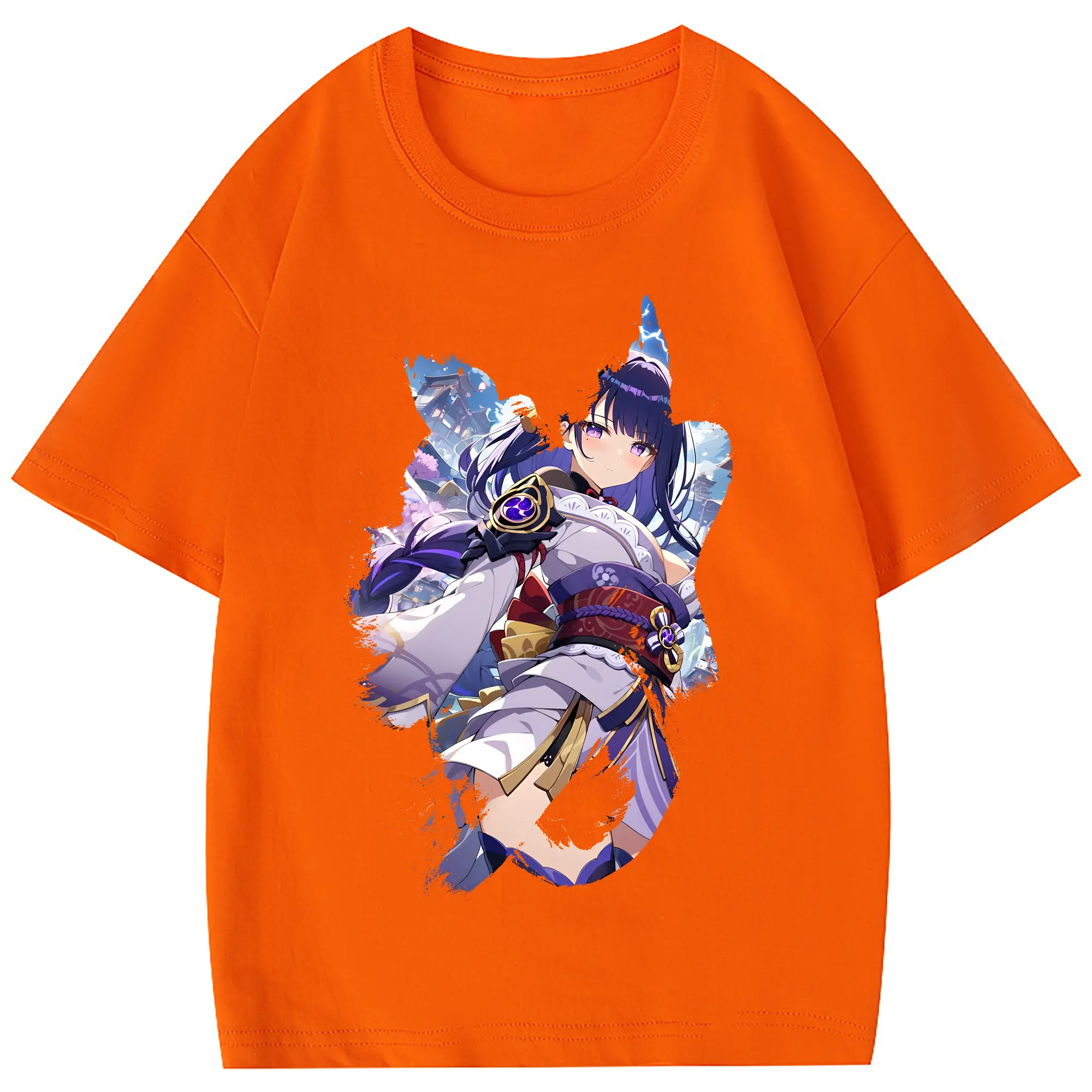 原 神 グッズ 雷電将軍 - 綿100% 半袖Tシャツ ・ フロントプリント ・ 快適 通気性 ・ 日常使い 散歩 スポーツ用