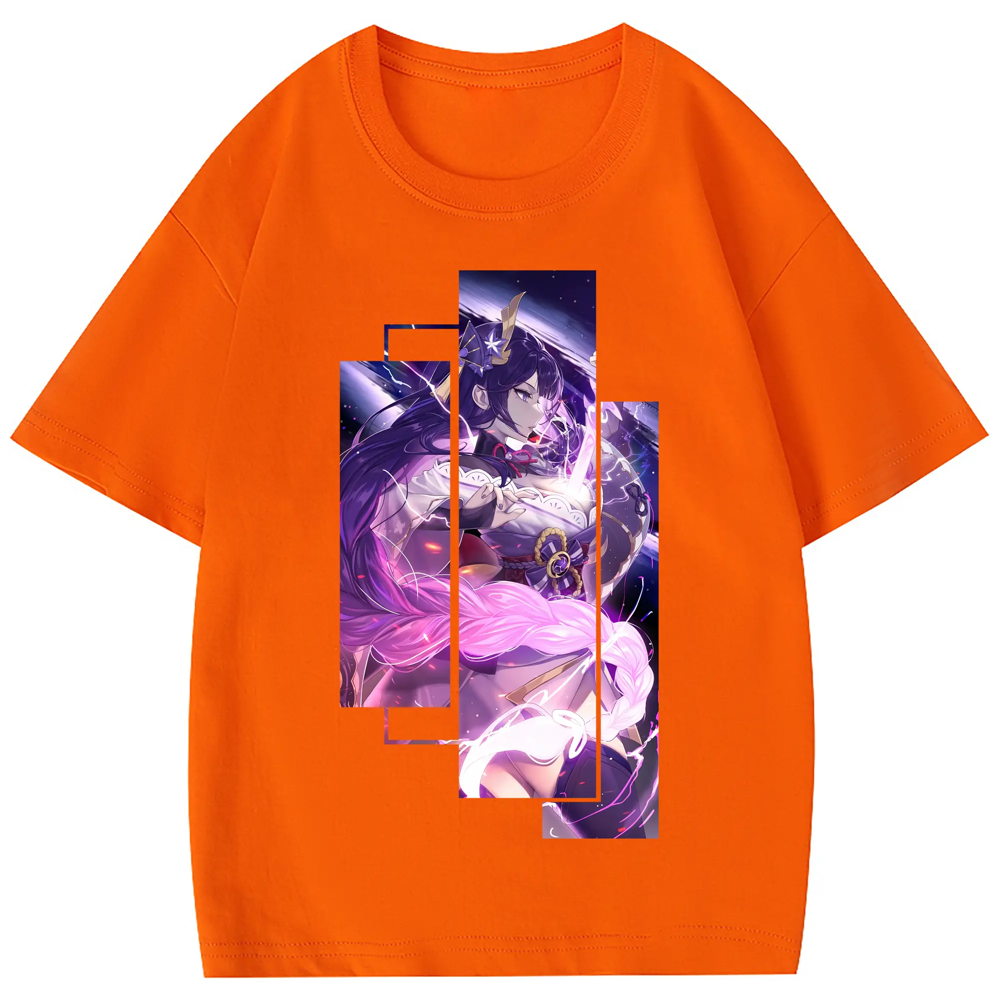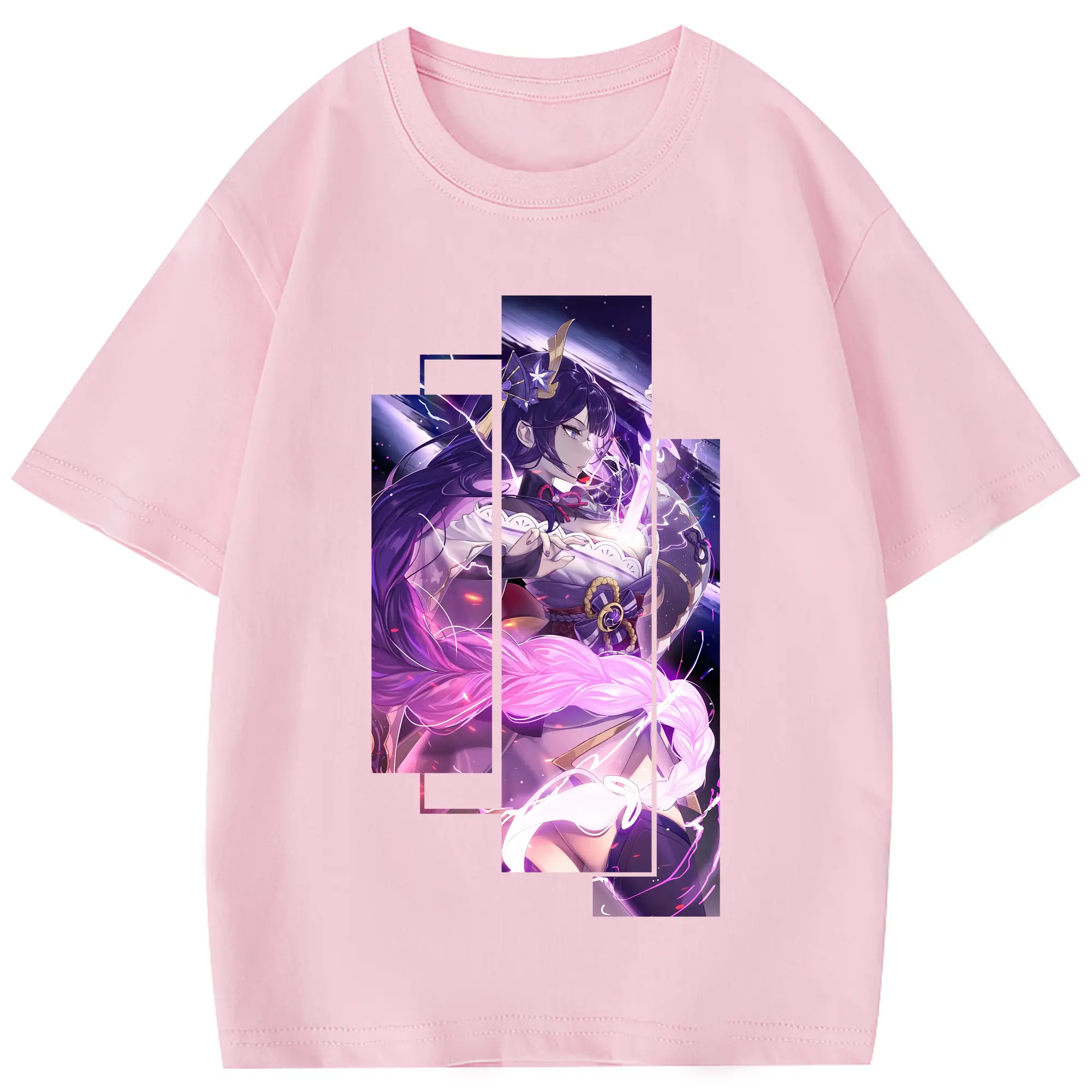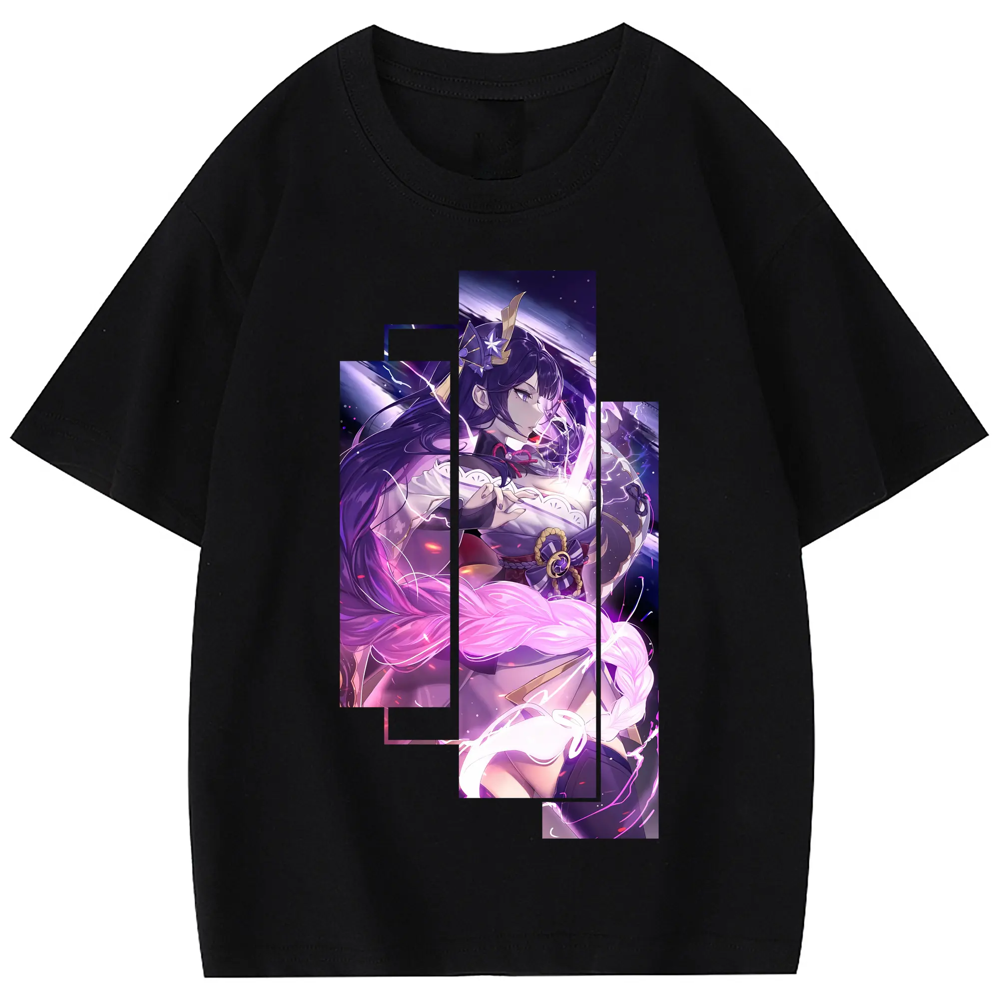原 神 グッズ 雷電将軍 - 綿100% 半袖Tシャツ ・ フロントプリント ・ 快適 通気性 ・ 日常使い 散歩 スポーツ用
