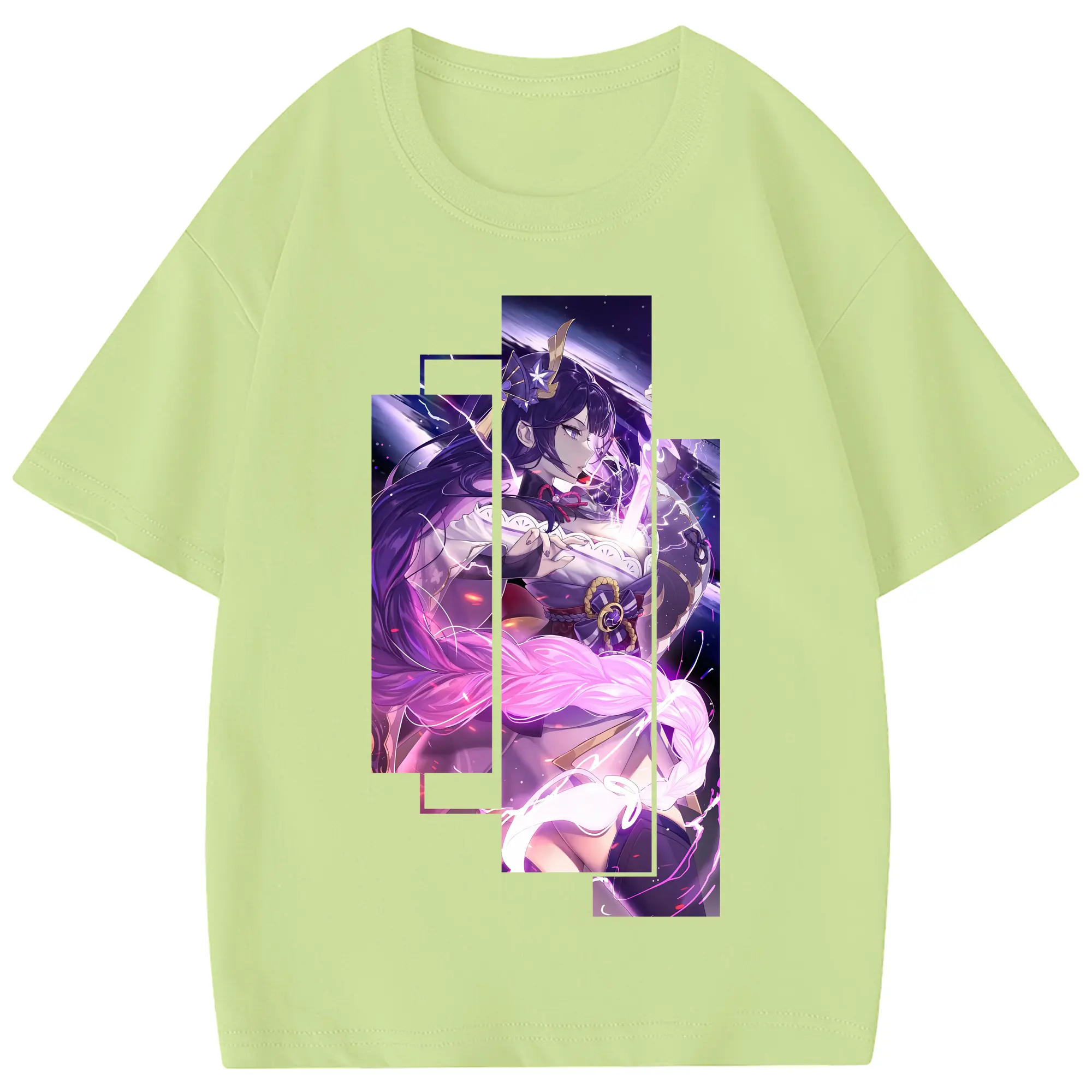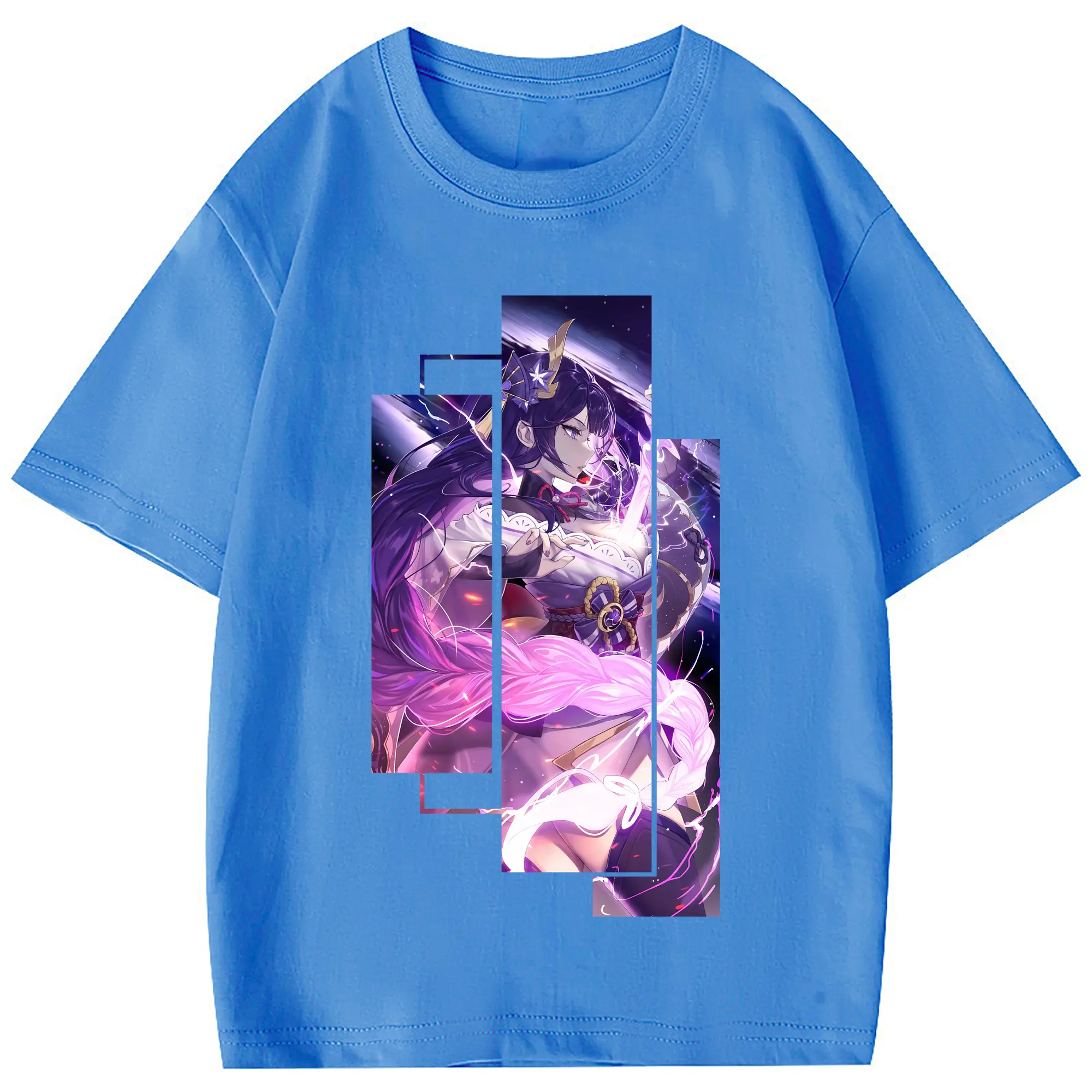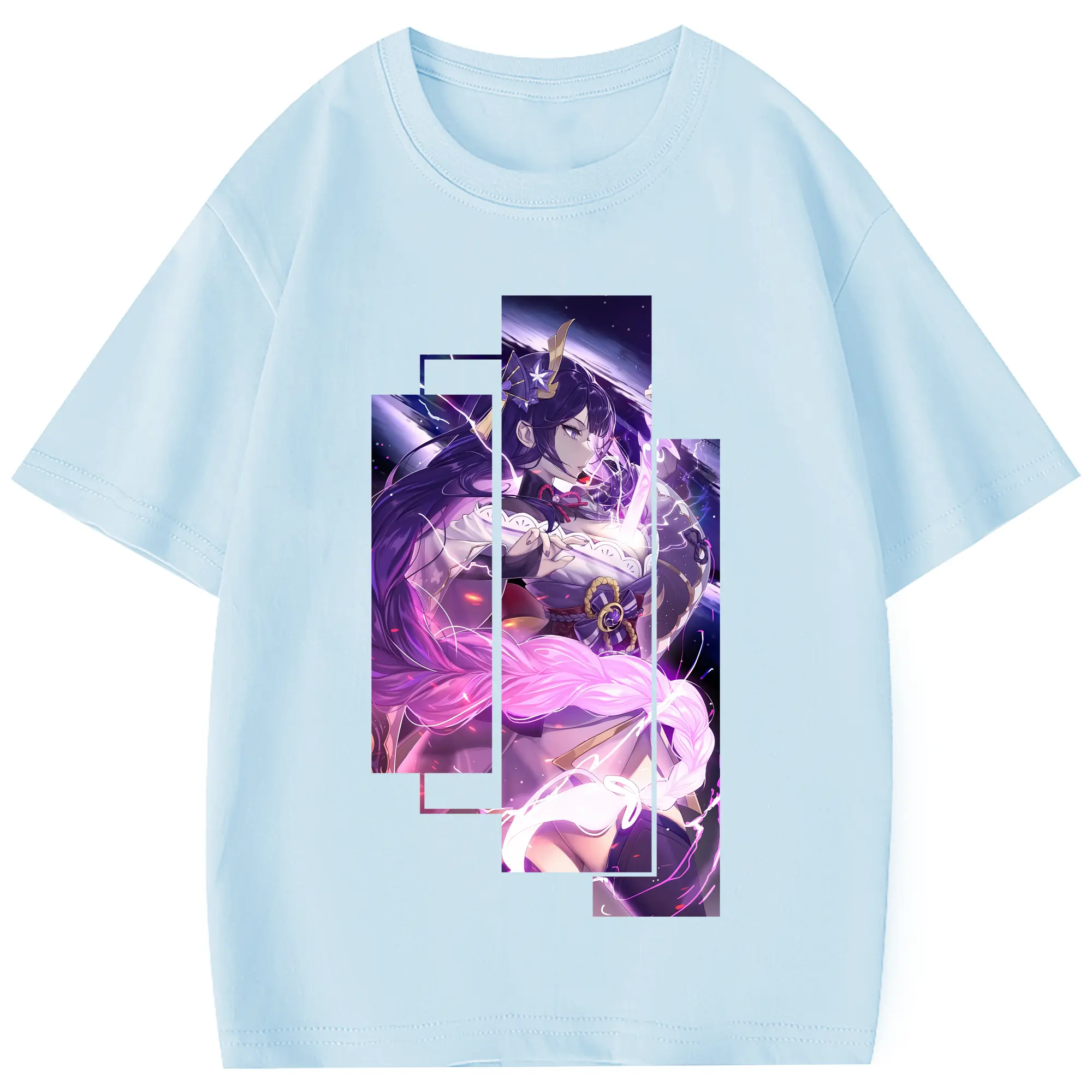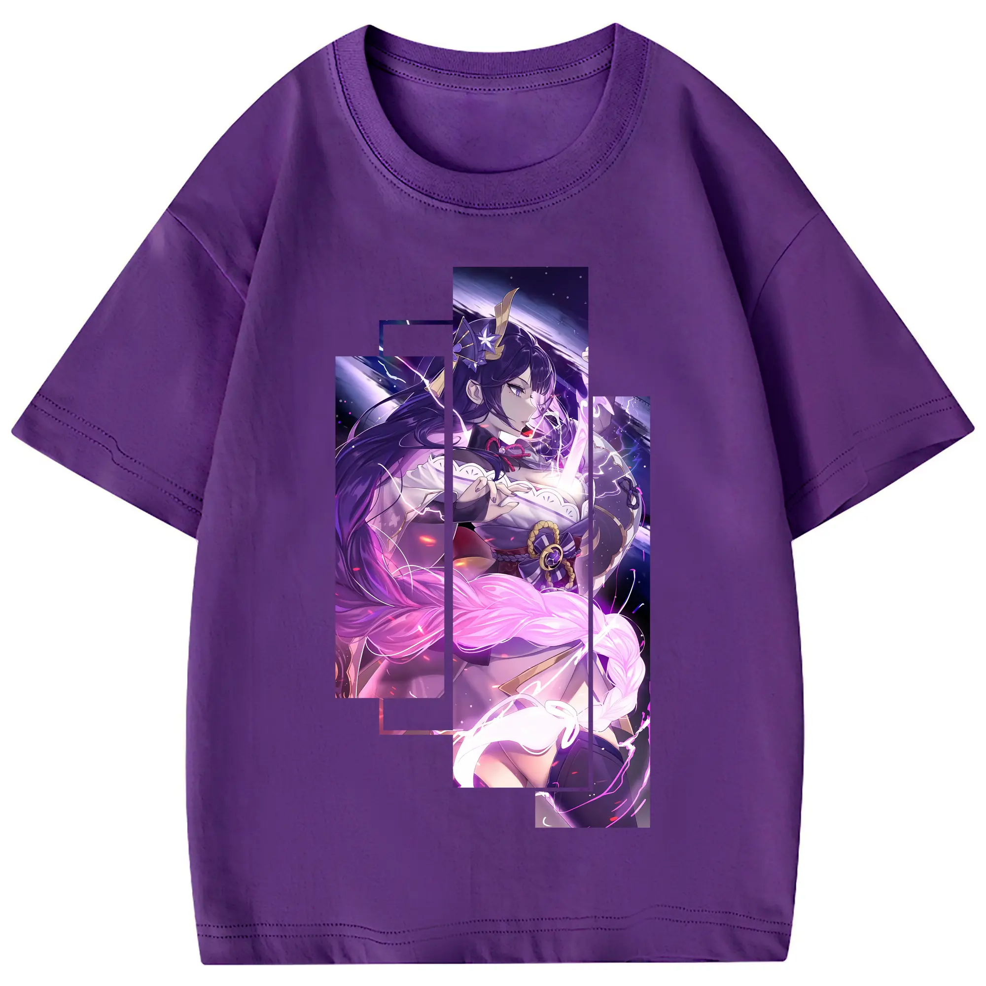 原 神 グッズ 雷電将軍 - 綿100% 半袖Tシャツ ・ フロントプリント ・ 快適 通気性 ・ 日常使い 散歩 スポーツ用