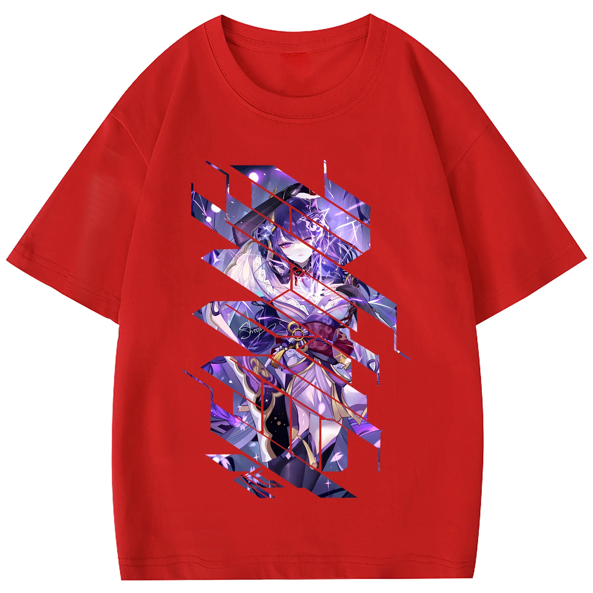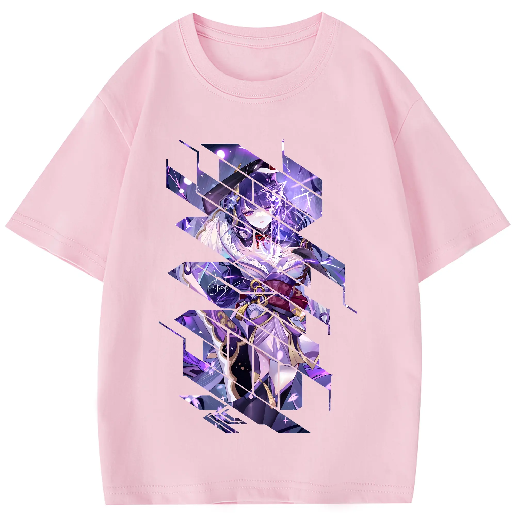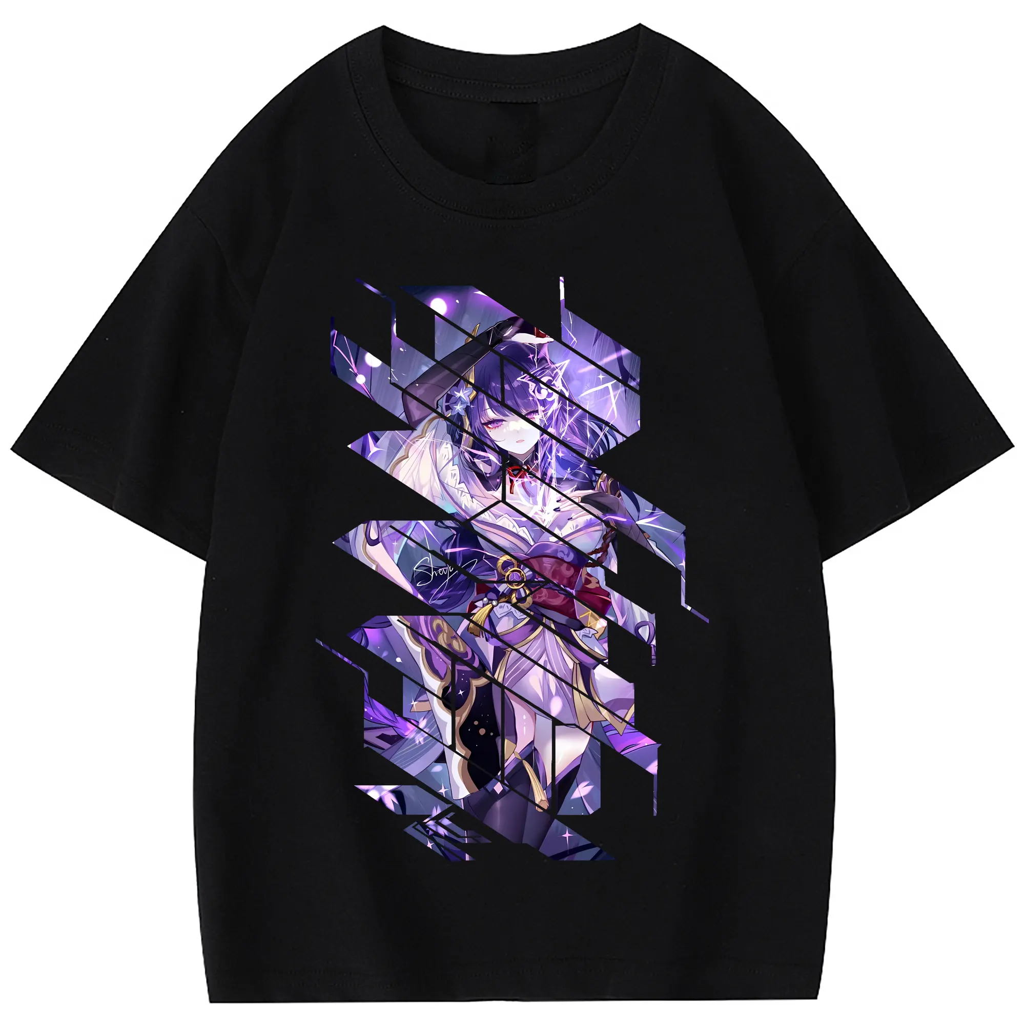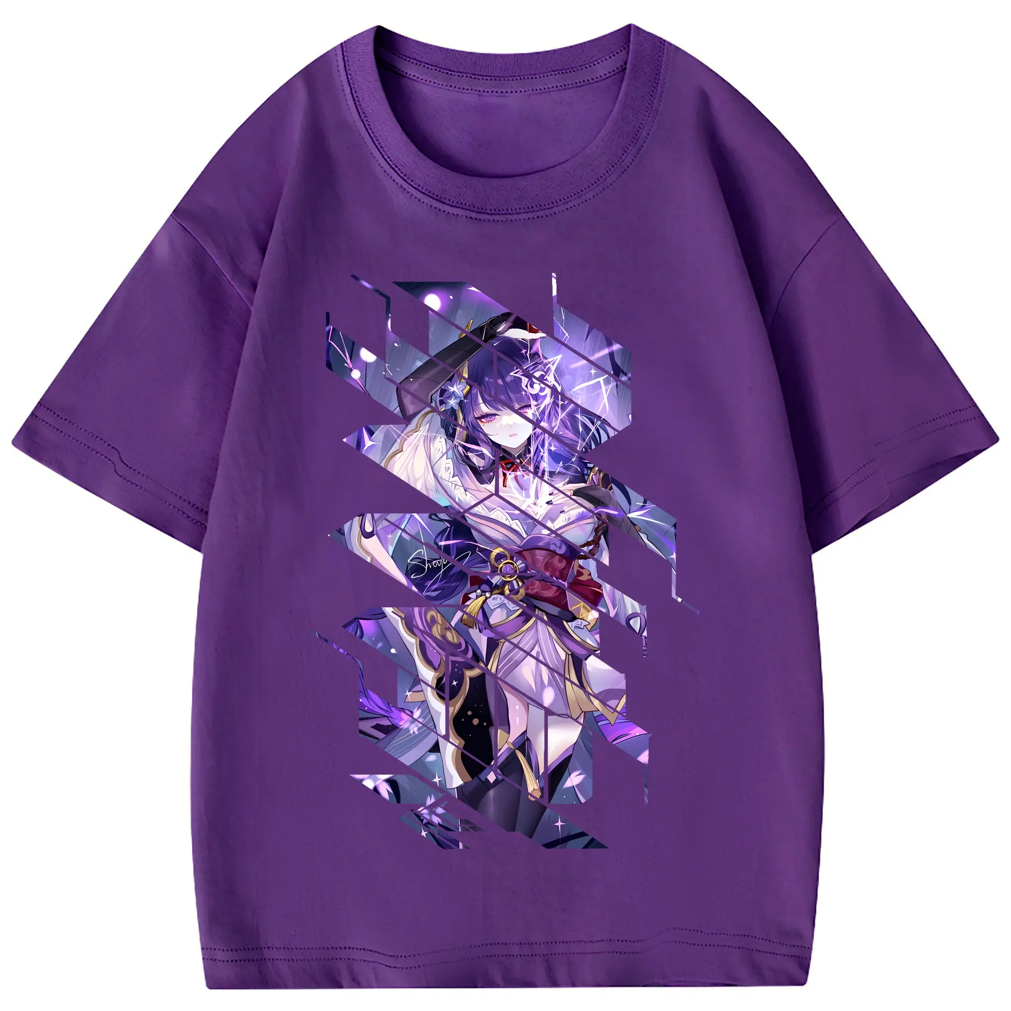 原 神 グッズ 雷電将軍 - 綿100% 半袖Tシャツ ・ フロントプリント ・ 快適 通気性 ・ 日常使い 散歩 スポーツ用