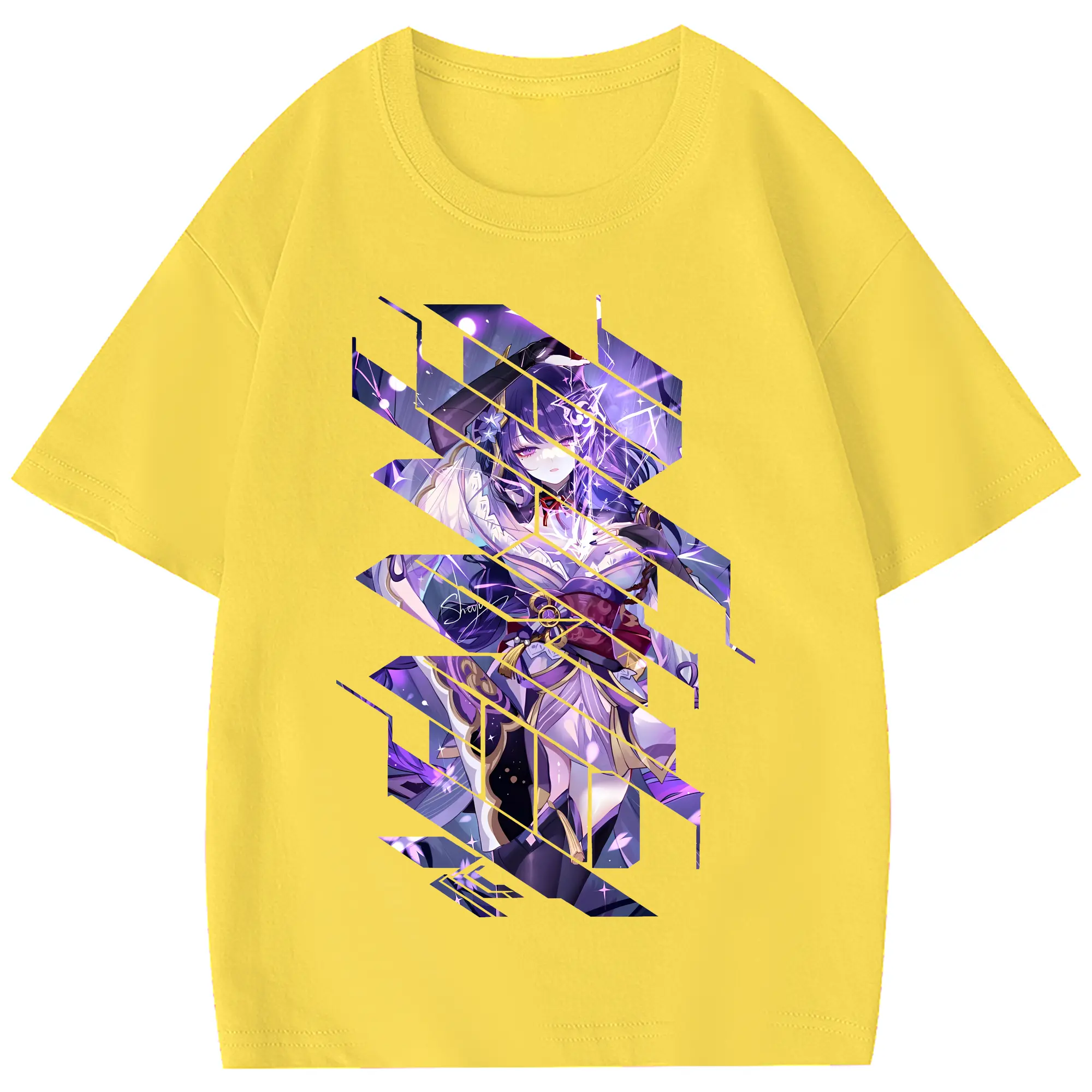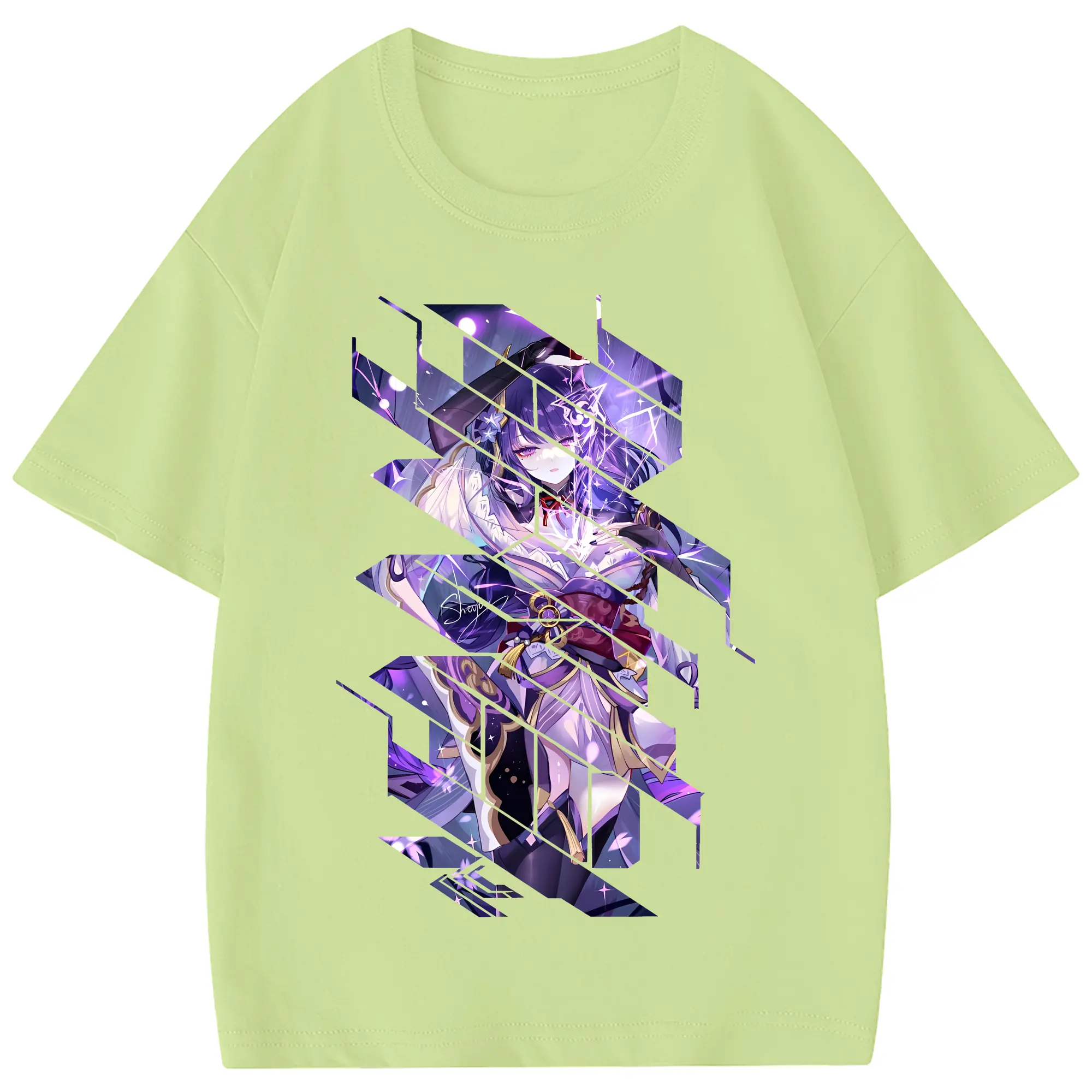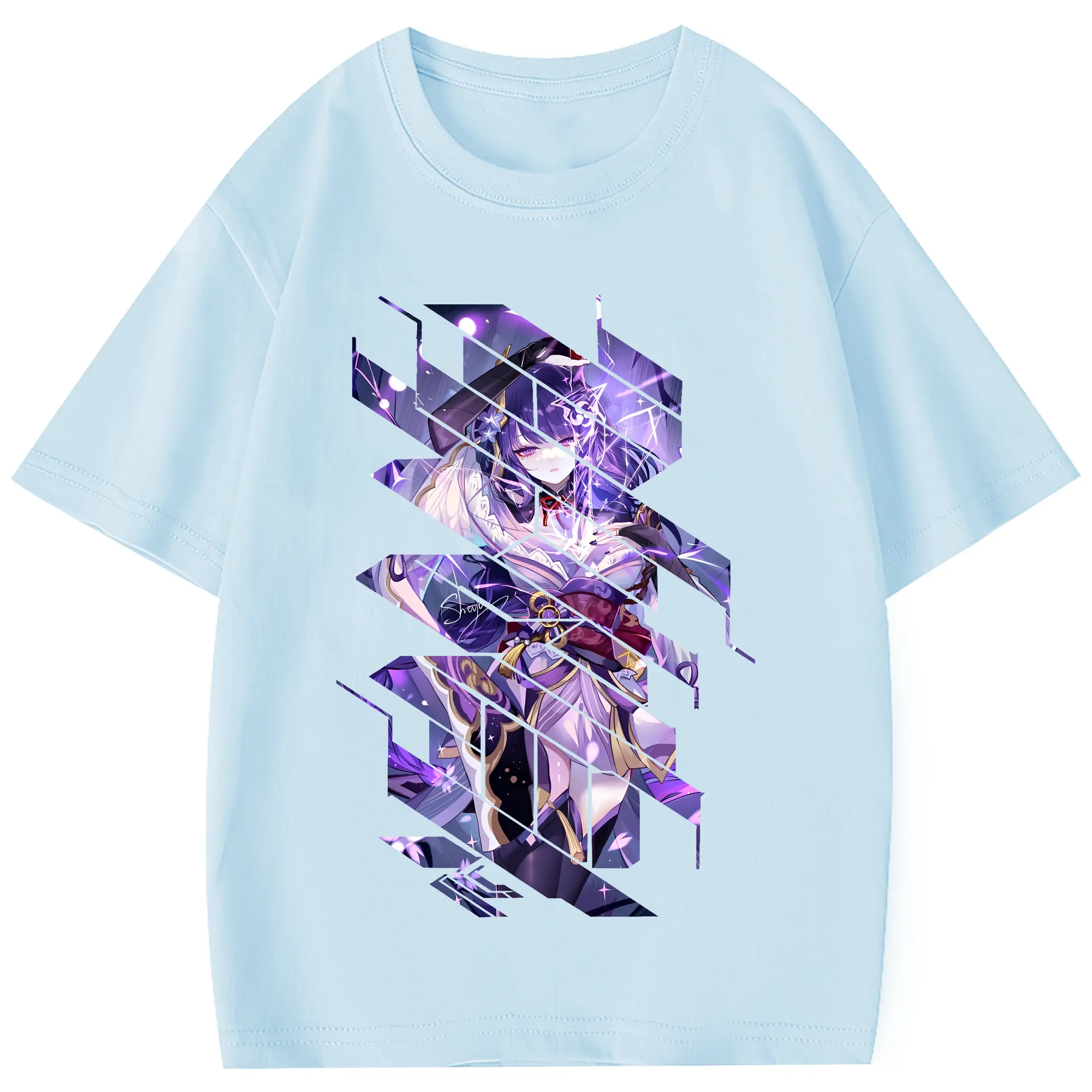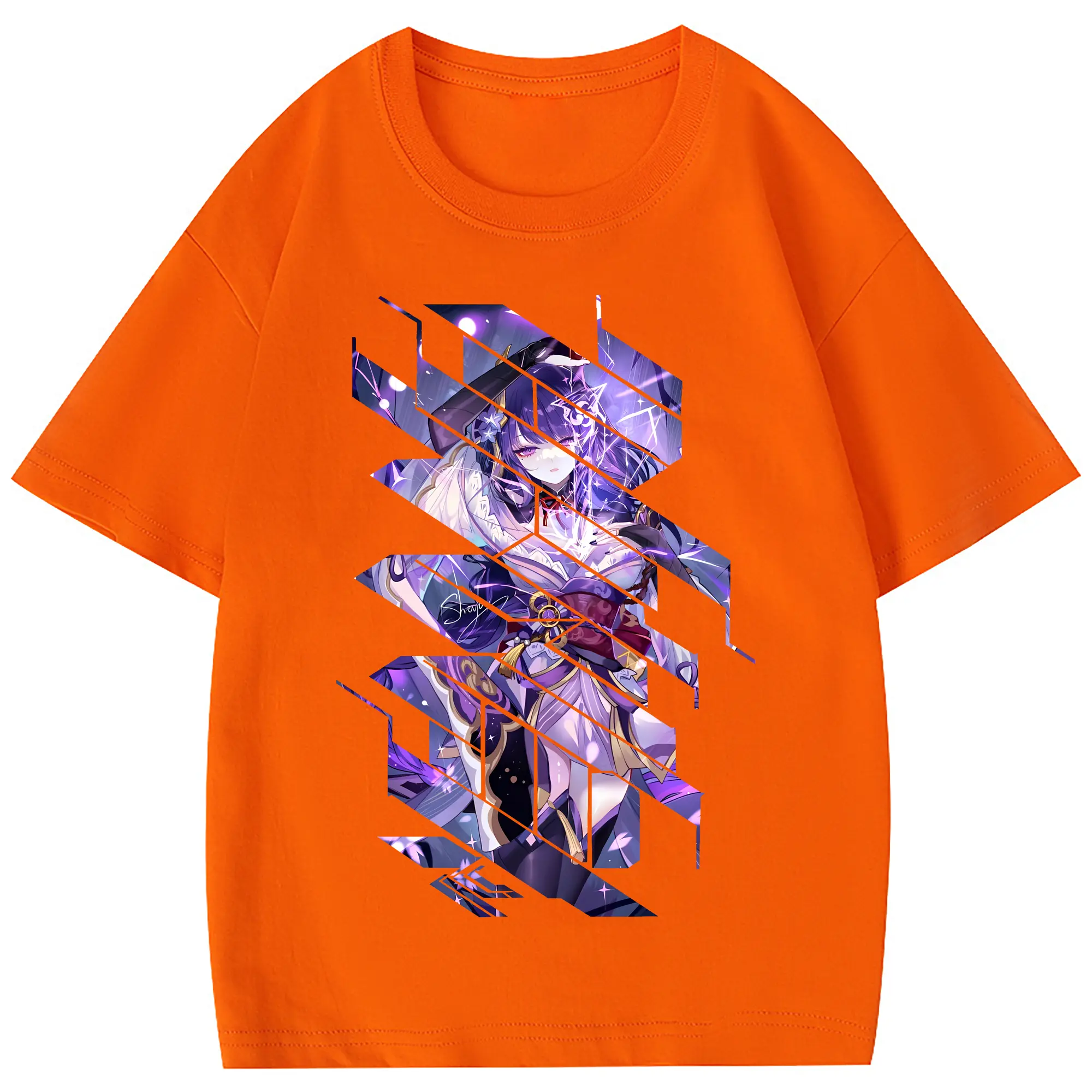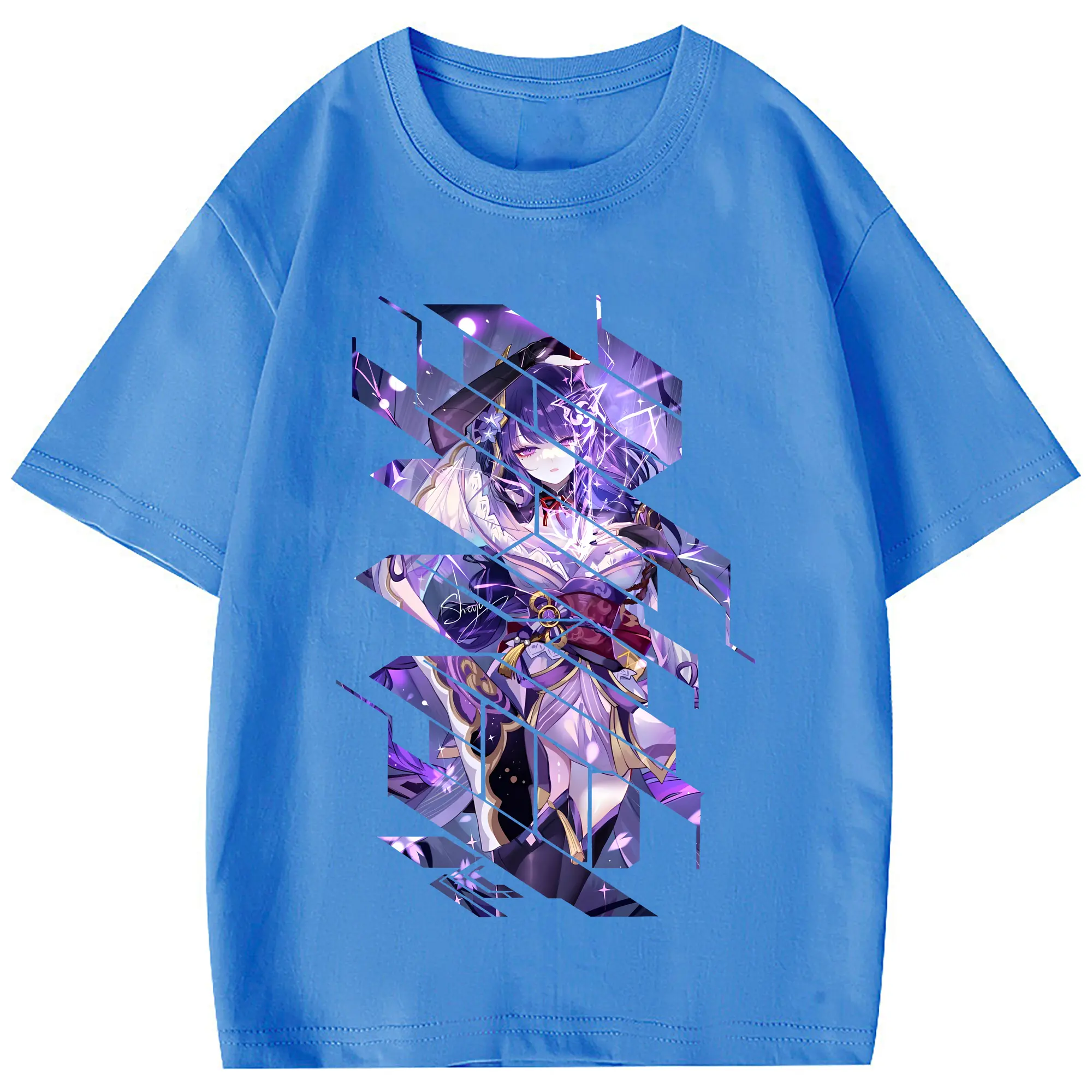 原 神 グッズ 雷電将軍 - 綿100% 半袖Tシャツ ・ フロントプリント ・ 快適 通気性 ・ 日常使い 散歩 スポーツ用