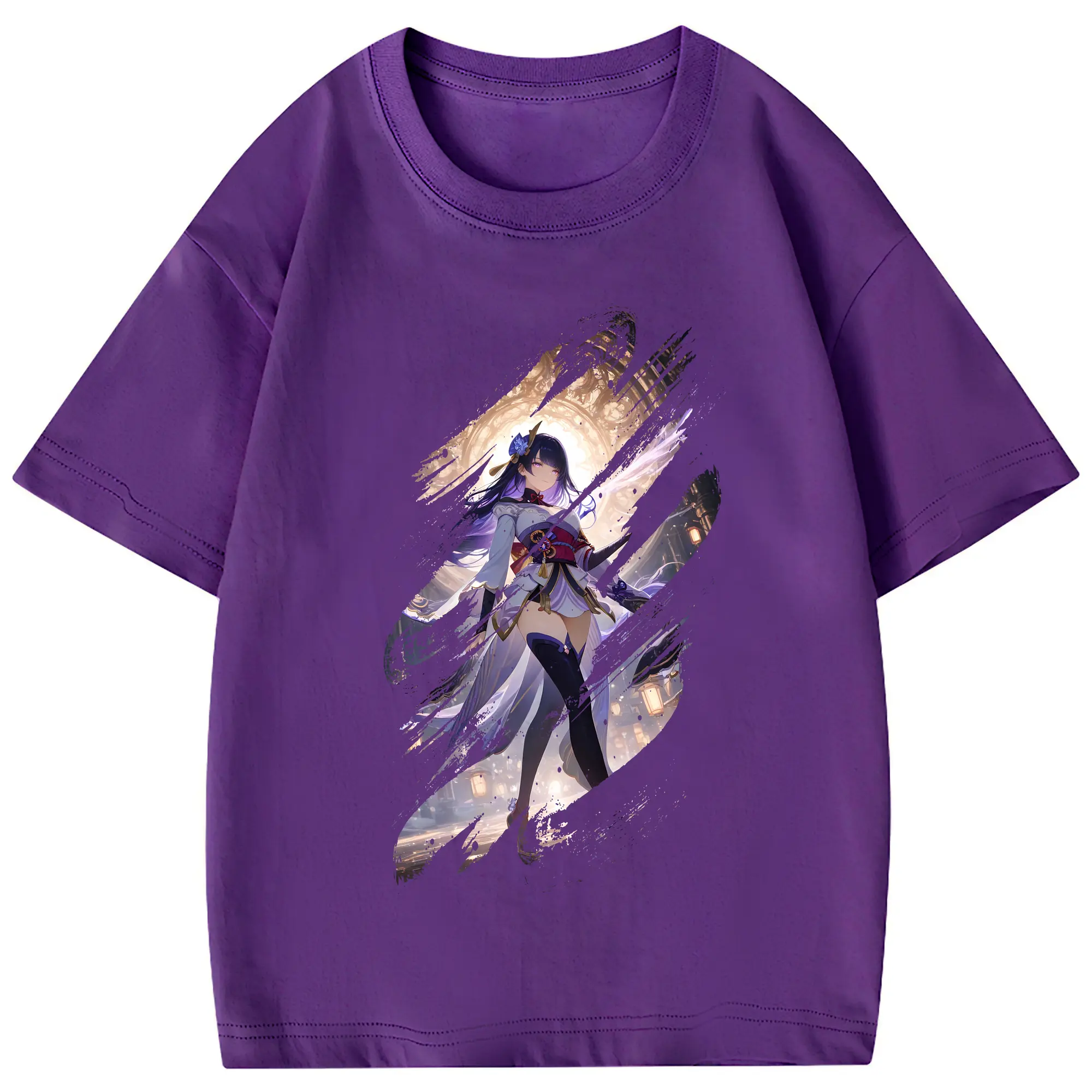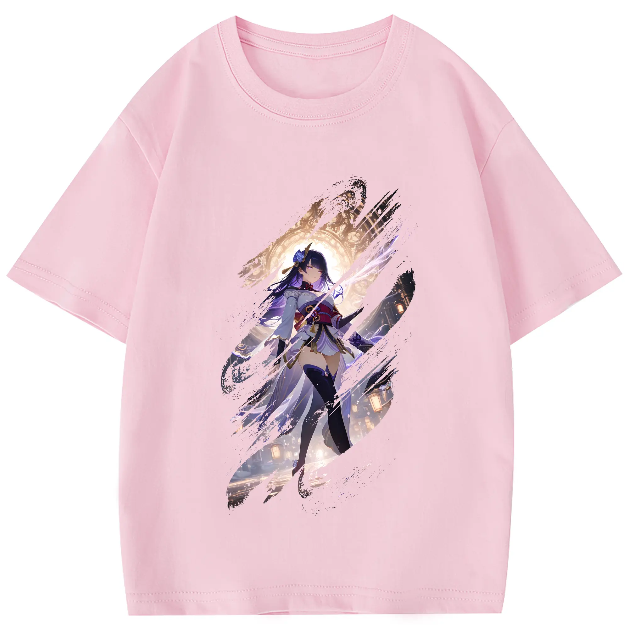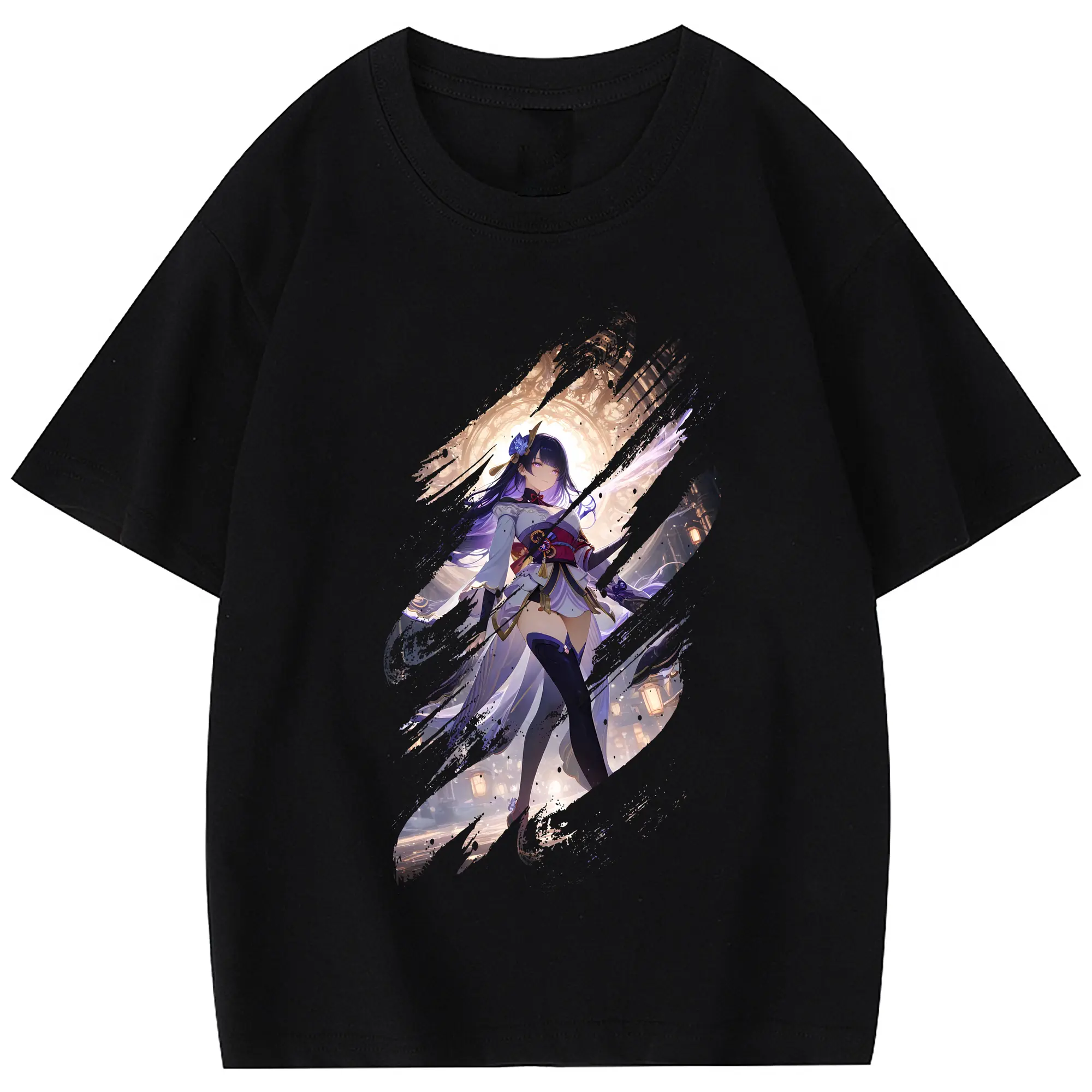 原 神 グッズ 雷電将軍 - 綿100% 半袖Tシャツ ・ フロントプリント ・ 快適 通気性 ・ 日常使い 散歩 スポーツ用