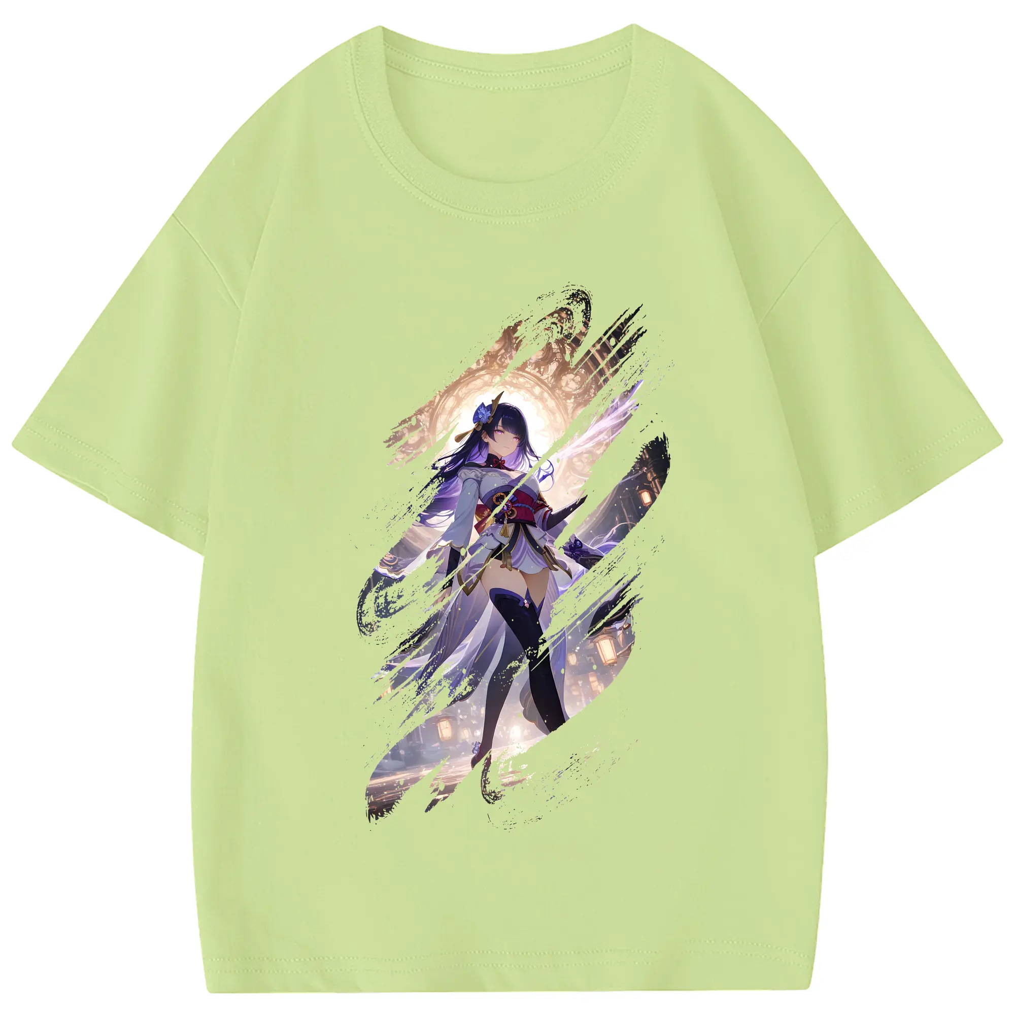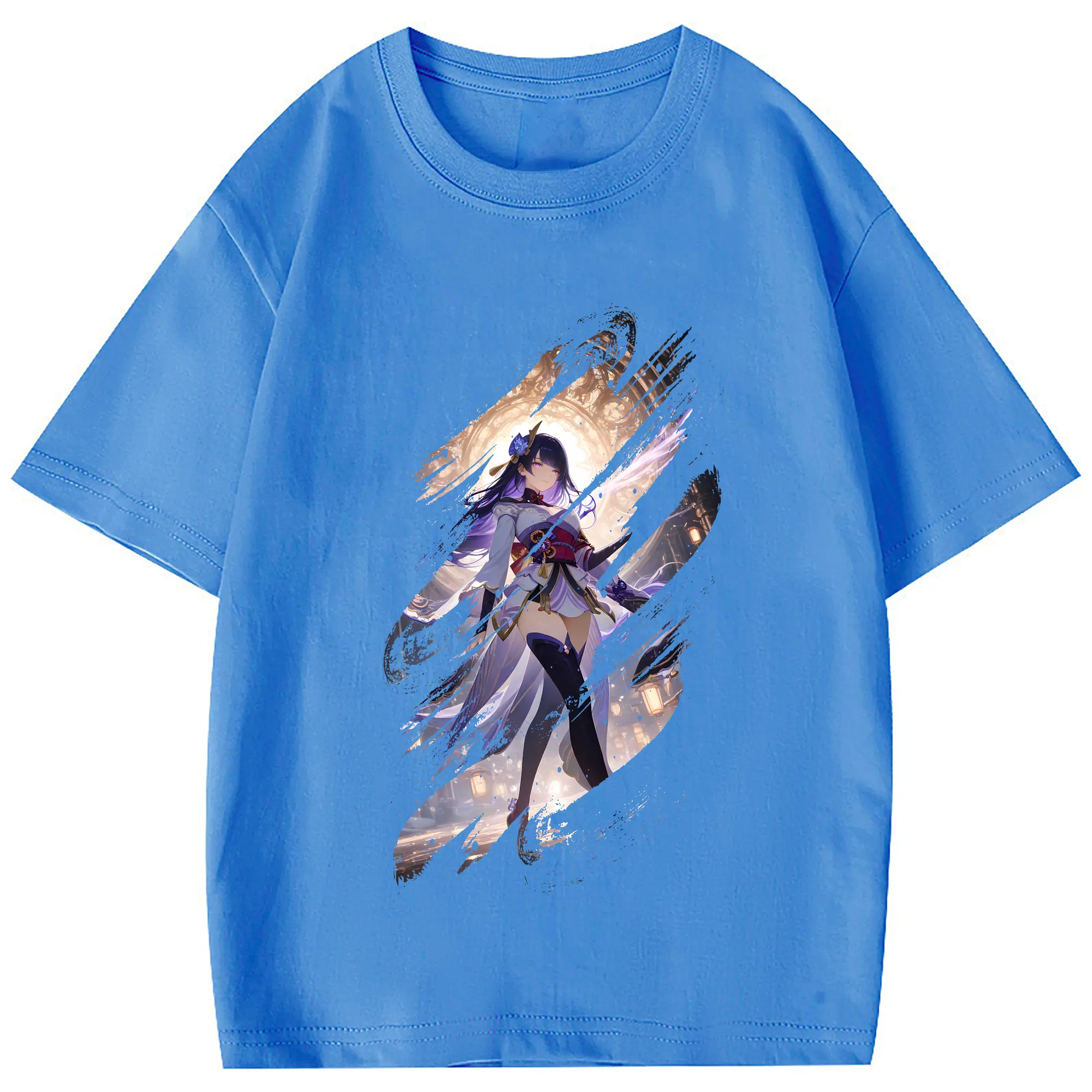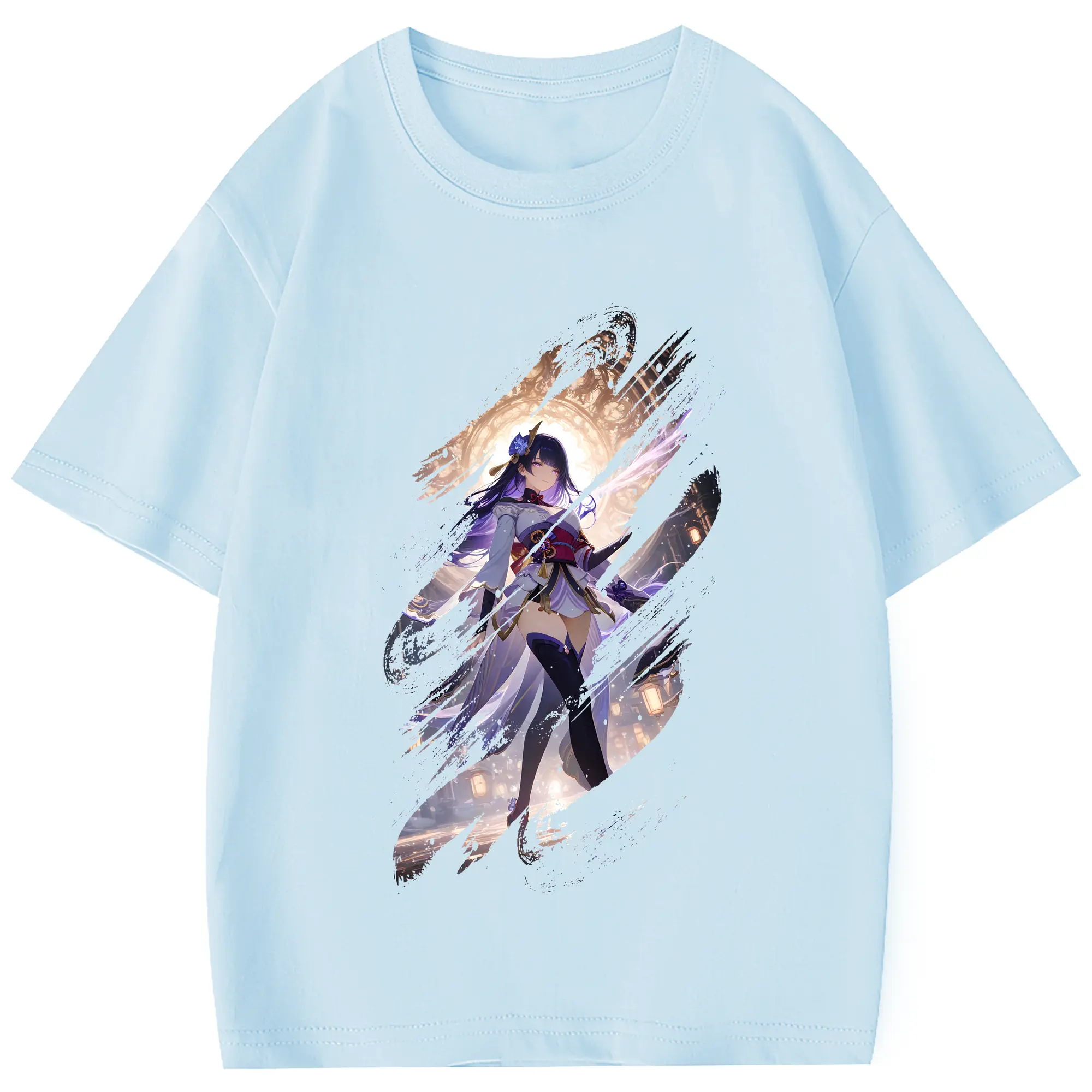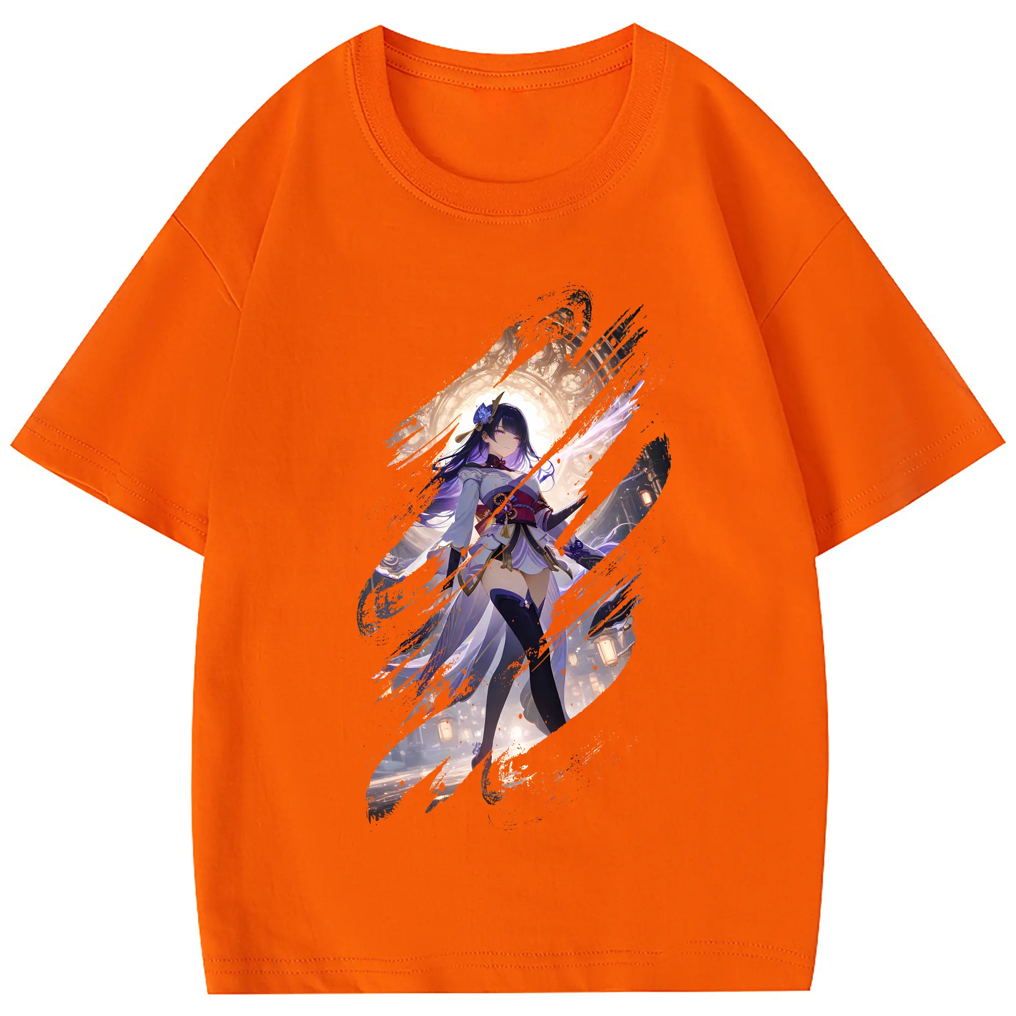 原 神 グッズ 雷電将軍 - 綿100% 半袖Tシャツ ・ フロントプリント ・ 快適 通気性 ・ 日常使い 散歩 スポーツ用