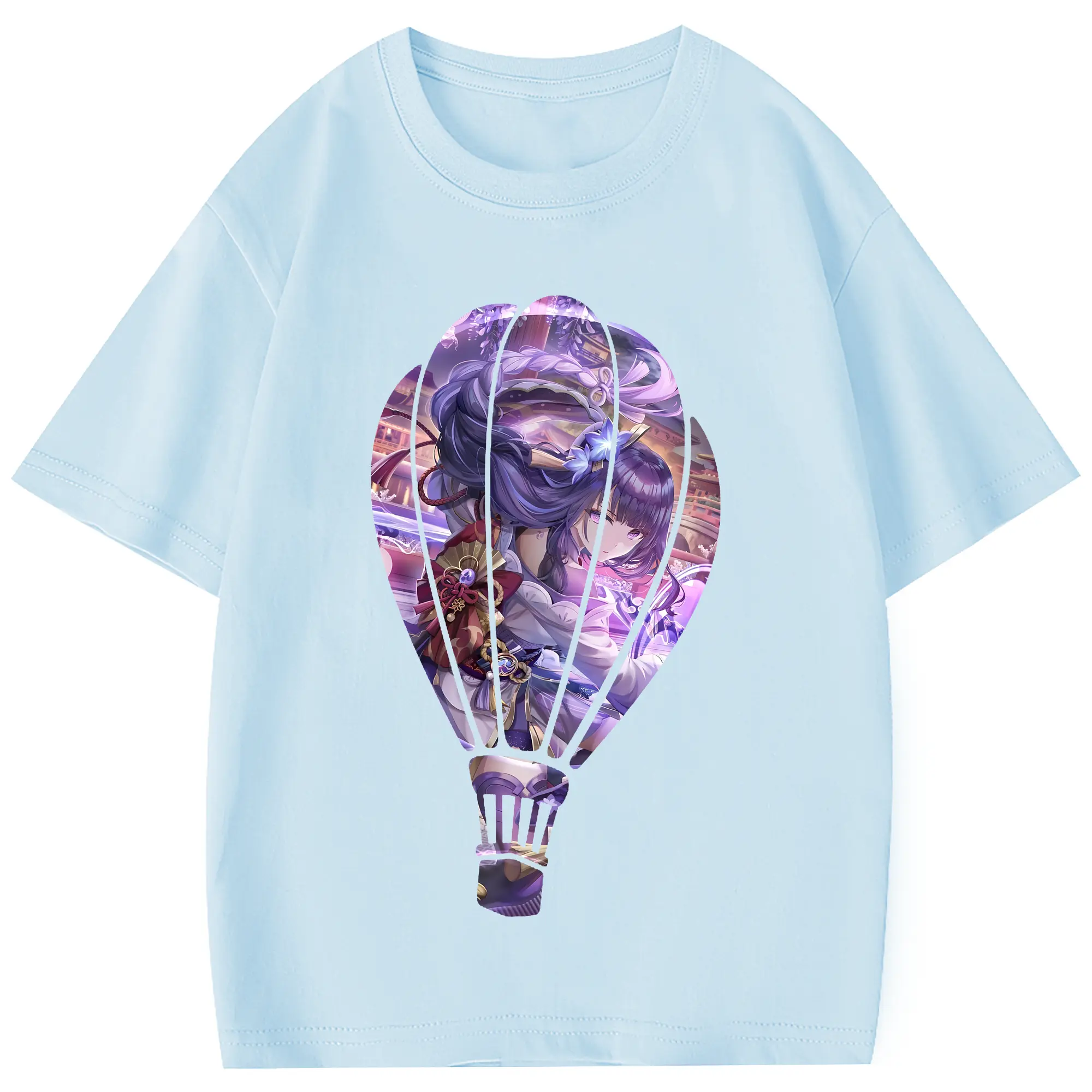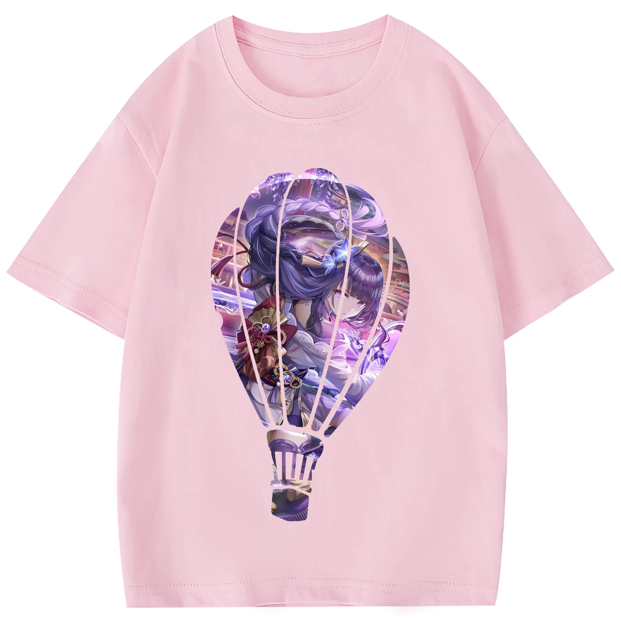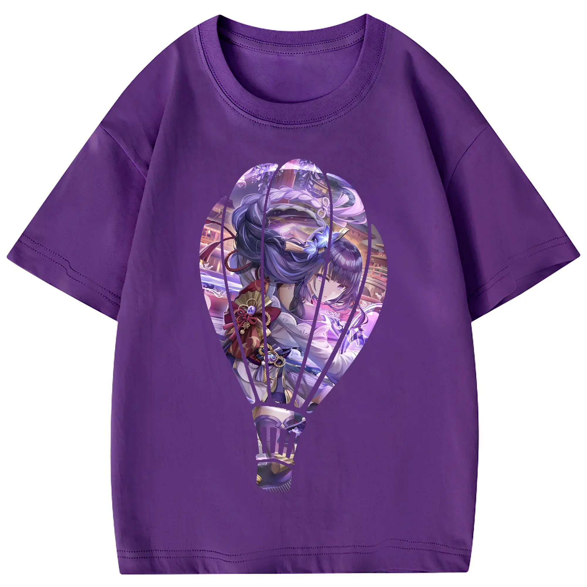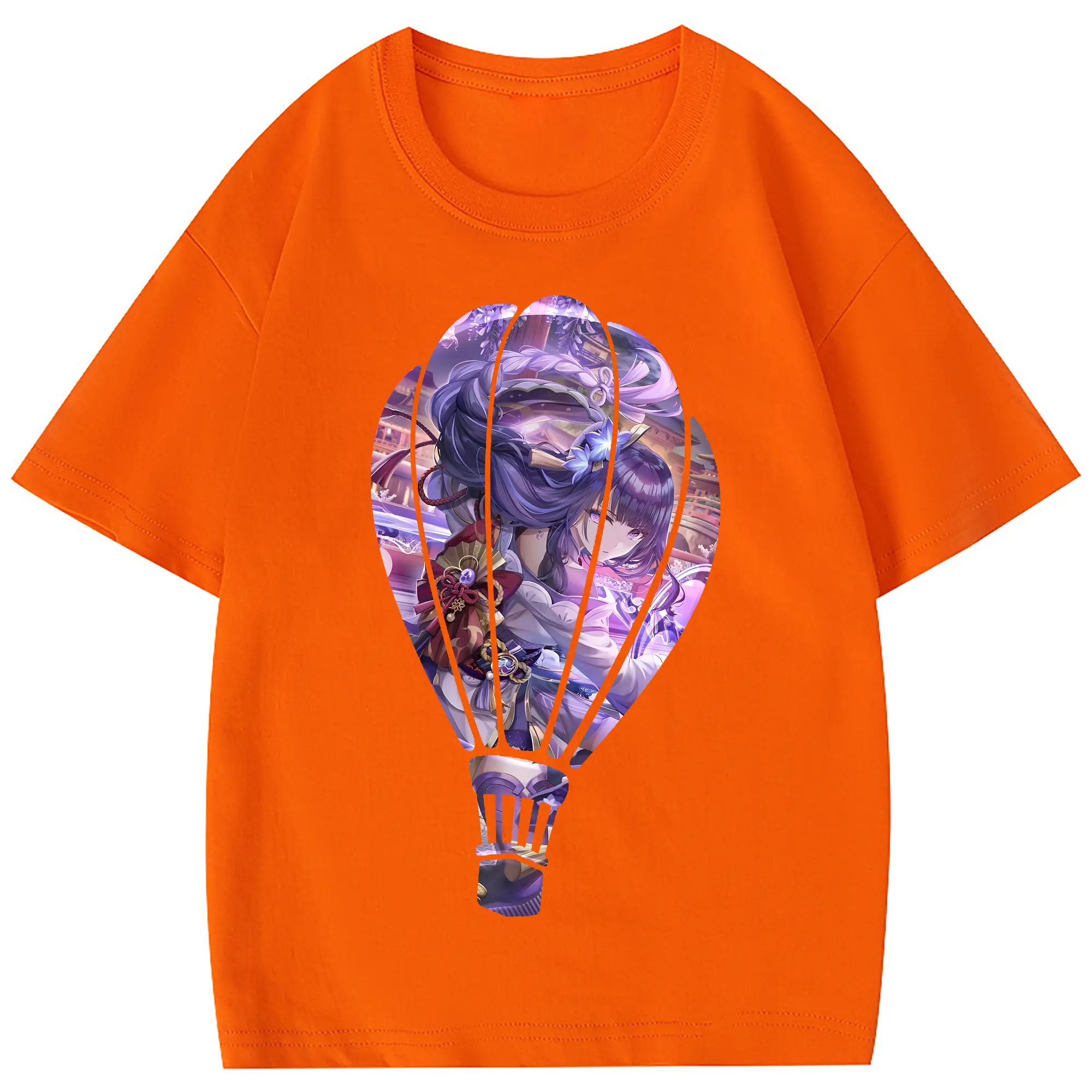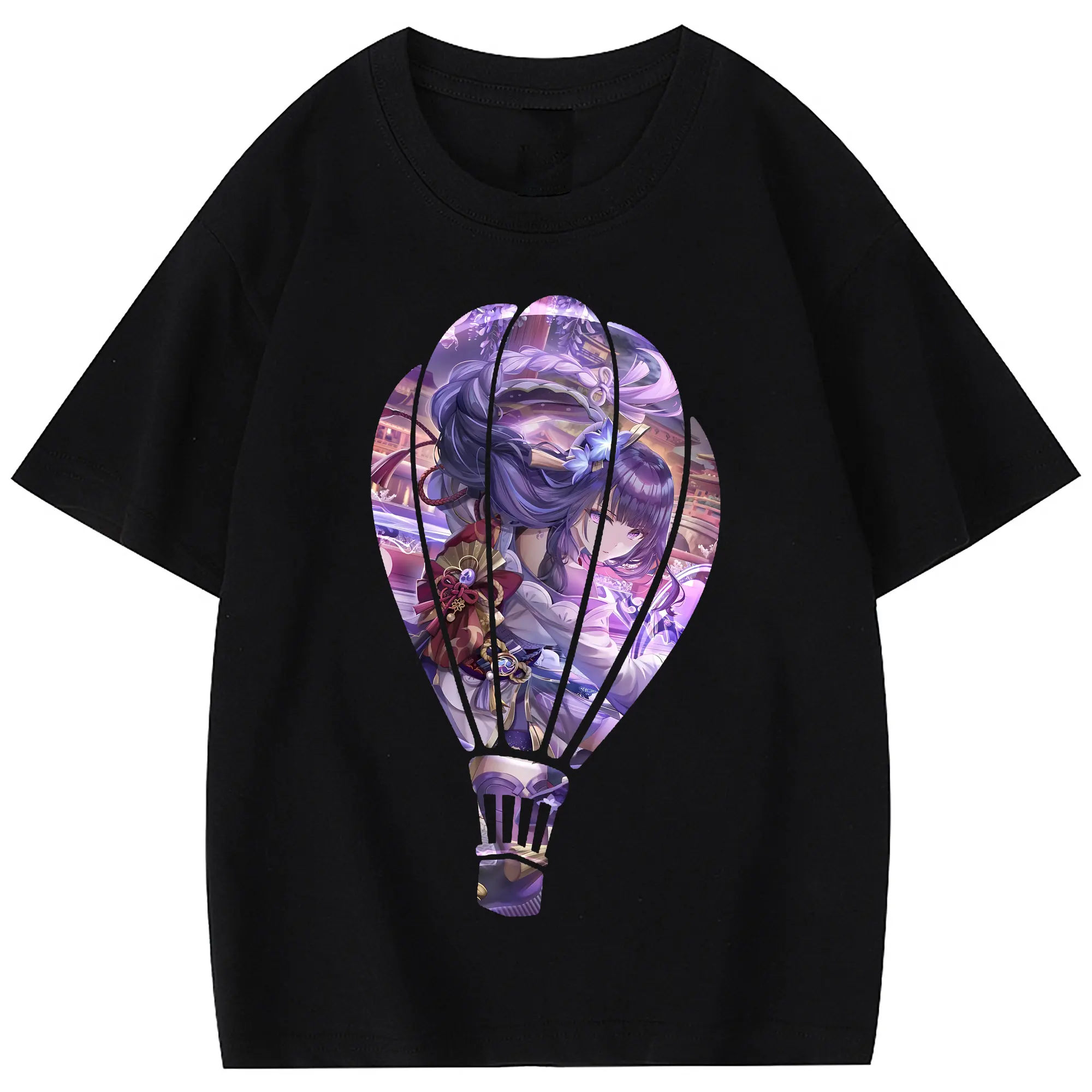 原 神 グッズ 雷電将軍 - 綿100% 半袖Tシャツ ・ フロントプリント ・ 快適 通気性 ・ 日常使い 散歩 スポーツ用
