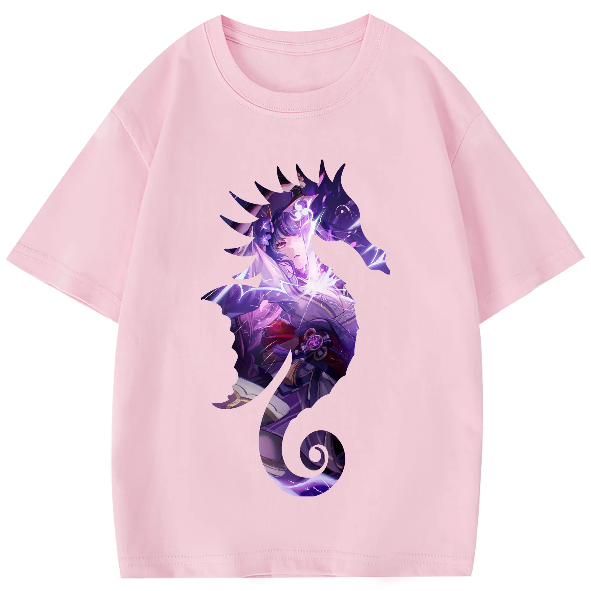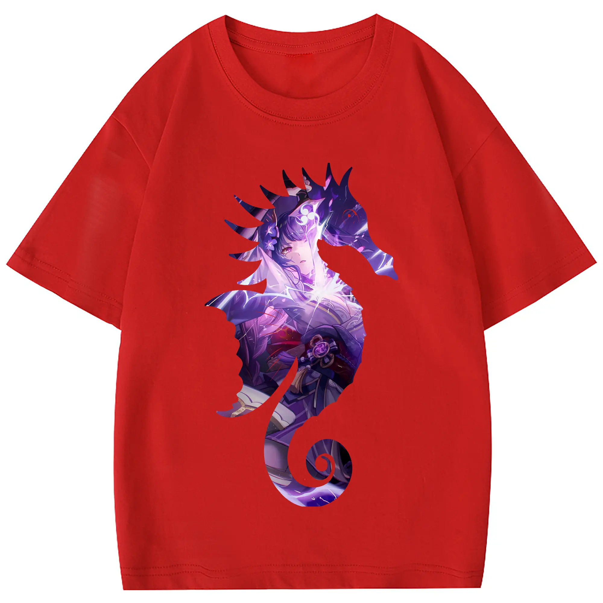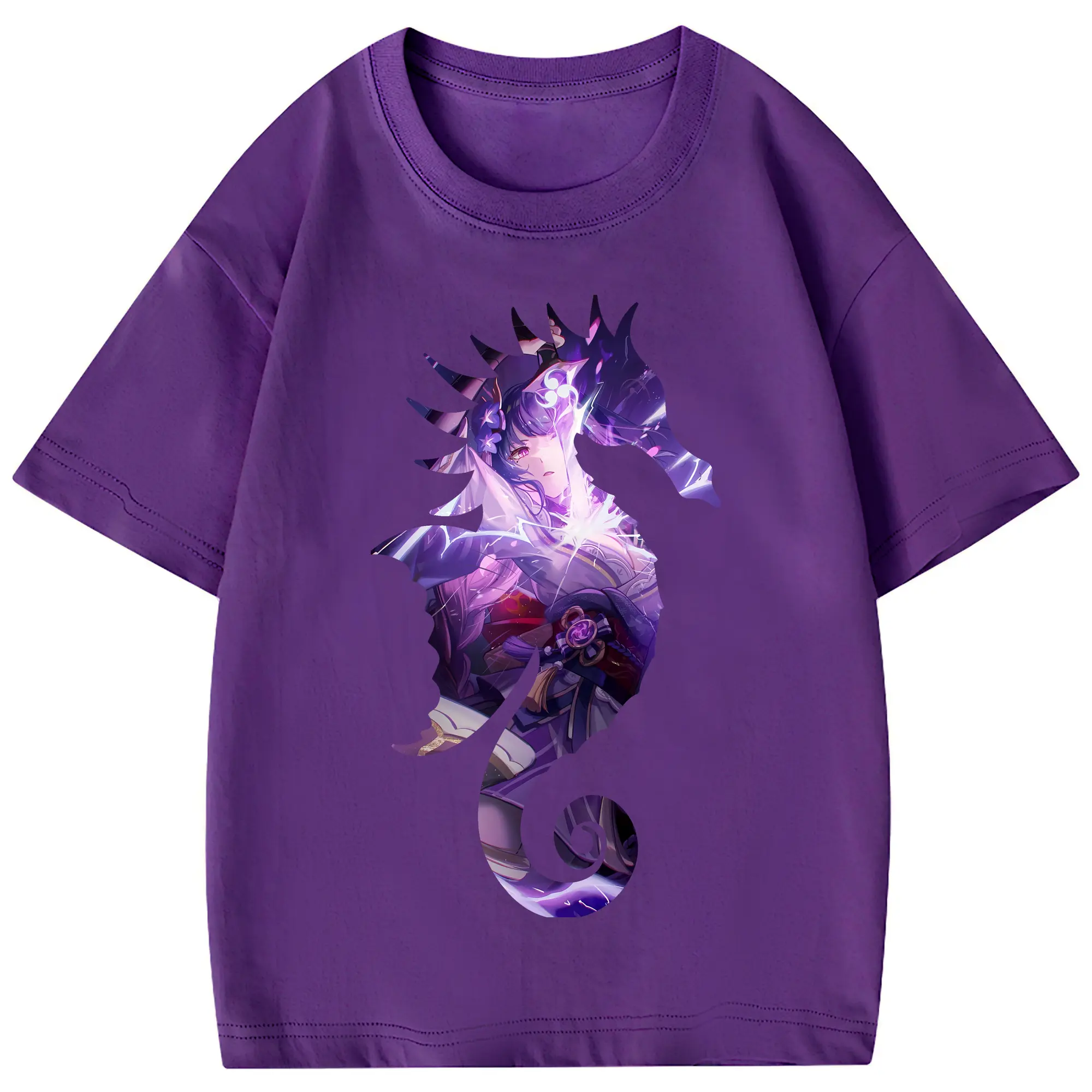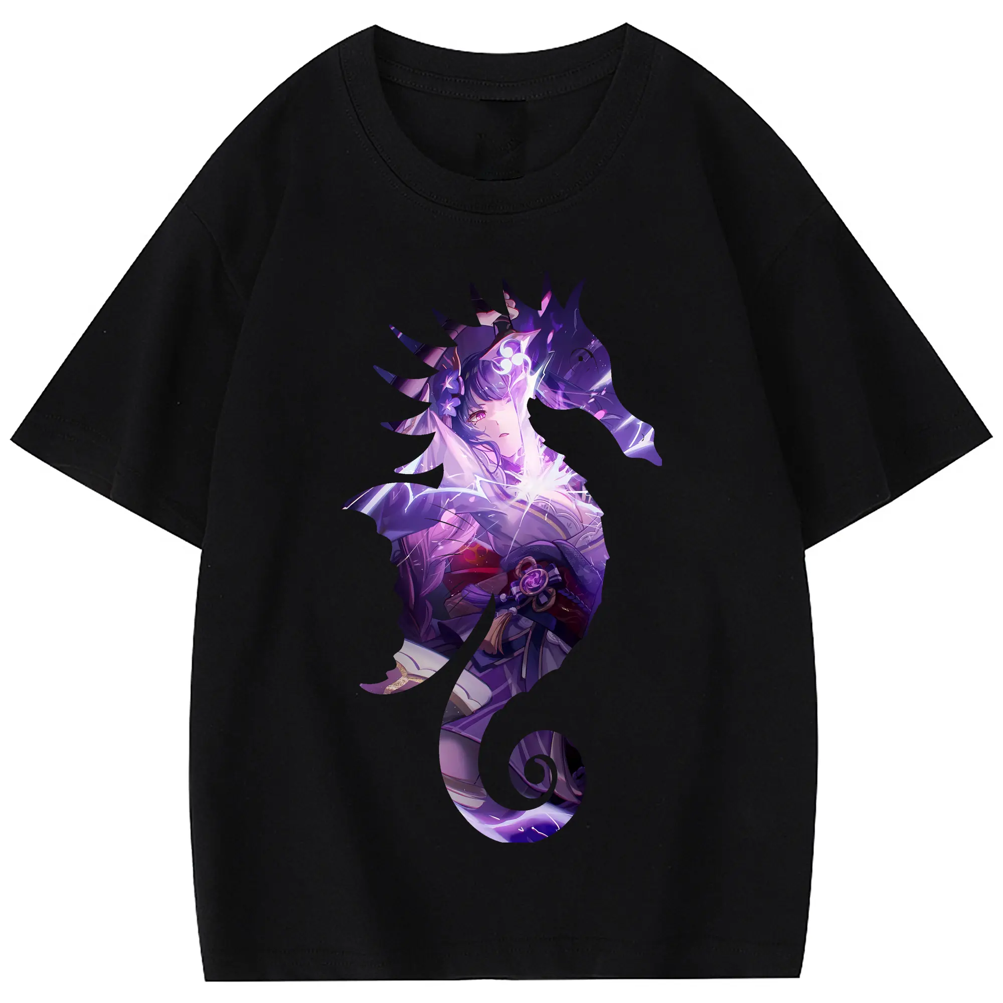 原 神 グッズ 雷電将軍 - 綿100% 半袖Tシャツ ・ フロントプリント ・ 快適 通気性 ・ 日常使い 散歩 スポーツ用