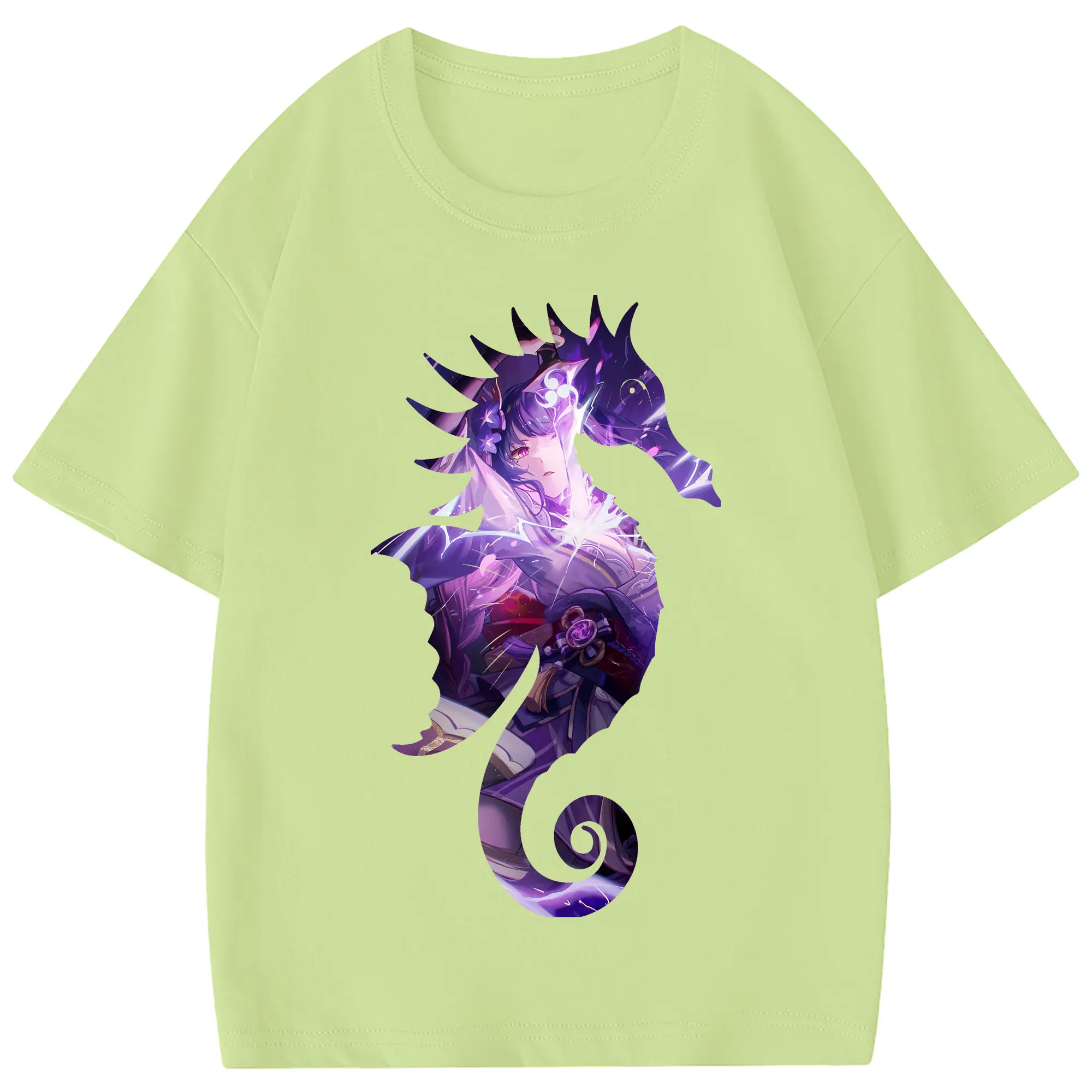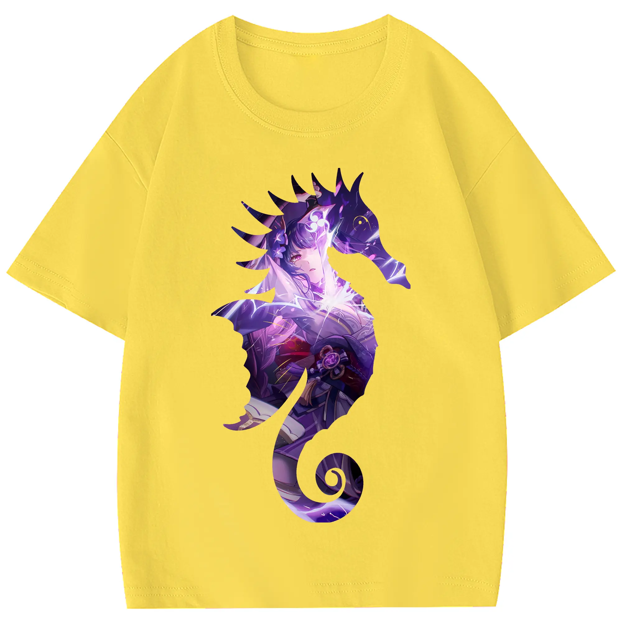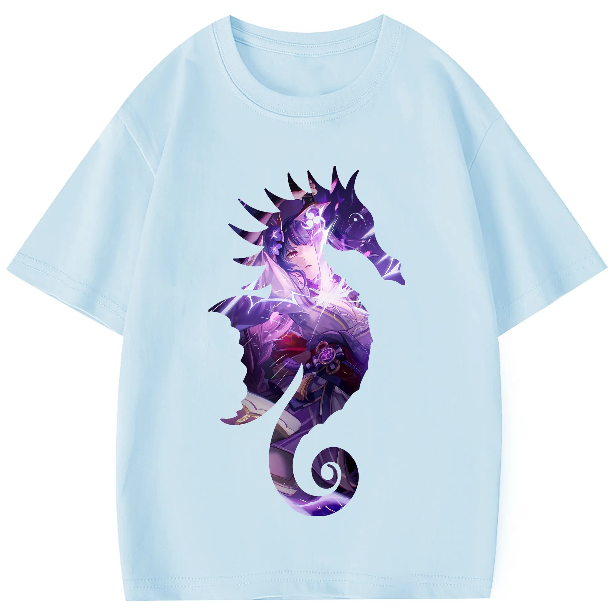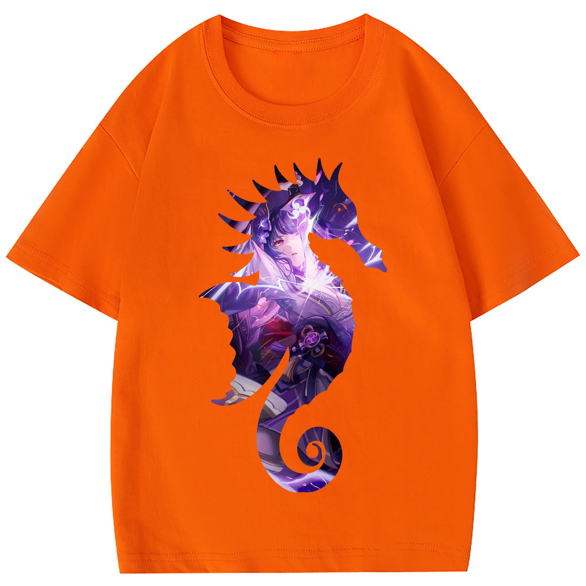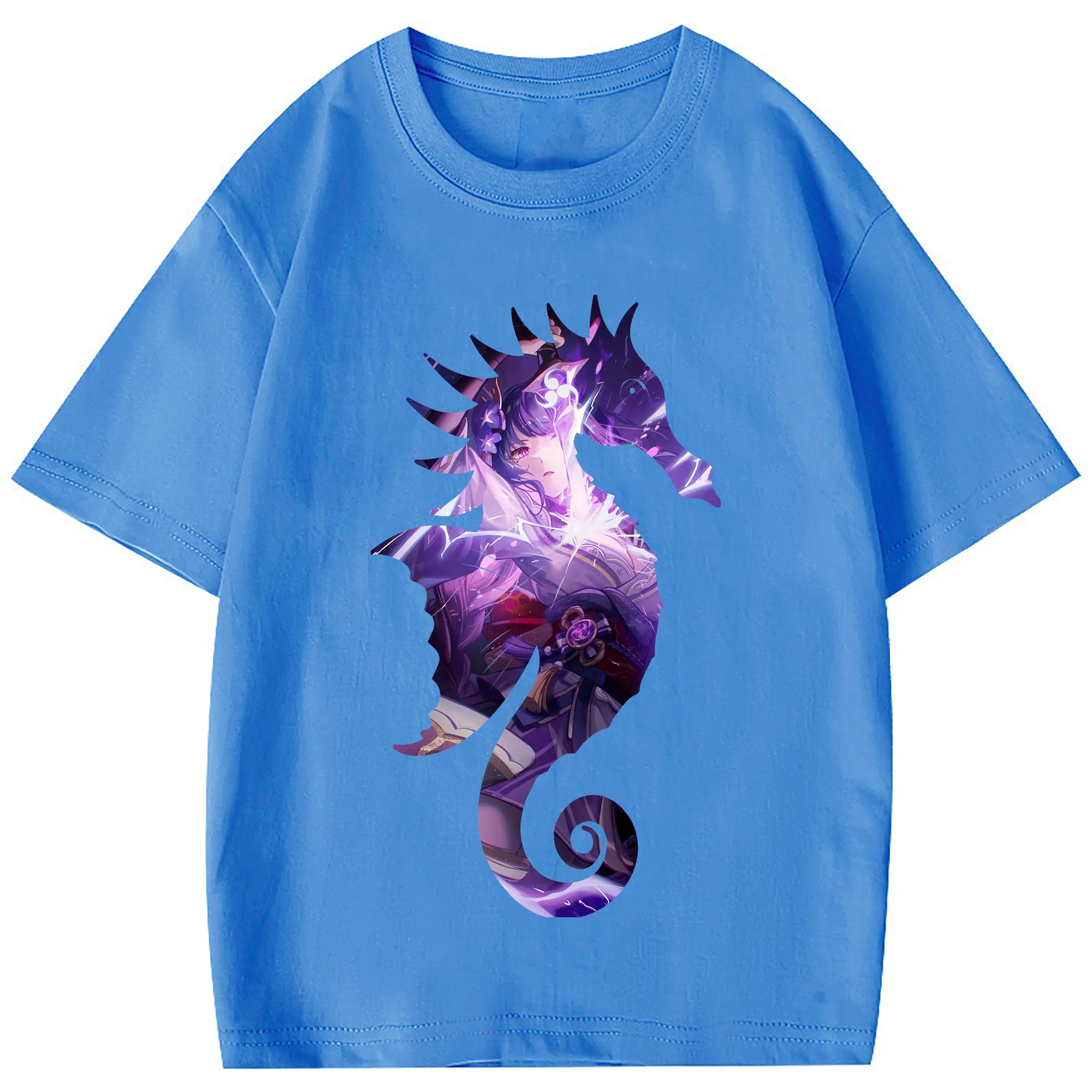 原 神 グッズ 雷電将軍 - 綿100% 半袖Tシャツ ・ フロントプリント ・ 快適 通気性 ・ 日常使い 散歩 スポーツ用