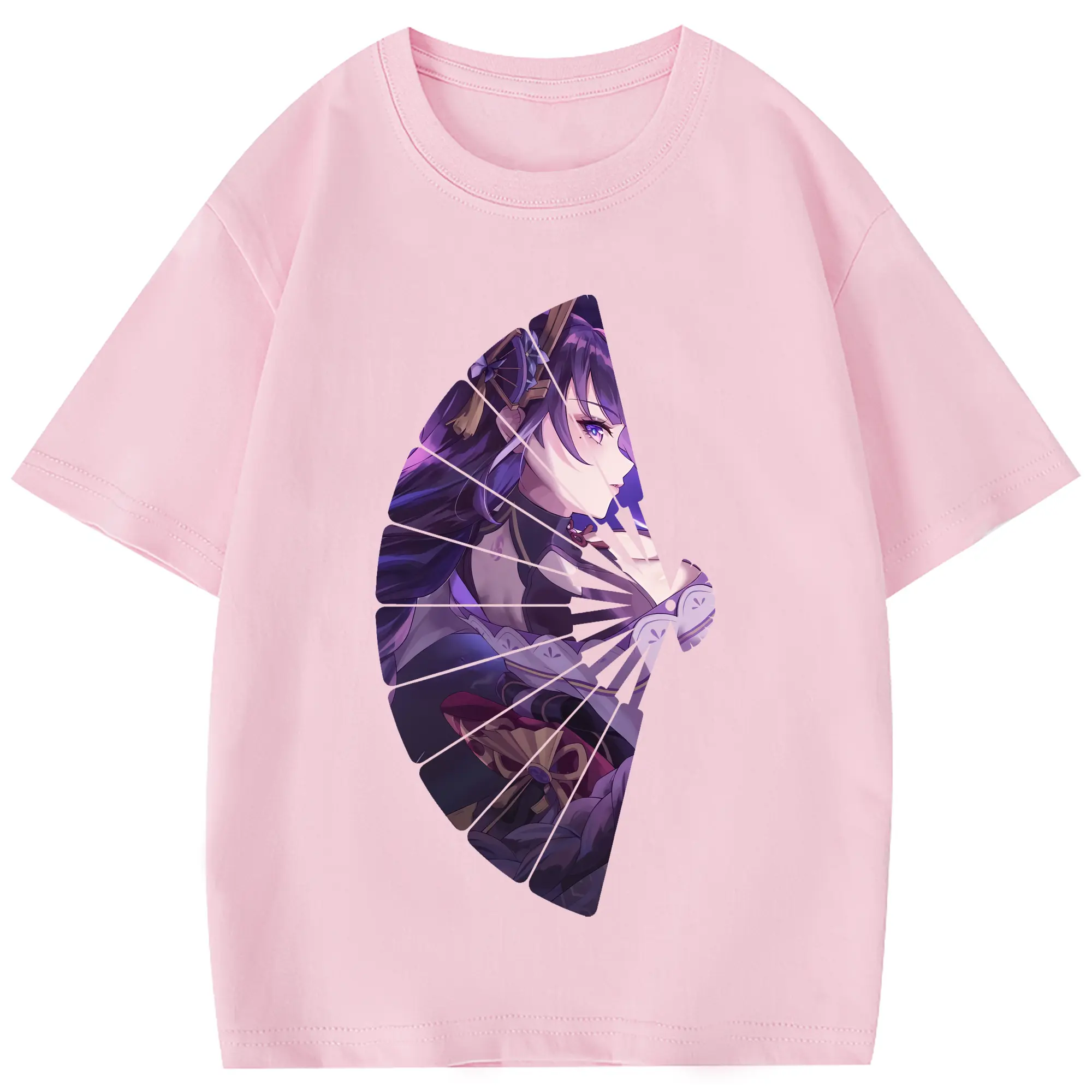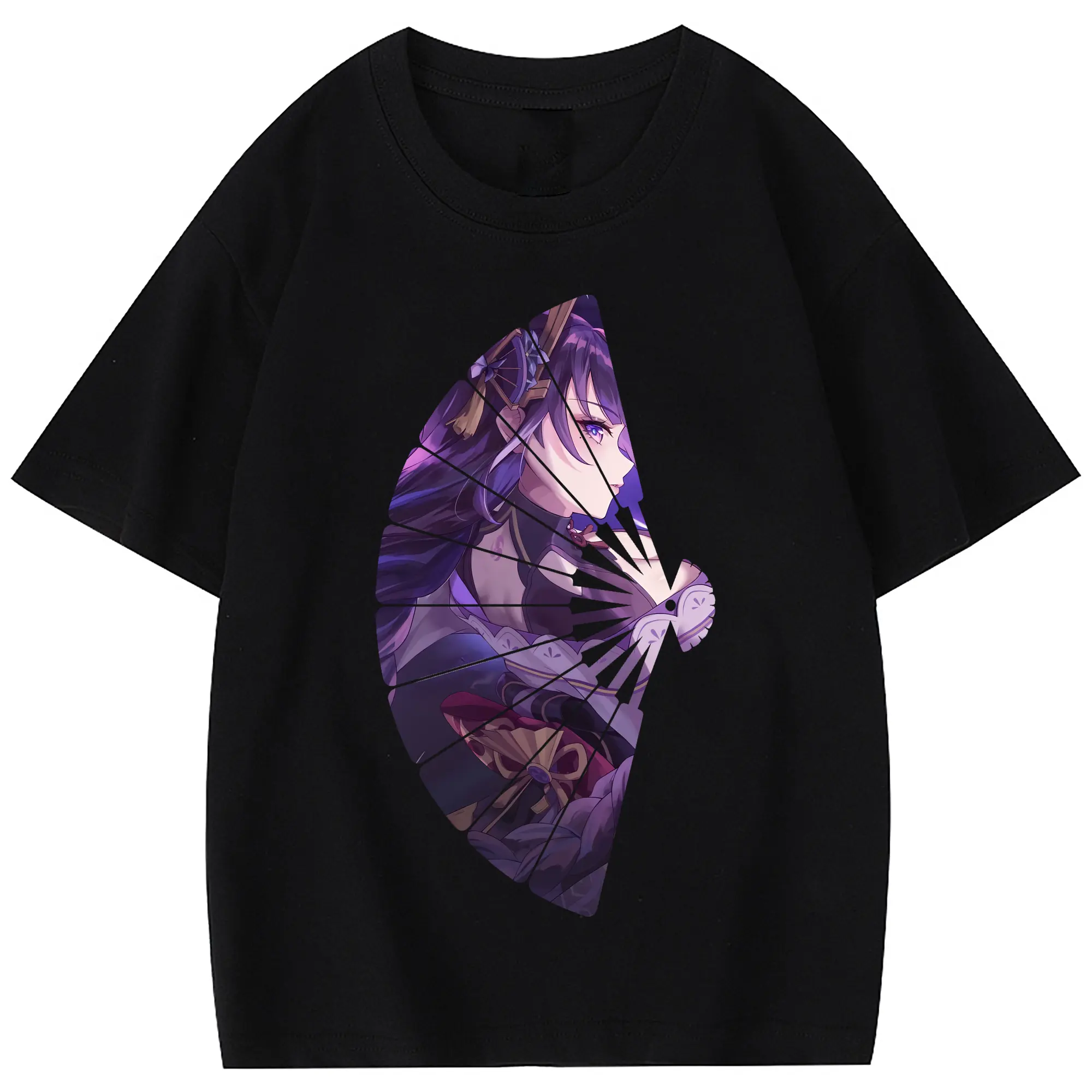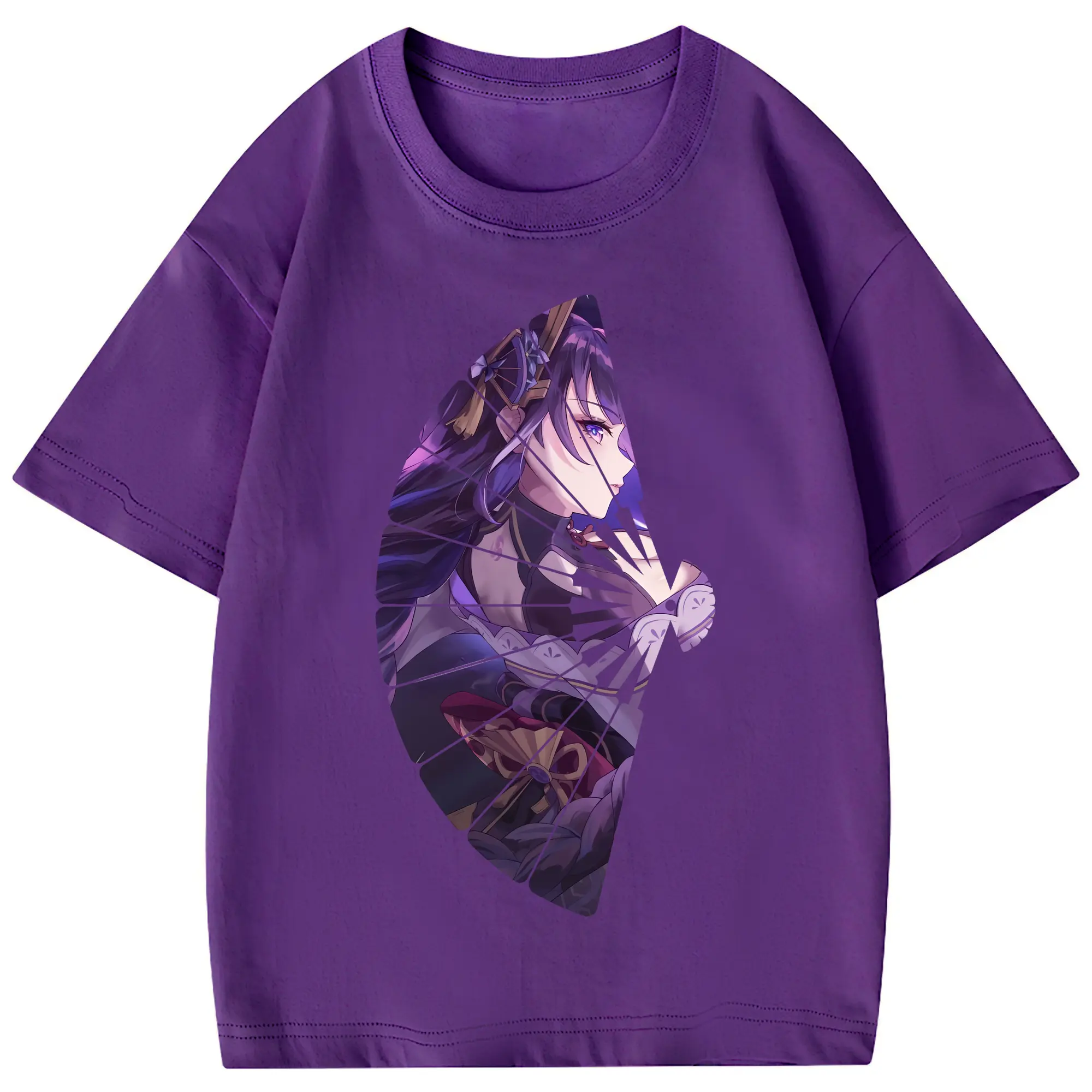 原 神 グッズ 雷電将軍 - 綿100% 半袖Tシャツ ・ フロントプリント ・ 快適 通気性 ・ 日常使い 散歩 スポーツ用