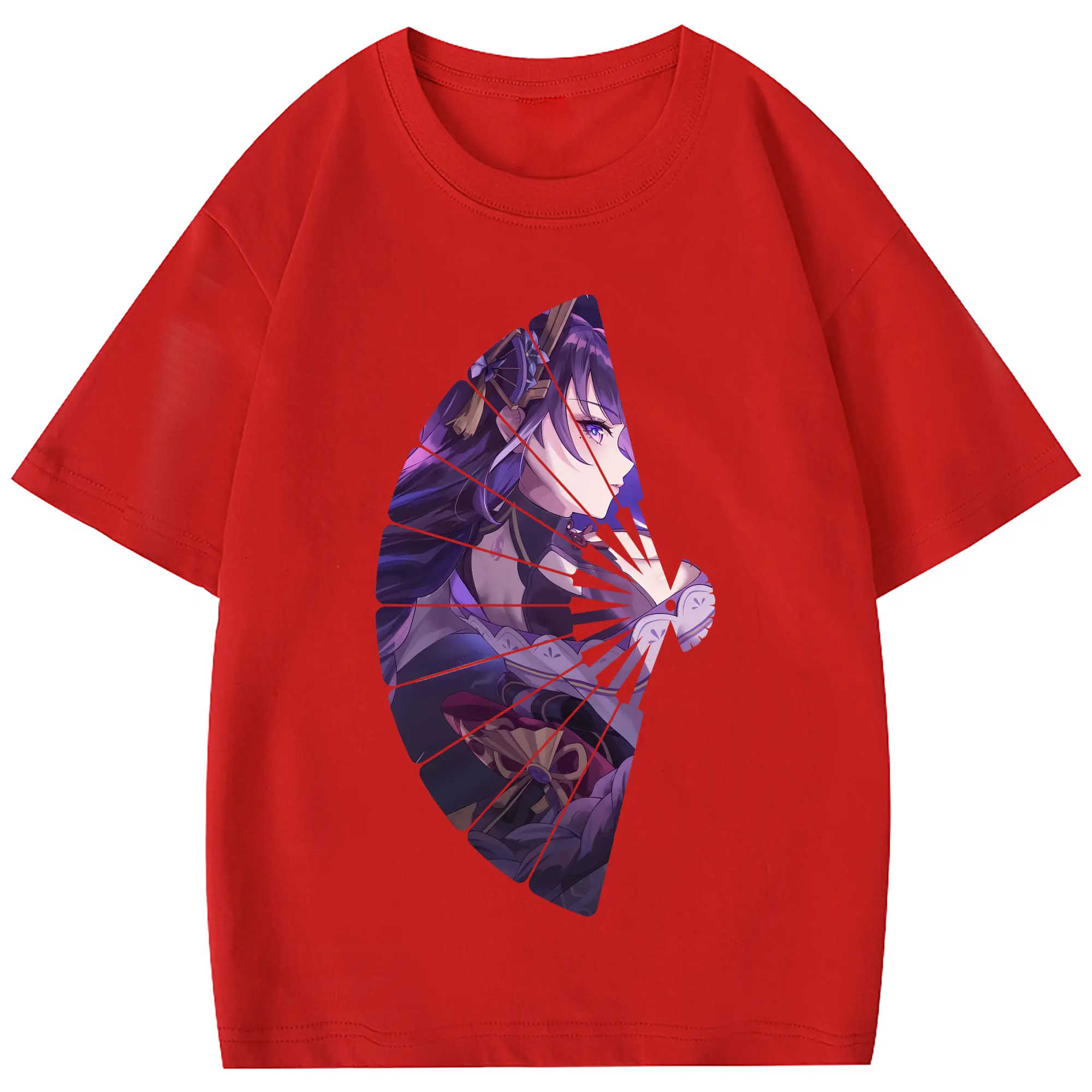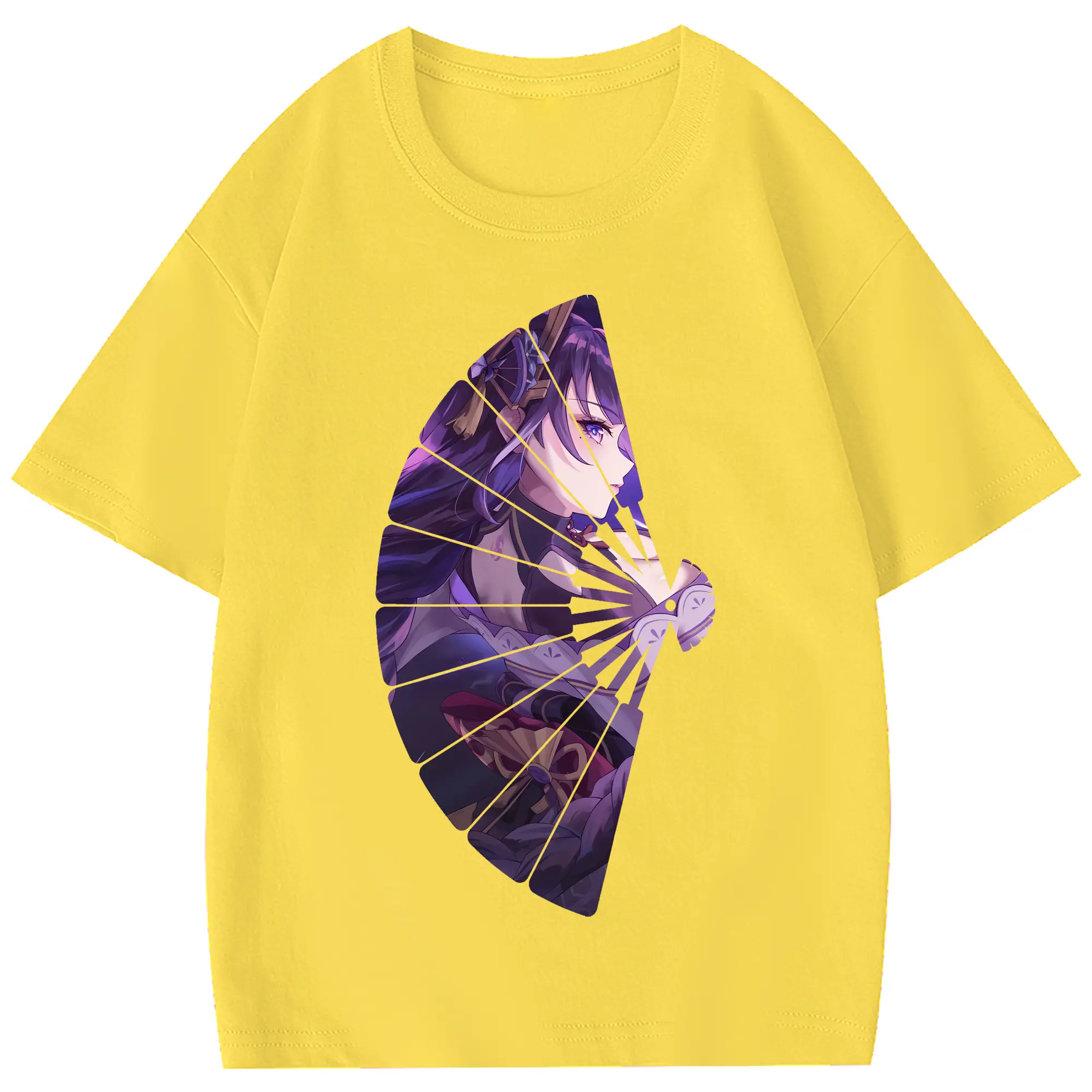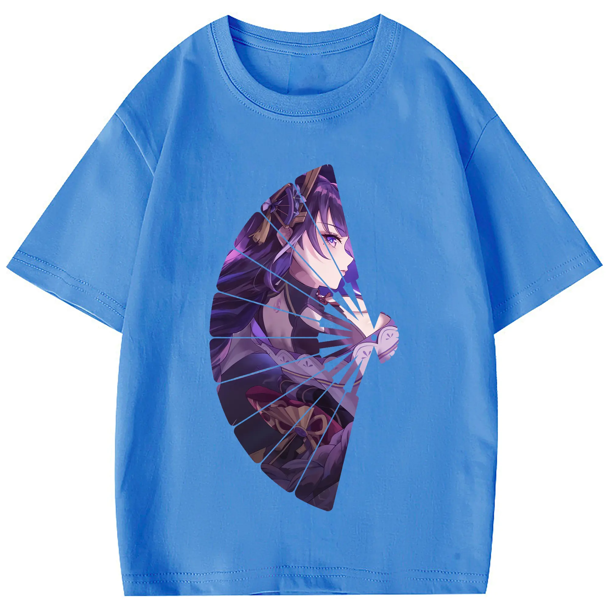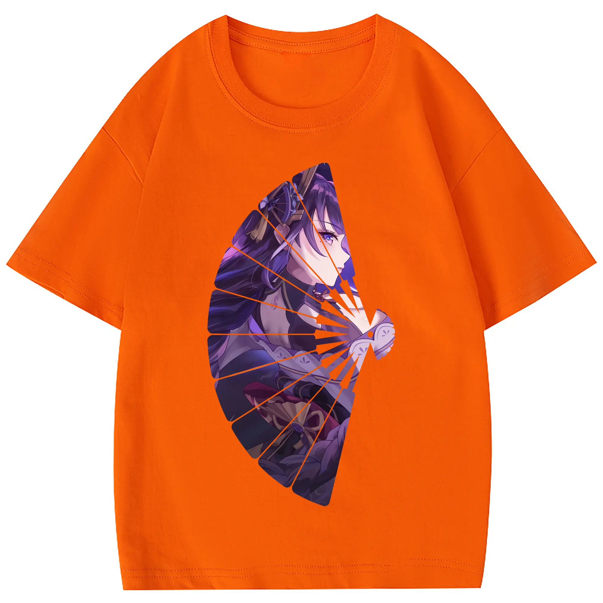原 神 グッズ 雷電将軍 - 綿100% 半袖Tシャツ ・ フロントプリント ・ 快適 通気性 ・ 日常使い 散歩 スポーツ用