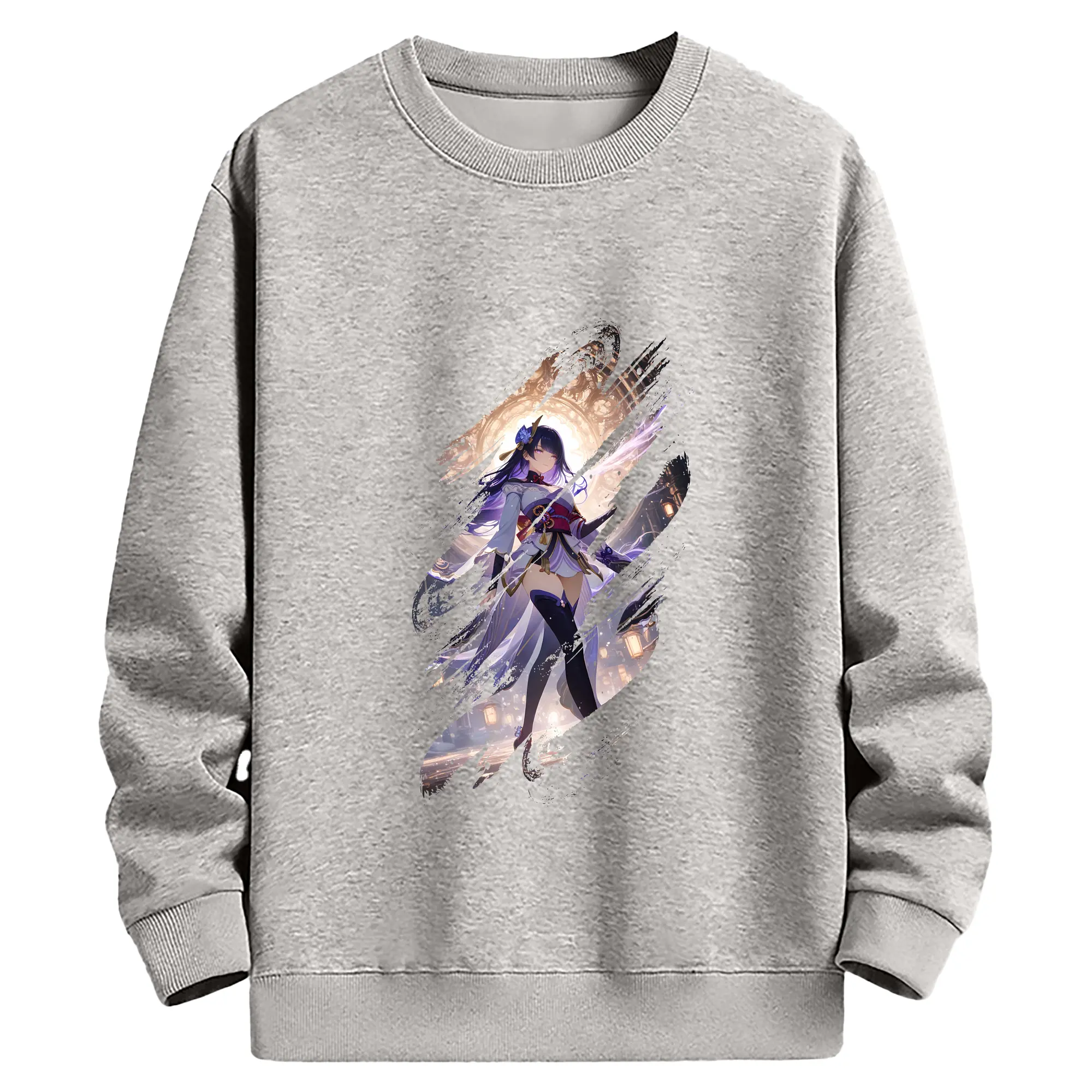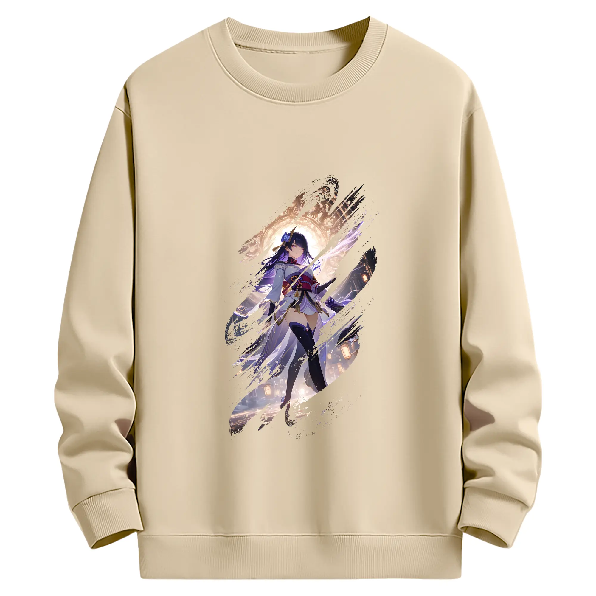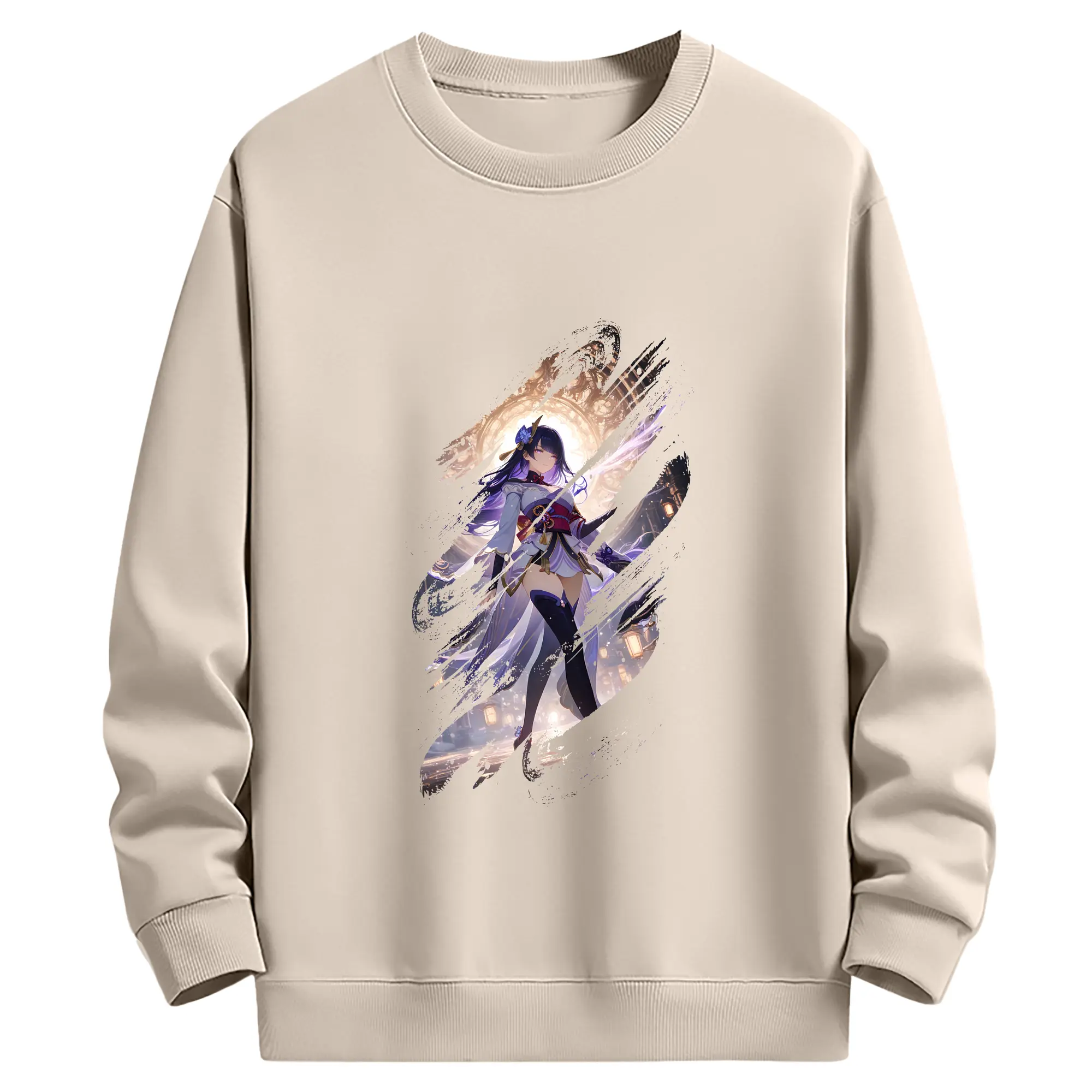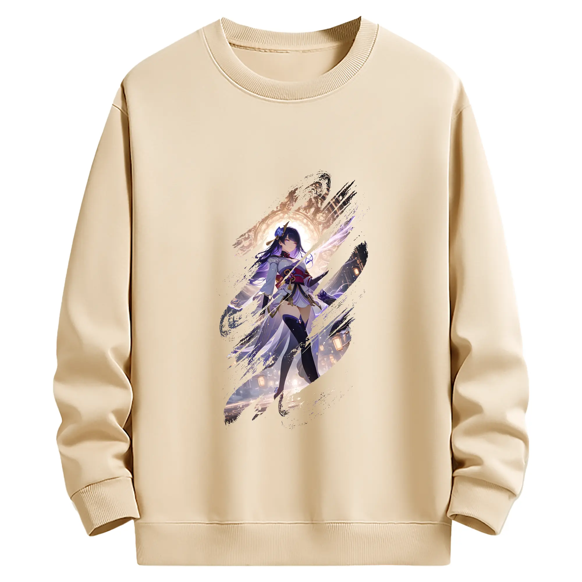 原 神 グッズ 雷電将軍 - 薄手 クルーネック スウェット 裏毛260g · ポリエステル 春秋向け カジュアル 男女兼用 · トレーナー デイリー スポーツ 散歩に最適