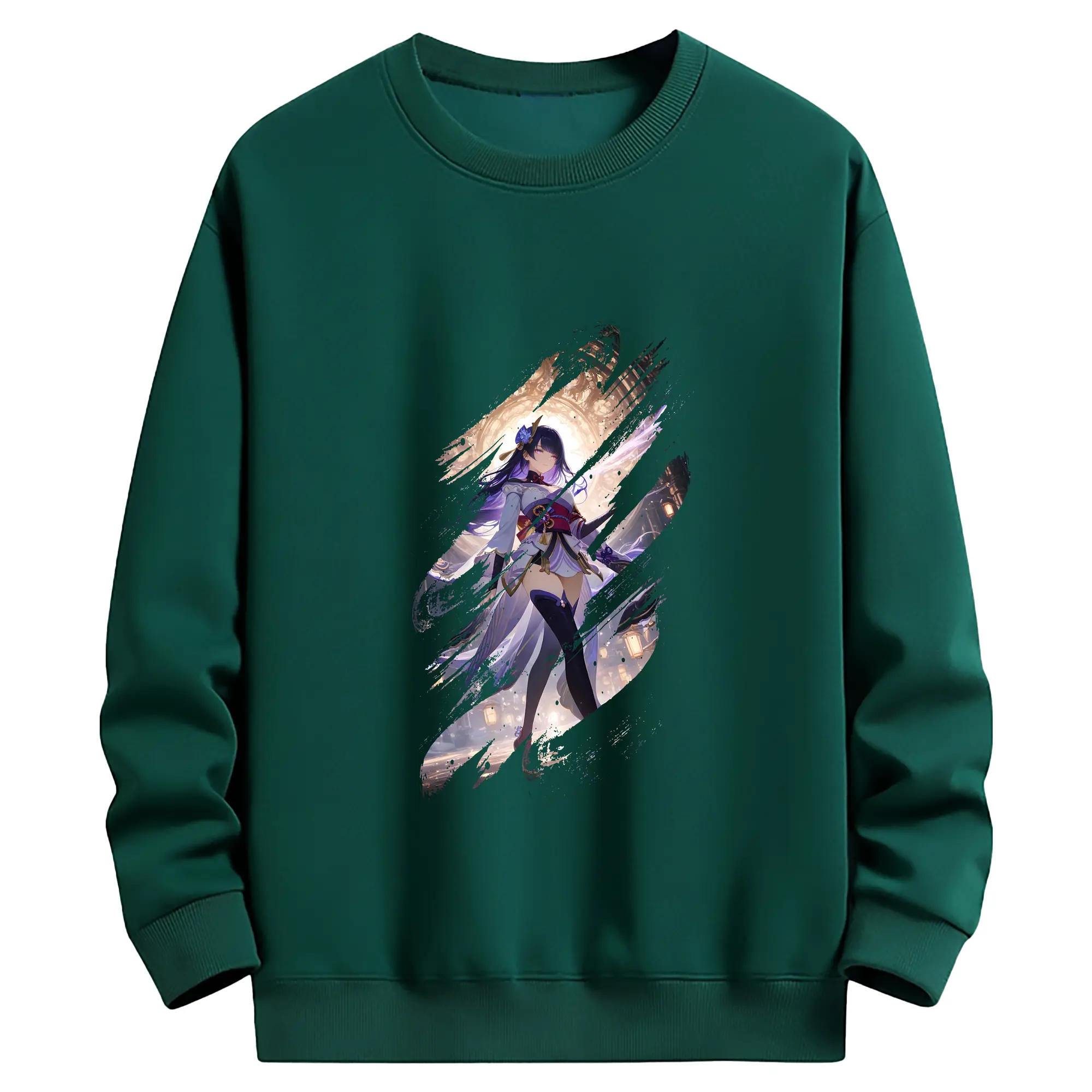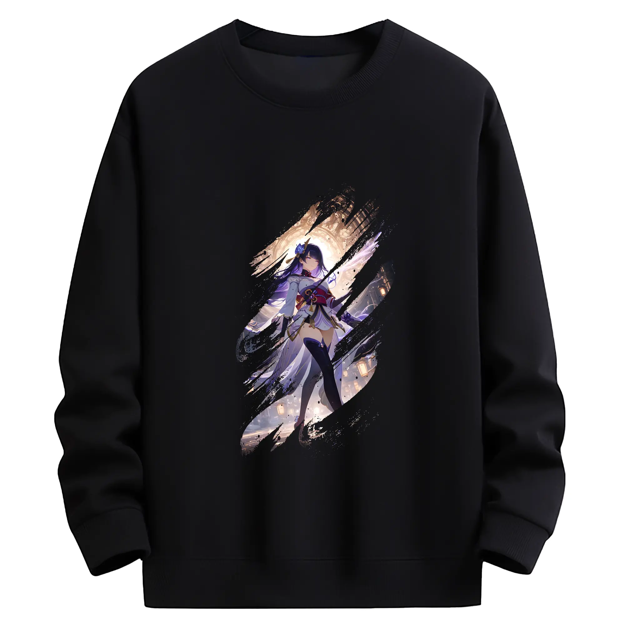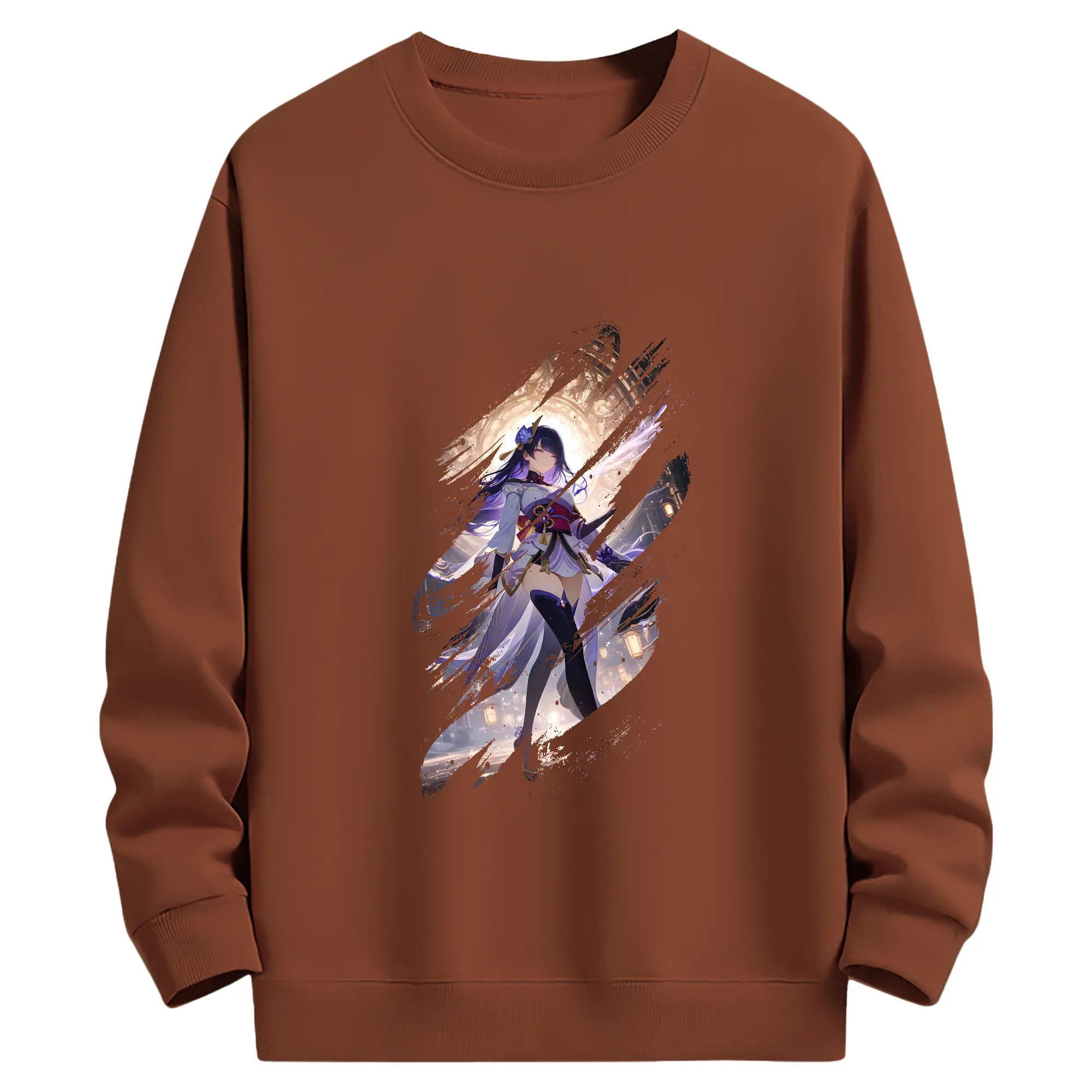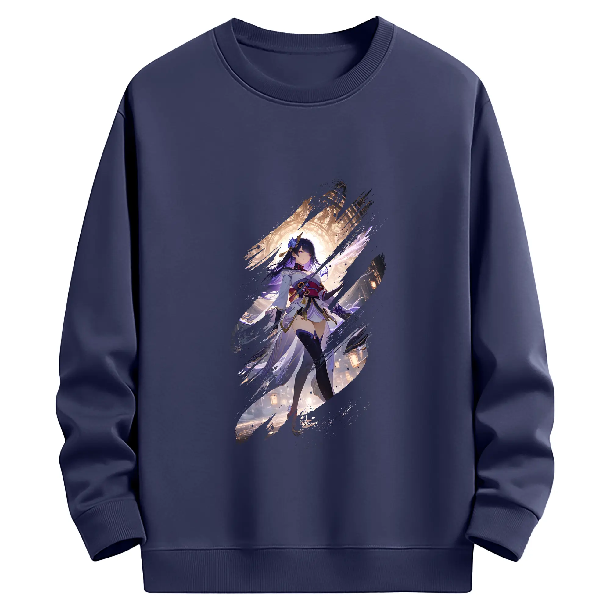 原 神 グッズ 雷電将軍 - 薄手 クルーネック スウェット 裏毛260g · ポリエステル 春秋向け カジュアル 男女兼用 · トレーナー デイリー スポーツ 散歩に最適