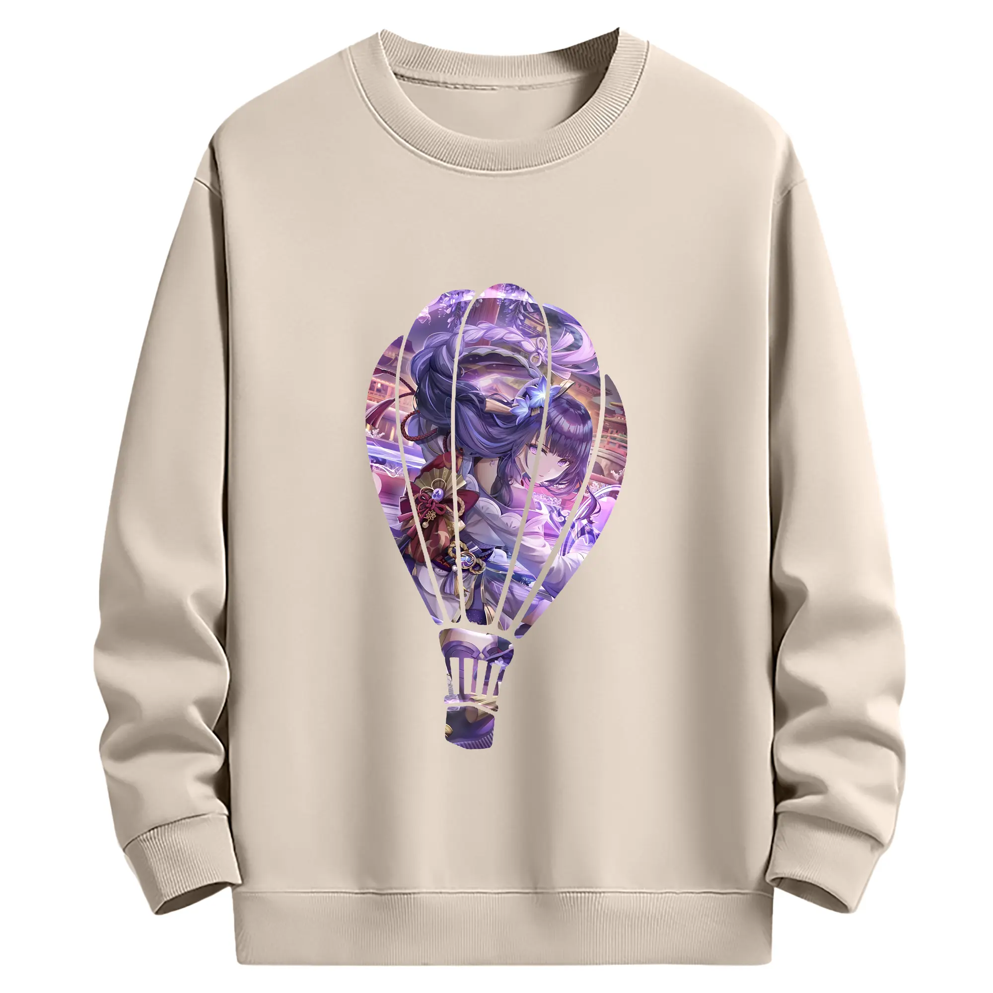 原 神 グッズ 雷電将軍 - 薄手 クルーネック スウェット 裏毛260g · ポリエステル 春秋向け カジュアル 男女兼用 · トレーナー デイリー スポーツ 散歩に最適