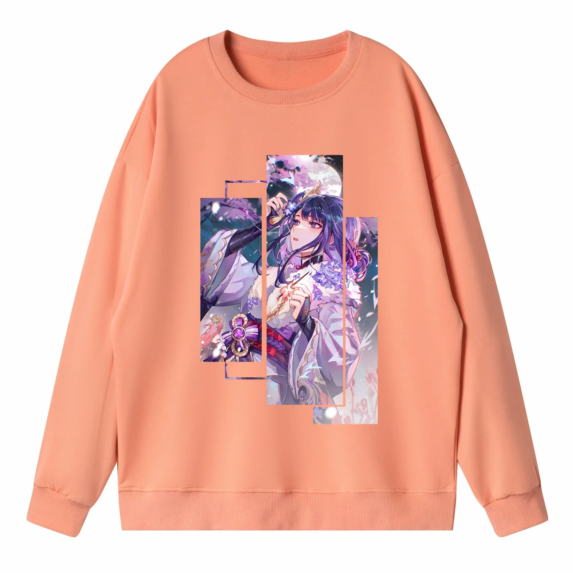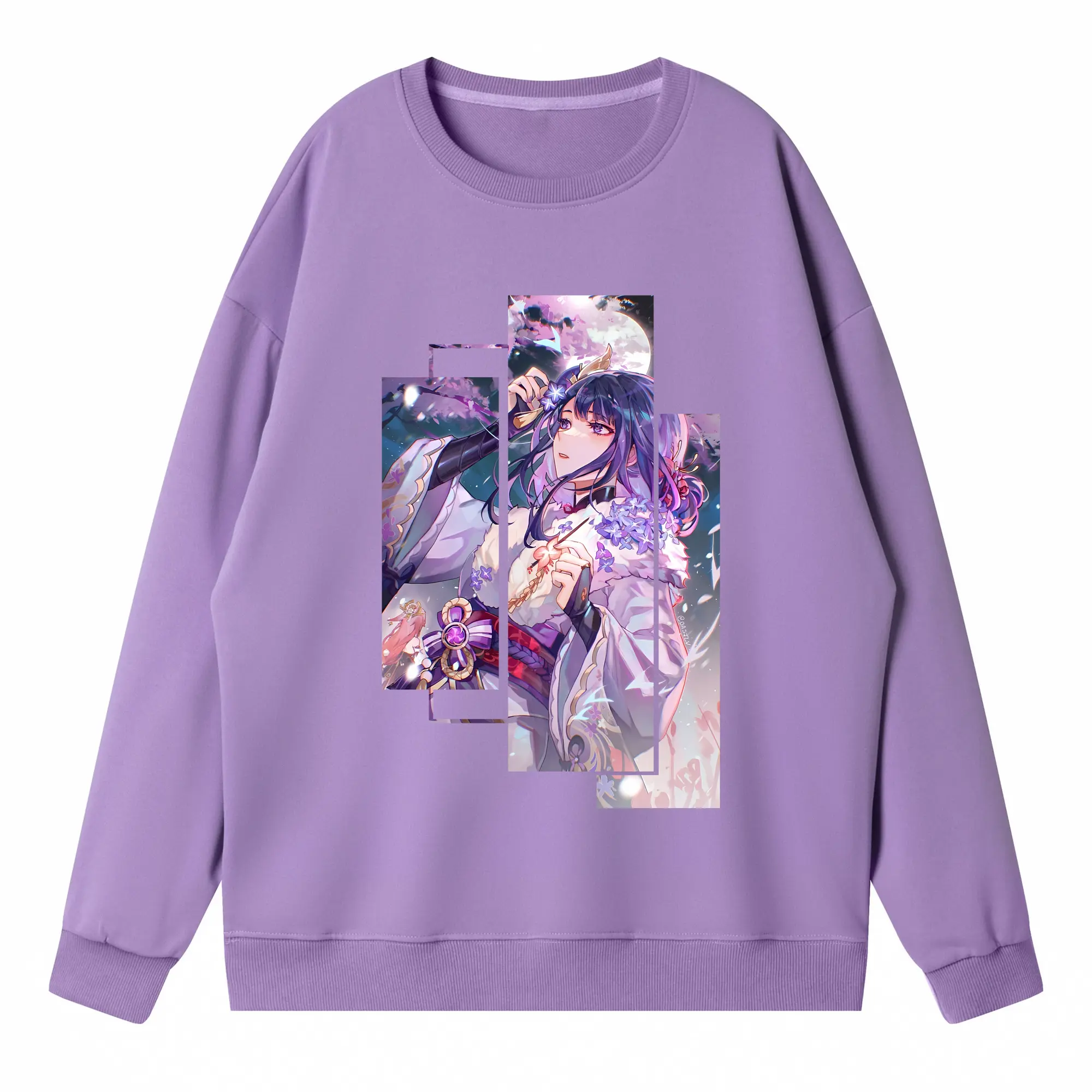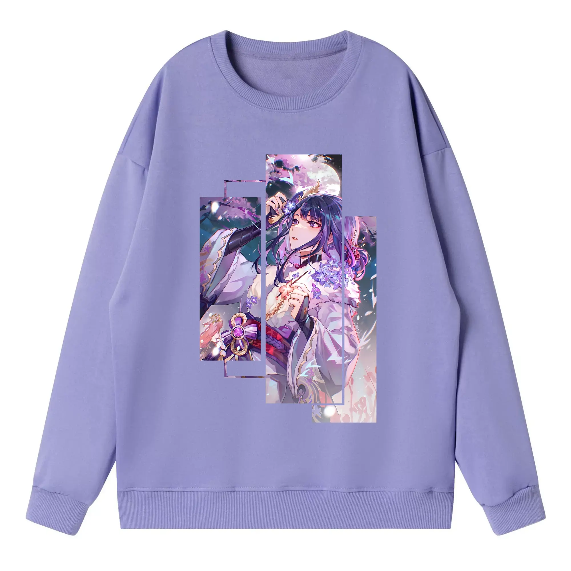 原 神 グッズ 雷電将軍 - 高品質 クルーネック スウェット ・ コットン59% ポリエステル41% ・ ユニセックス 長袖 トレーナー ・ カジュアル デイリー スポーツ 散歩用