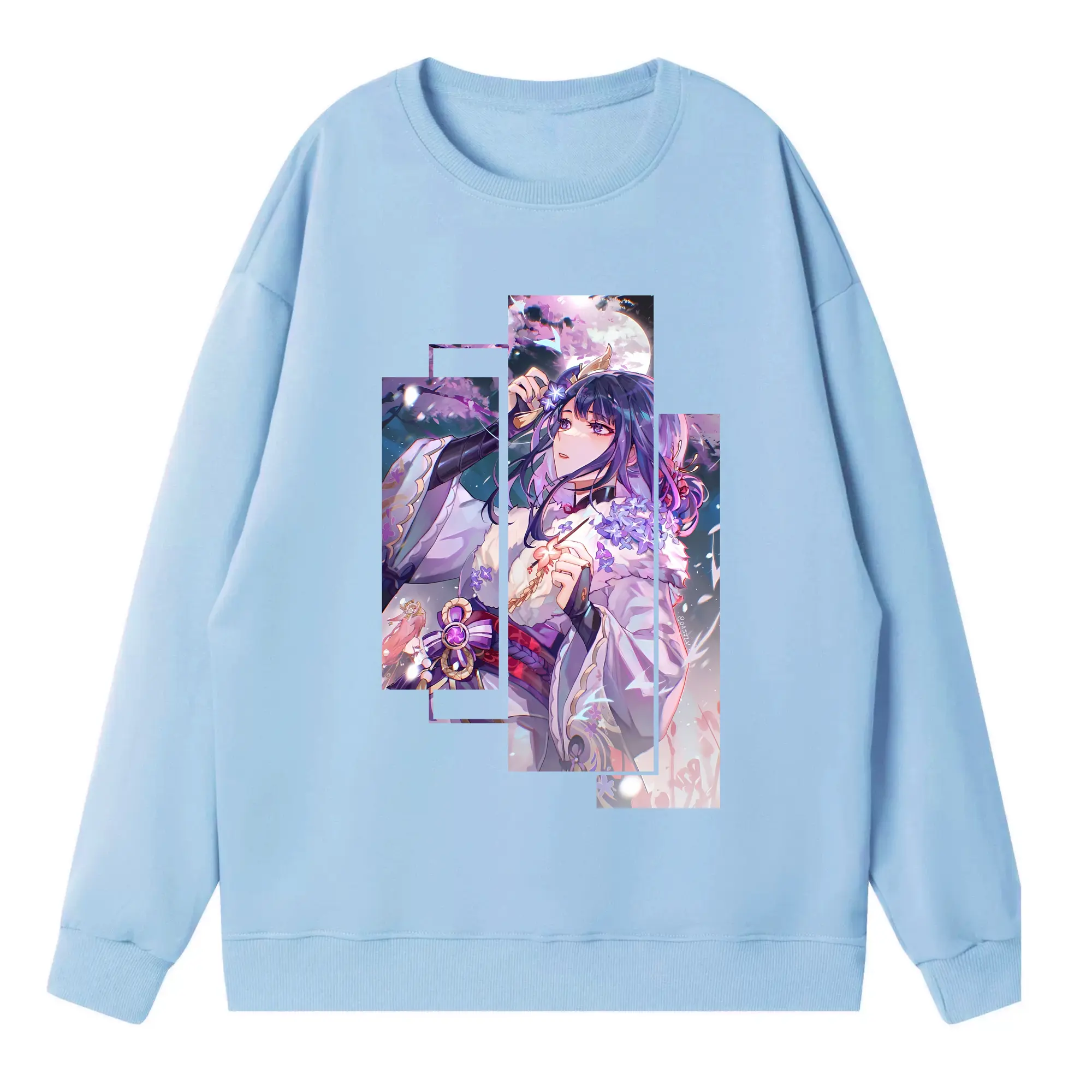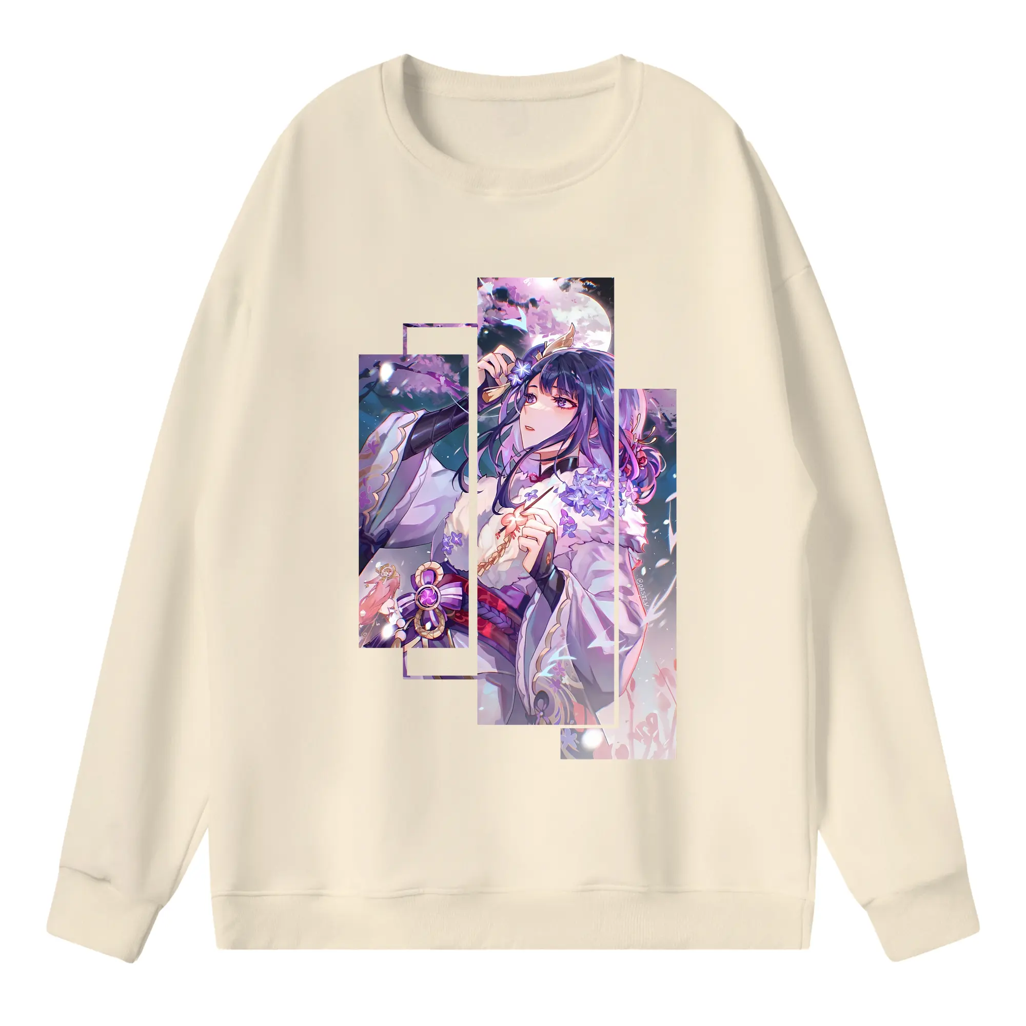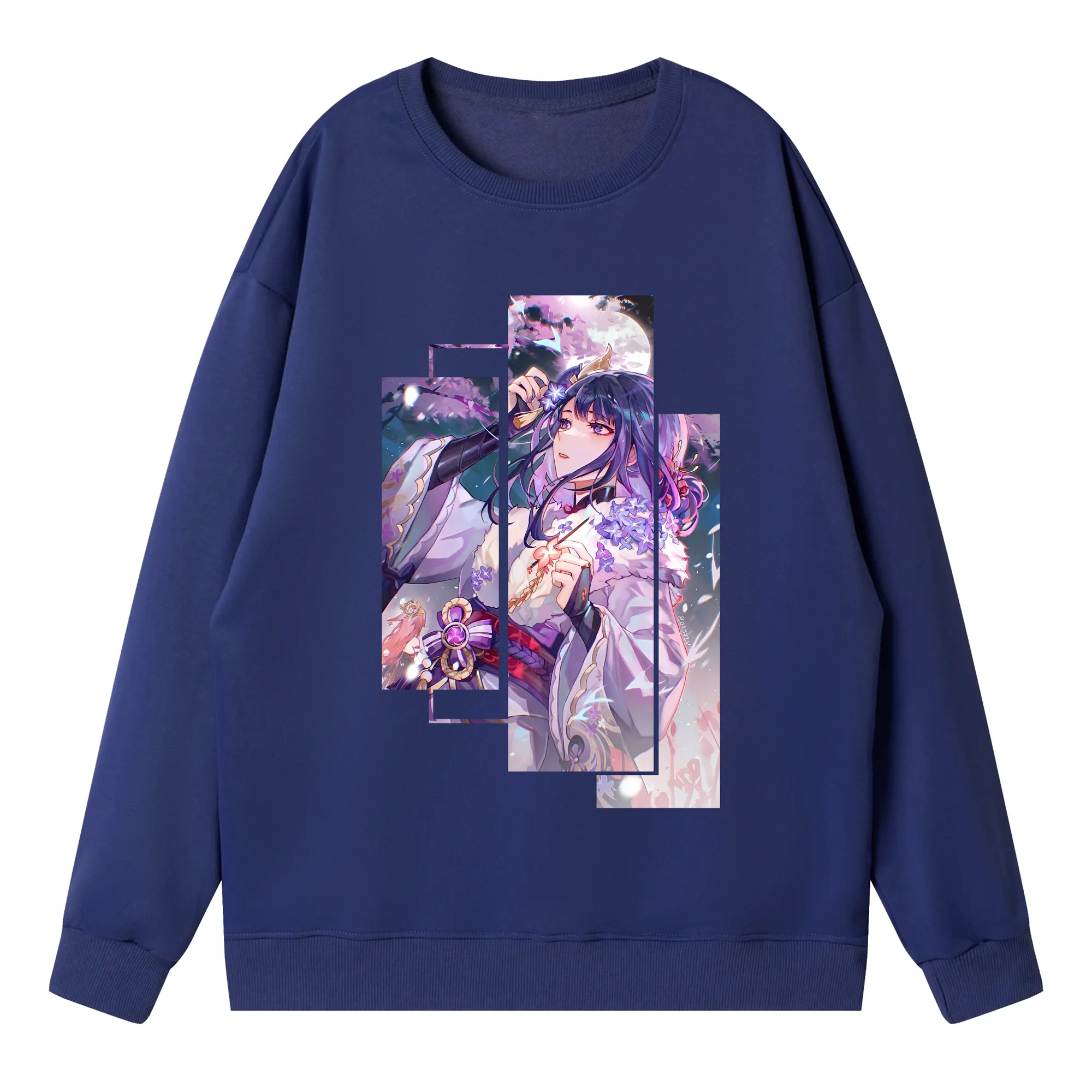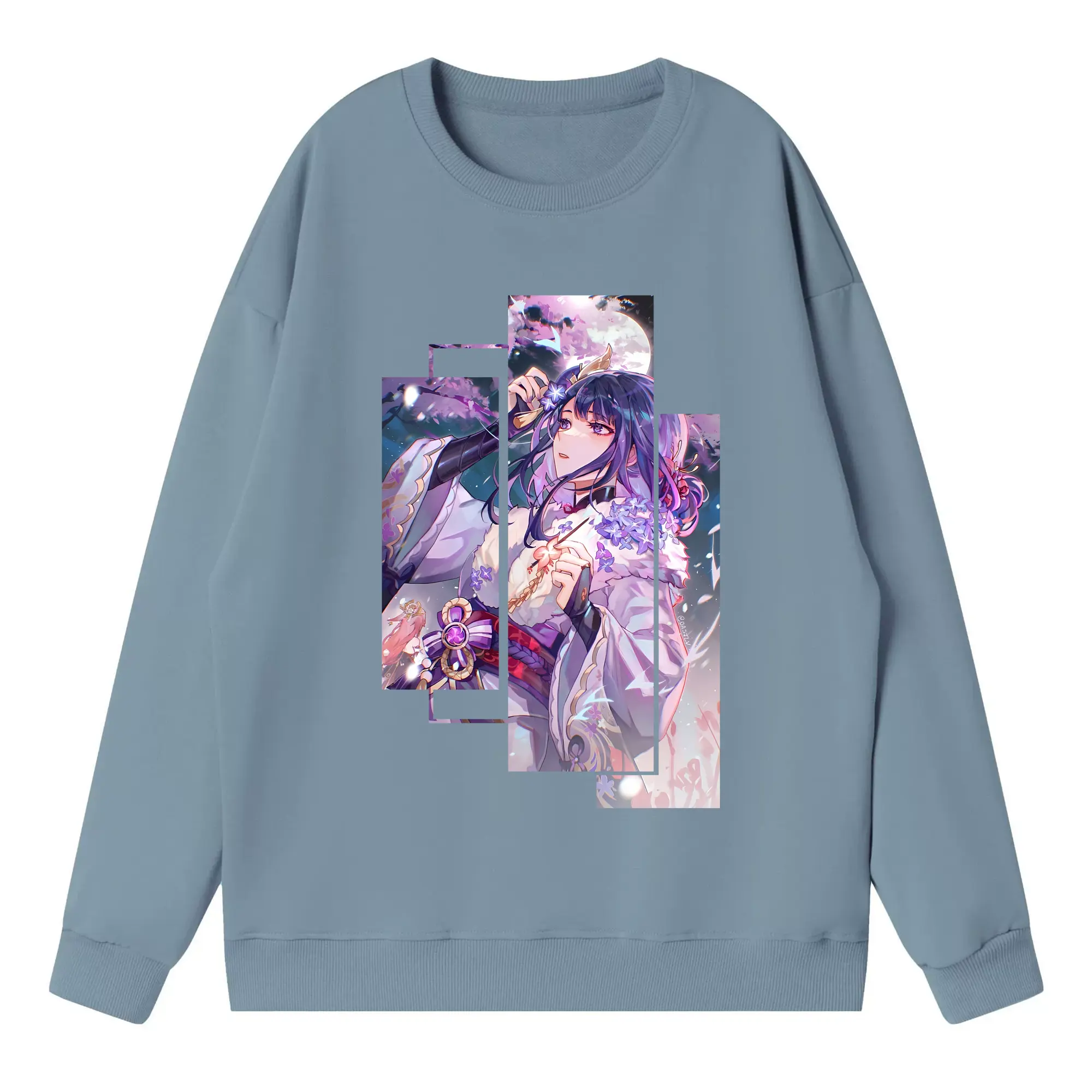 原 神 グッズ 雷電将軍 - 高品質 クルーネック スウェット ・ コットン59% ポリエステル41% ・ ユニセックス 長袖 トレーナー ・ カジュアル デイリー スポーツ 散歩用